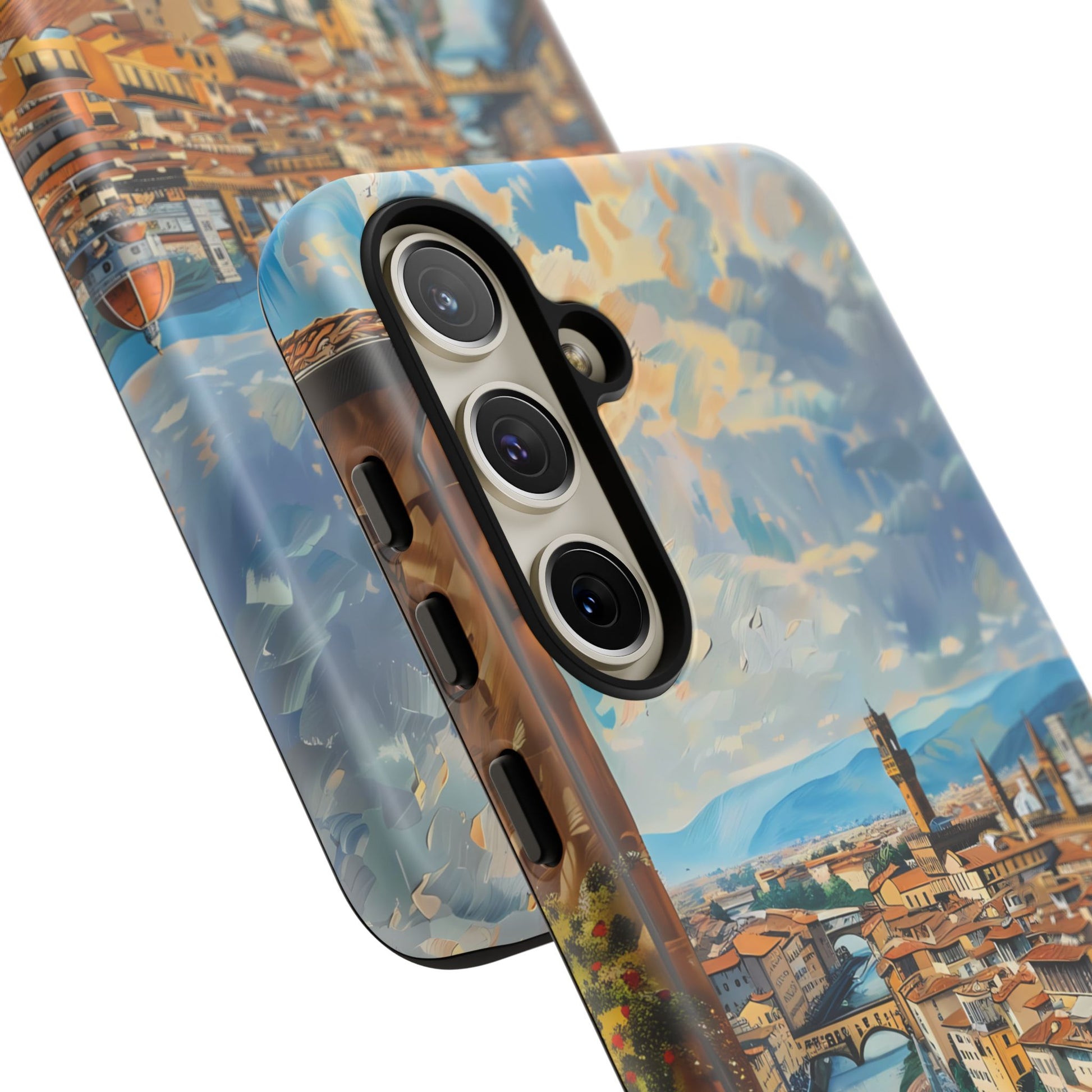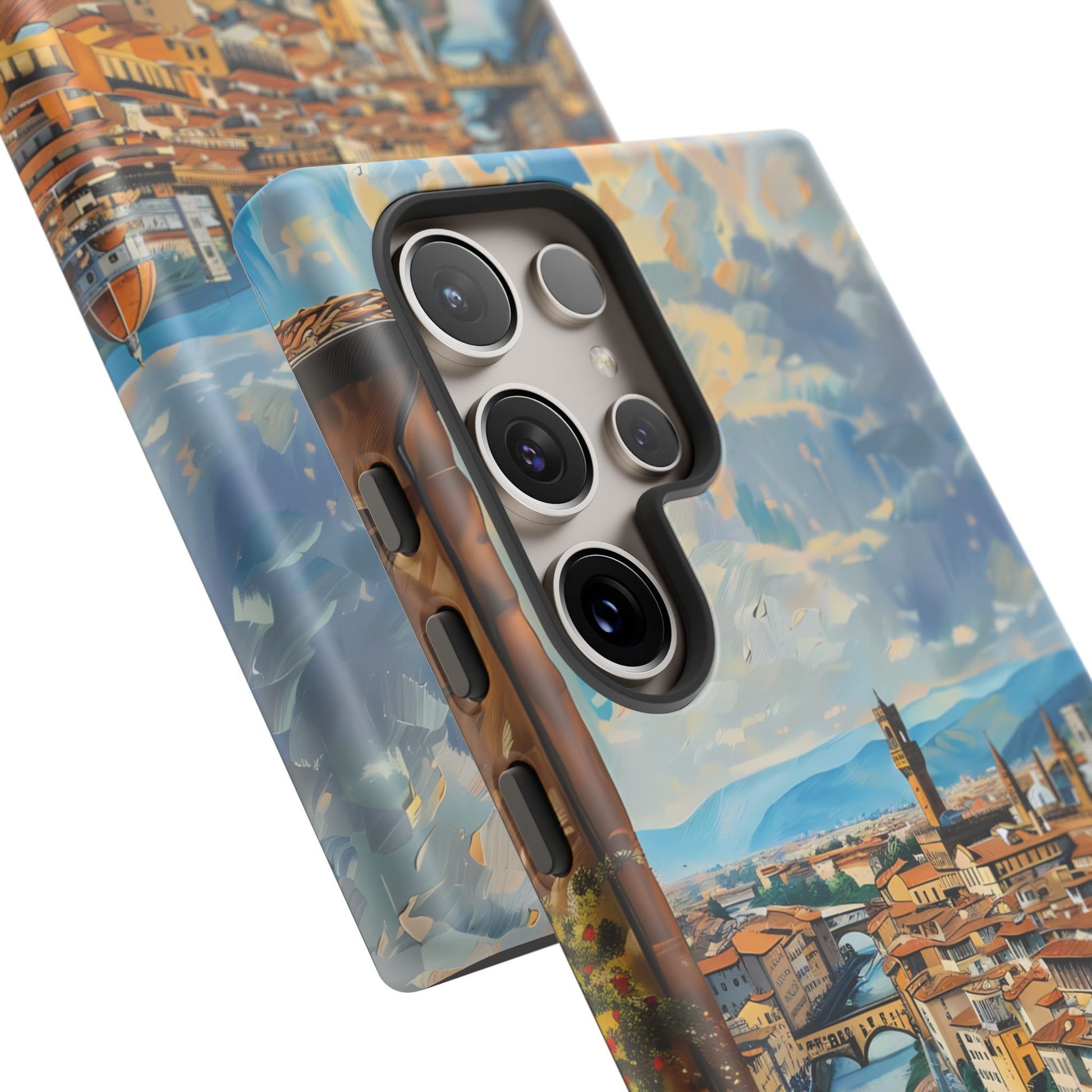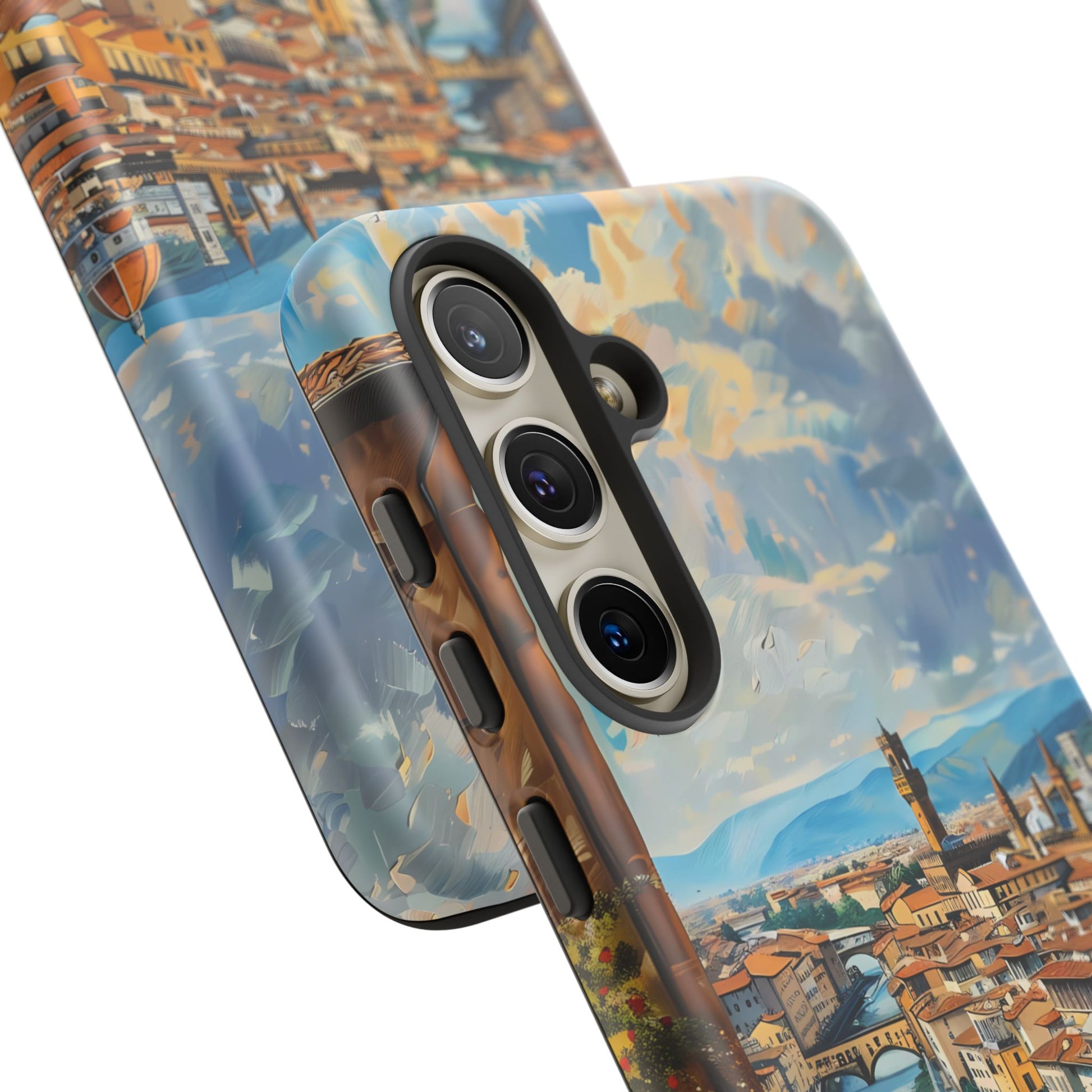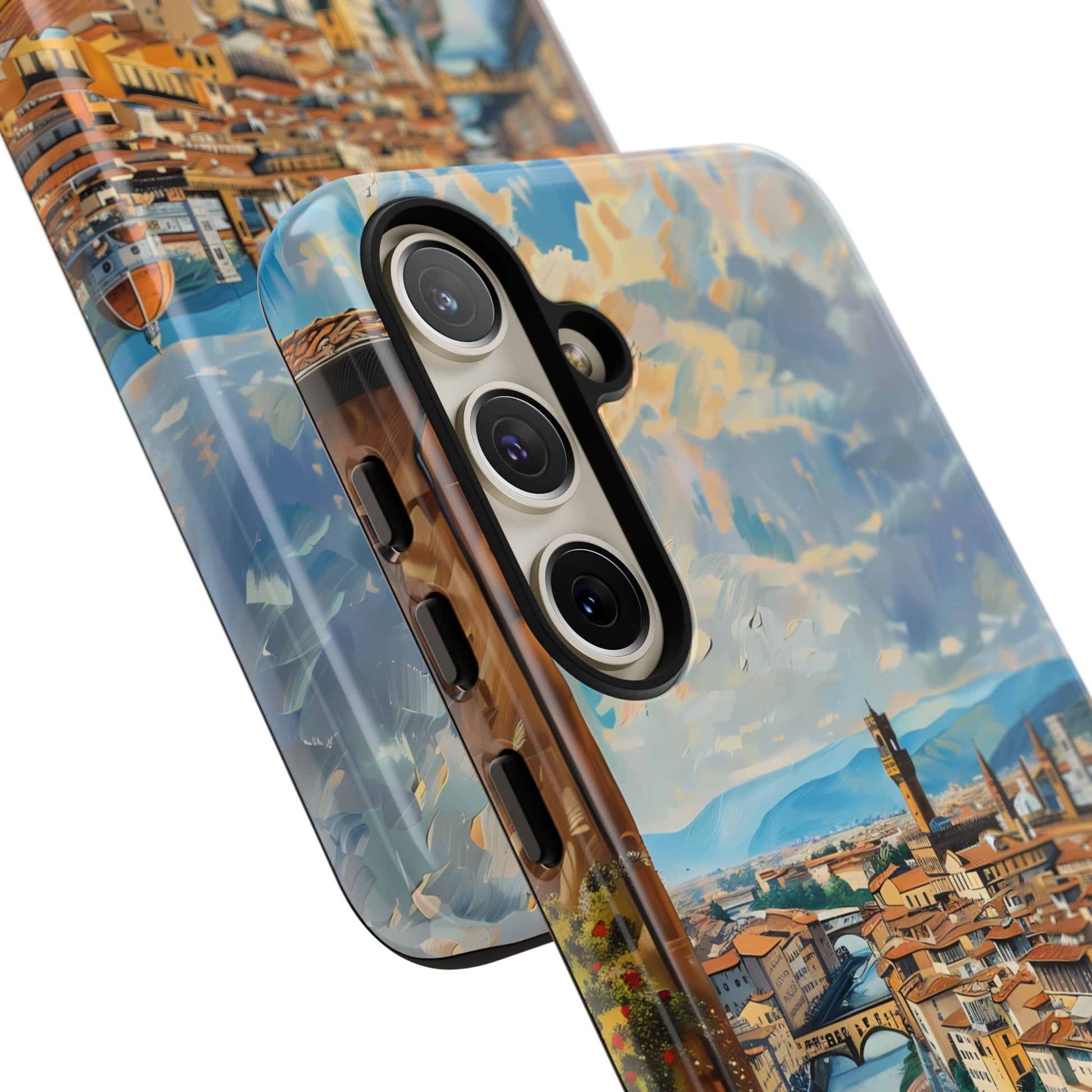 Transport yourself to the heart of Florence with the "Ponte Vecchio Vistas" phone cover. This stunning design presents an oil painting of the famous bridge alongside Florence's Renaissance architecture, making it an ideal choice for art lovers and admirers of Italian heritage.