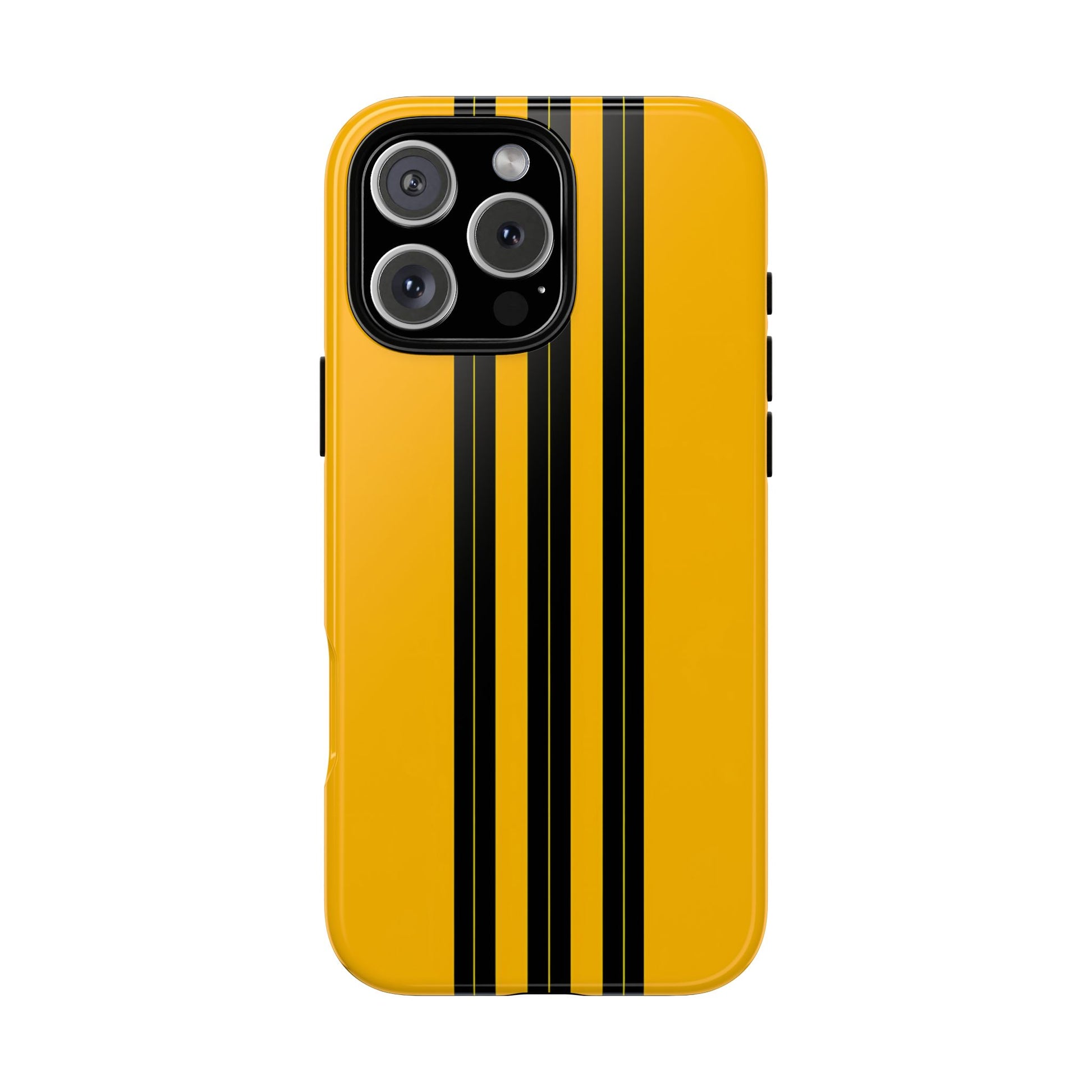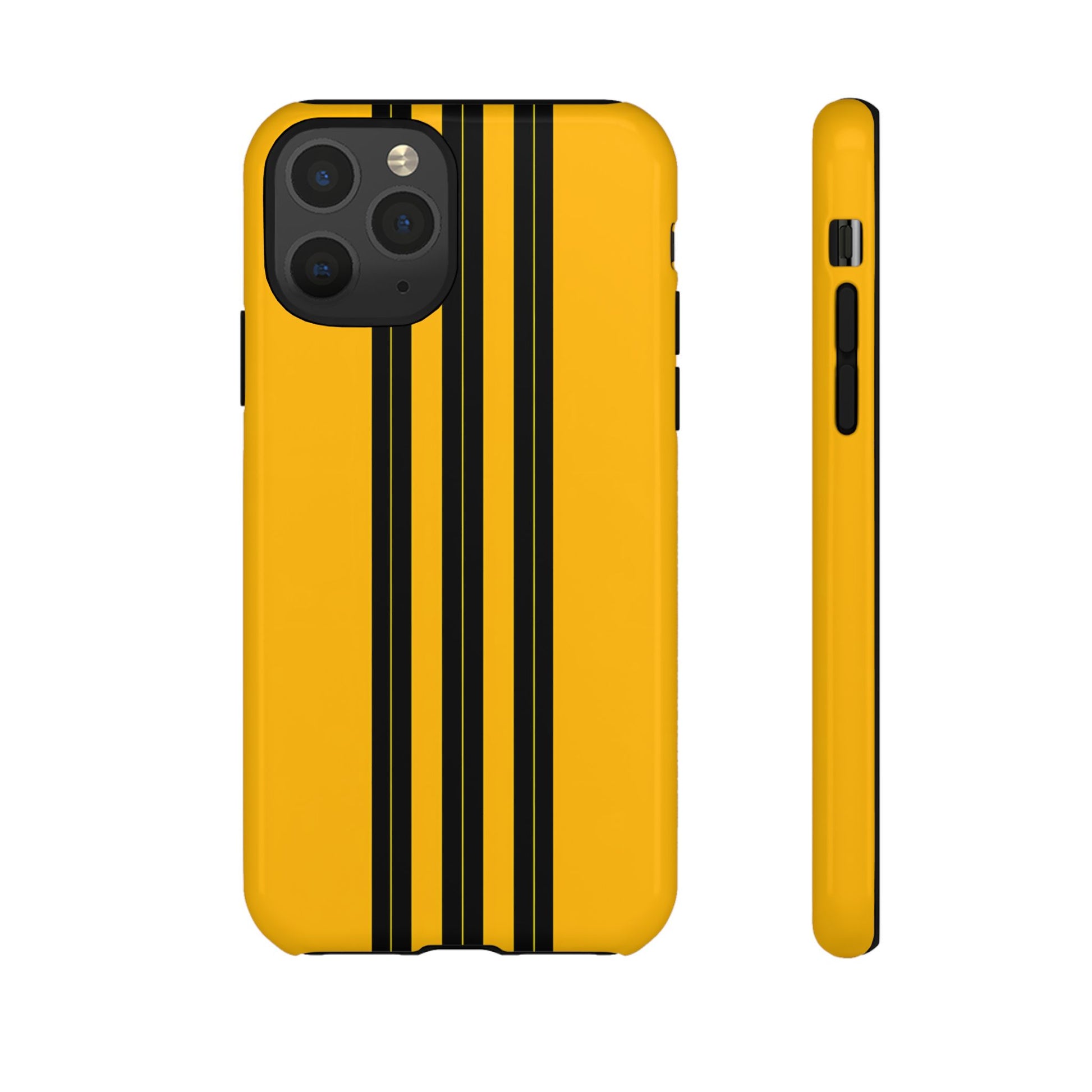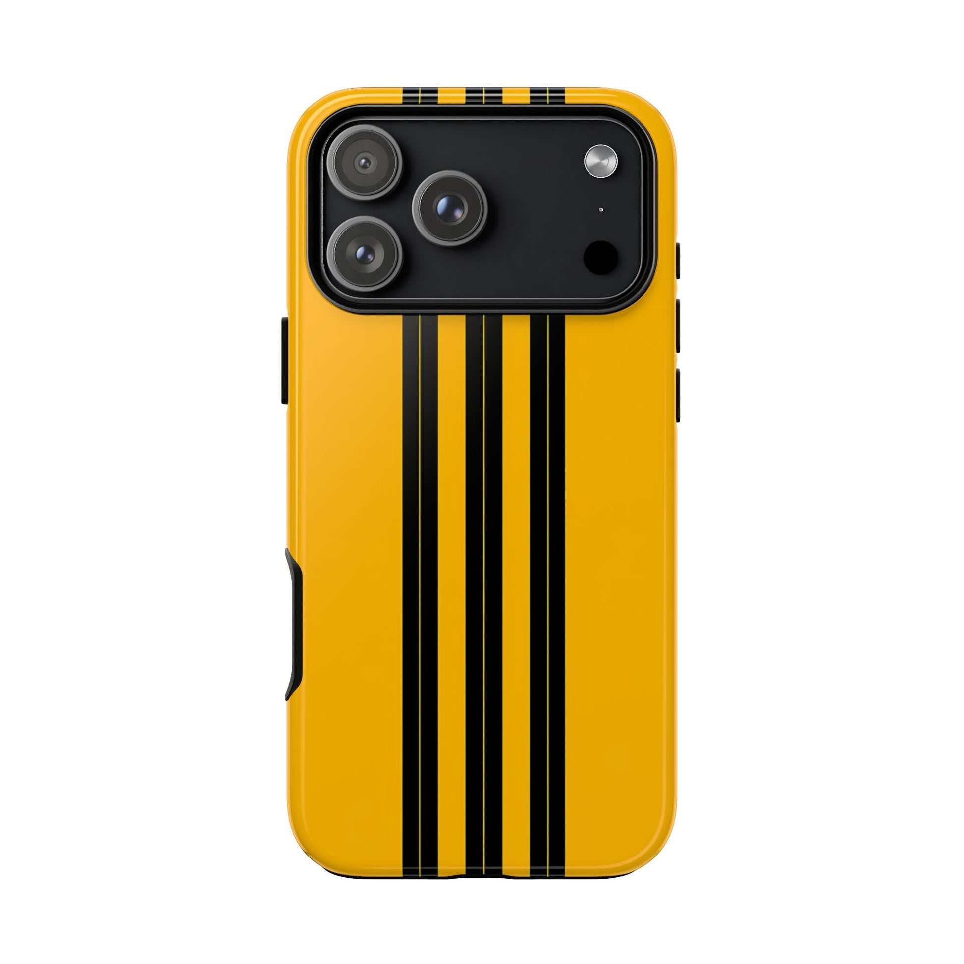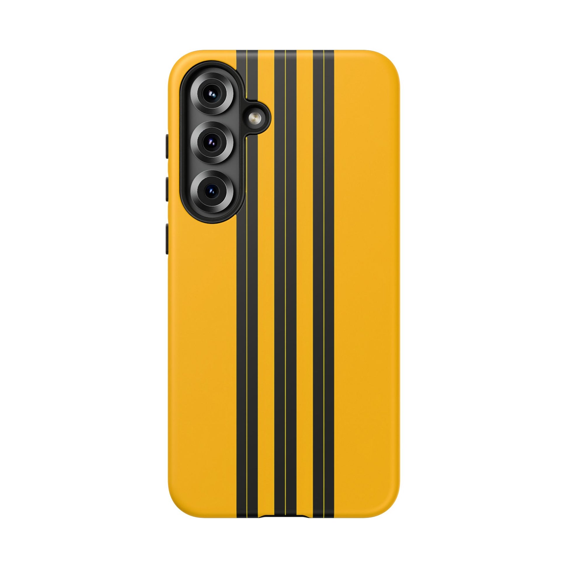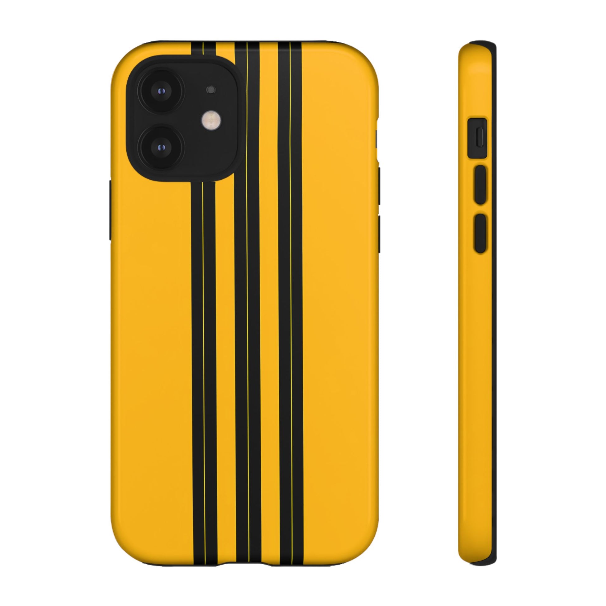 A minimalist, refined design featuring three crisp vertical black stripes arranged on a smooth yellow background, creating a clean, modern, high-contrast aesthetic.