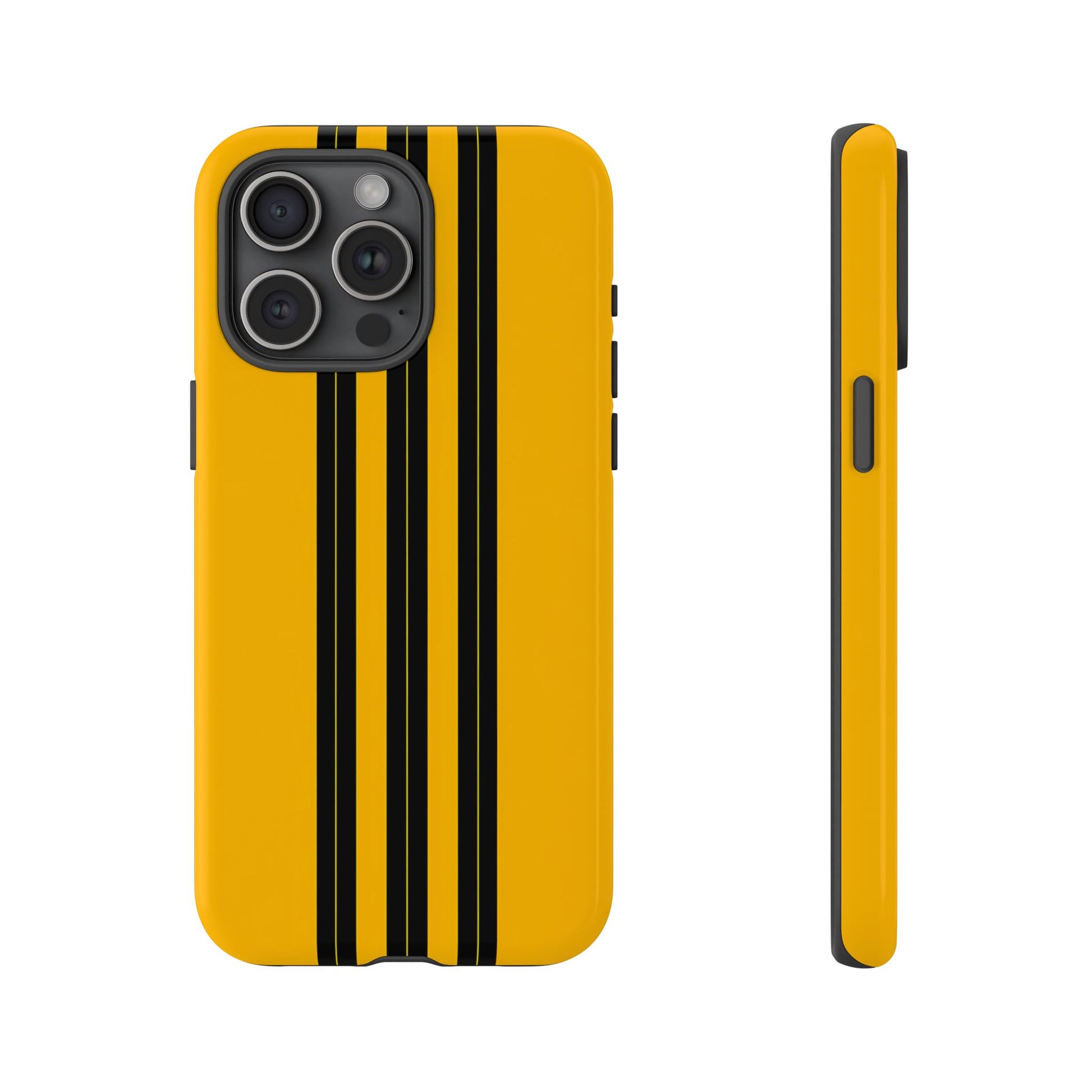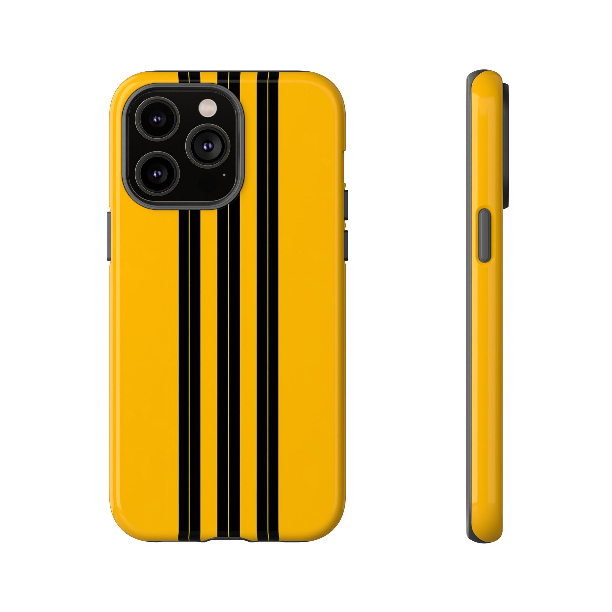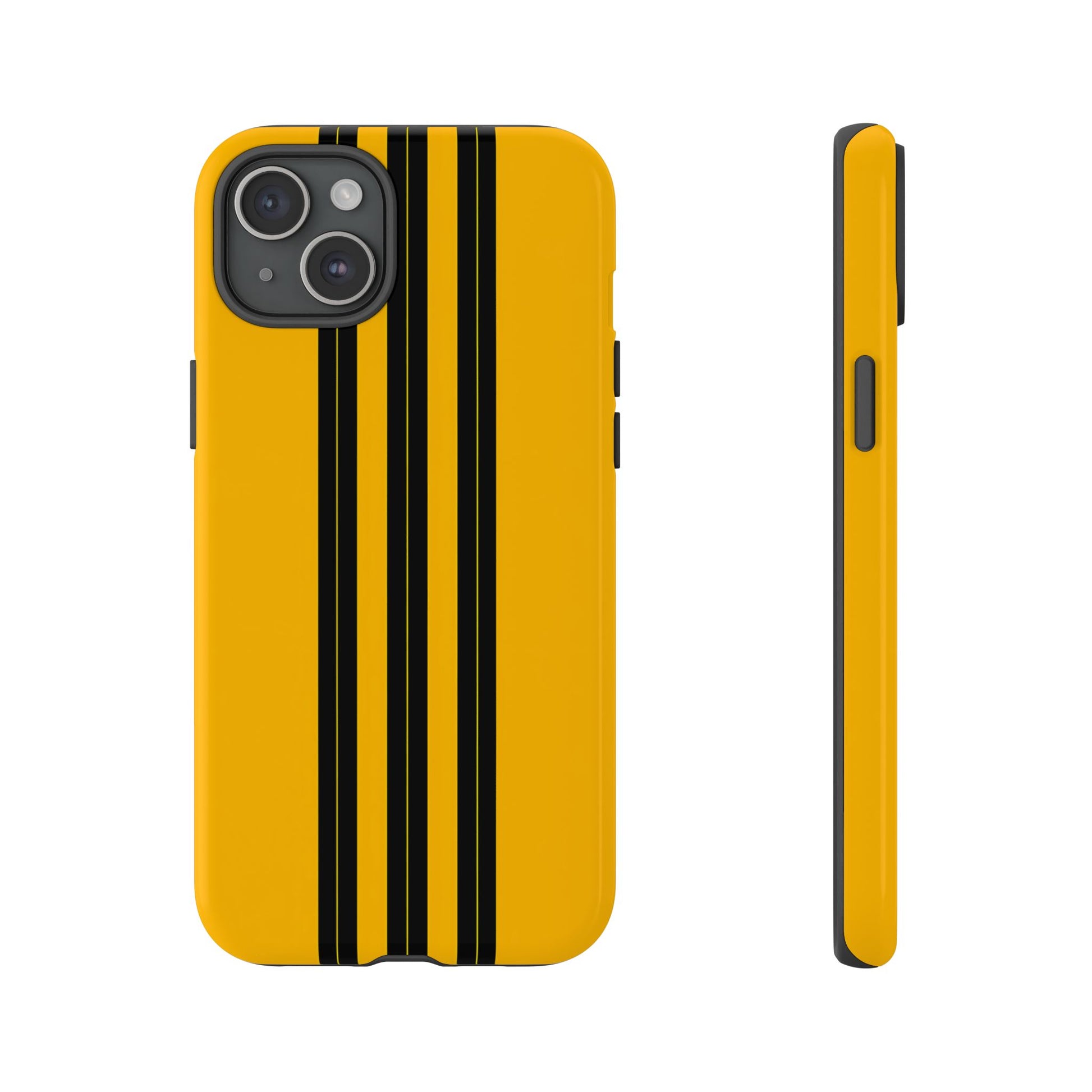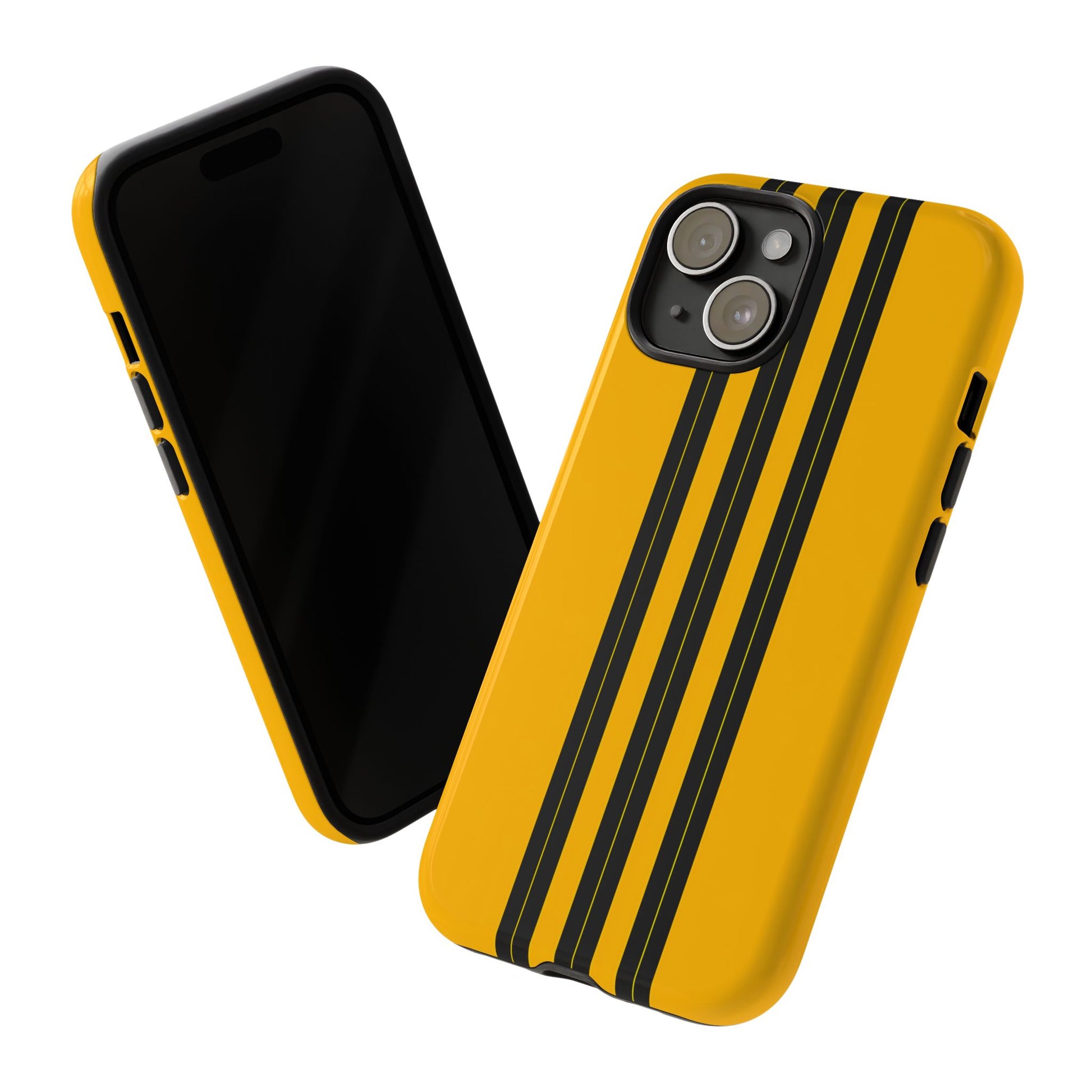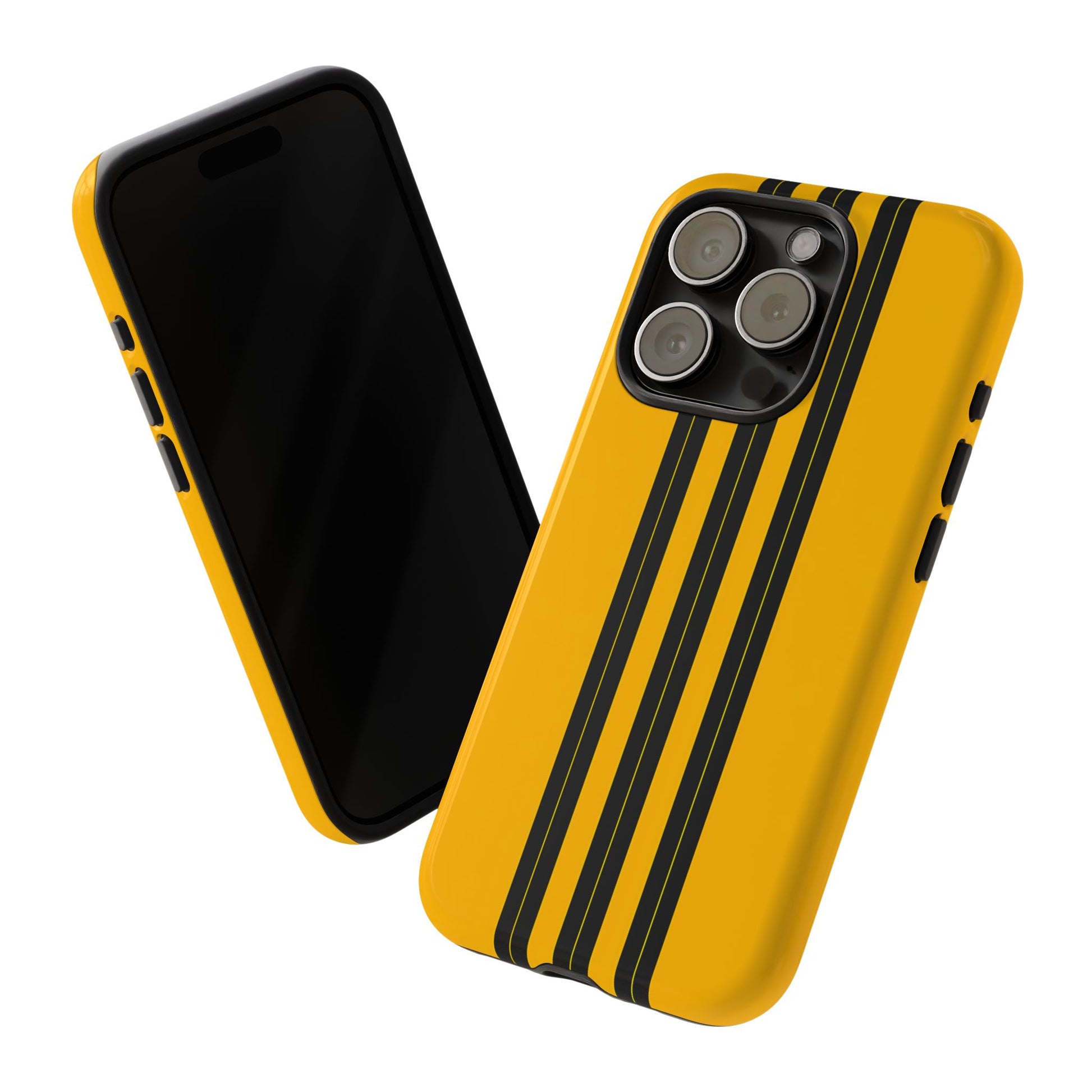 A minimalist, refined design featuring three crisp vertical black stripes arranged on a smooth yellow background, creating a clean, modern, high-contrast aesthetic.
