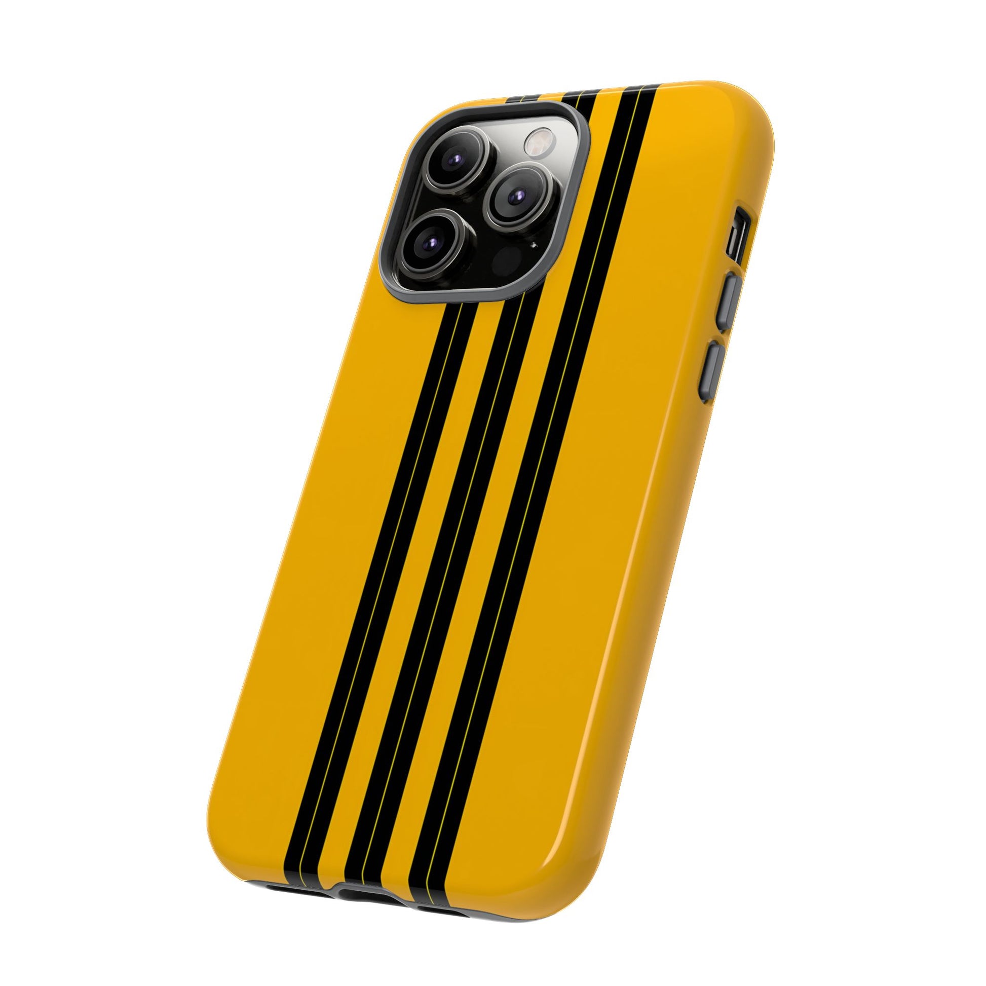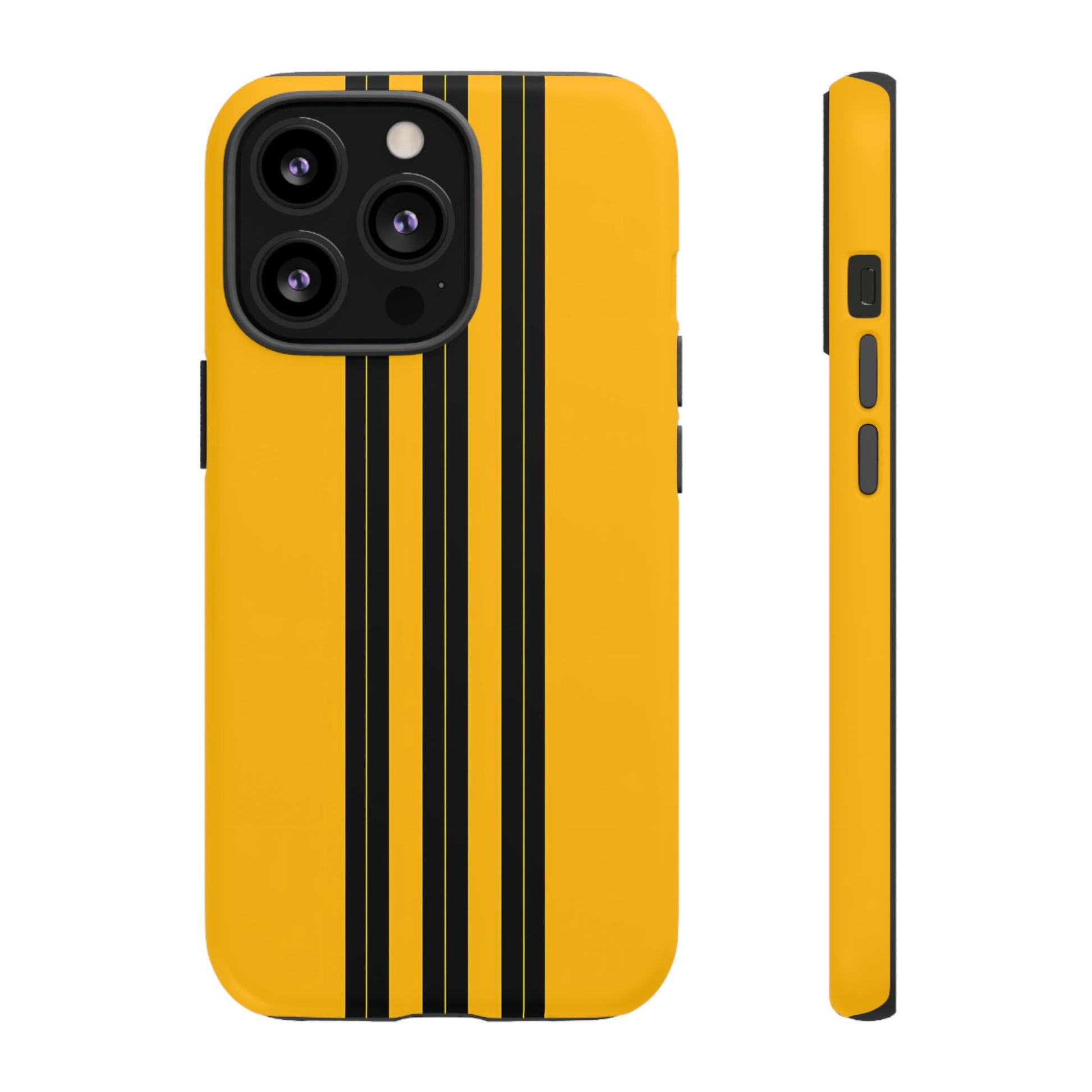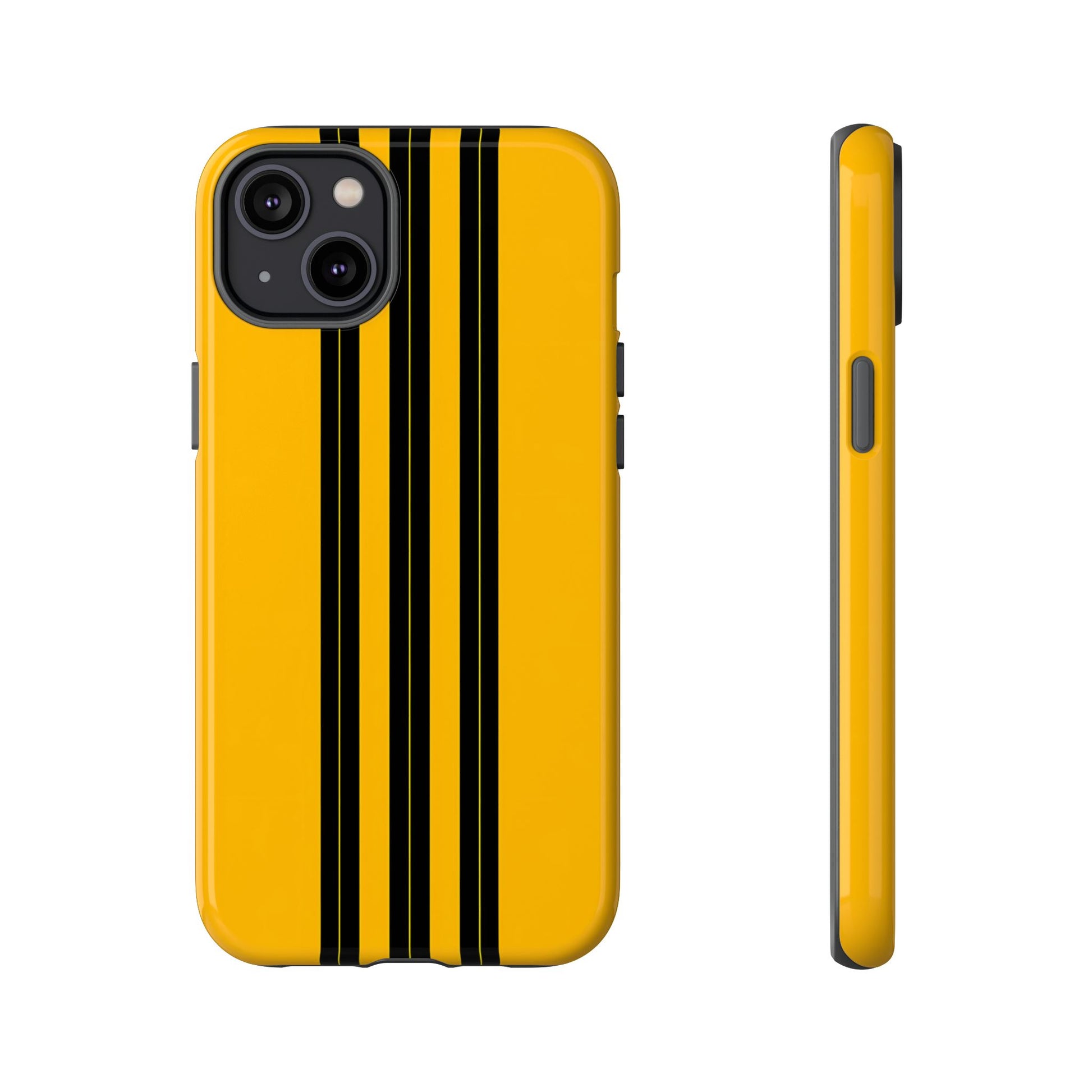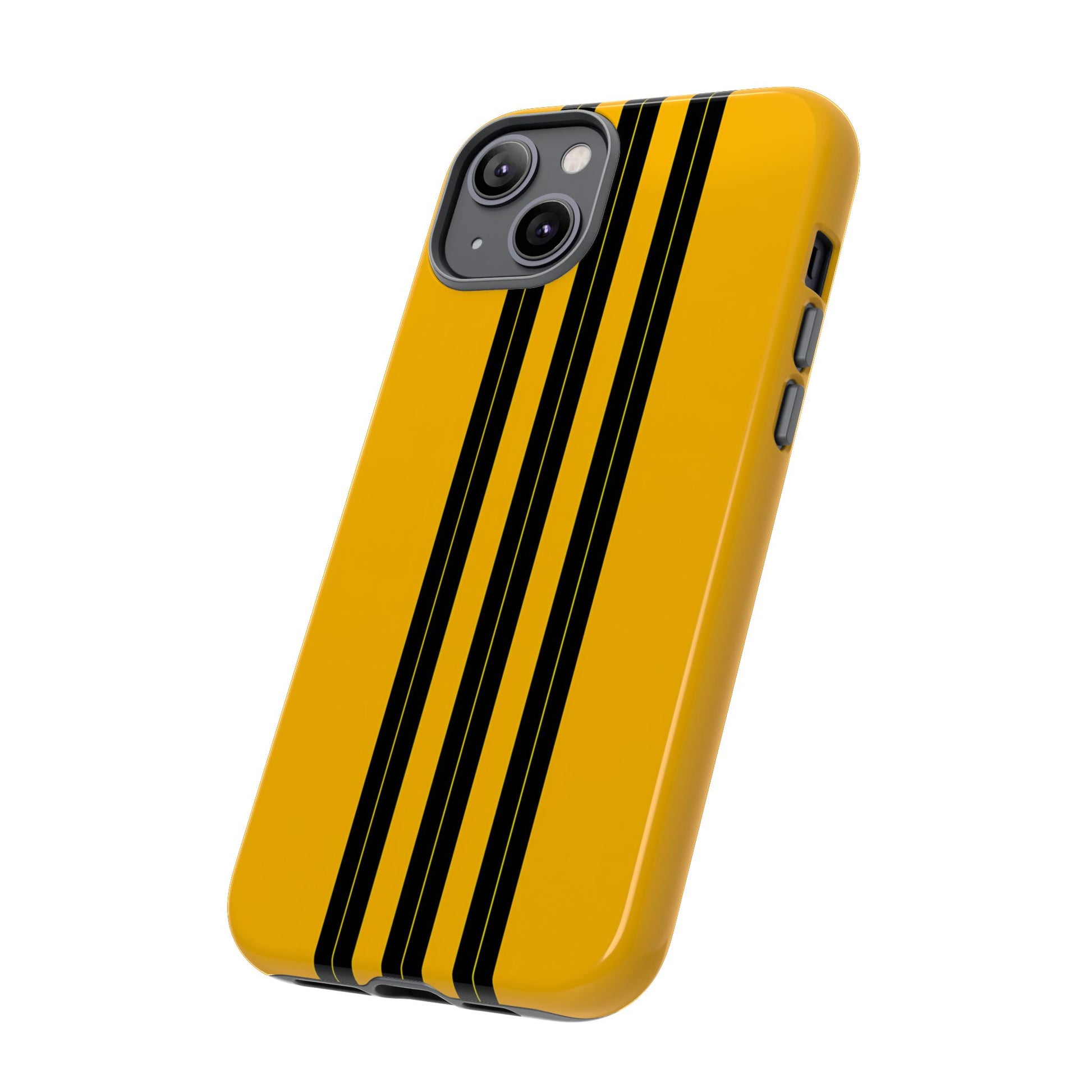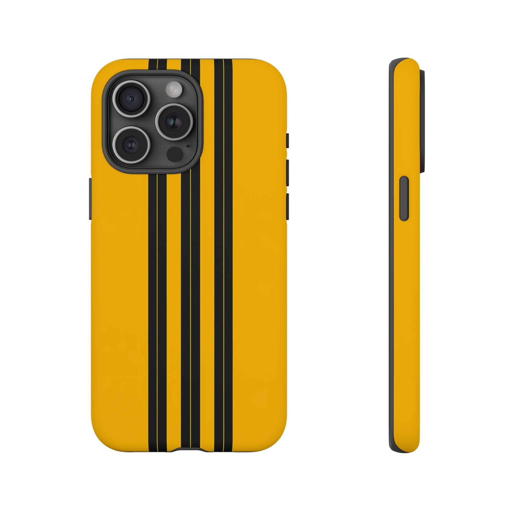 A minimalist, refined design featuring three crisp vertical black stripes arranged on a smooth yellow background, creating a clean, modern, high-contrast aesthetic.