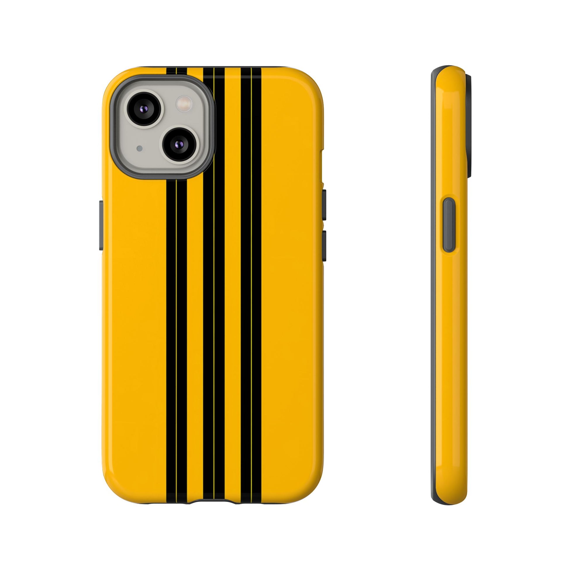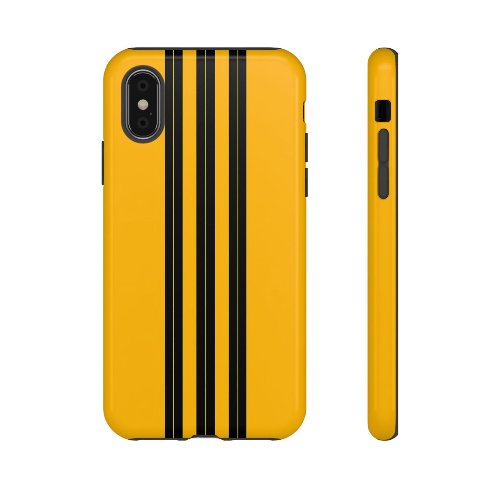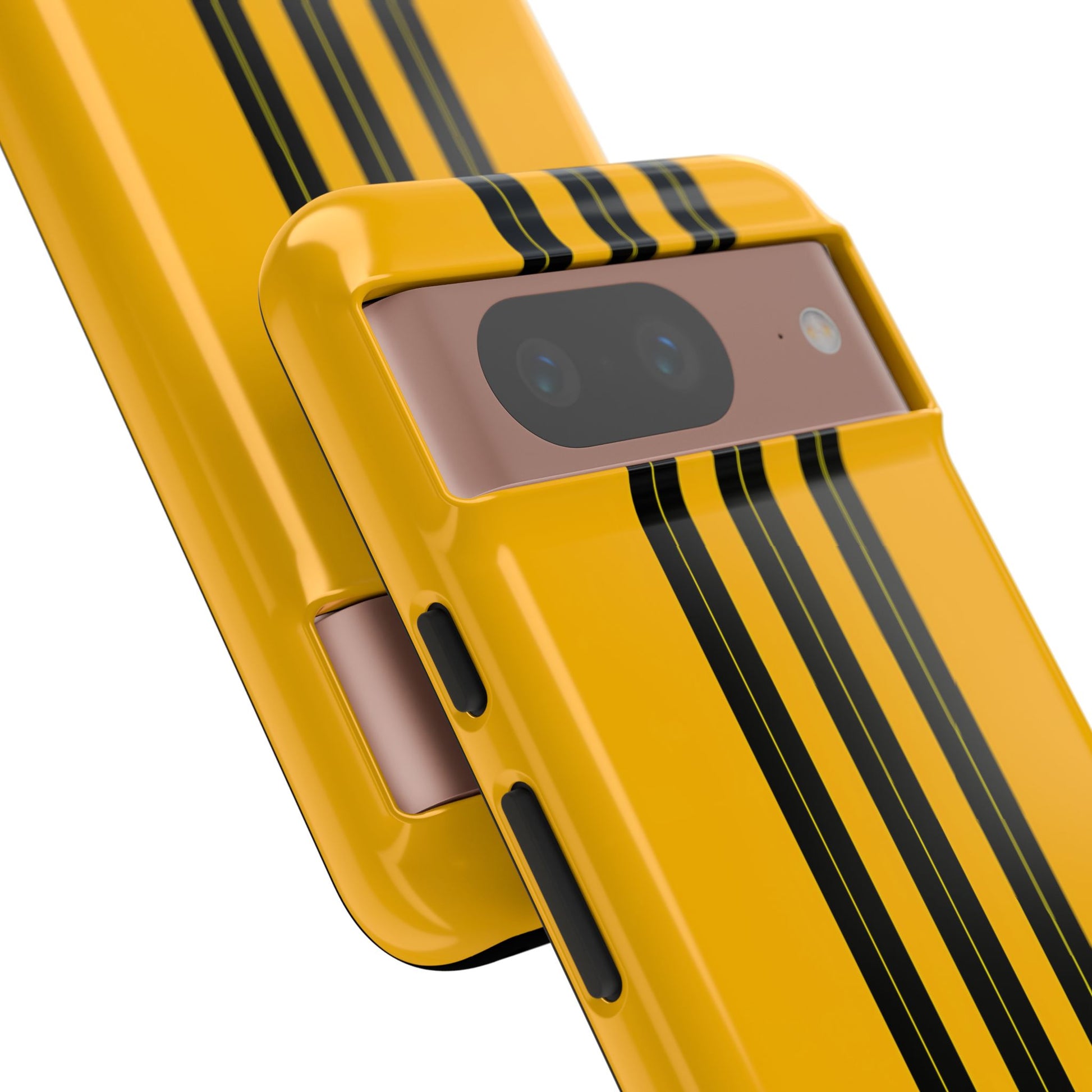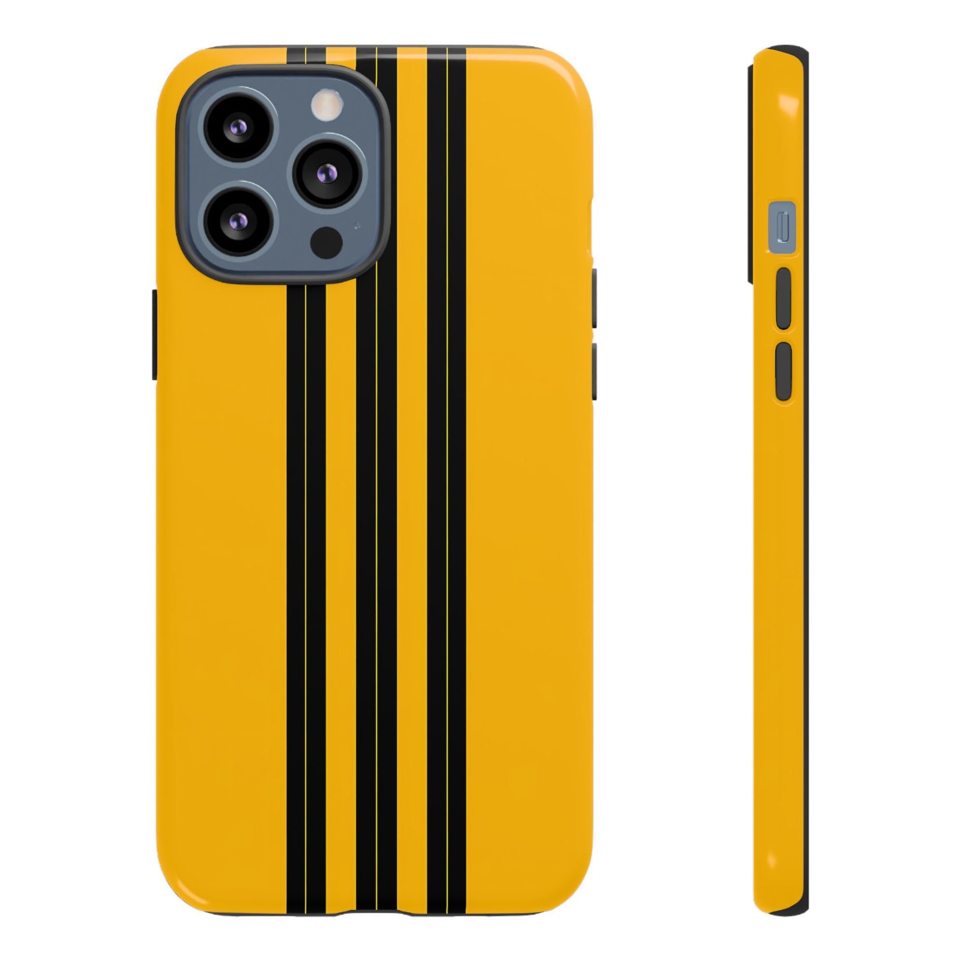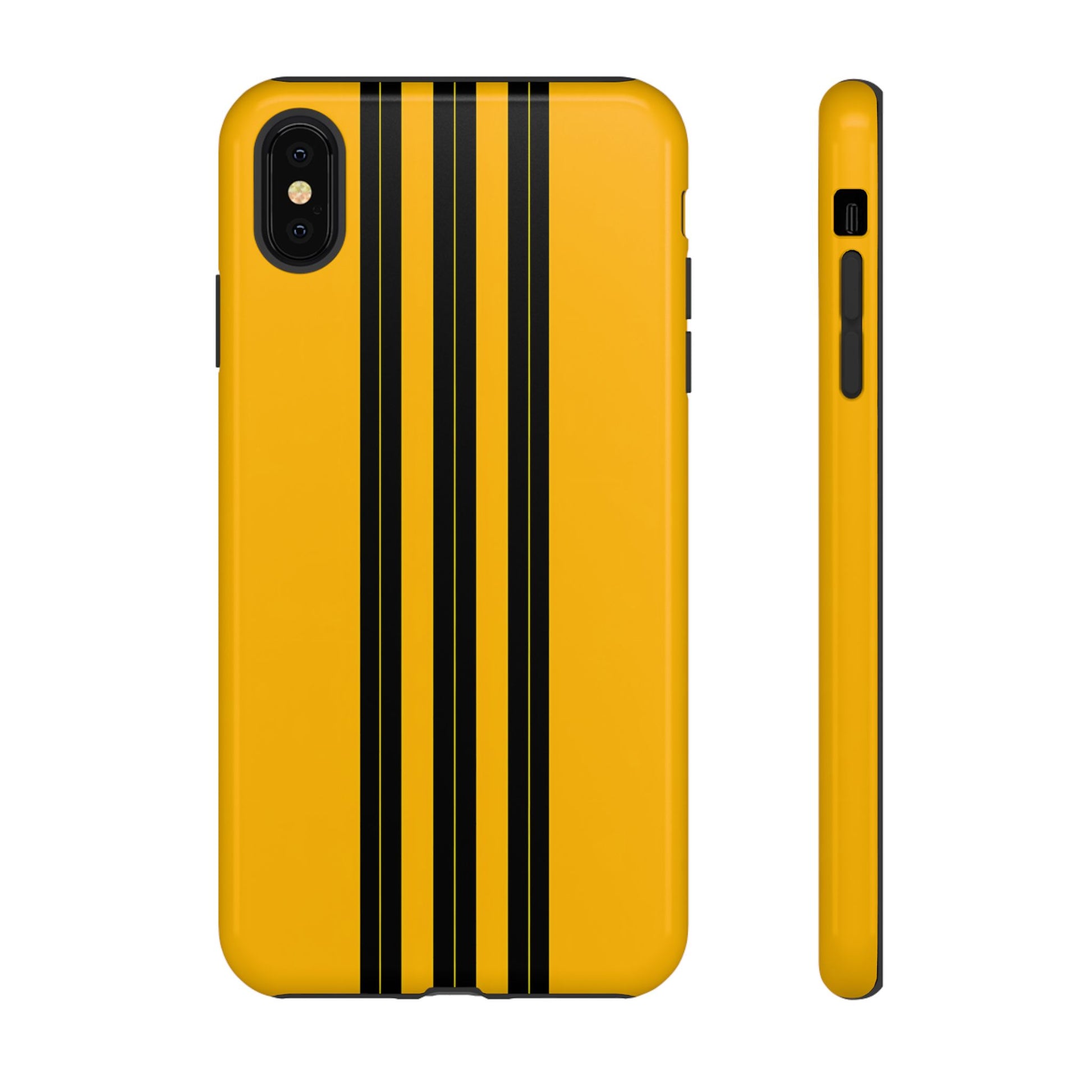 A minimalist, refined design featuring three crisp vertical black stripes arranged on a smooth yellow background, creating a clean, modern, high-contrast aesthetic.