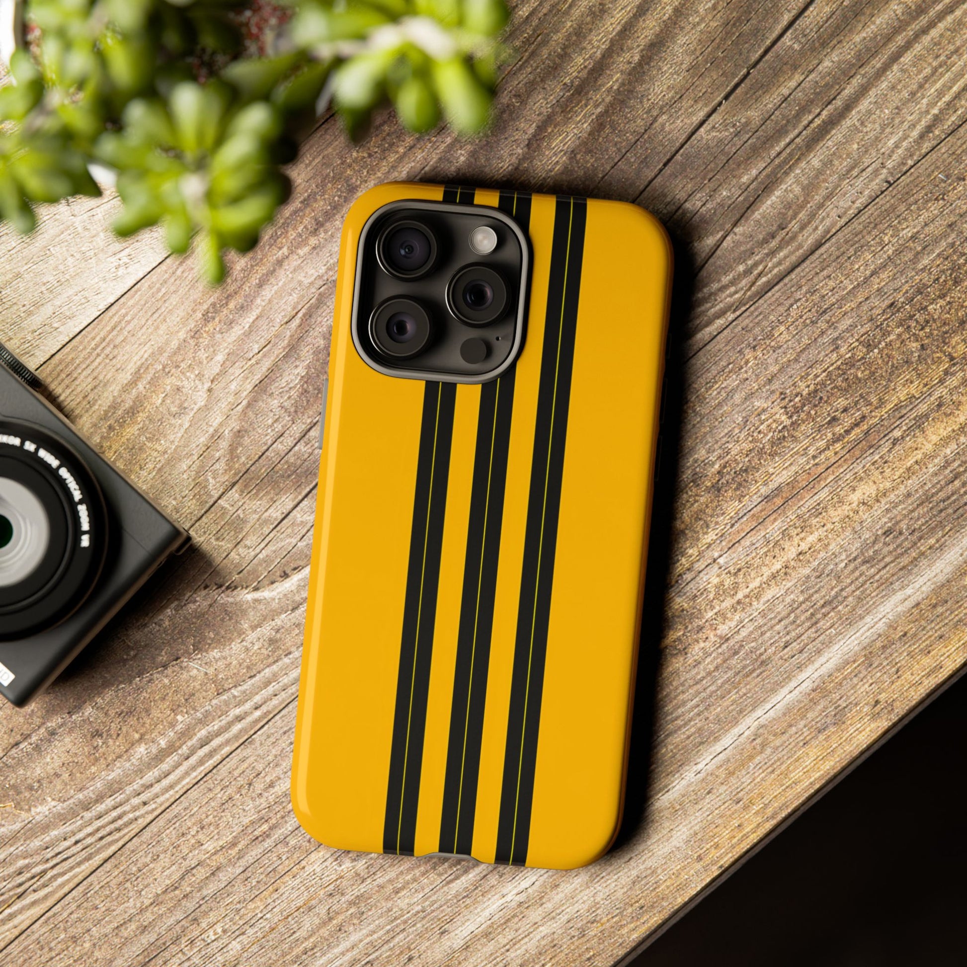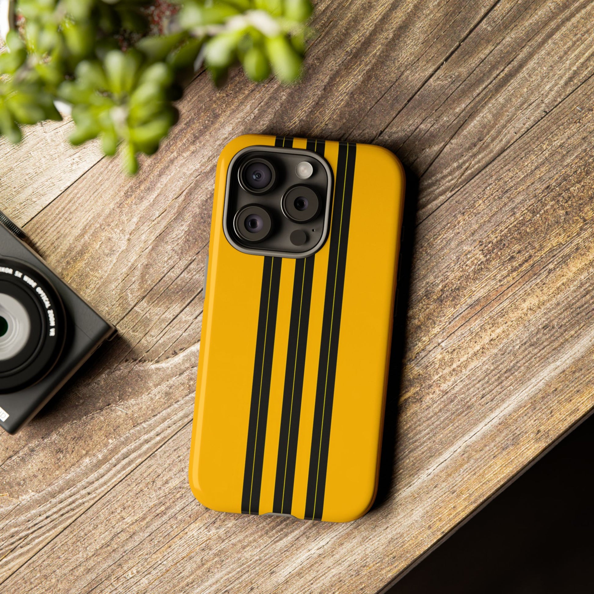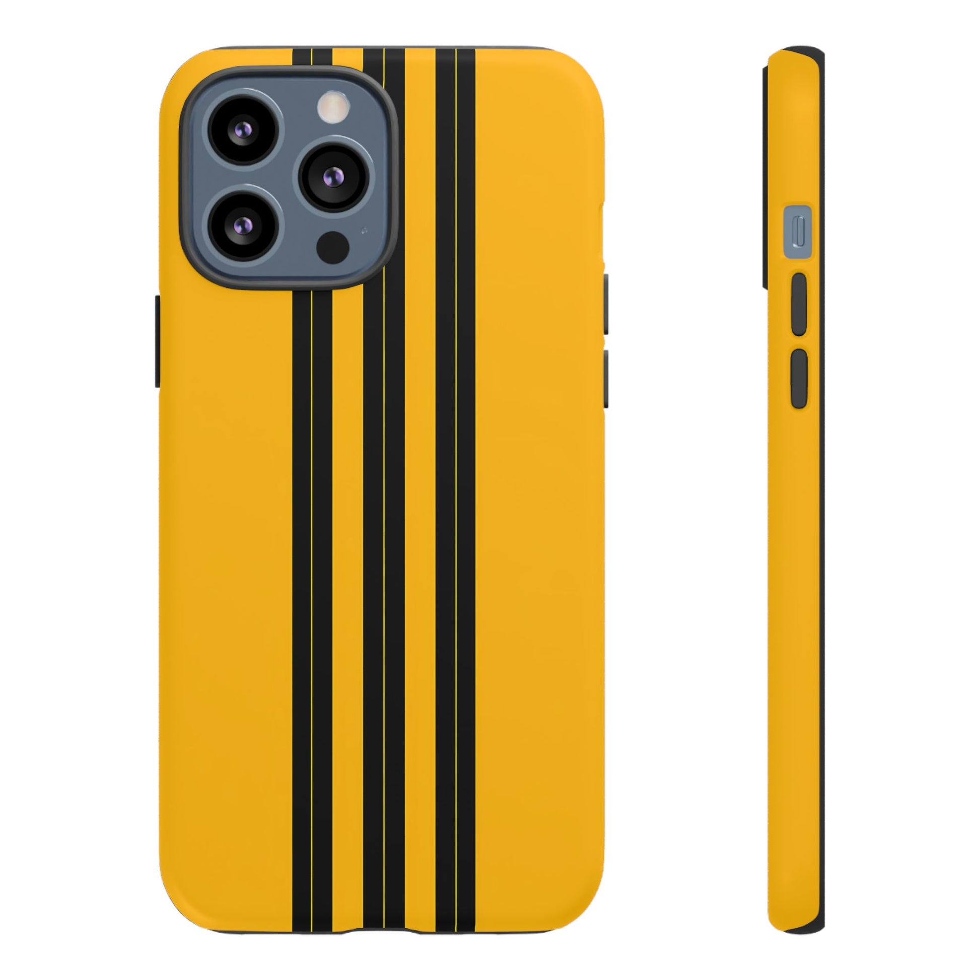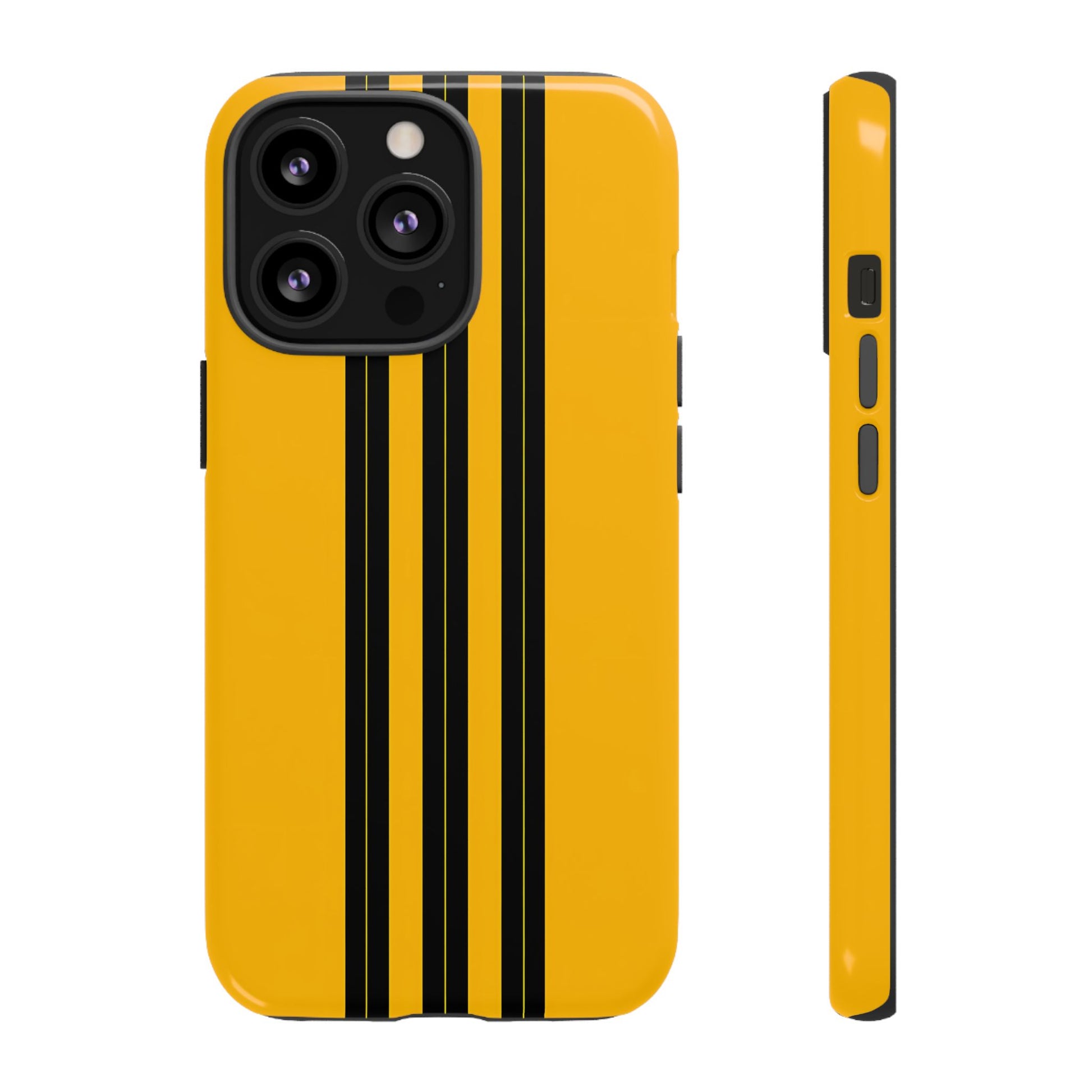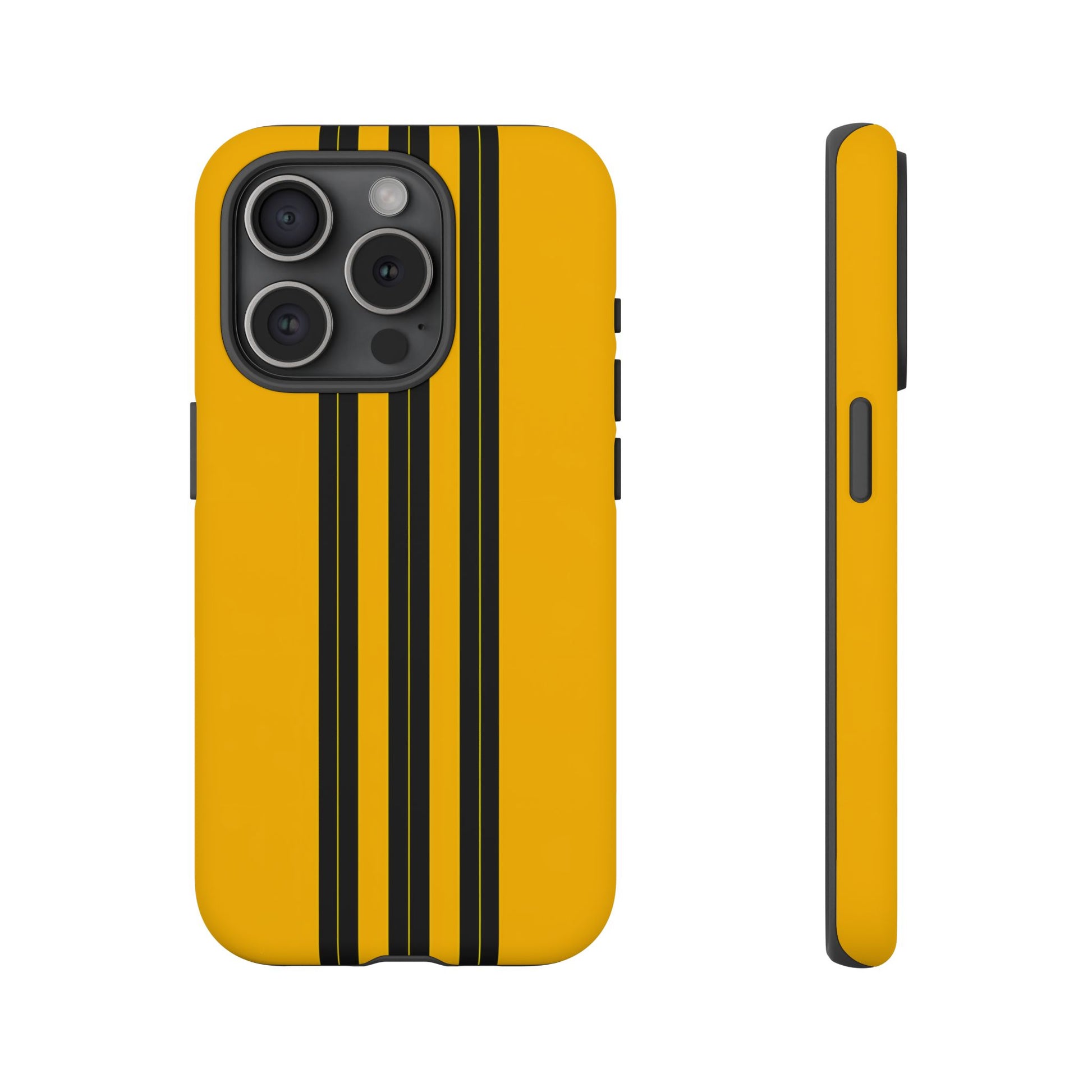 A minimalist, refined design featuring three crisp vertical black stripes arranged on a smooth yellow background, creating a clean, modern, high-contrast aesthetic.