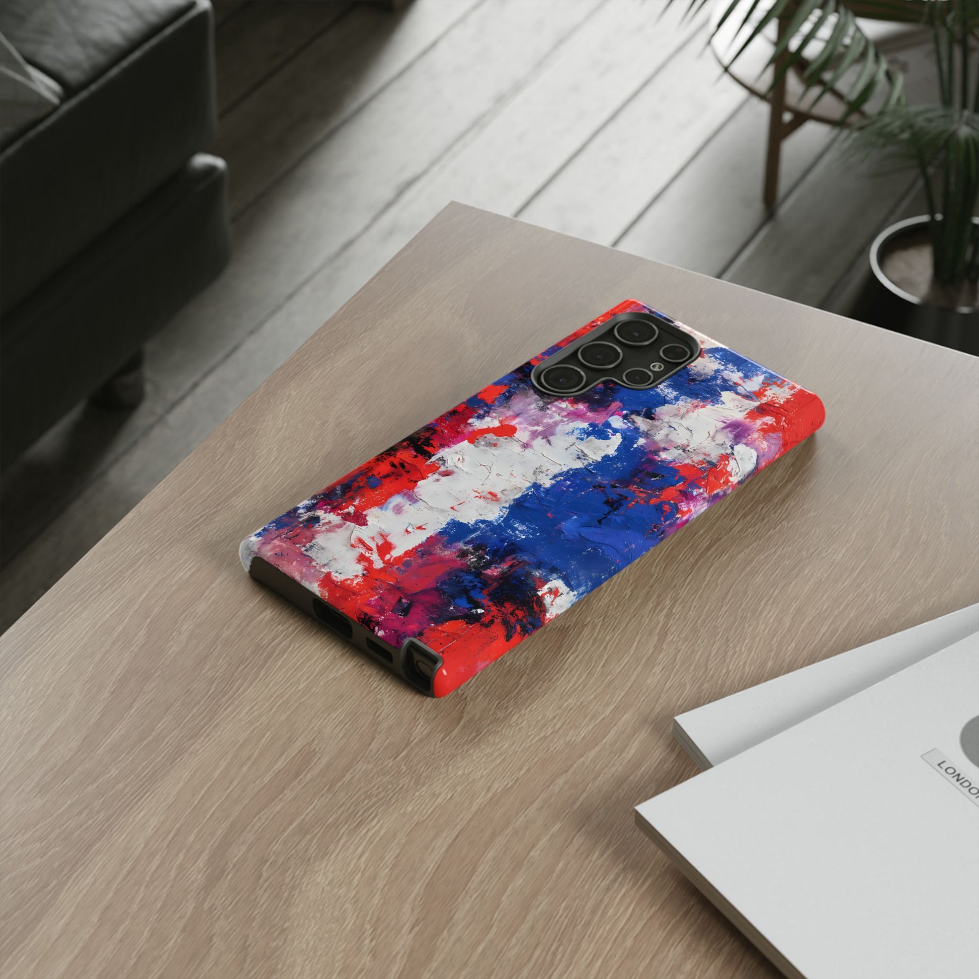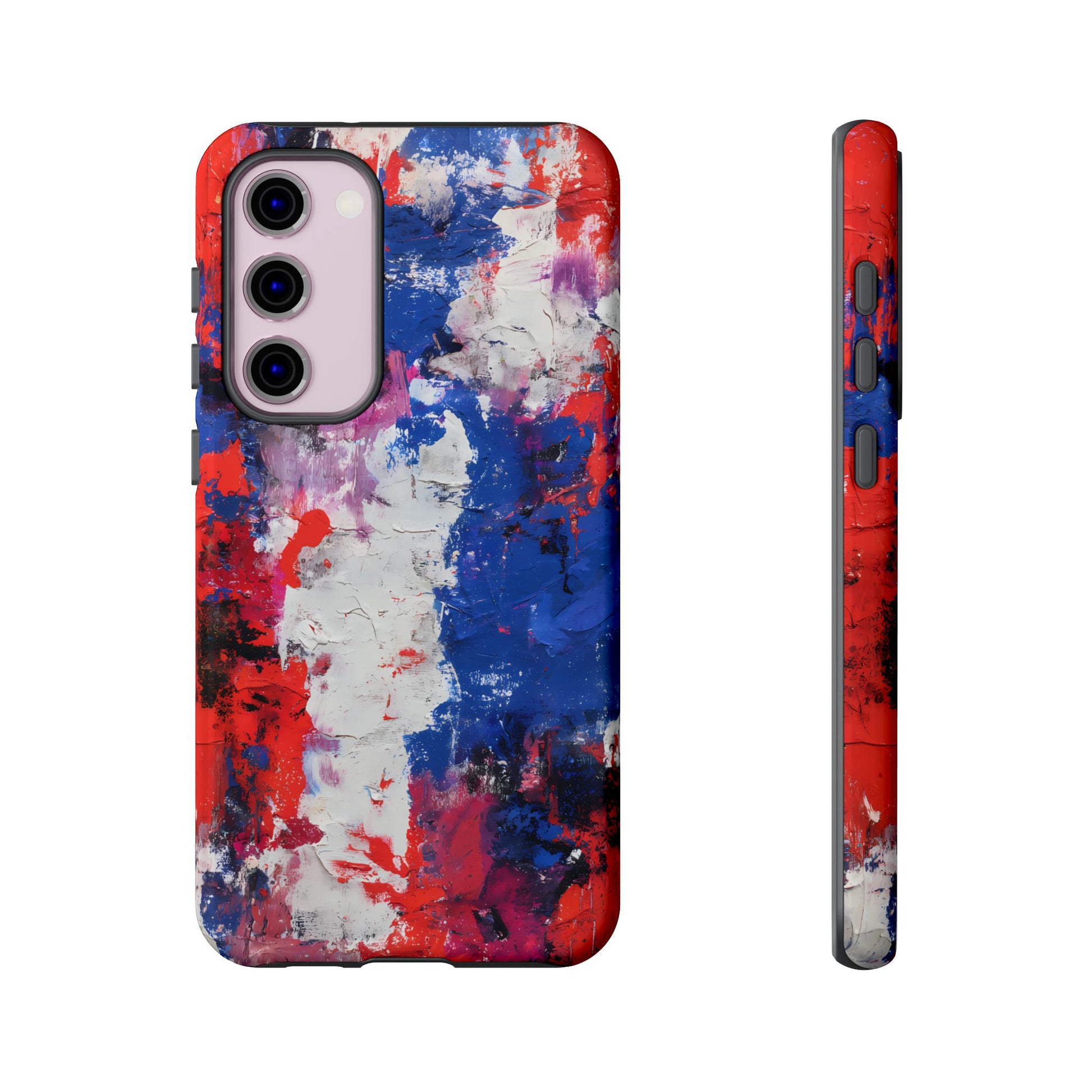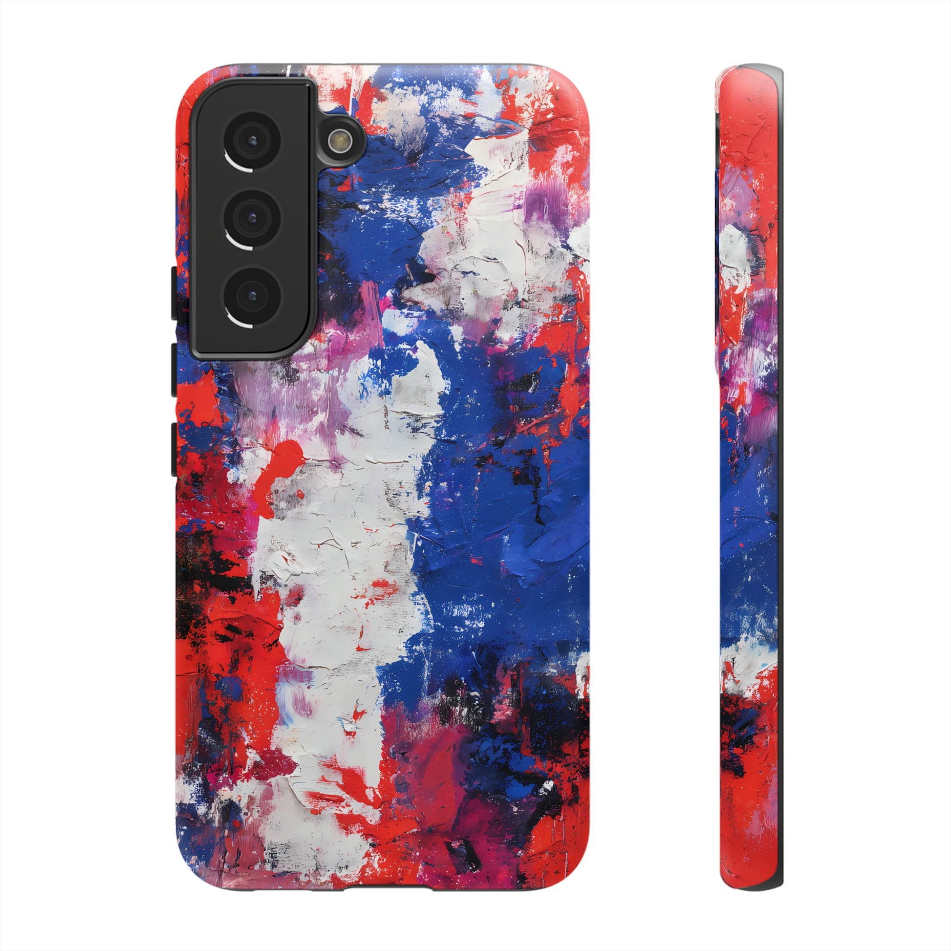 This abstract expressionist piece captures the rhythm of bold color and layered texture. Deep cobalt blues blend with passionate reds and bright whites, creating a dramatic, gallery-inspired modern design.