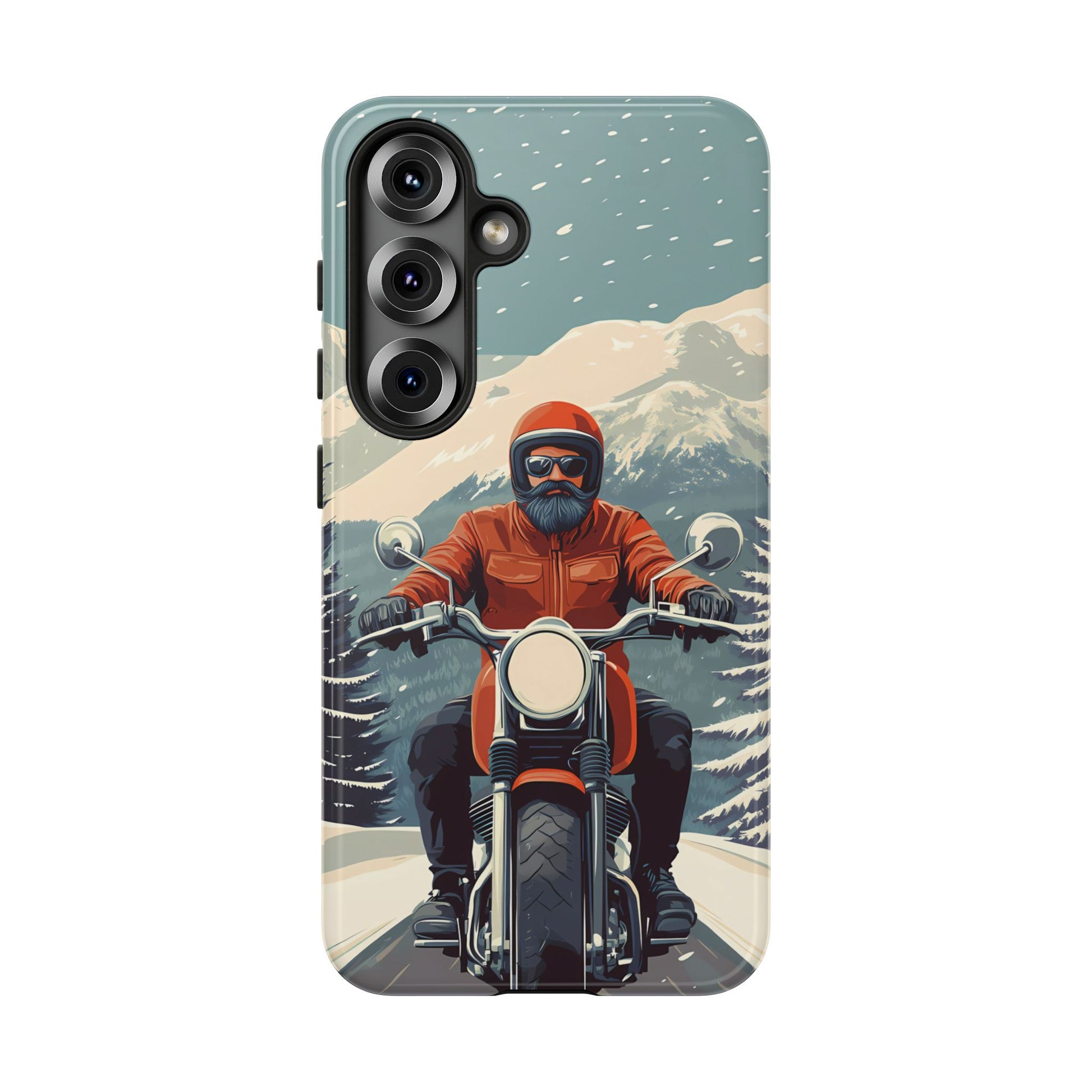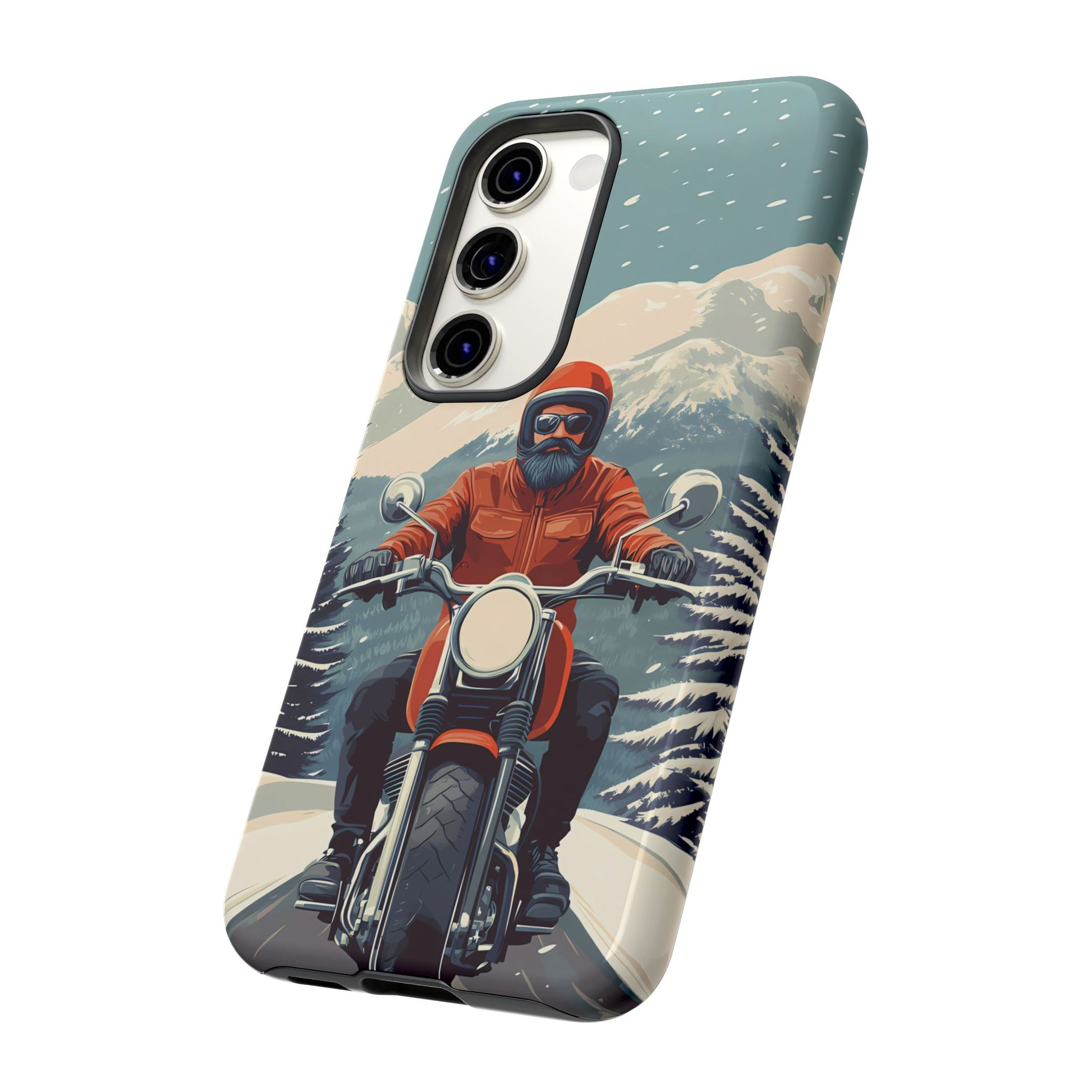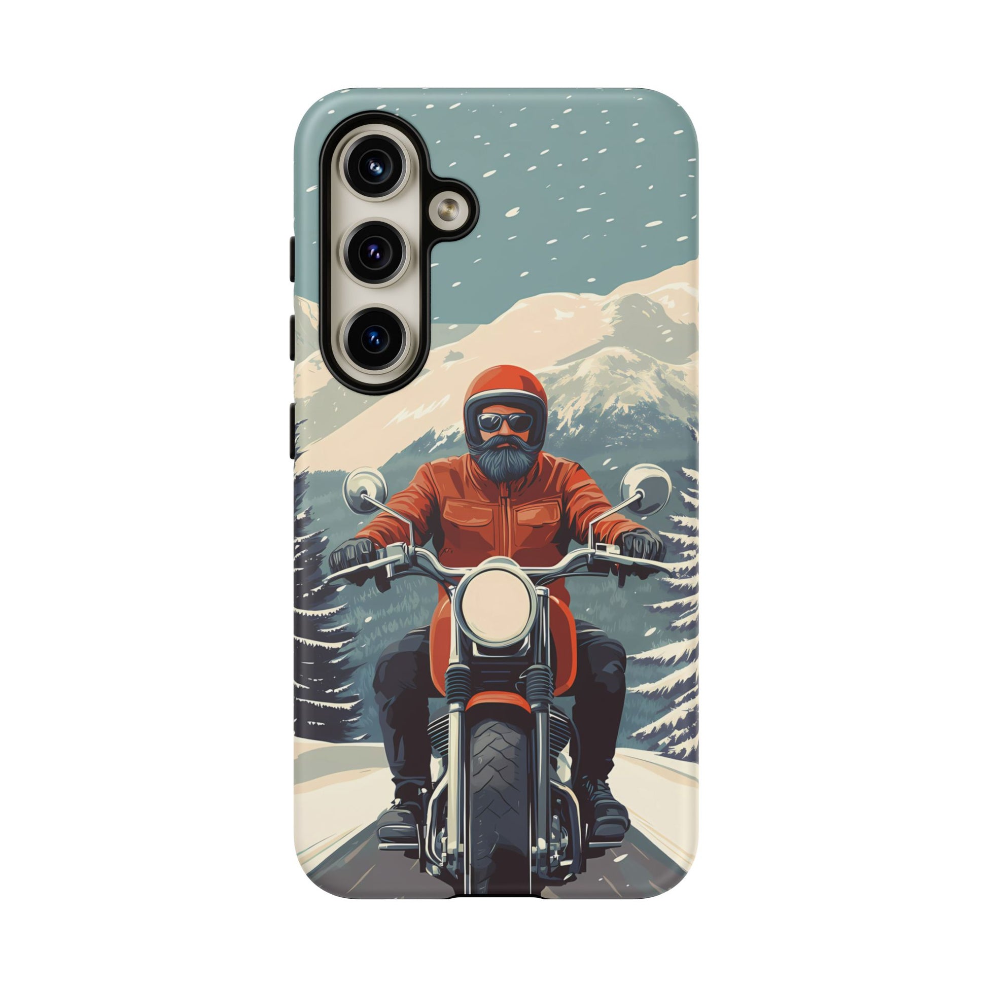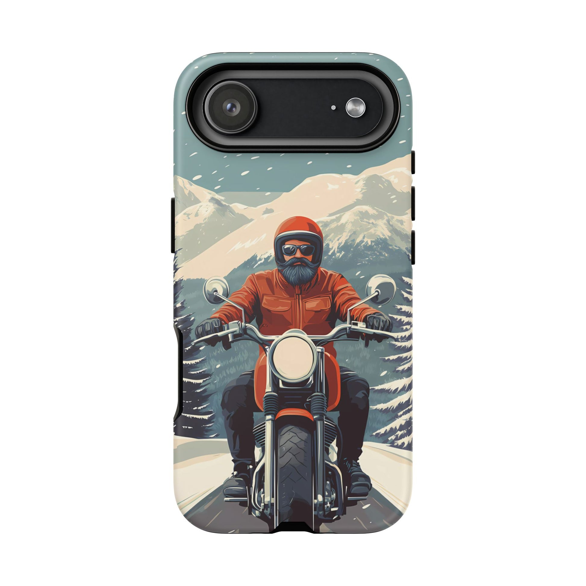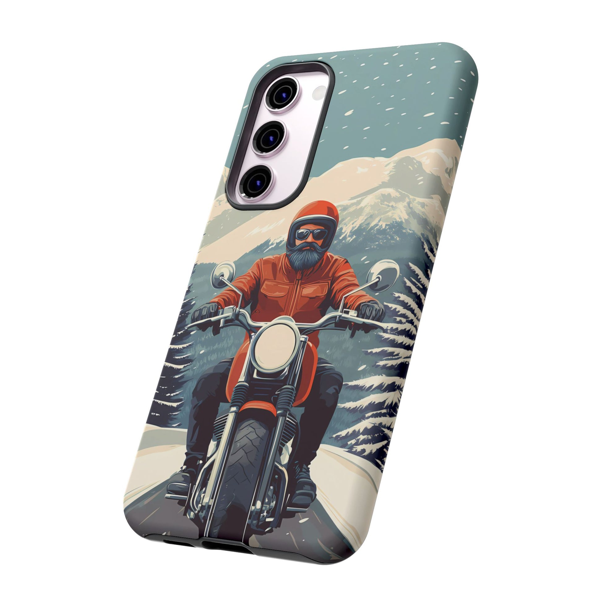 A tribute to the independent spirit of motorcycle riders, this design showcases a mature lone rider on an epic journey. With gritty textures and a timeless biker aesthetic, this phone case is made for those who embrace the ride as a way of life