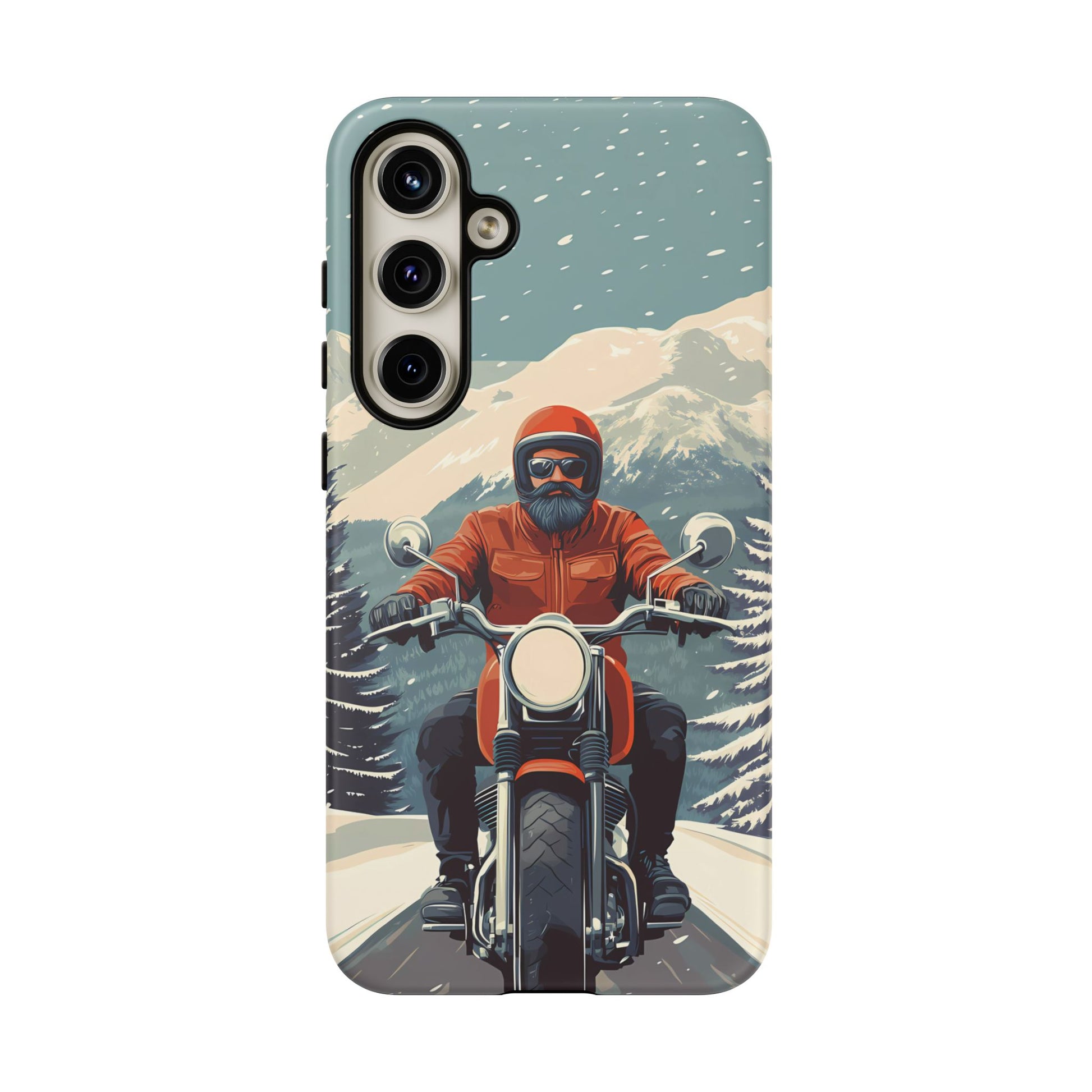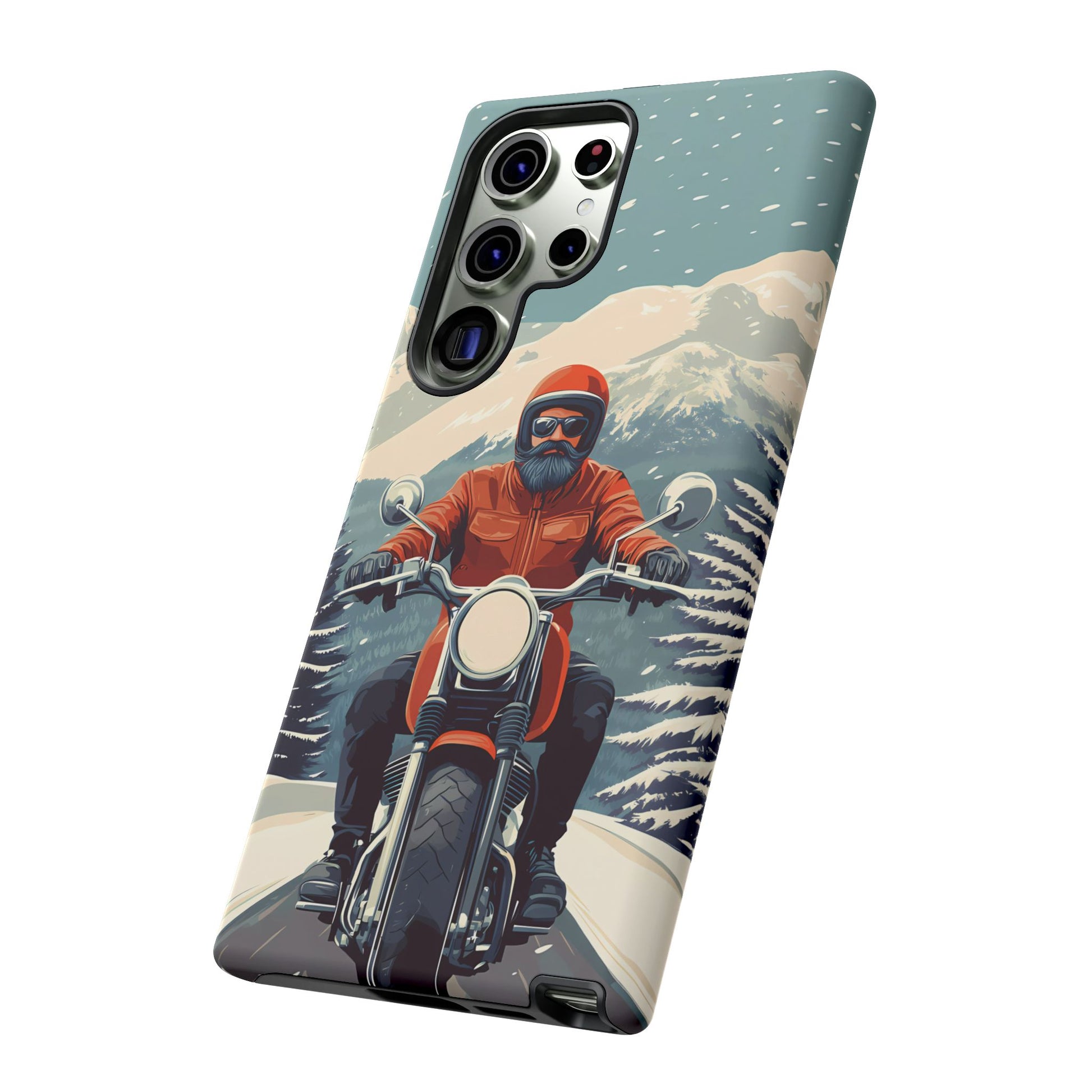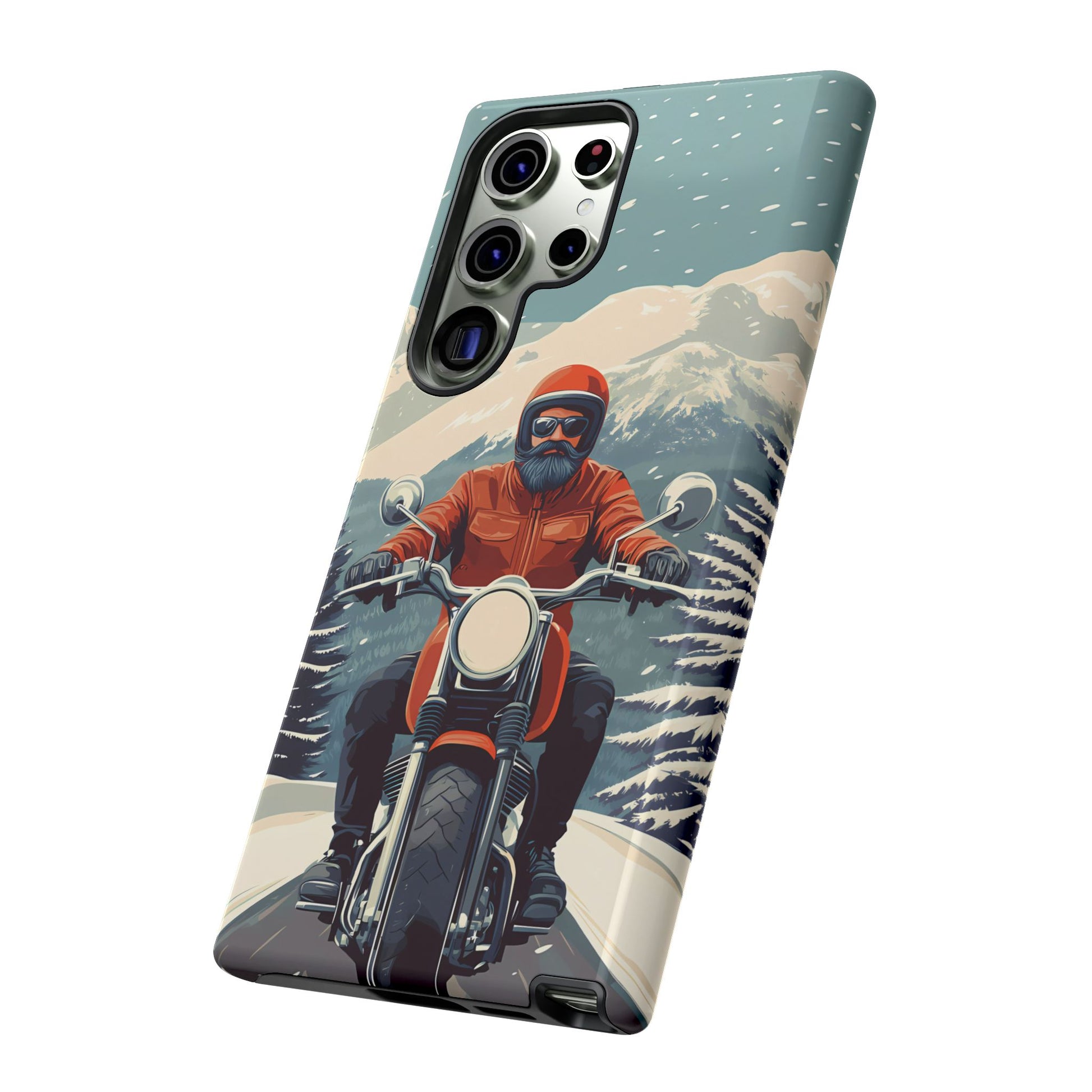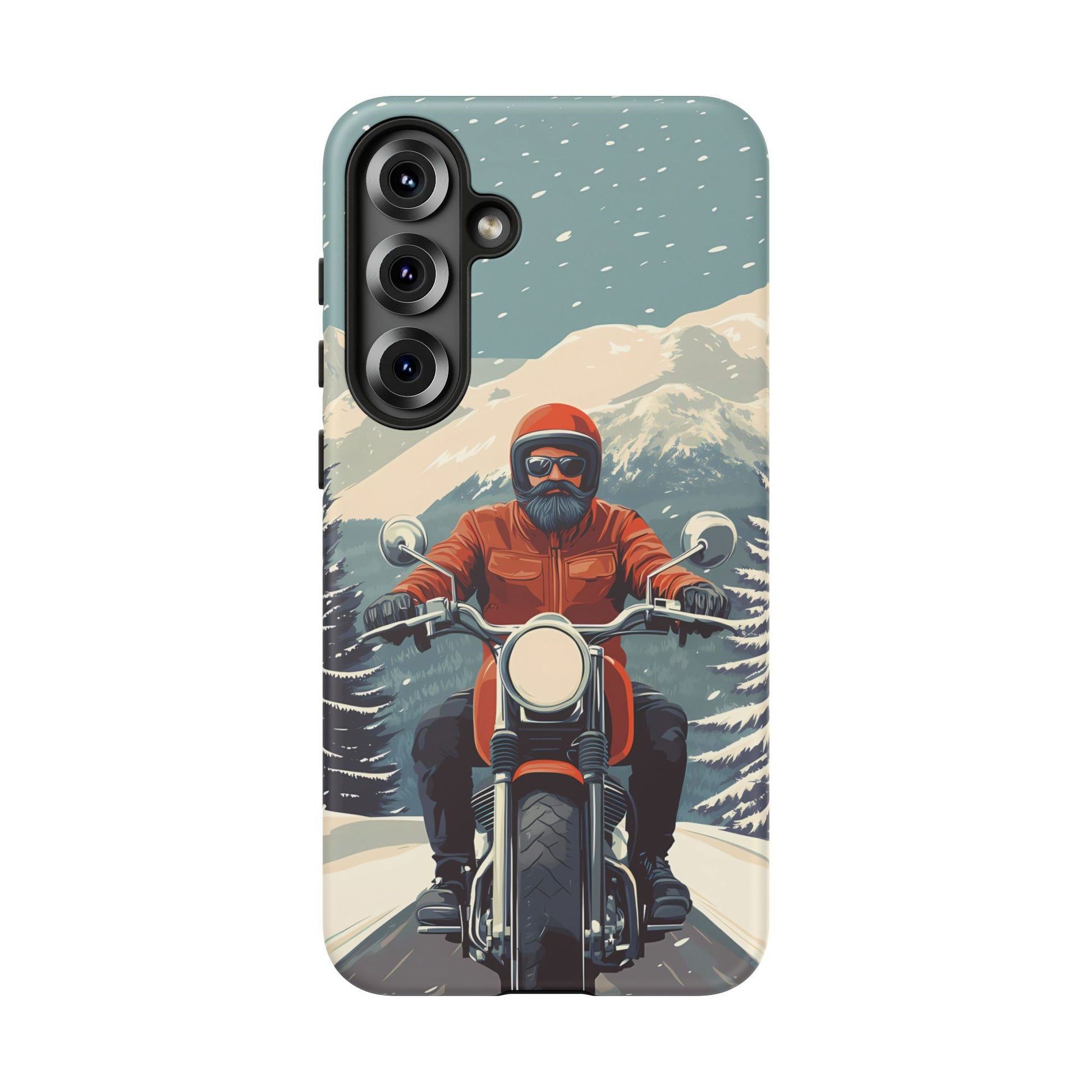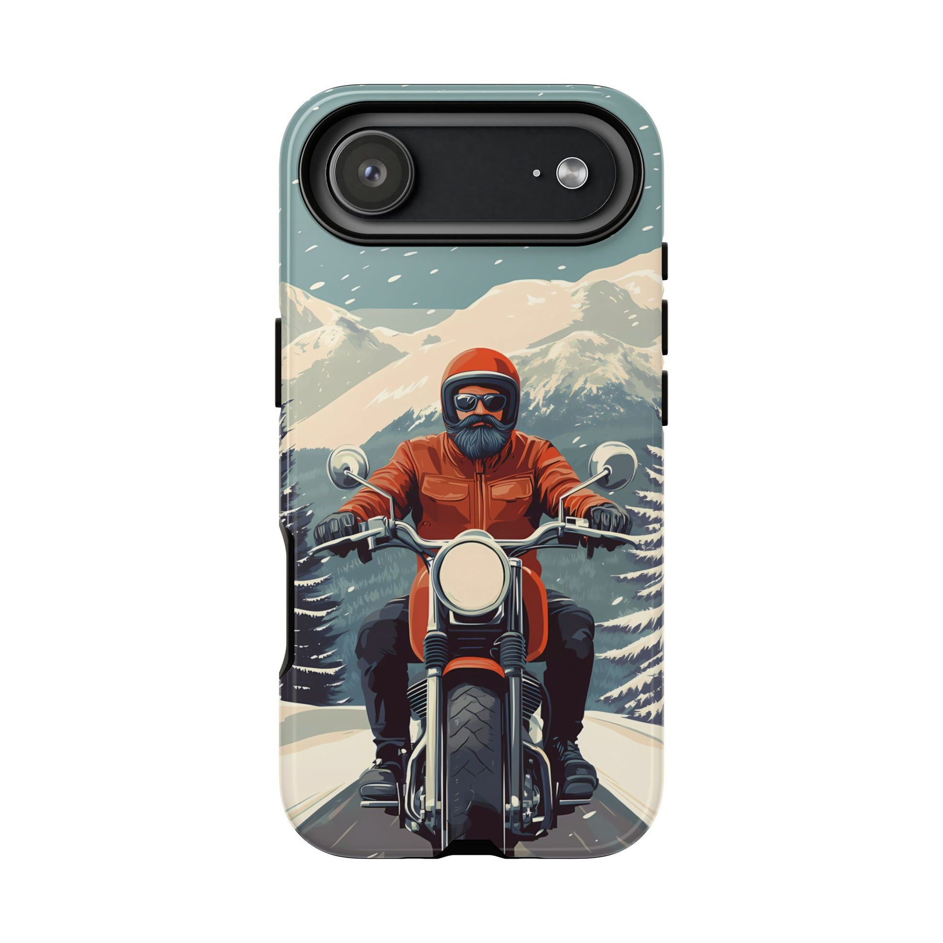 A tribute to the independent spirit of motorcycle riders, this design showcases a mature lone rider on an epic journey. With gritty textures and a timeless biker aesthetic, this phone case is made for those who embrace the ride as a way of life