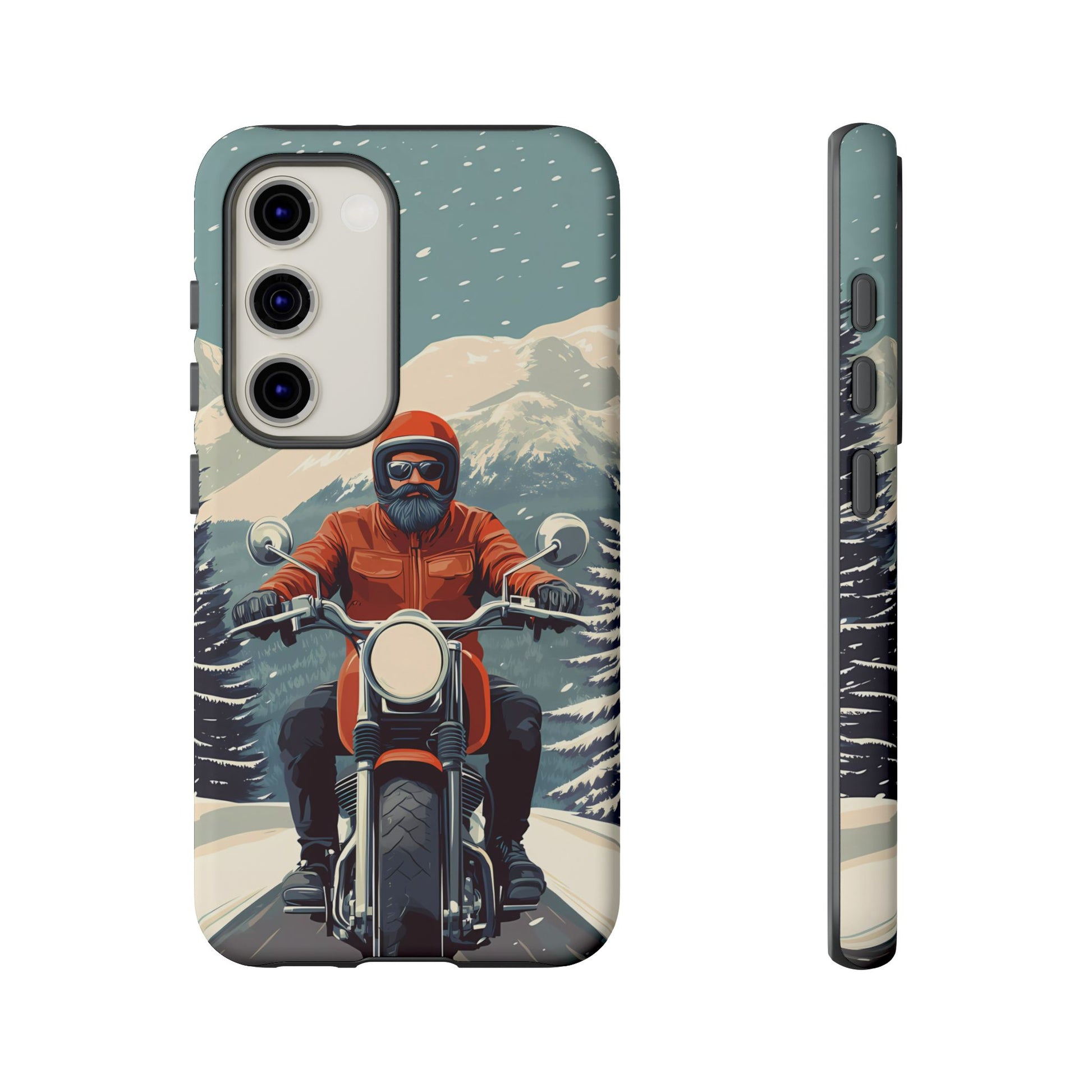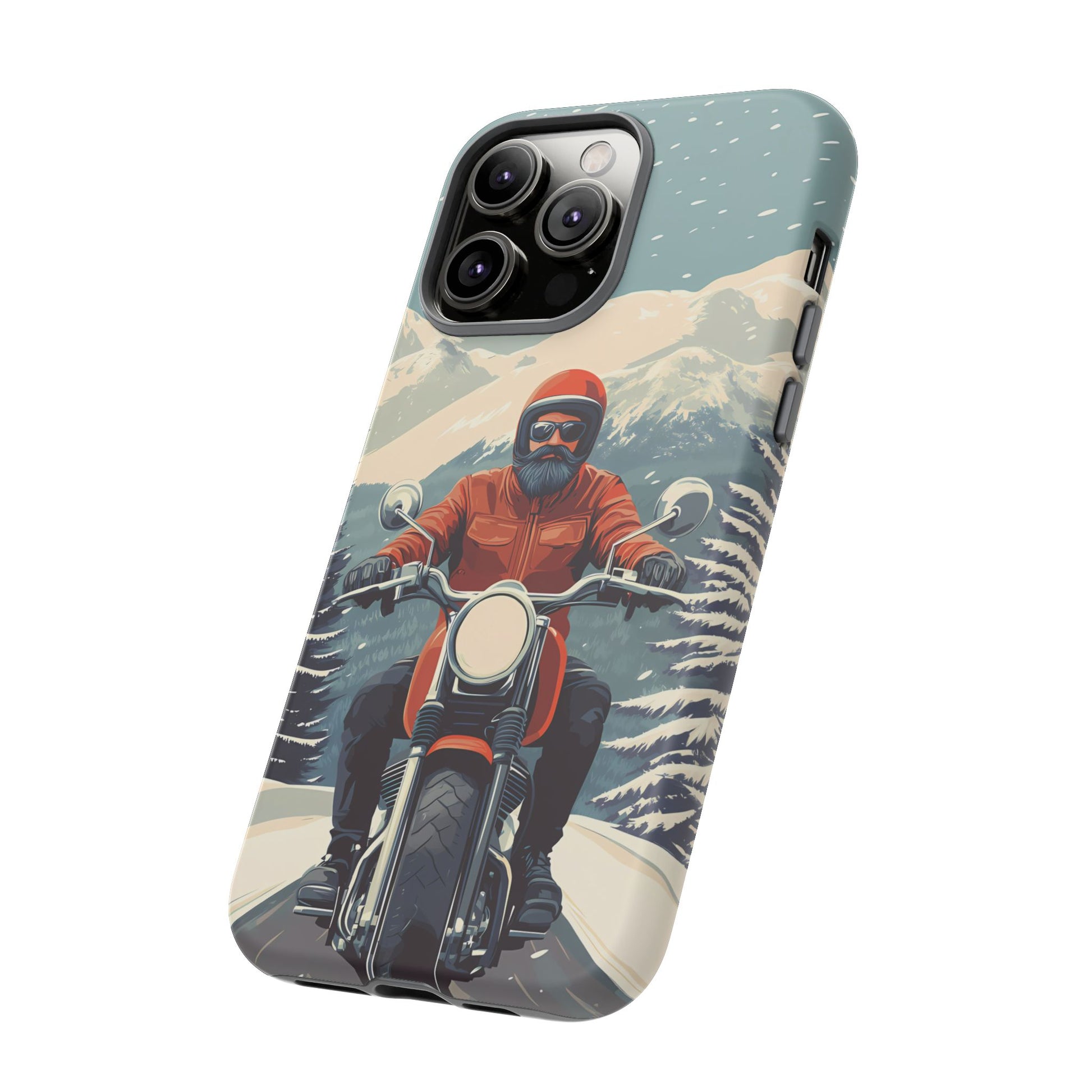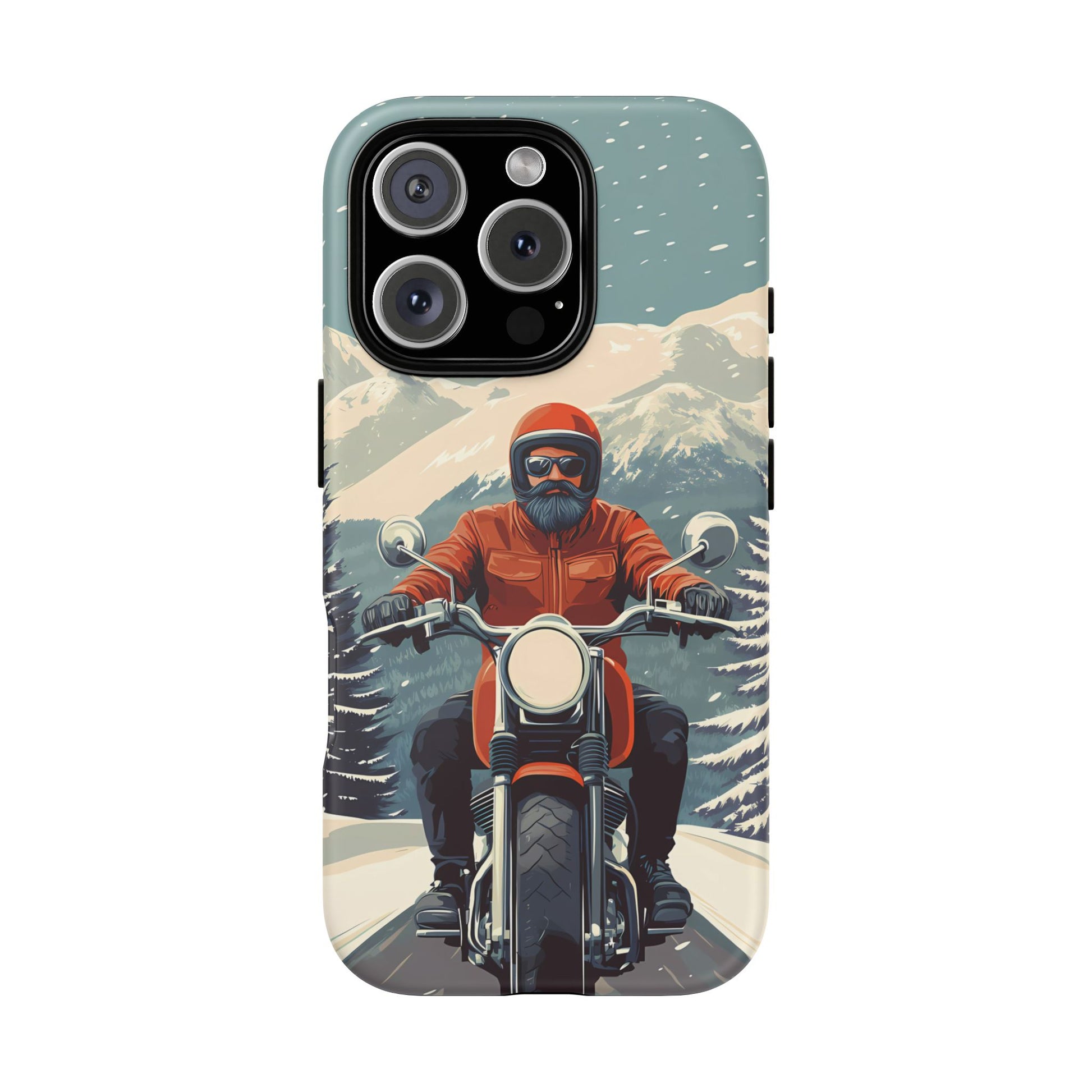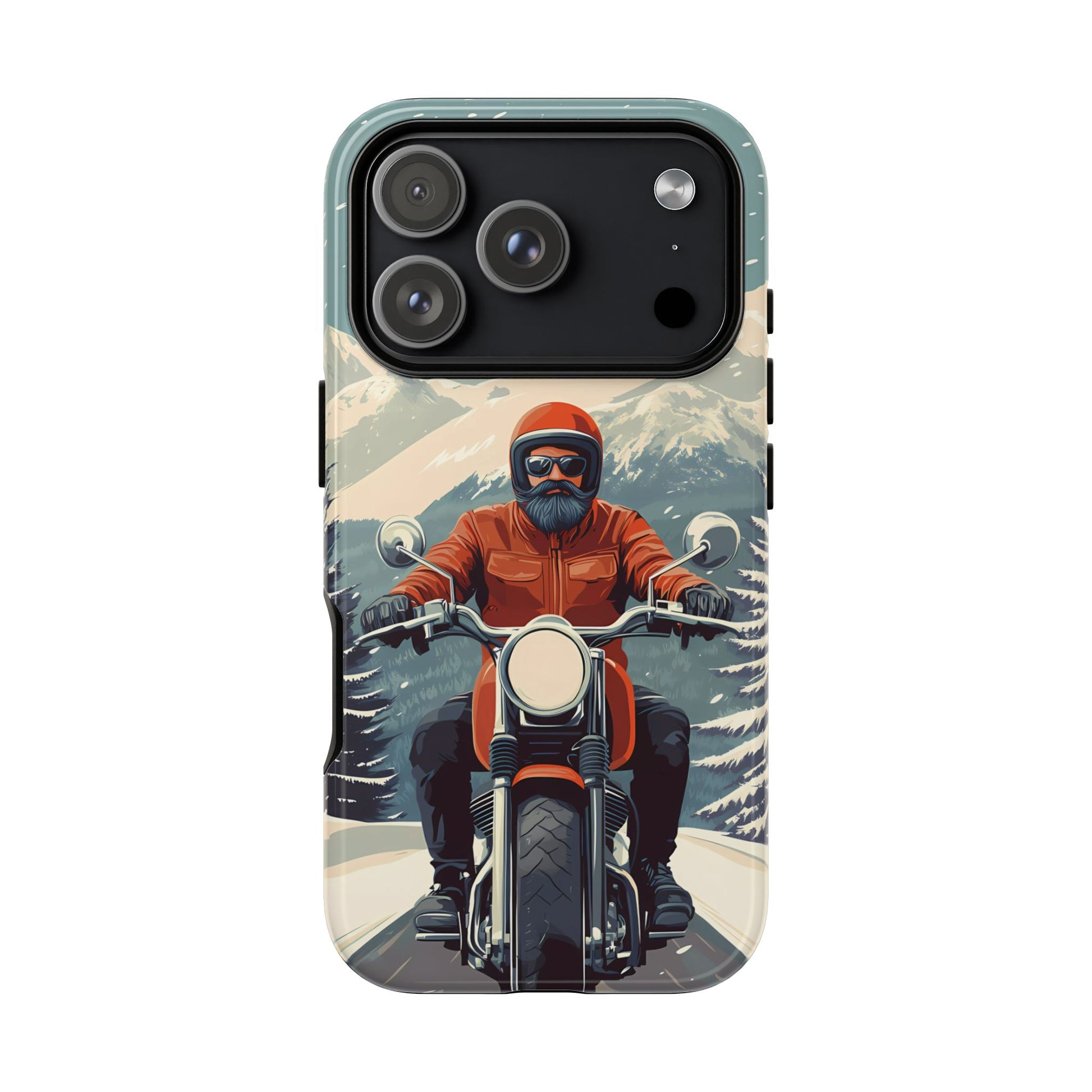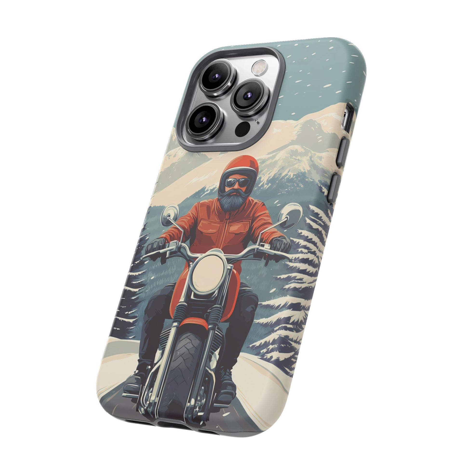 A tribute to the independent spirit of motorcycle riders, this design showcases a mature lone rider on an epic journey. With gritty textures and a timeless biker aesthetic, this phone case is made for those who embrace the ride as a way of life