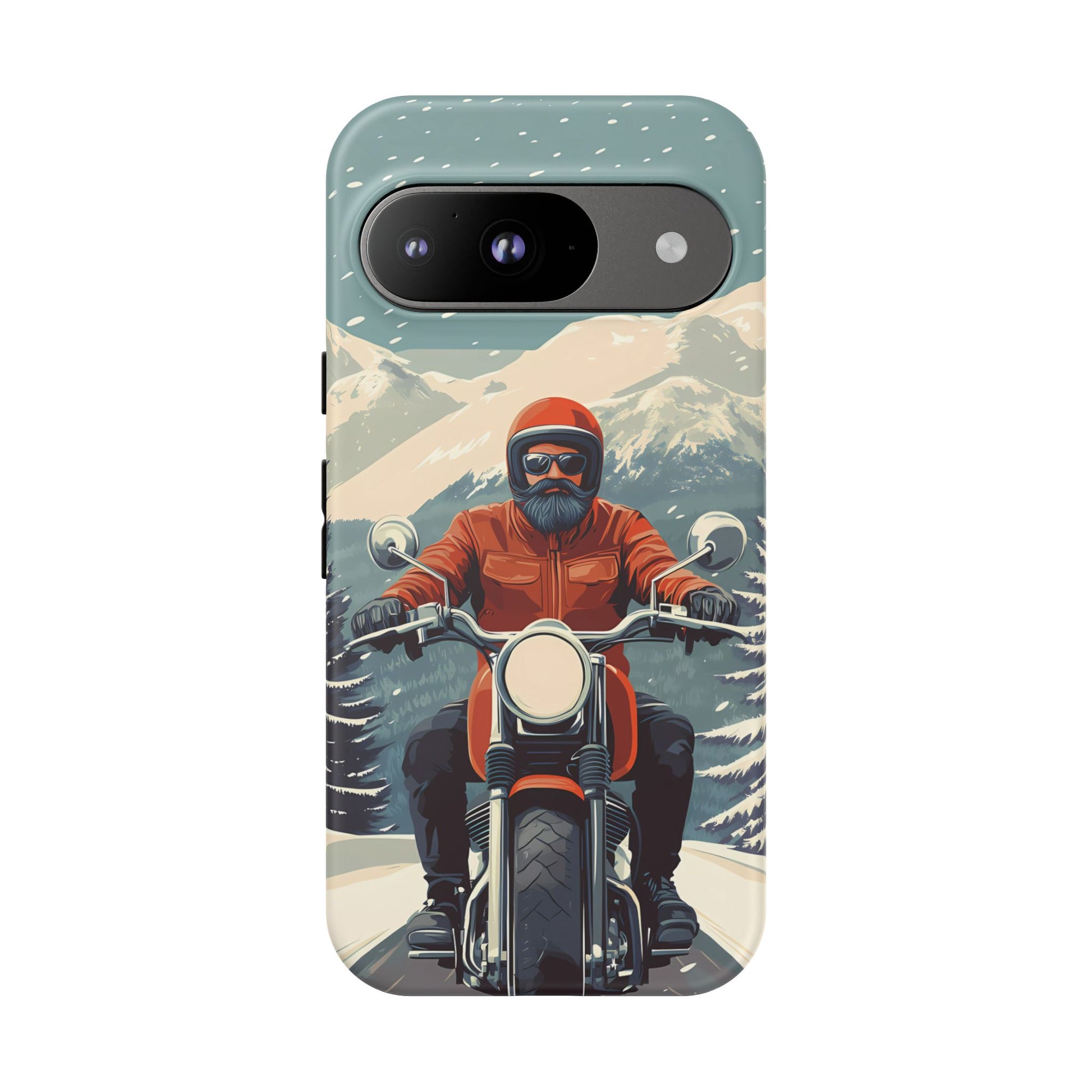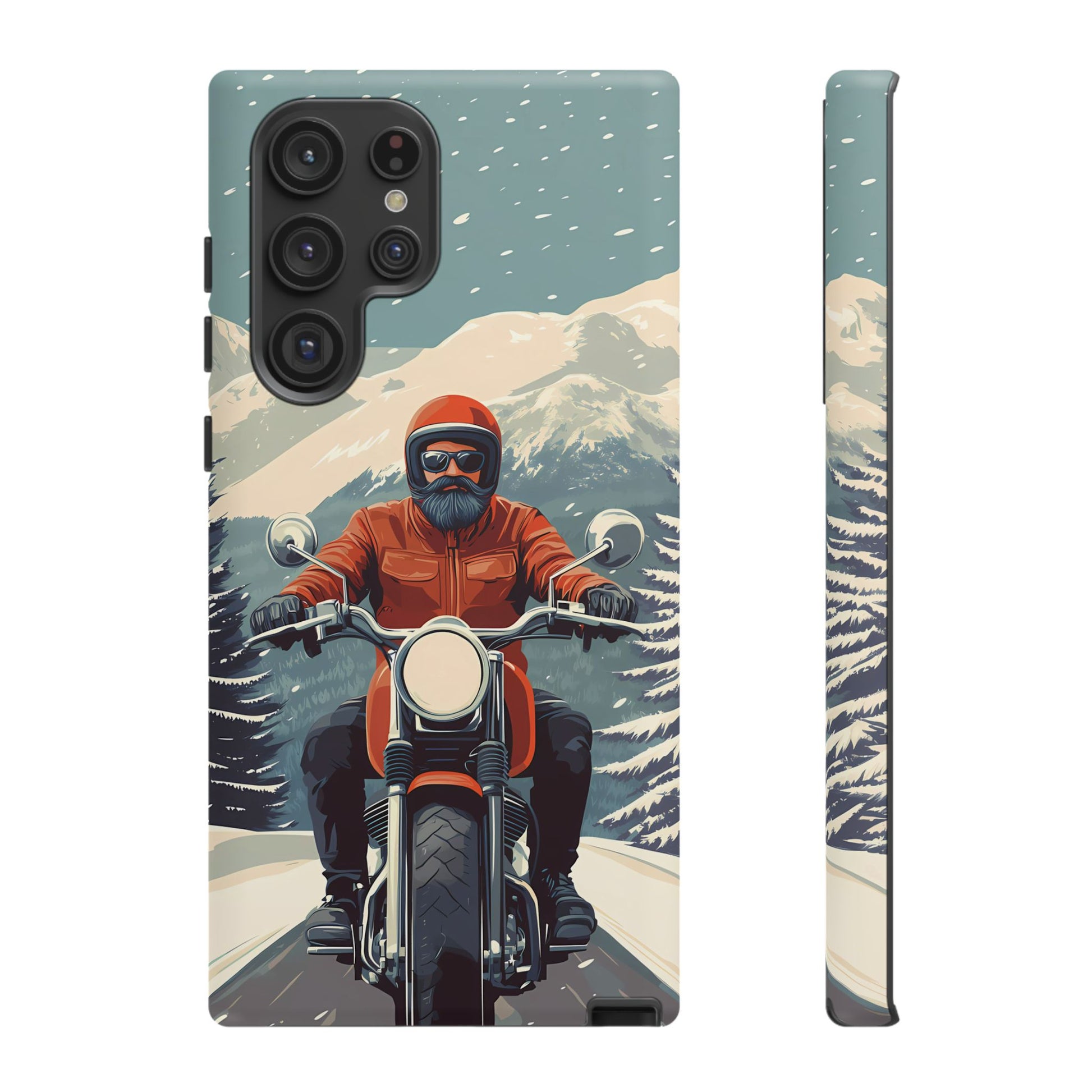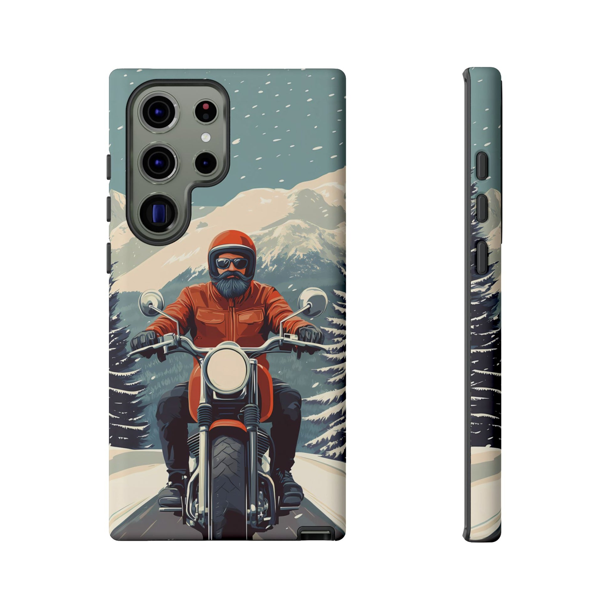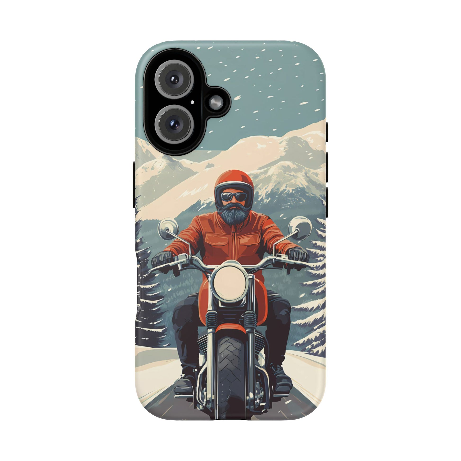 A tribute to the independent spirit of motorcycle riders, this design showcases a mature lone rider on an epic journey. With gritty textures and a timeless biker aesthetic, this phone case is made for those who embrace the ride as a way of life