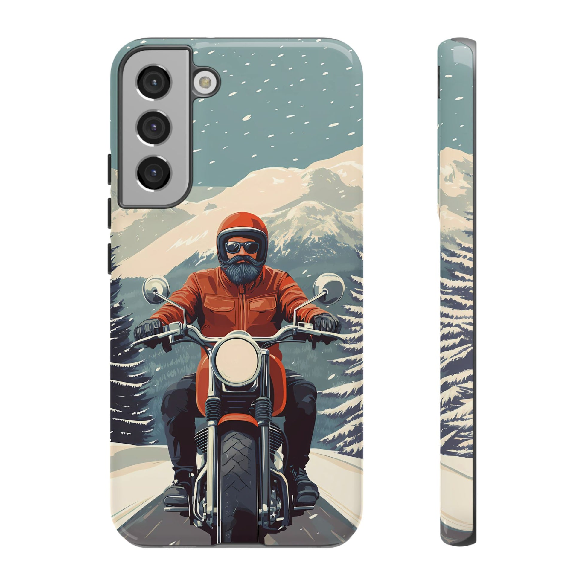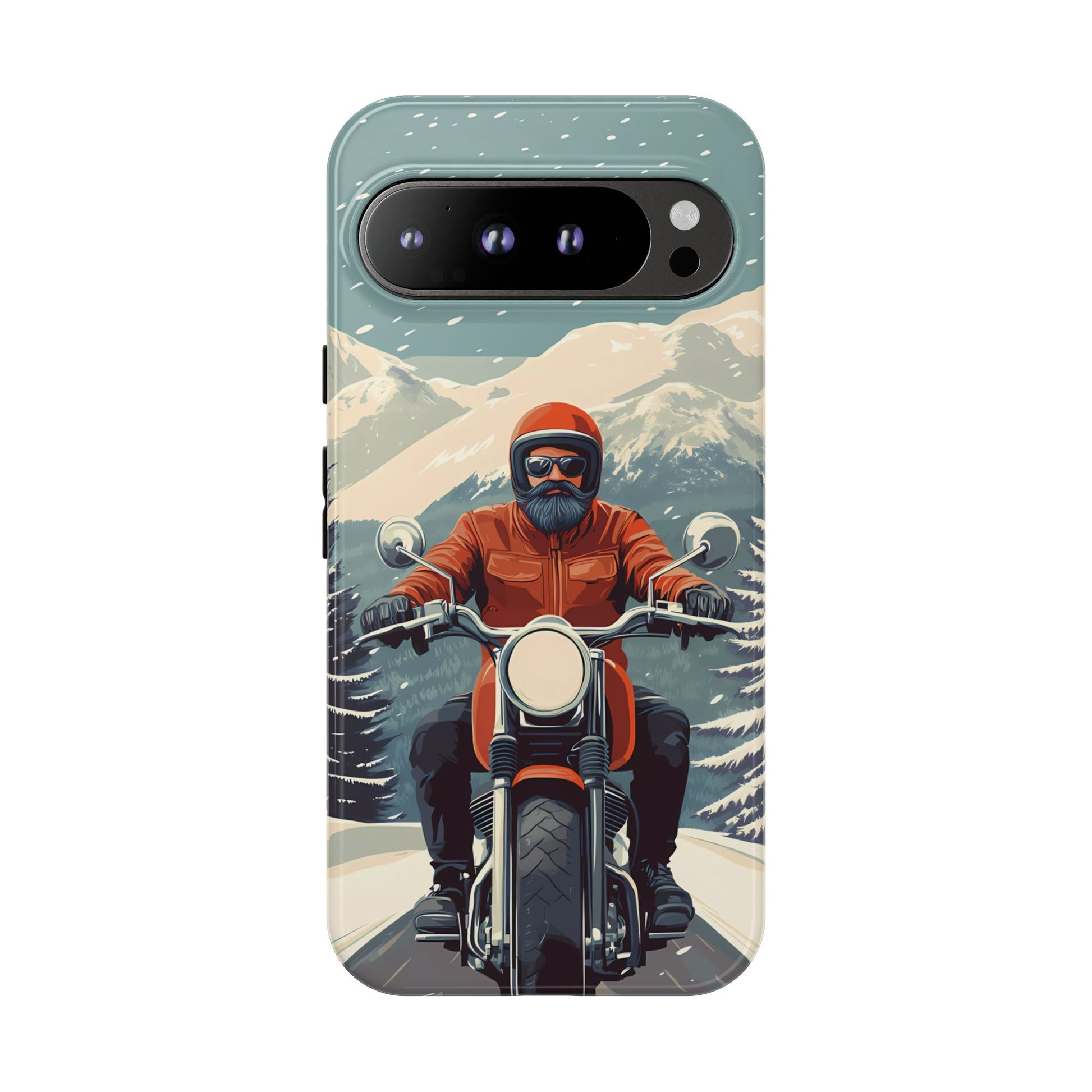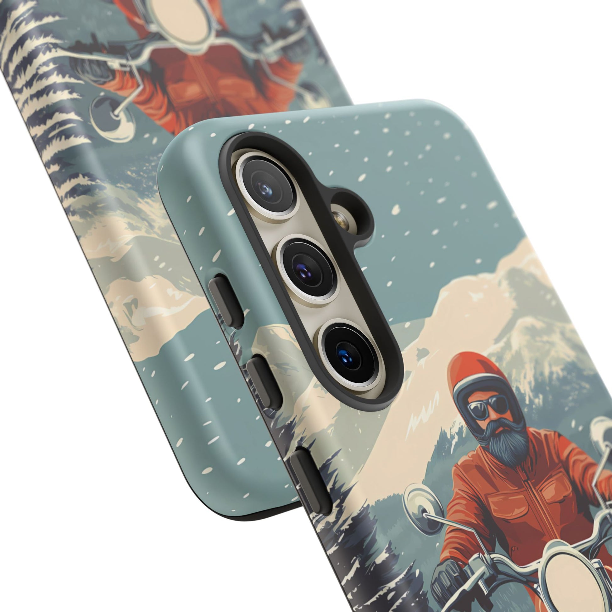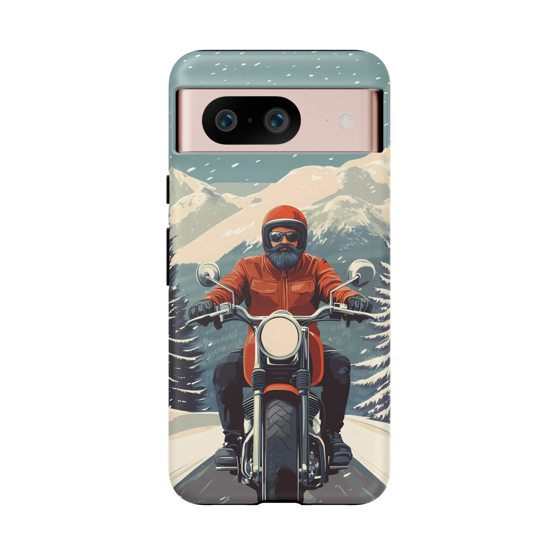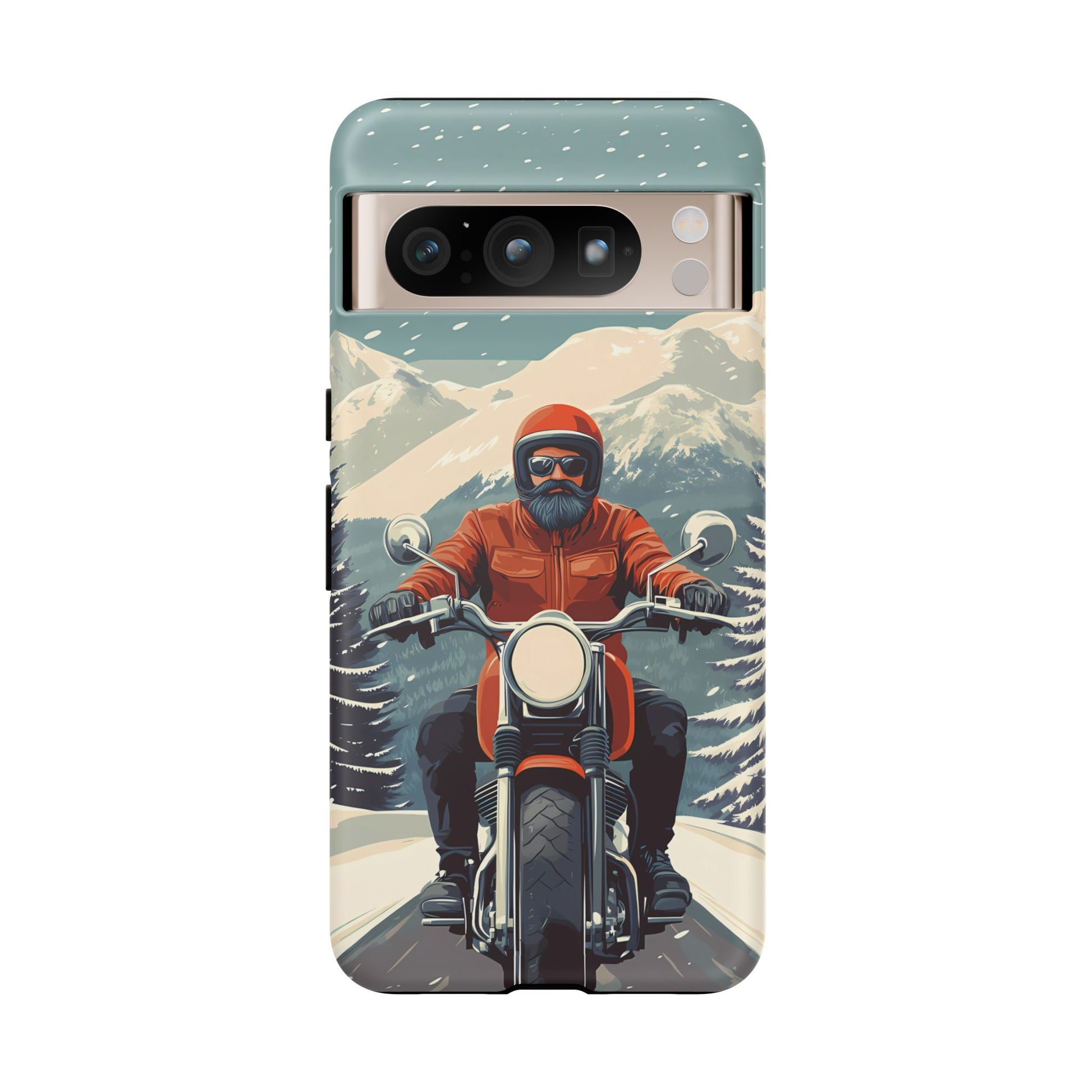 A tribute to the independent spirit of motorcycle riders, this design showcases a mature lone rider on an epic journey. With gritty textures and a timeless biker aesthetic, this phone case is made for those who embrace the ride as a way of life