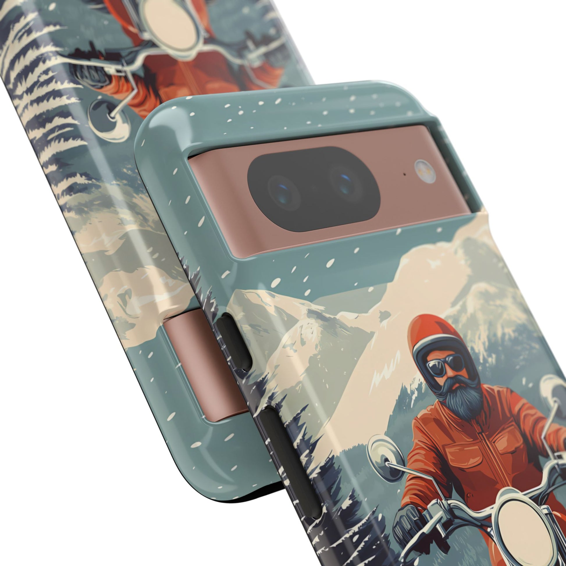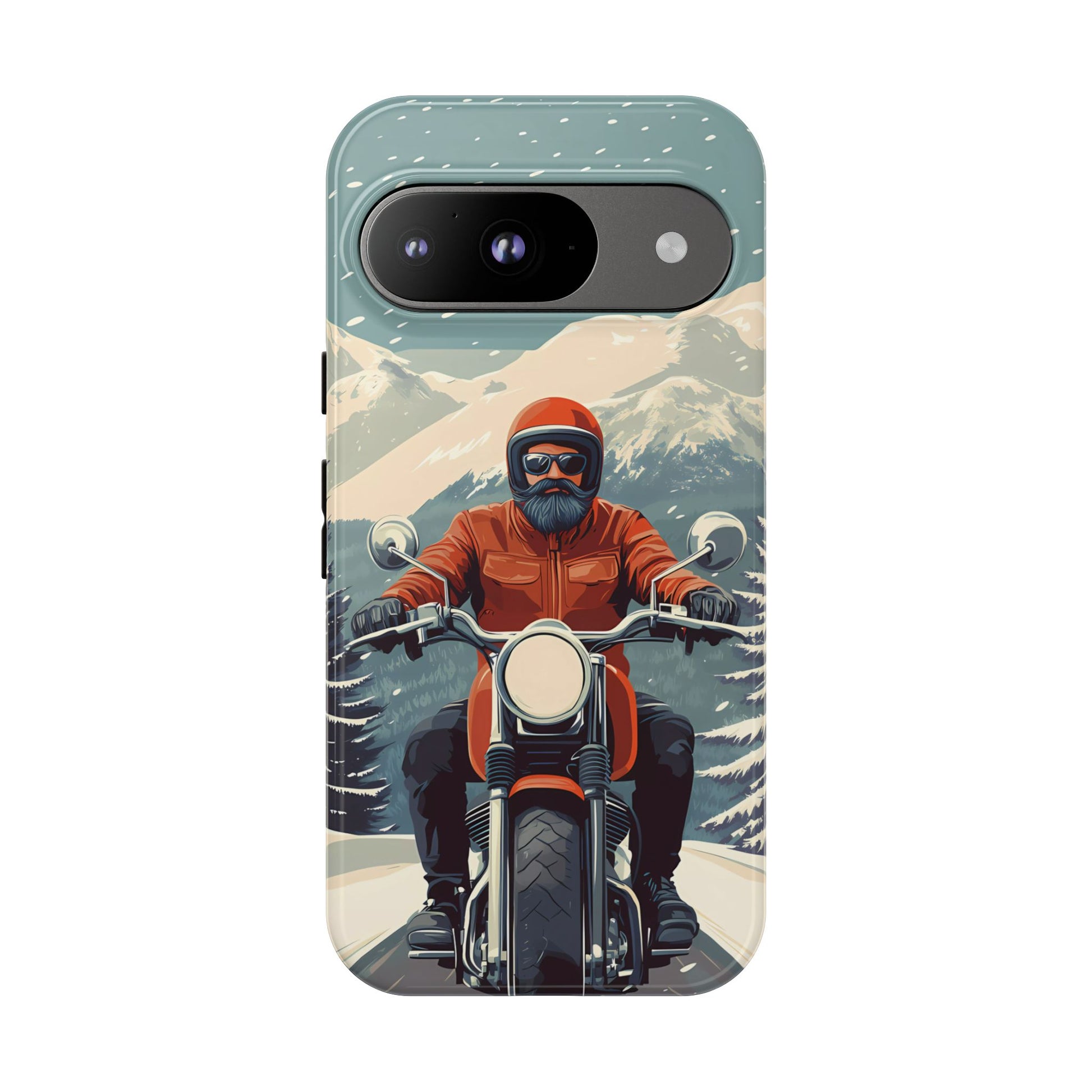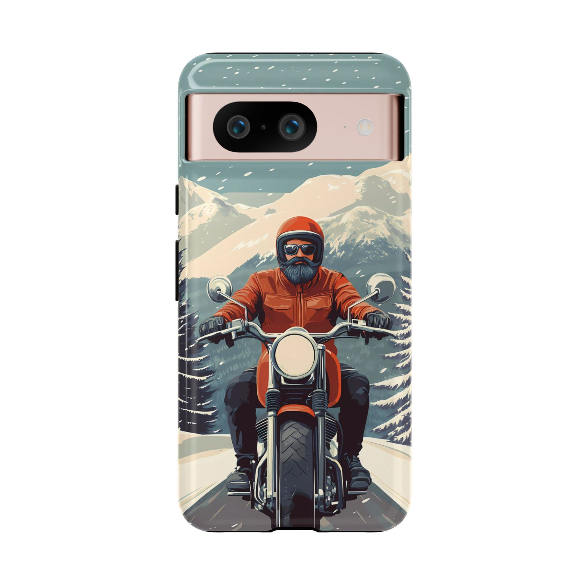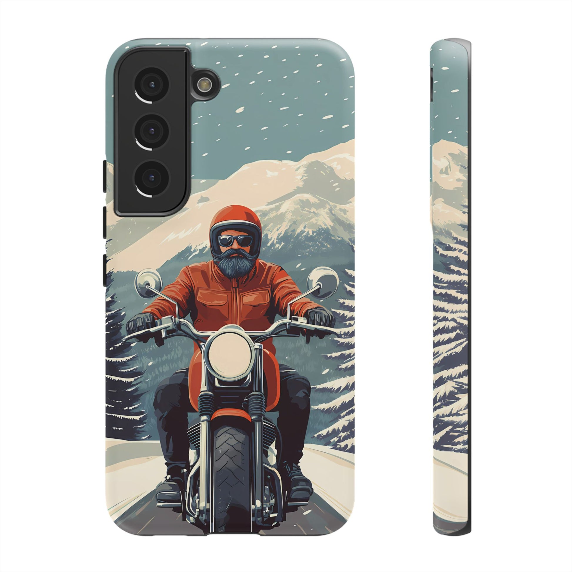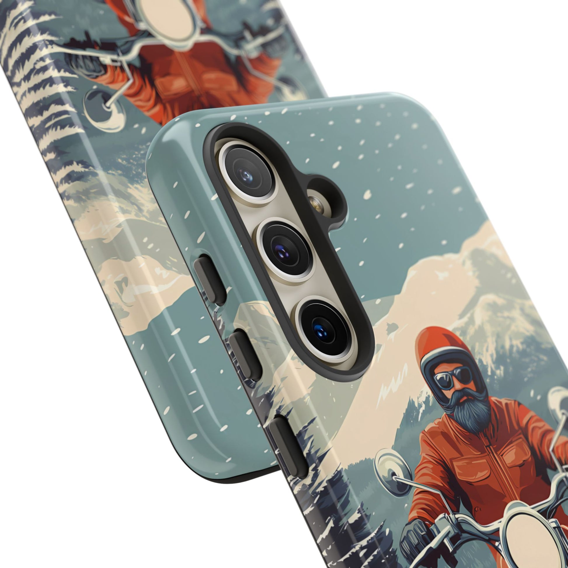 A tribute to the independent spirit of motorcycle riders, this design showcases a mature lone rider on an epic journey. With gritty textures and a timeless biker aesthetic, this phone case is made for those who embrace the ride as a way of life