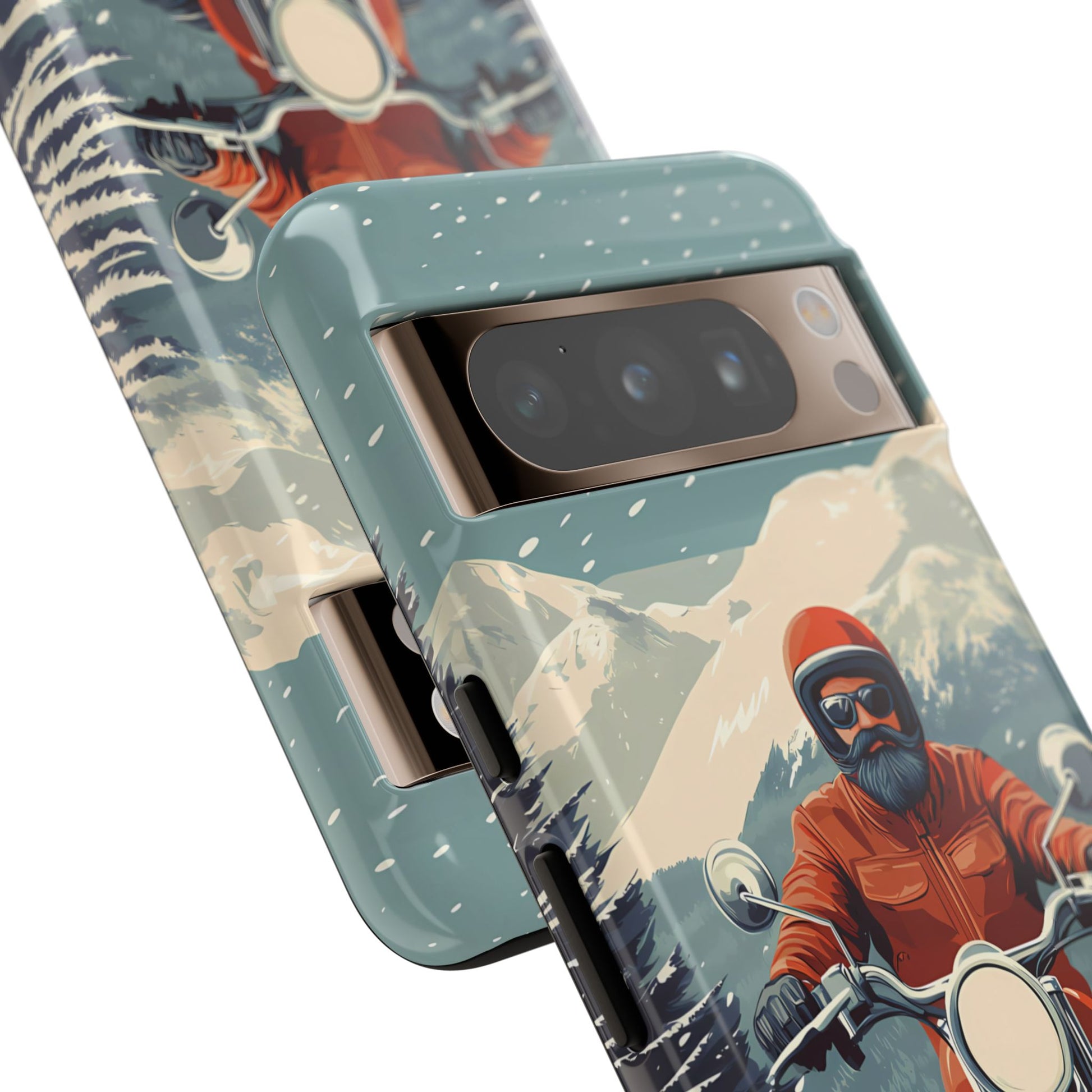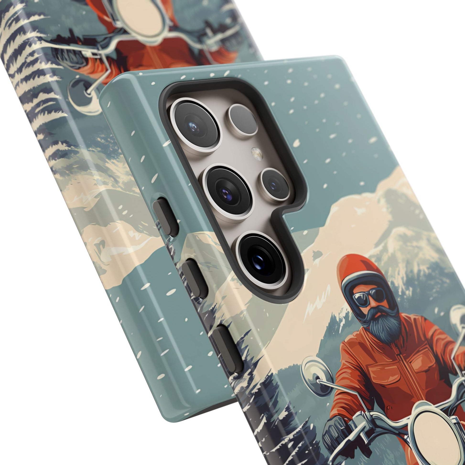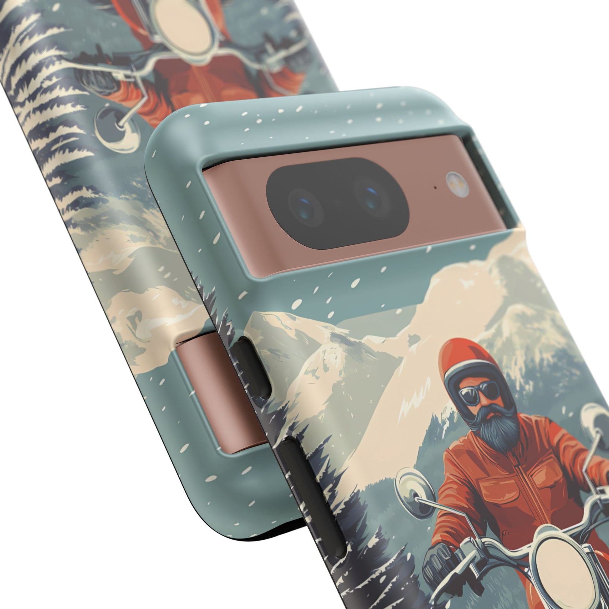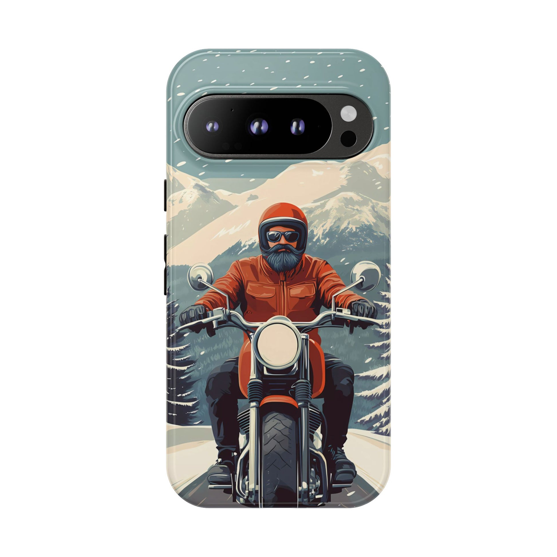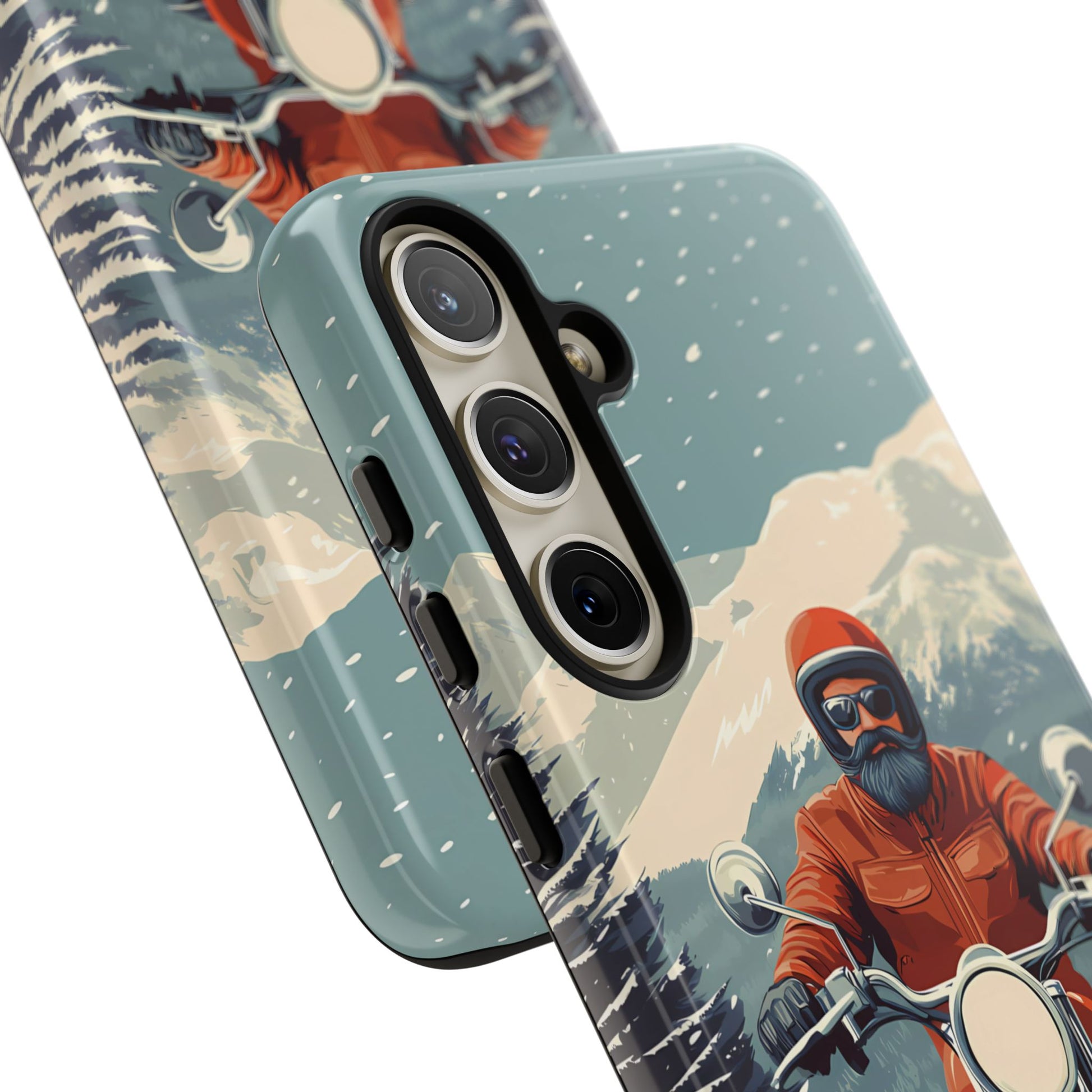 A tribute to the independent spirit of motorcycle riders, this design showcases a mature lone rider on an epic journey. With gritty textures and a timeless biker aesthetic, this phone case is made for those who embrace the ride as a way of life