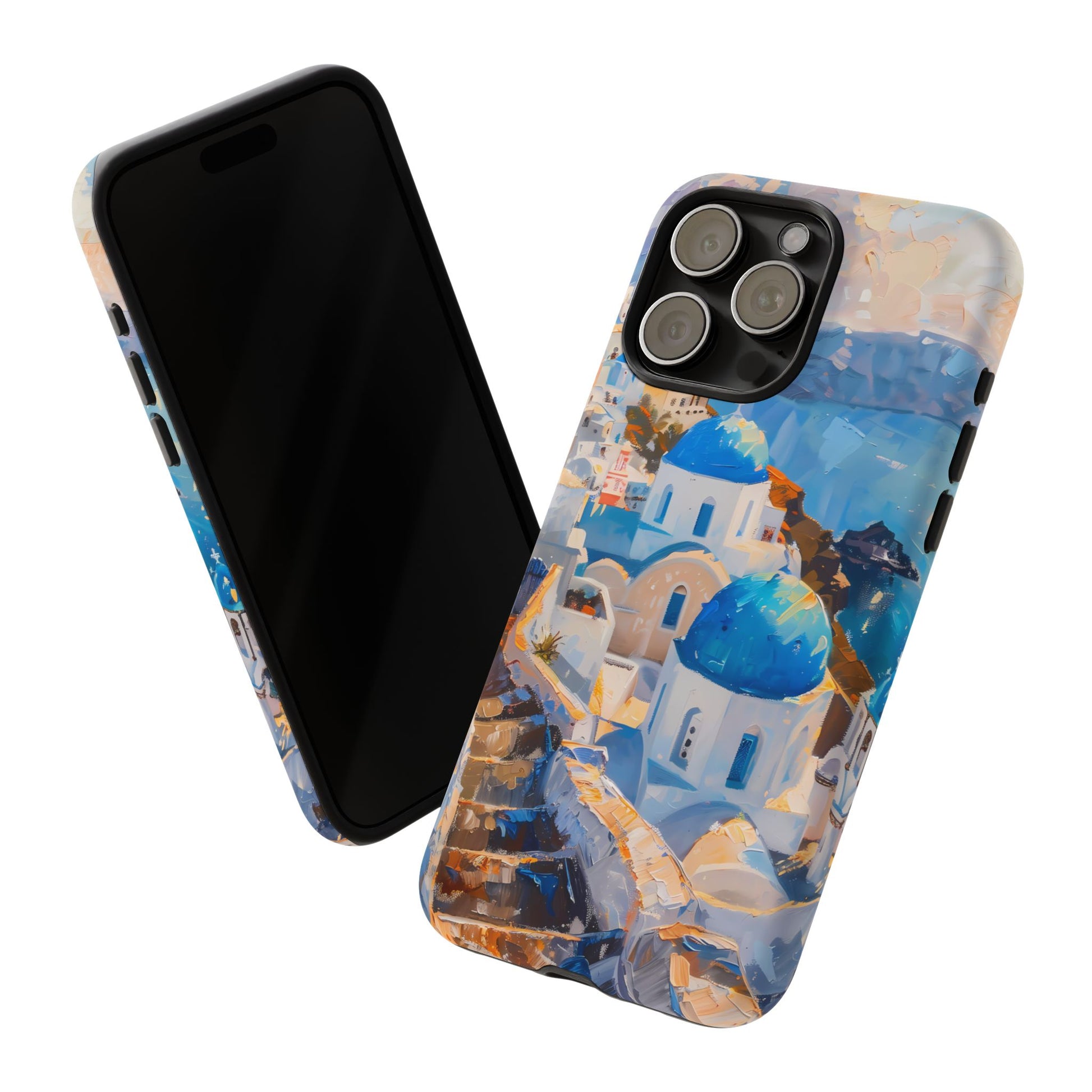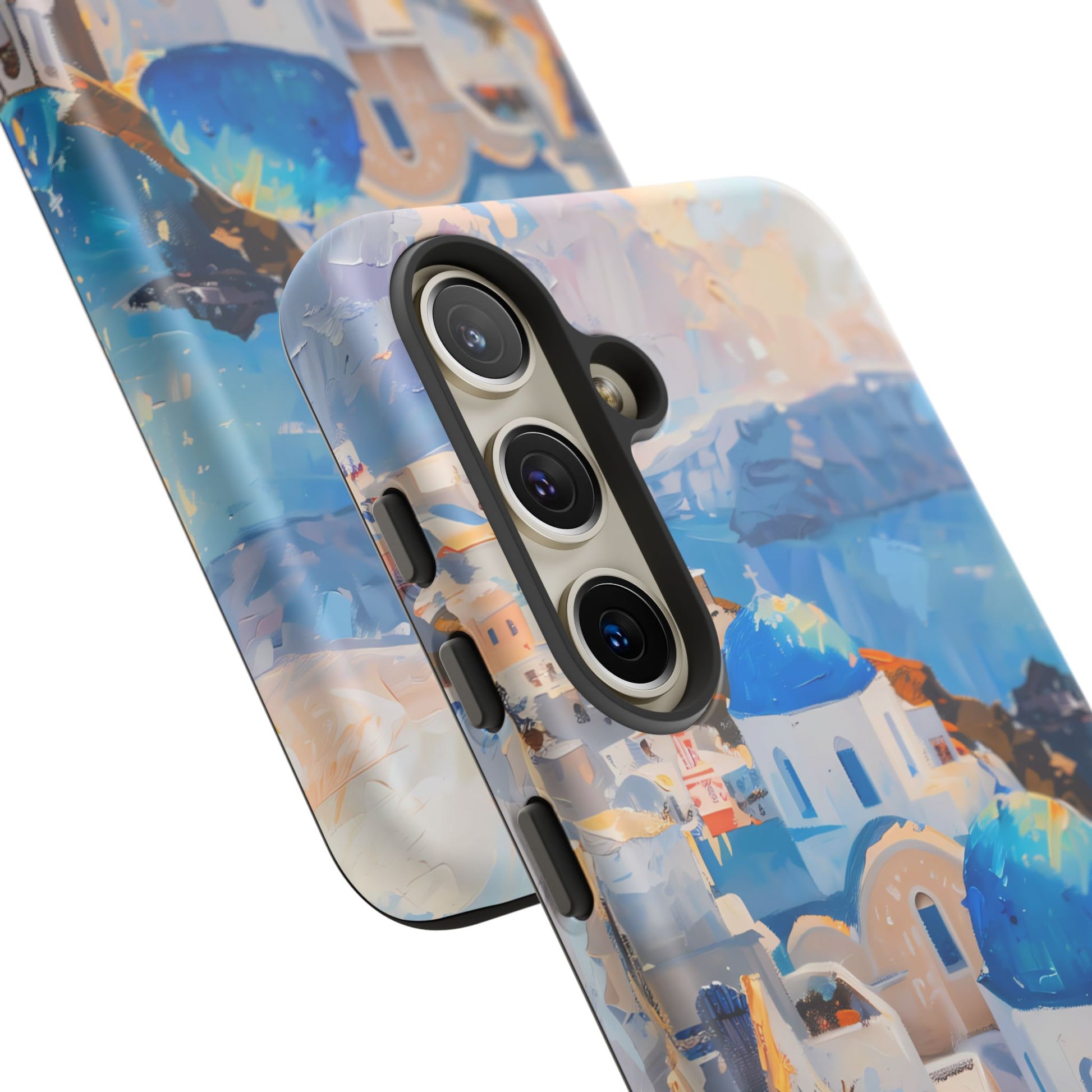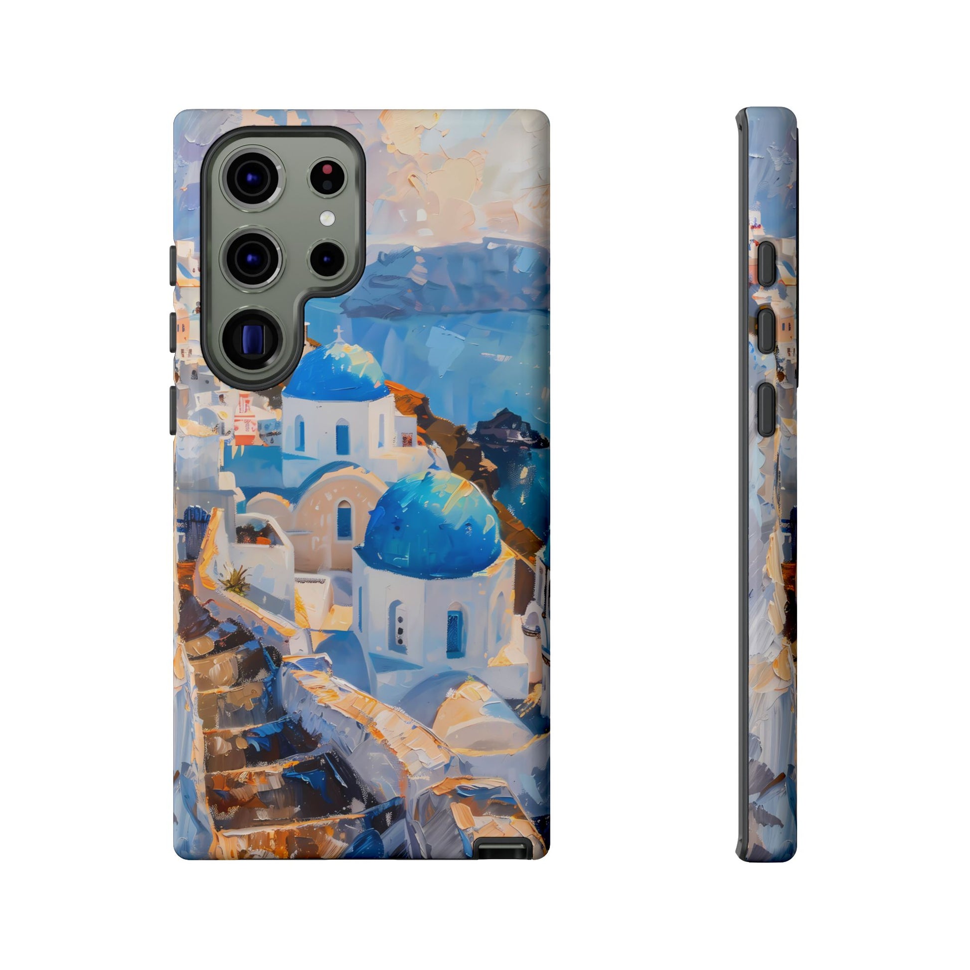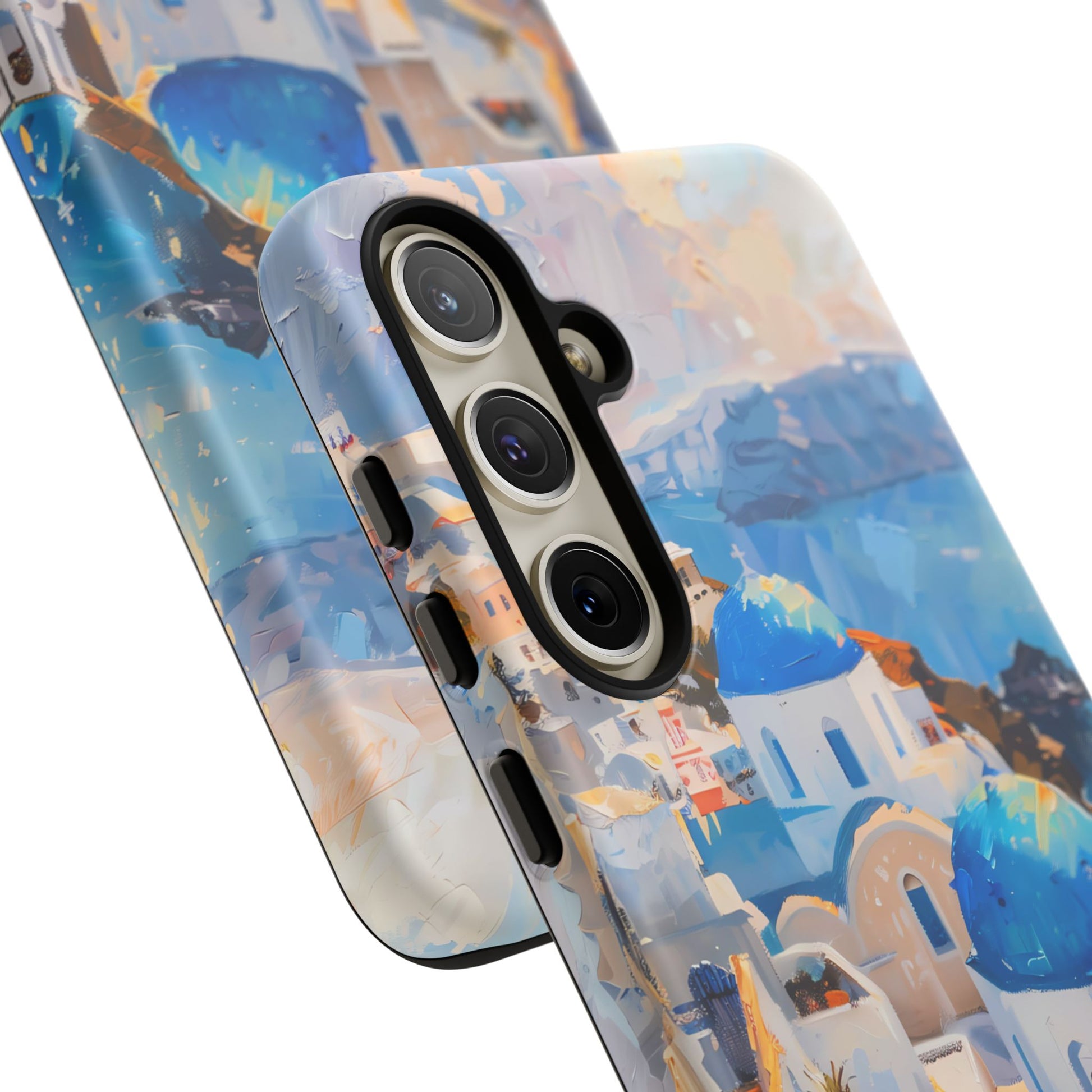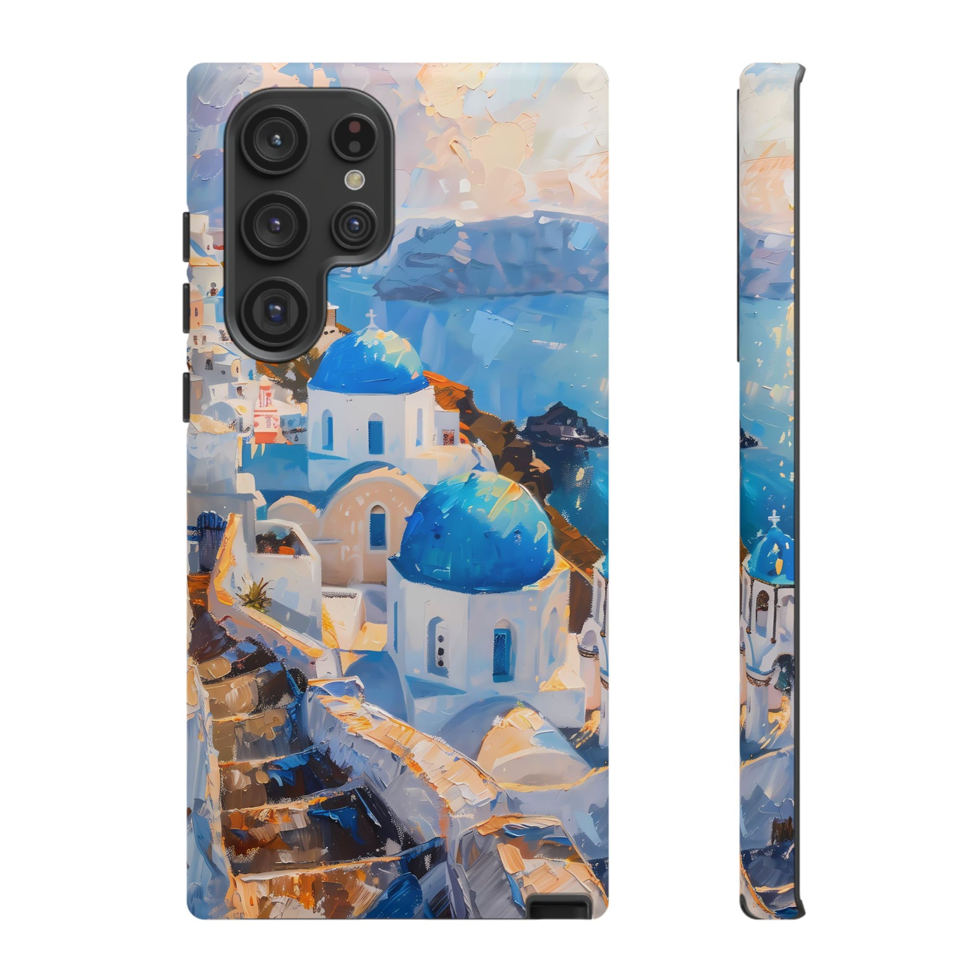Immerse yourself in the splendor of Santorini with the "Santorini Splendor" phone cover. This cover captures the enchanting beauty of the island’s white-washed buildings, blue domes, and breathtaking sunsets, providing a daily reminder of Greece’s most picturesque destination.