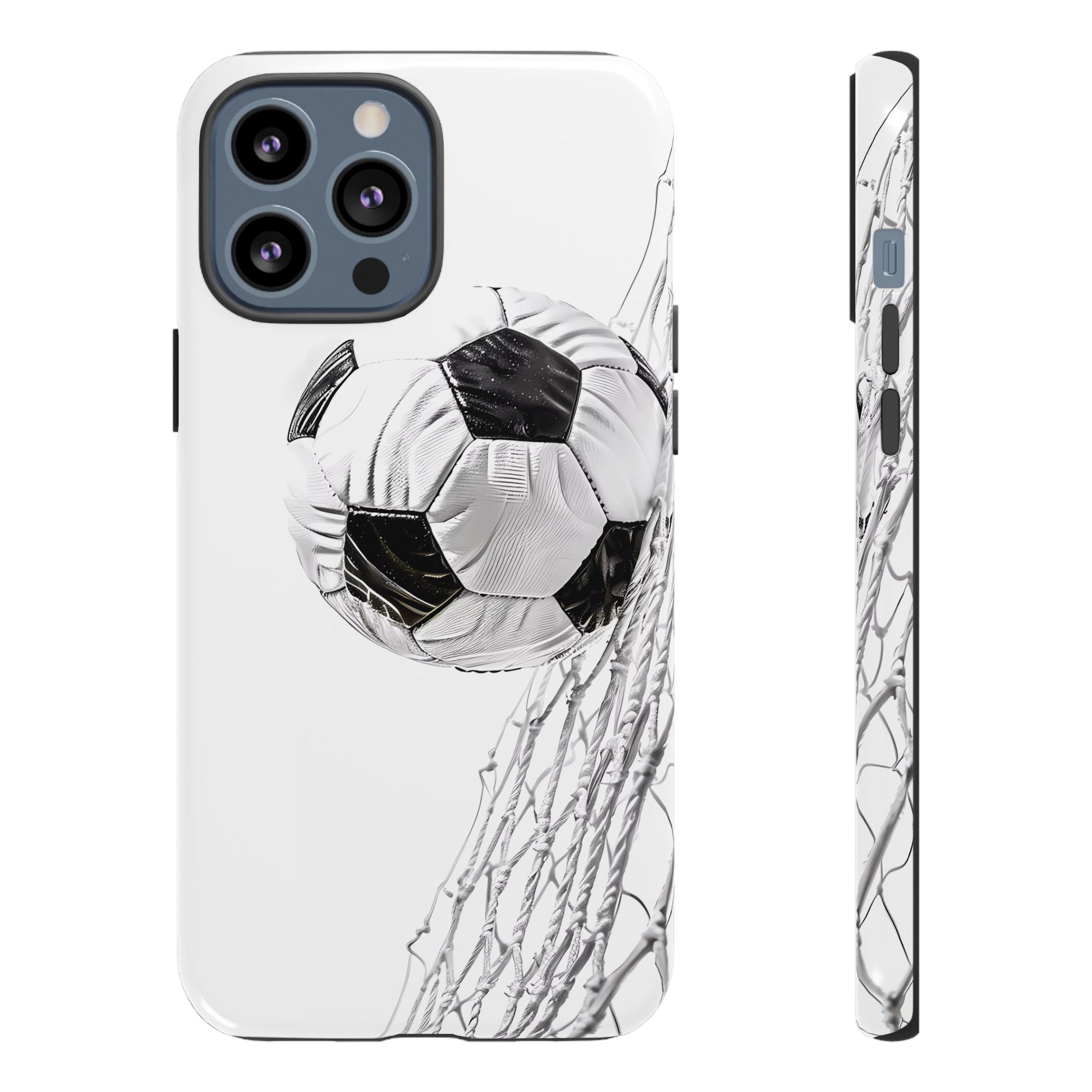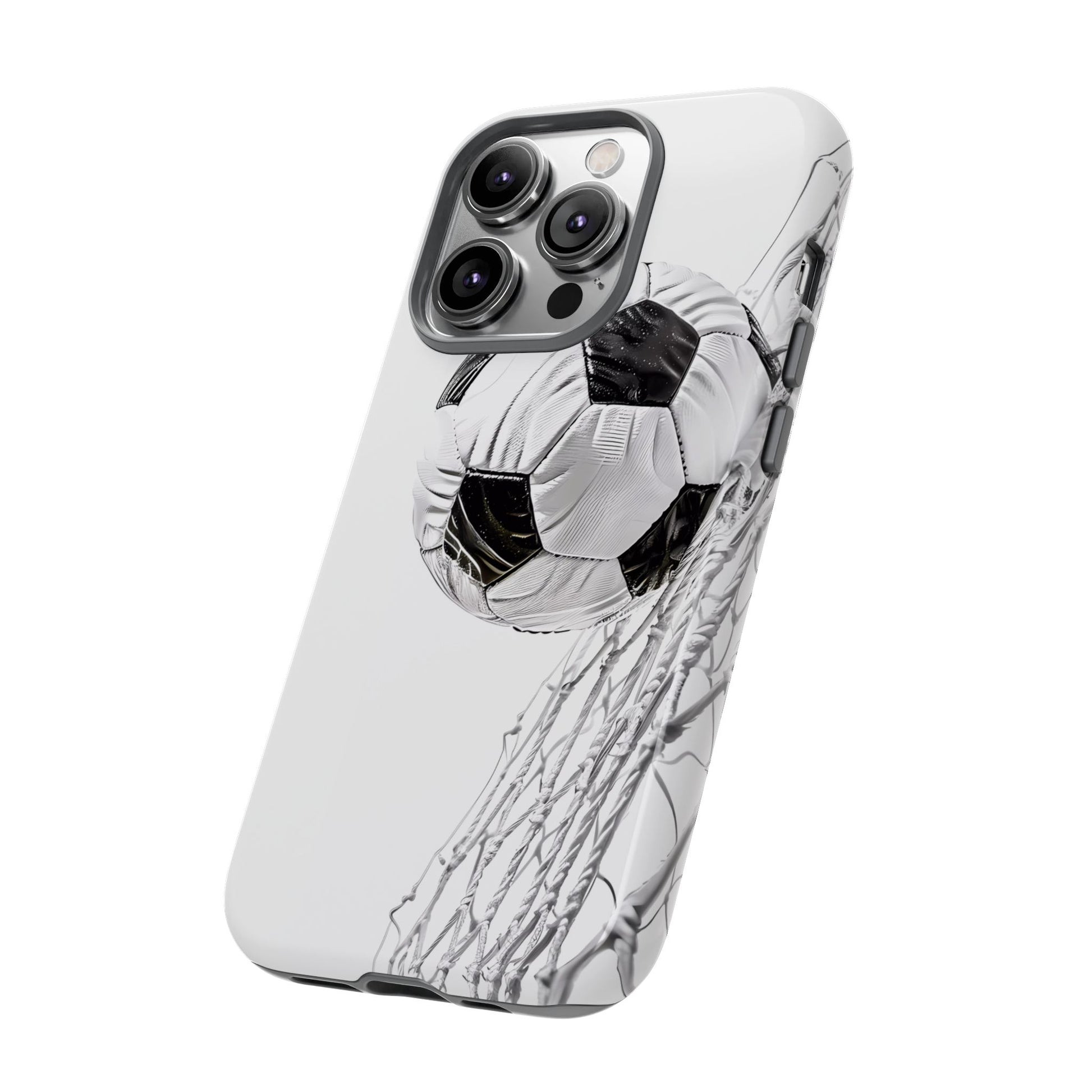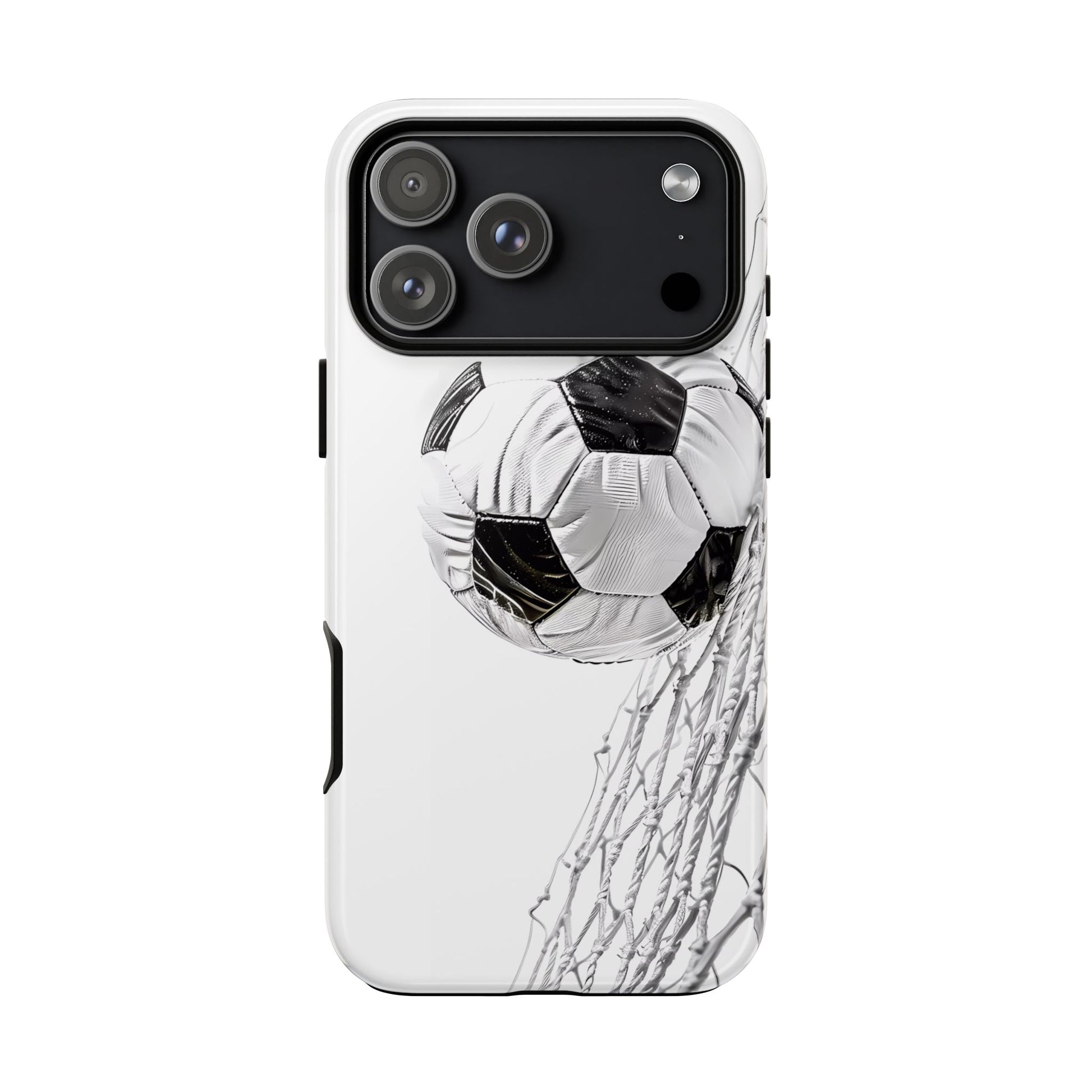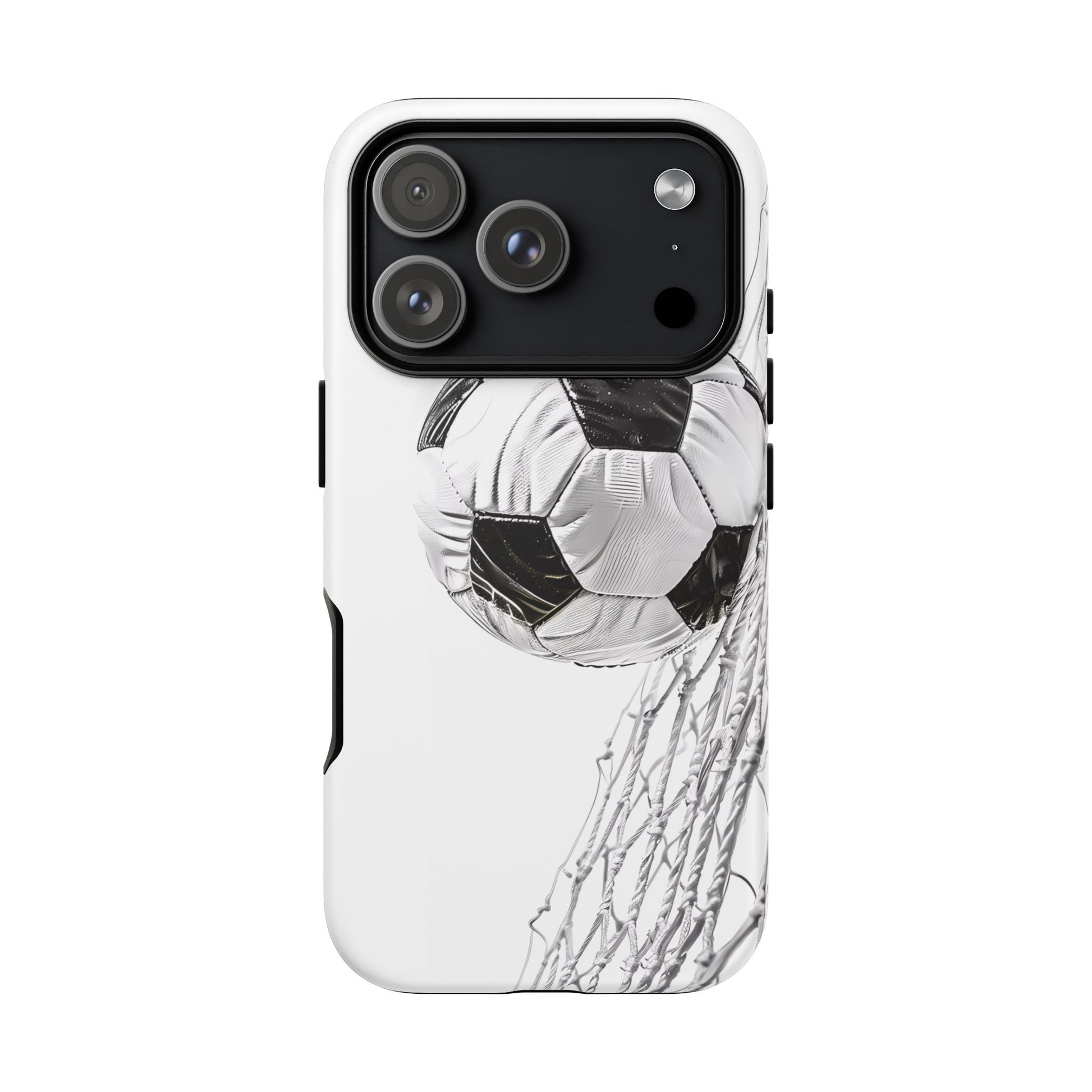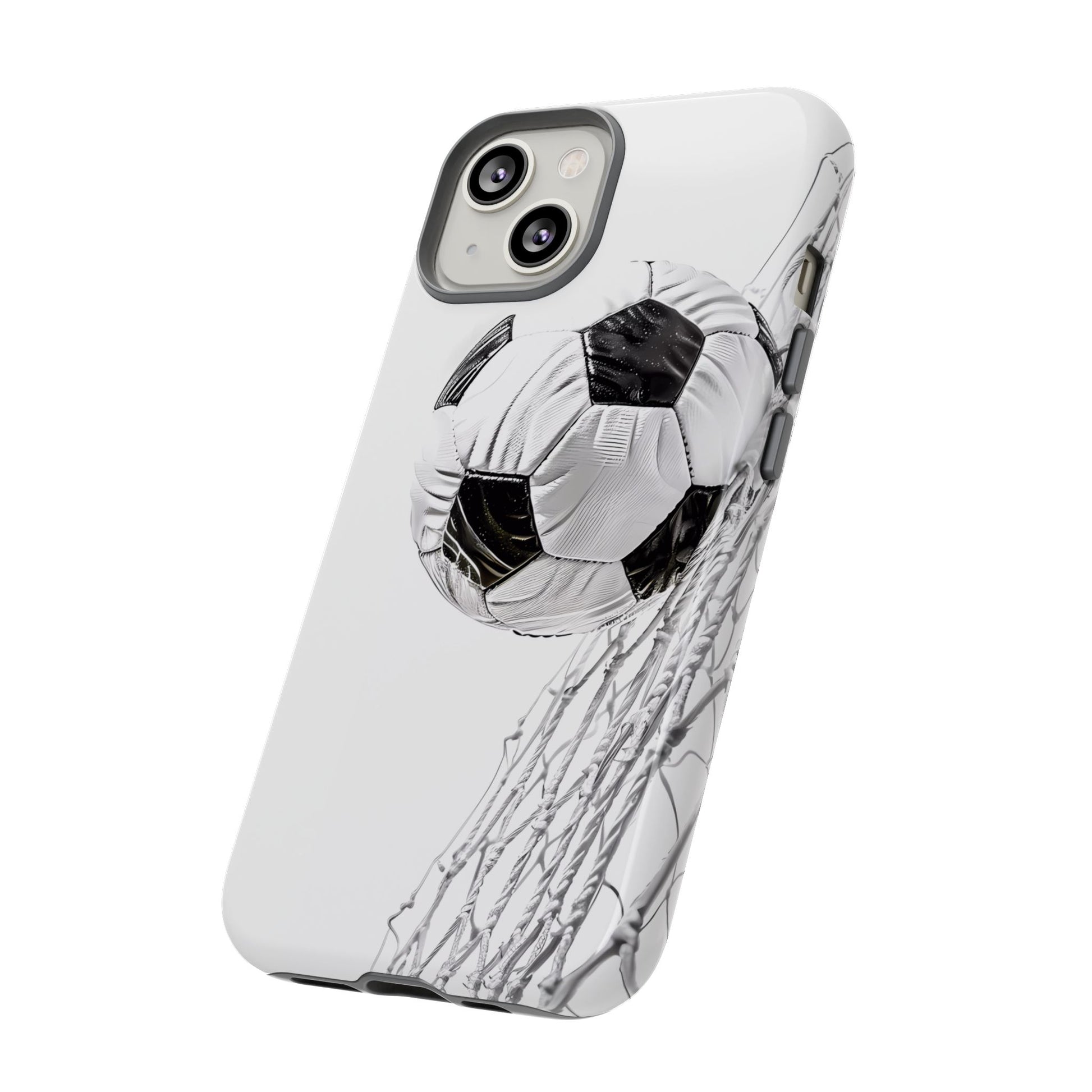 A striking design that captures the exact moment a soccer ball is about to find the back of the net, rendered in high resolution to showcase every texture and detail.
