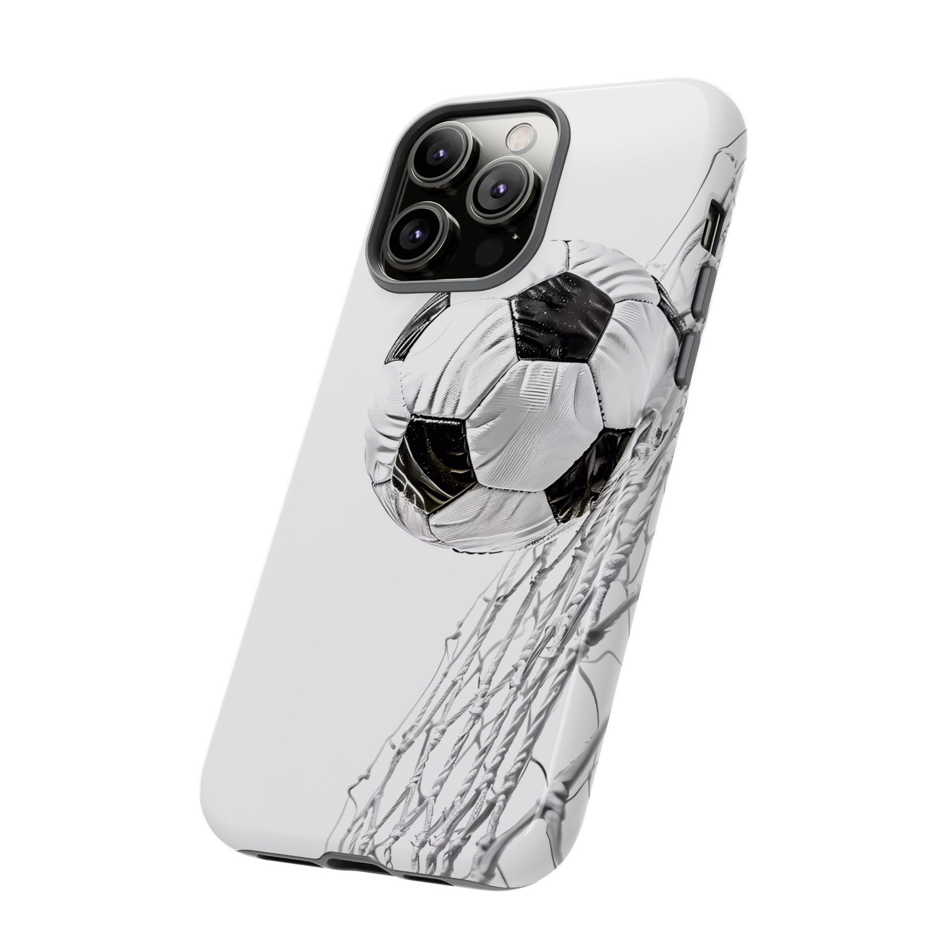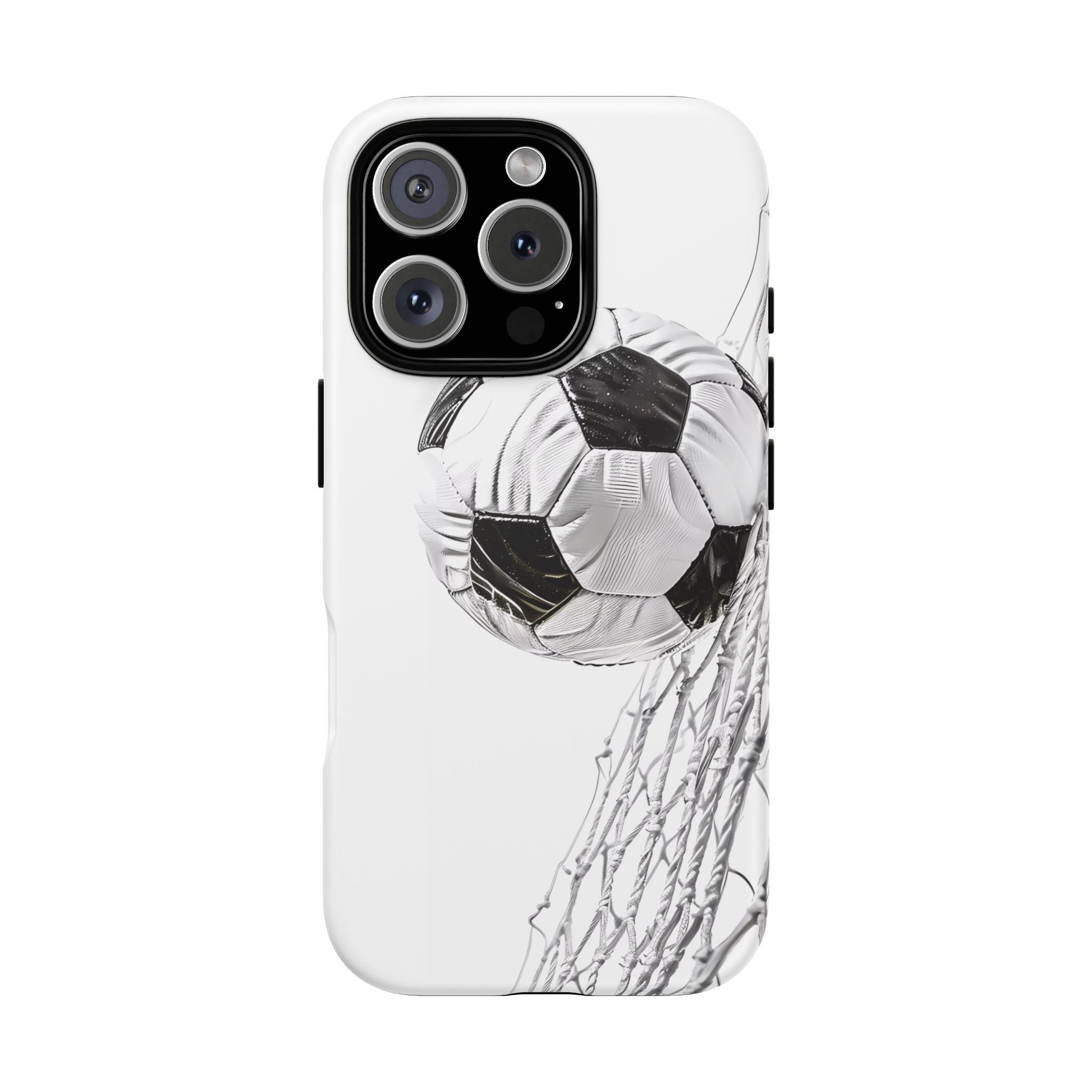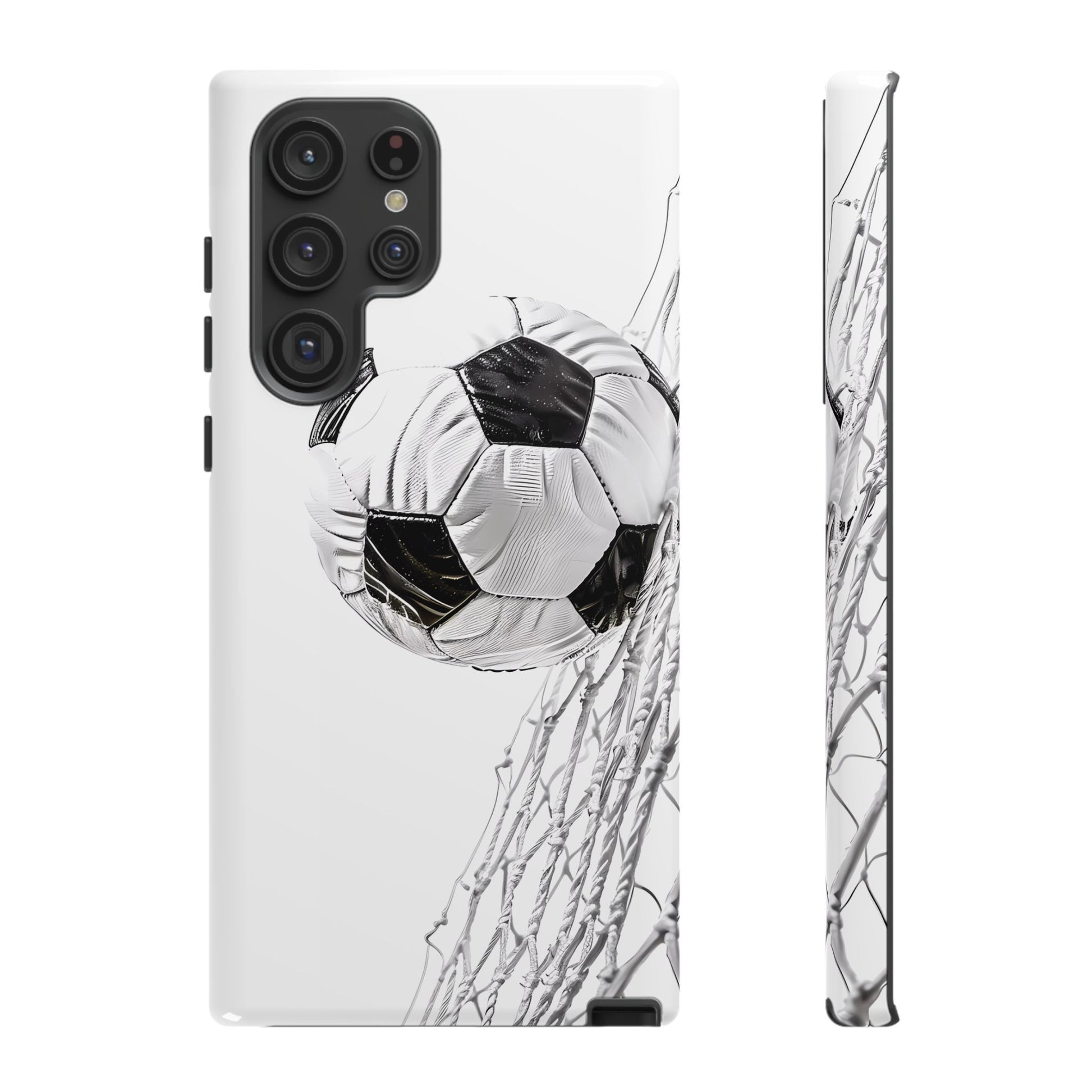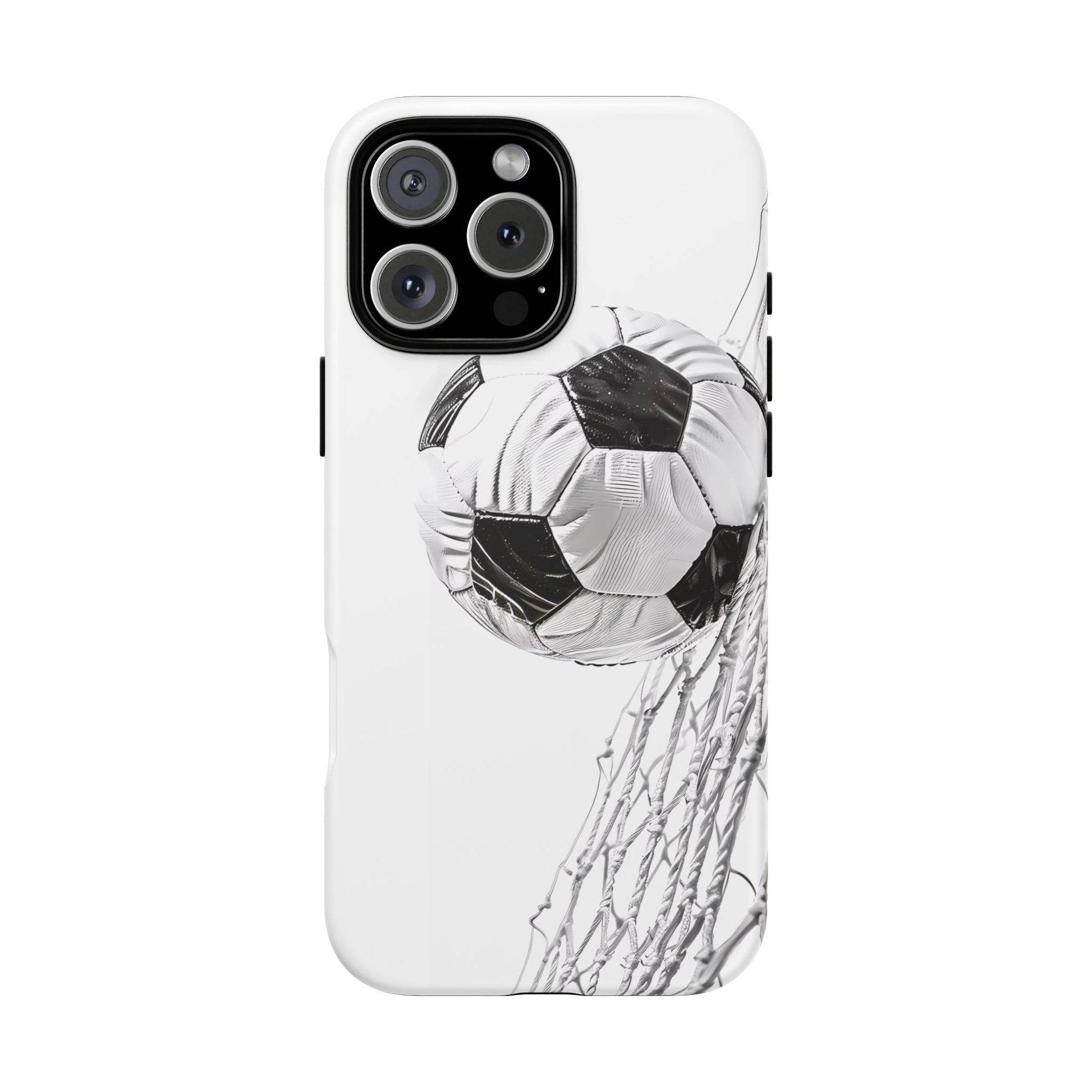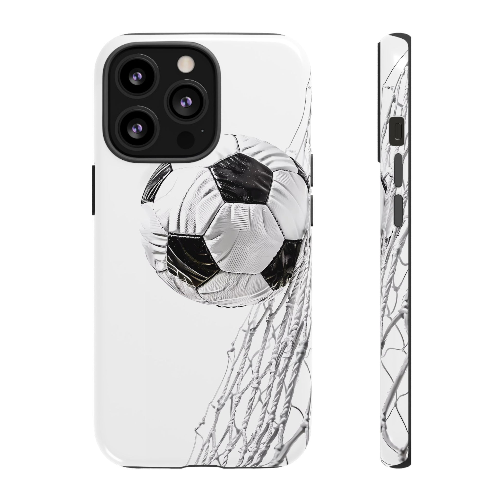 A striking design that captures the exact moment a soccer ball is about to find the back of the net, rendered in high resolution to showcase every texture and detail.