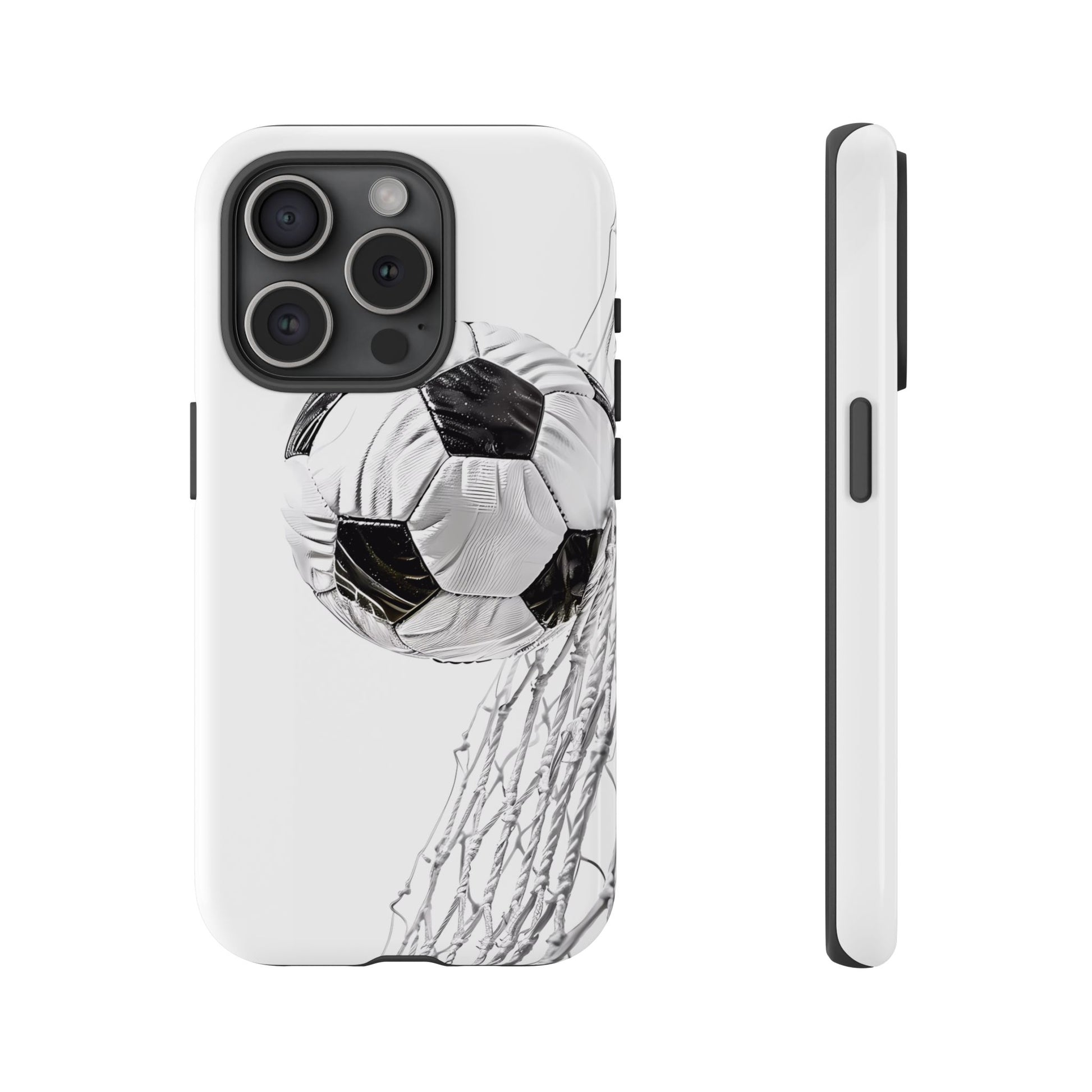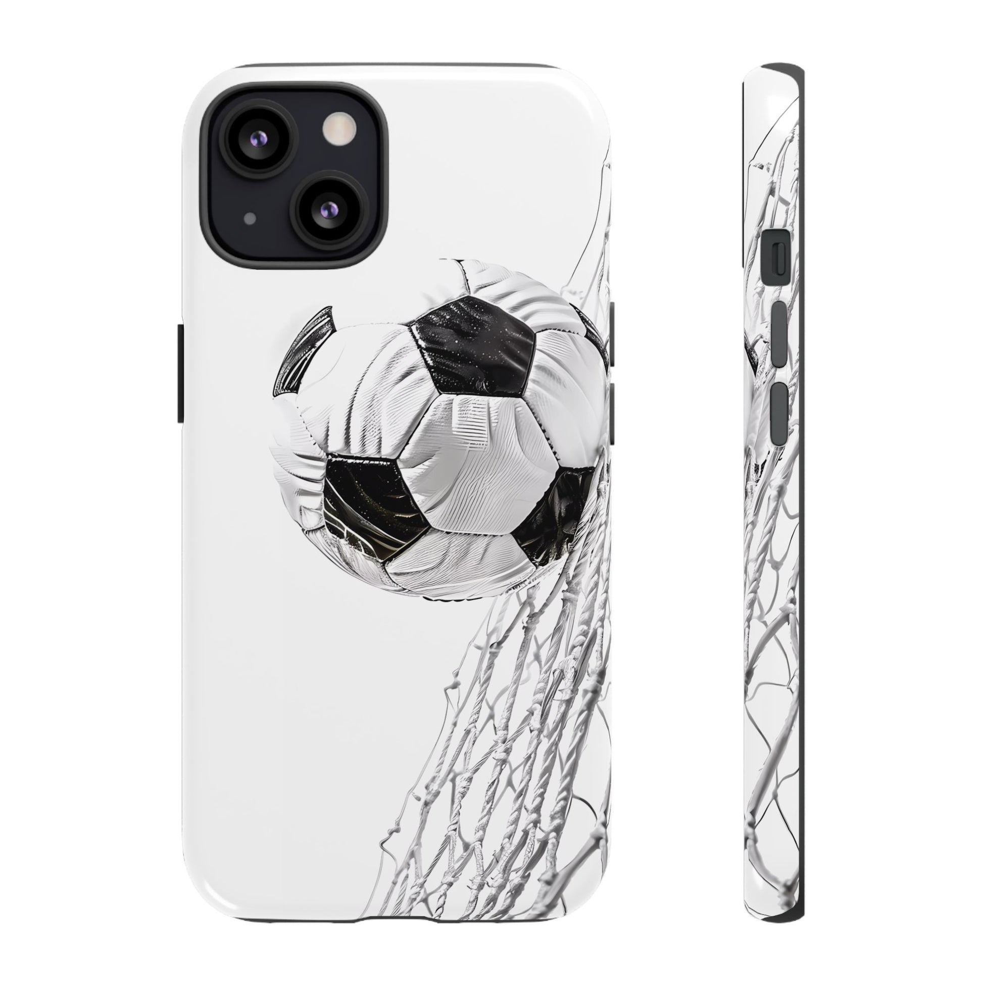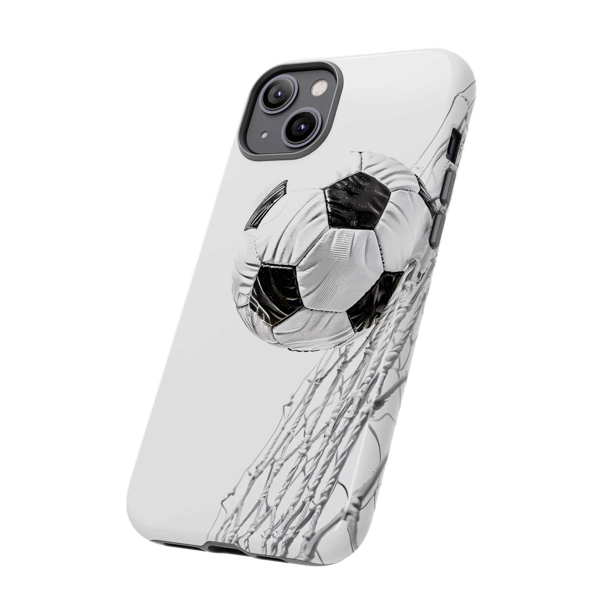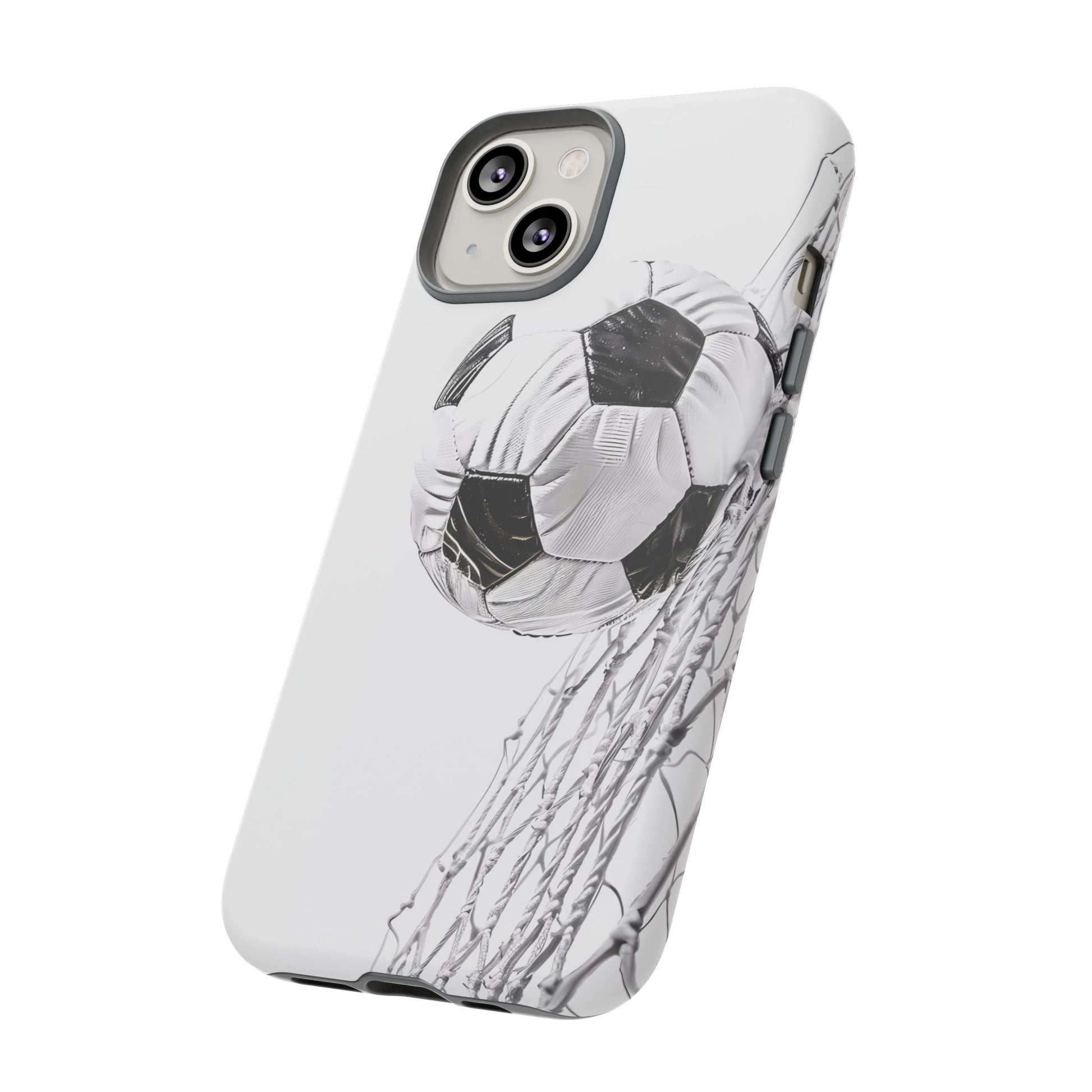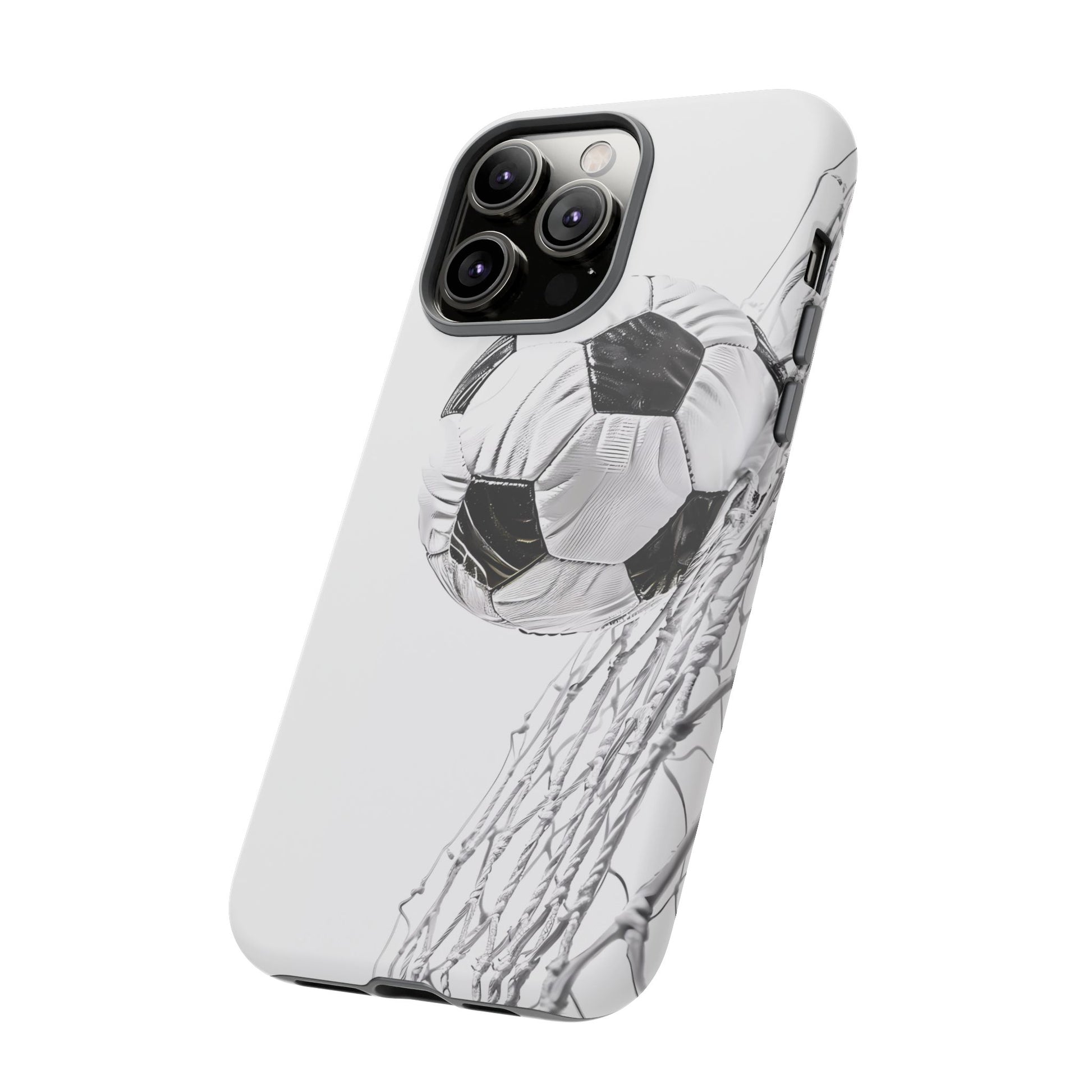 A striking design that captures the exact moment a soccer ball is about to find the back of the net, rendered in high resolution to showcase every texture and detail.