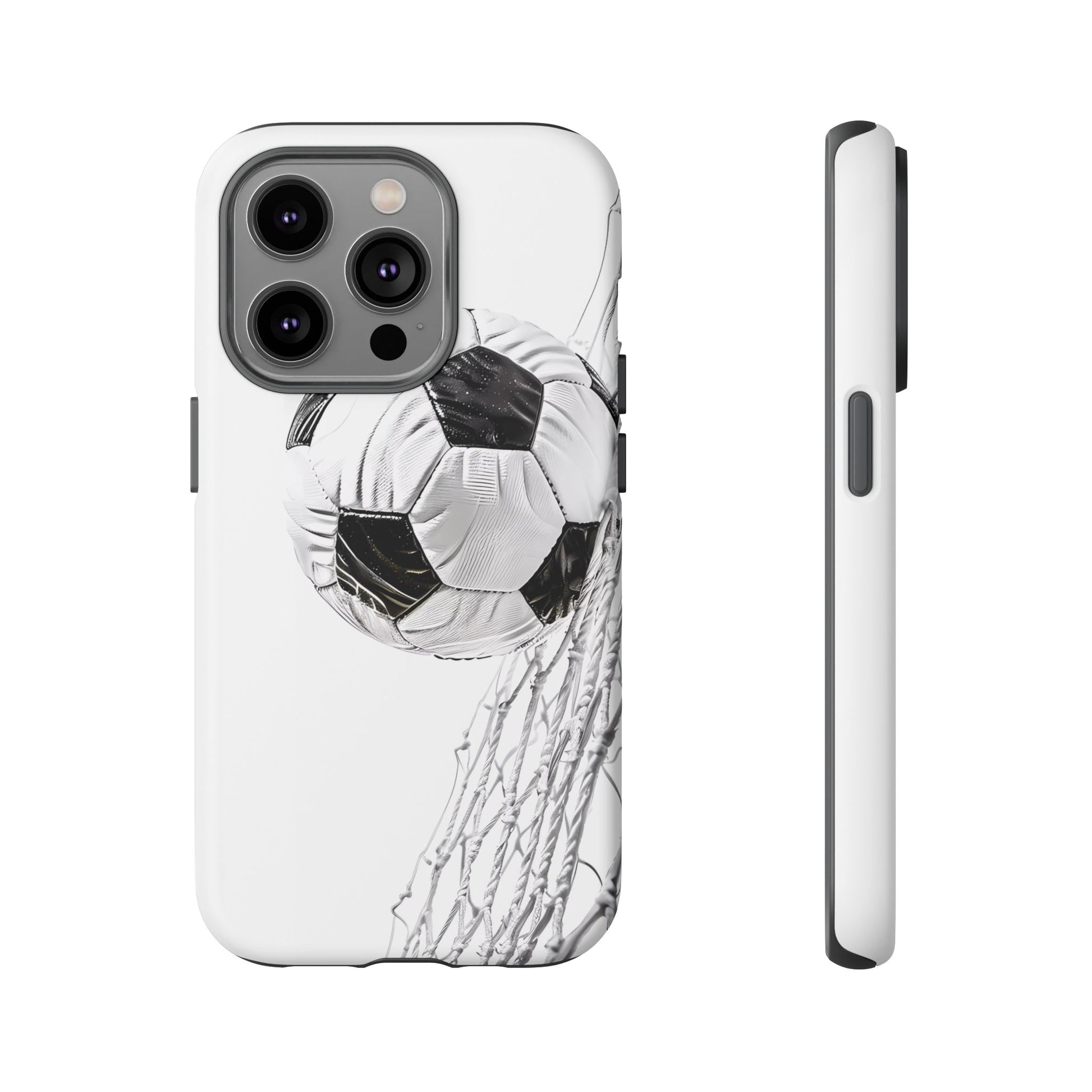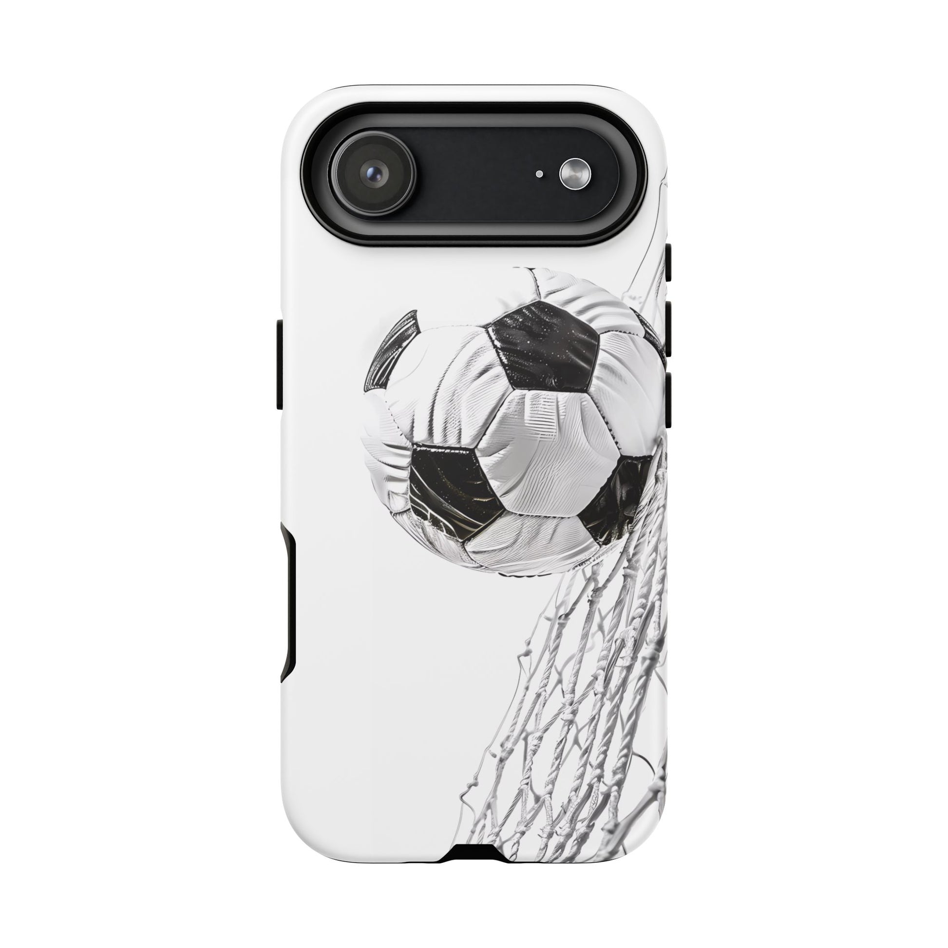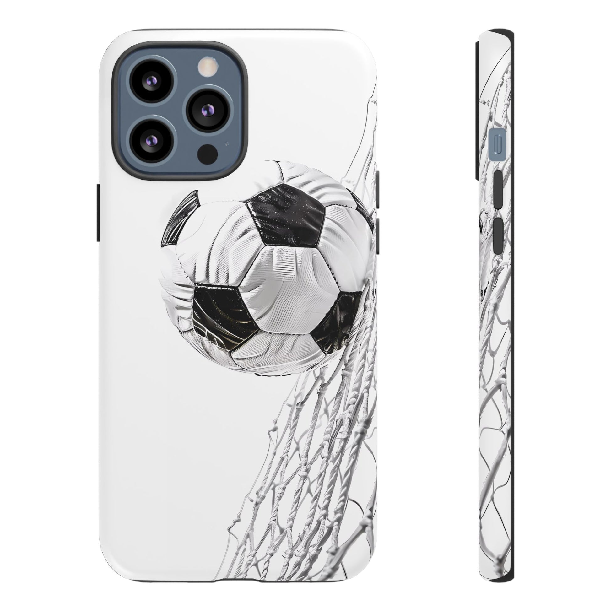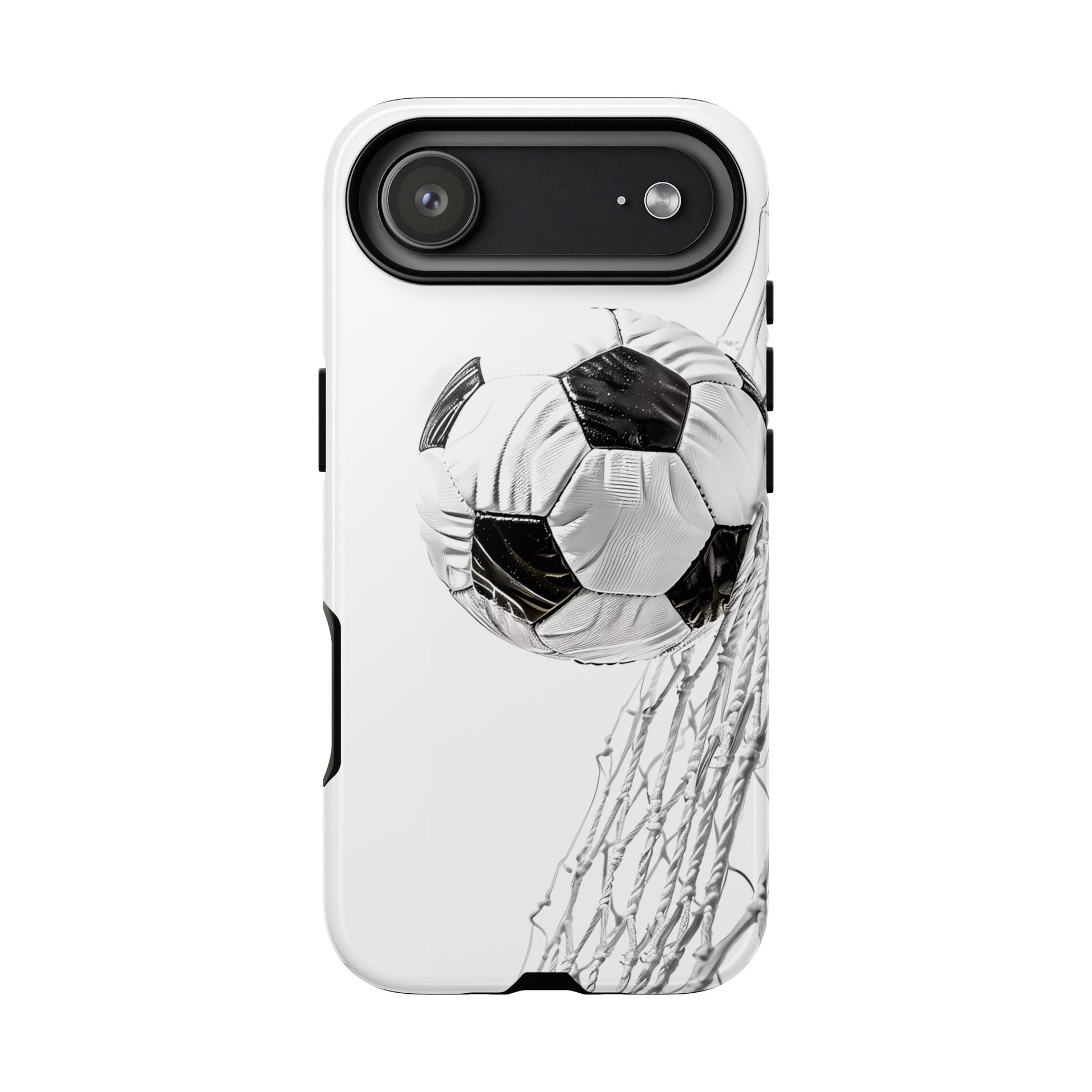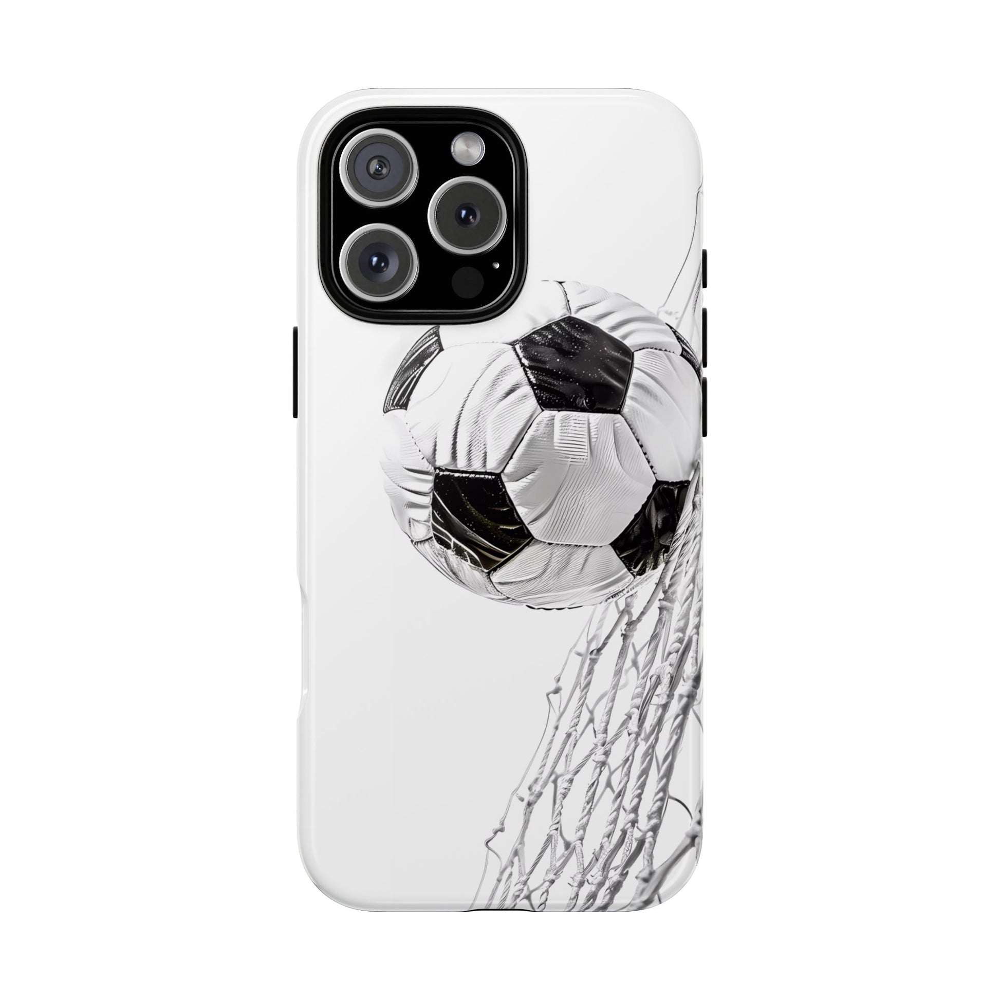A striking design that captures the exact moment a soccer ball is about to find the back of the net, rendered in high resolution to showcase every texture and detail.