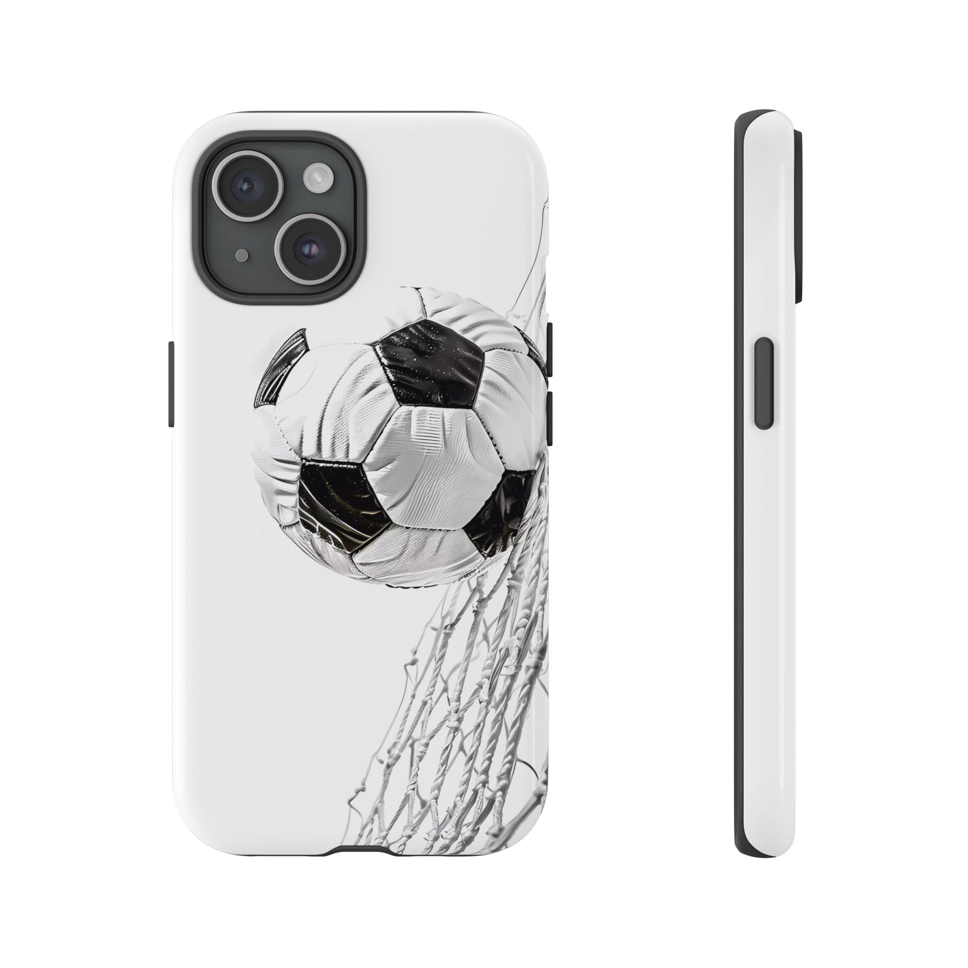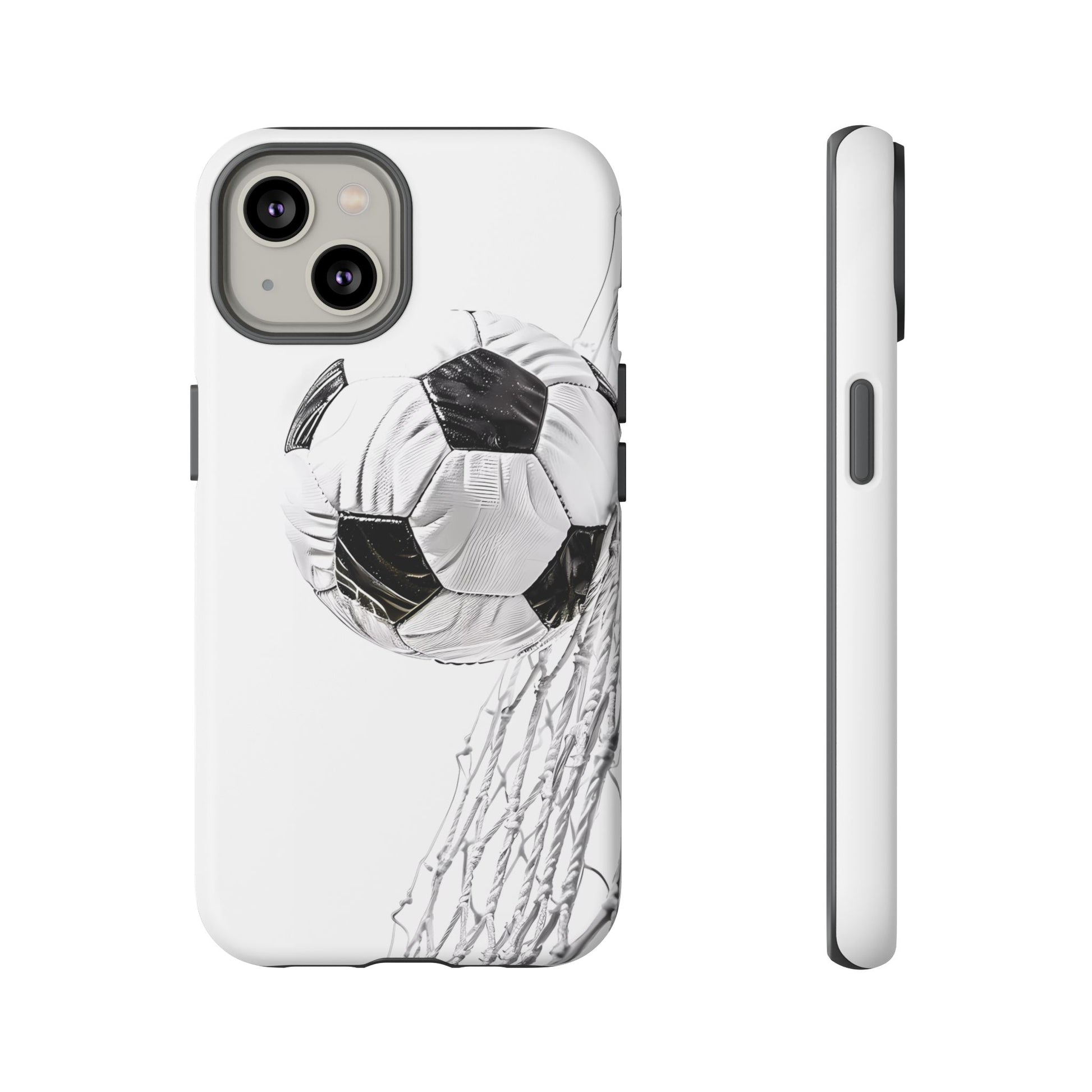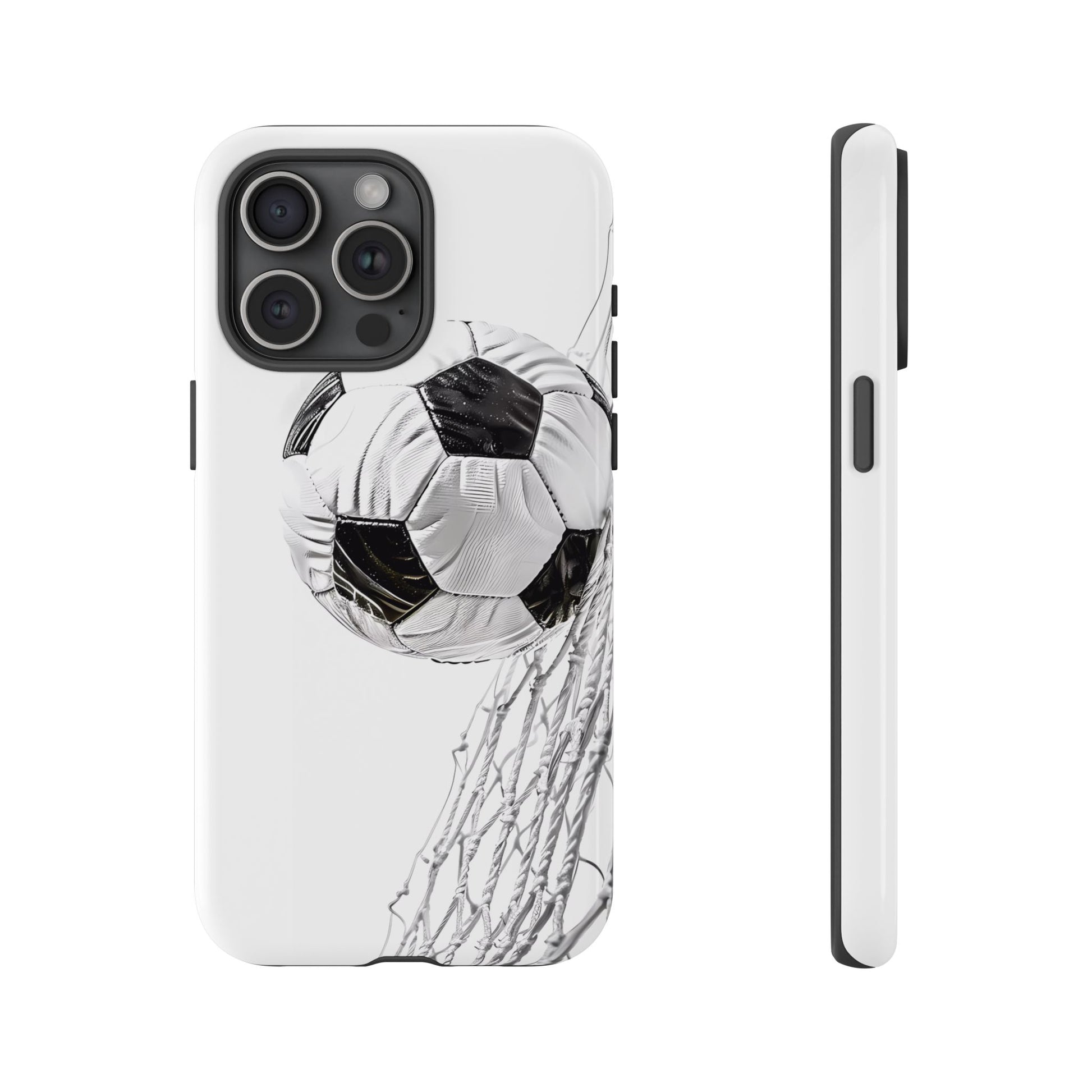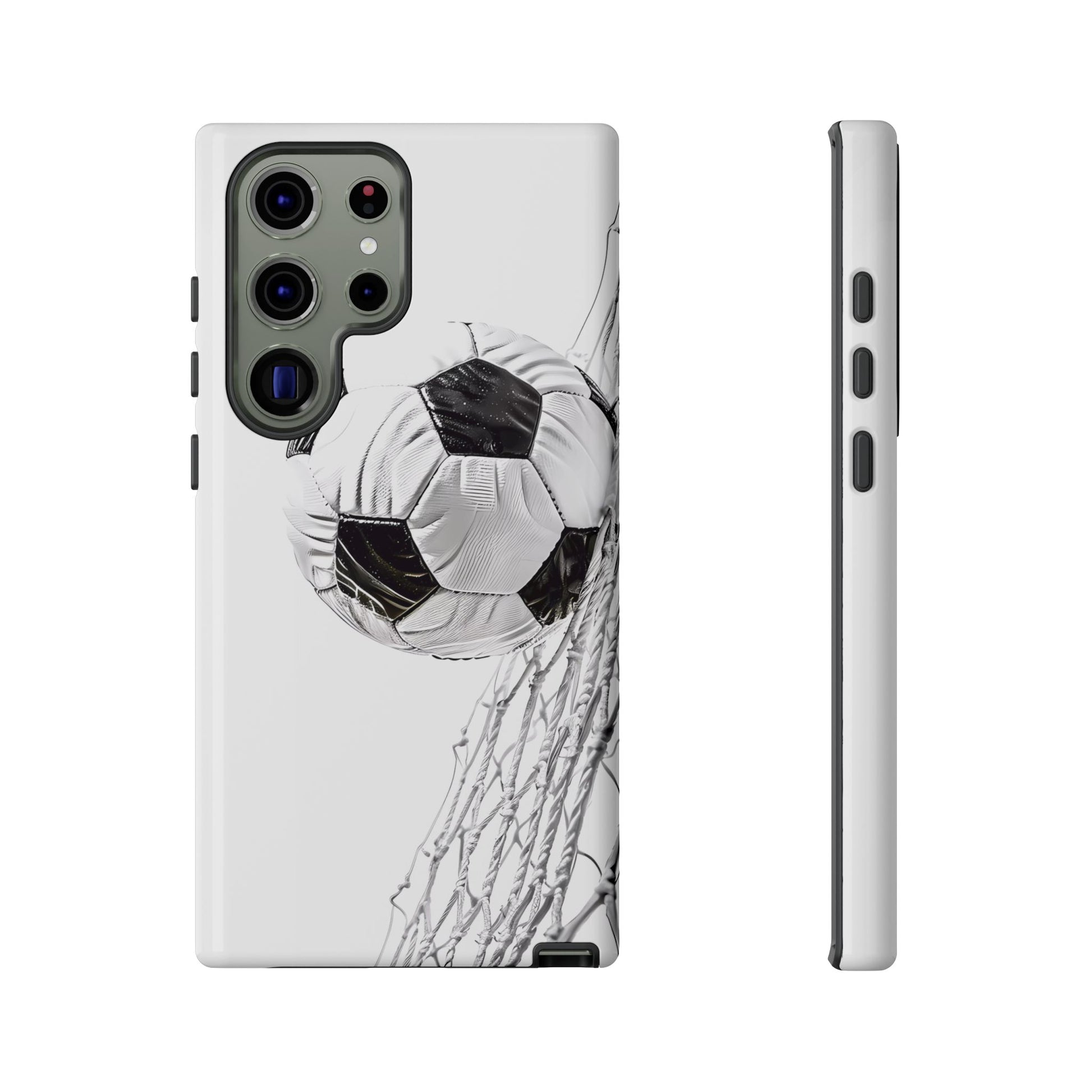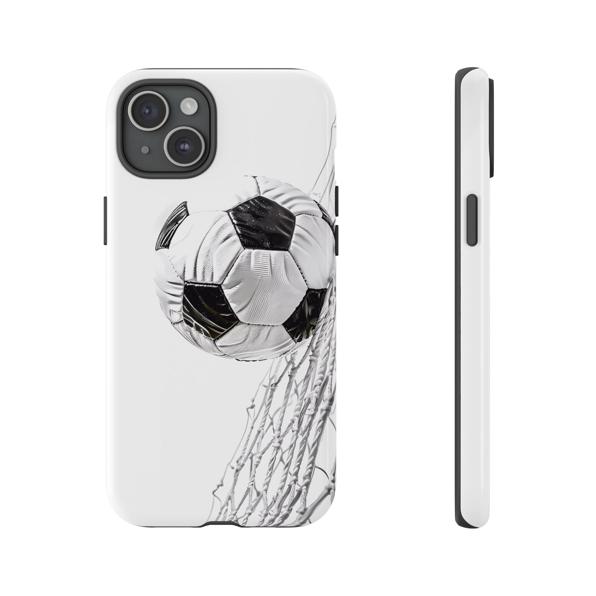 A striking design that captures the exact moment a soccer ball is about to find the back of the net, rendered in high resolution to showcase every texture and detail.