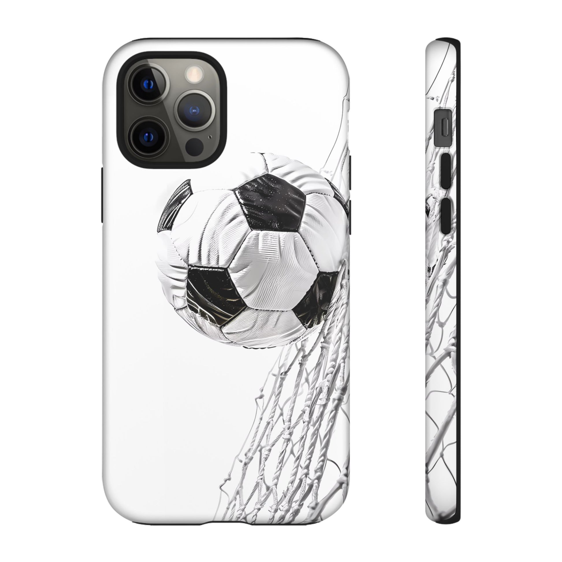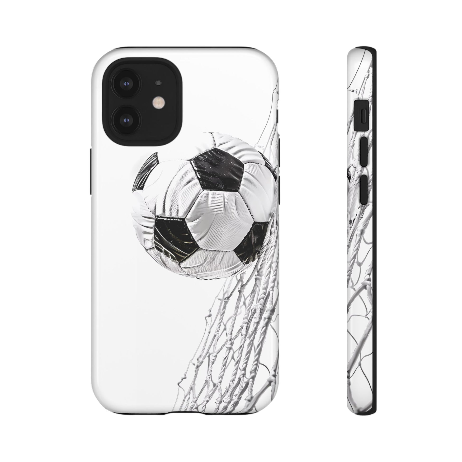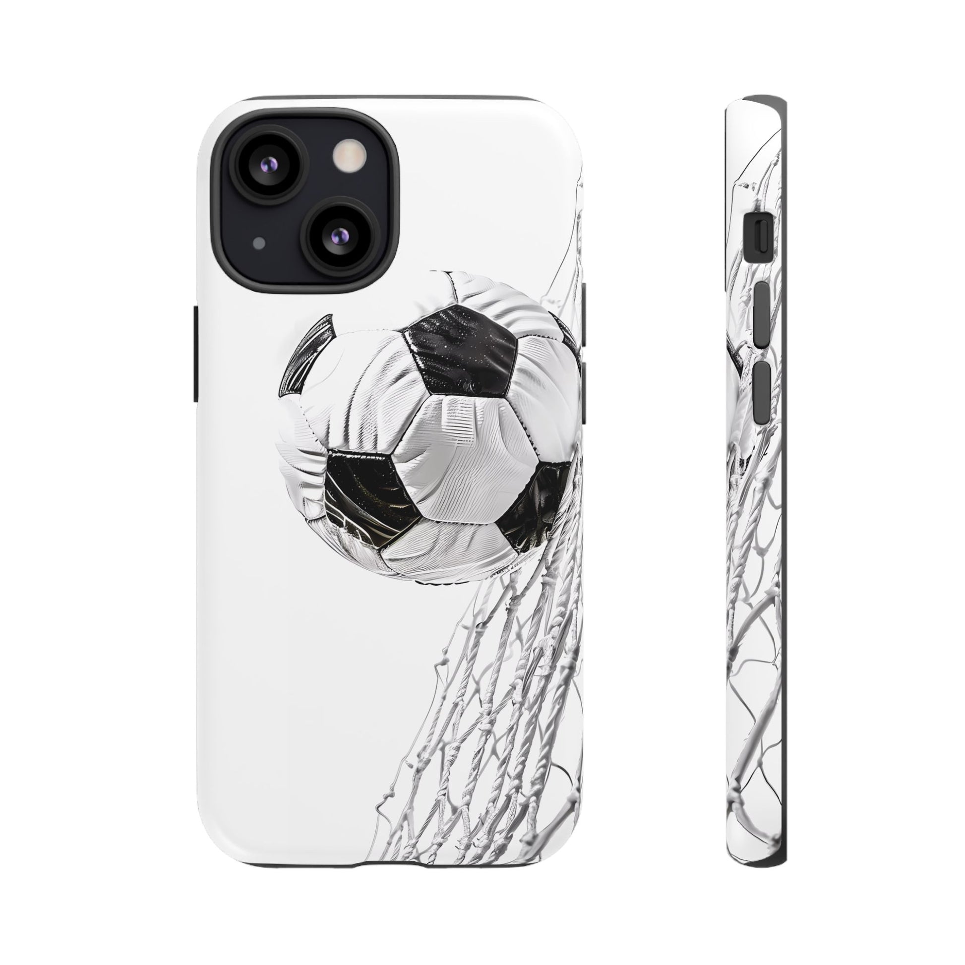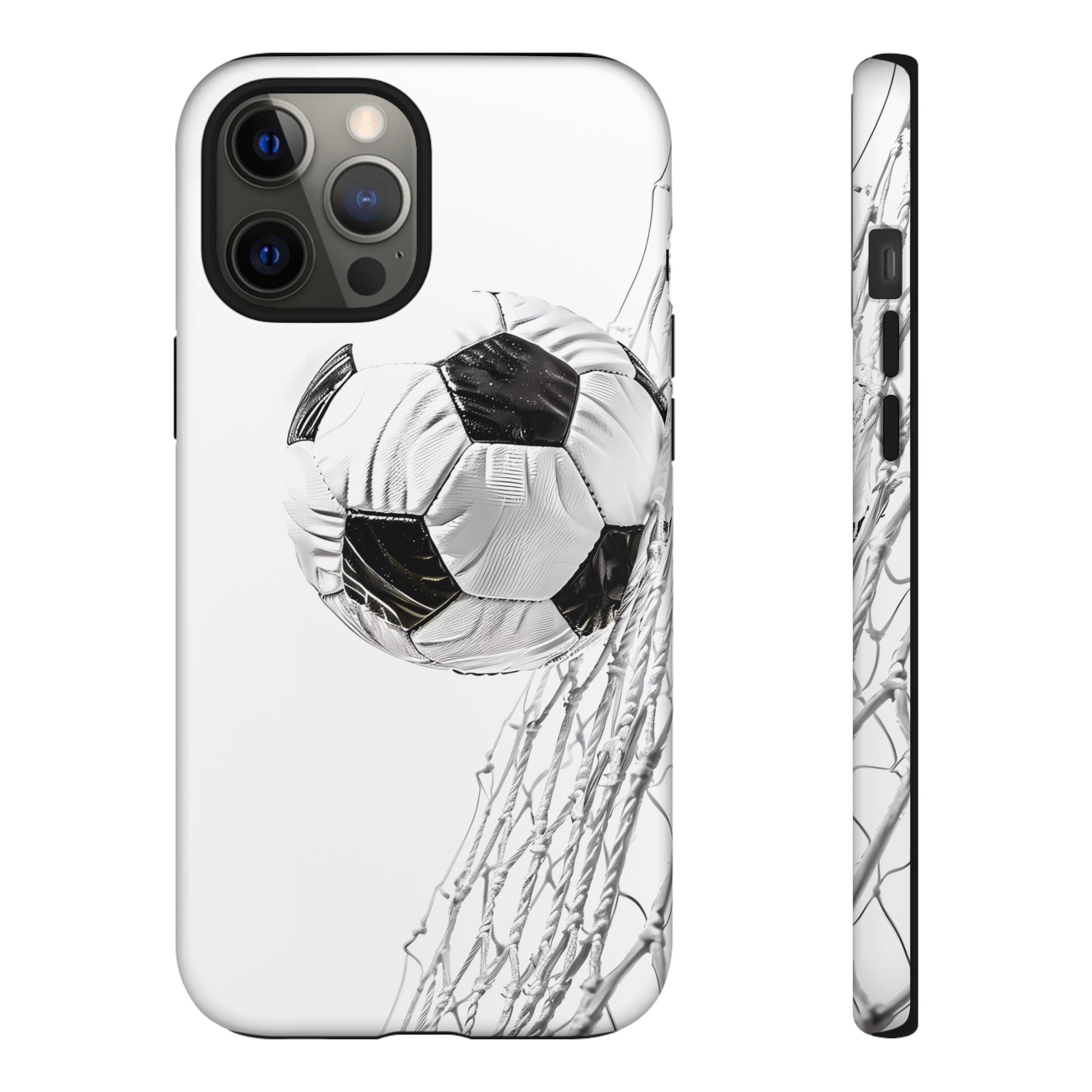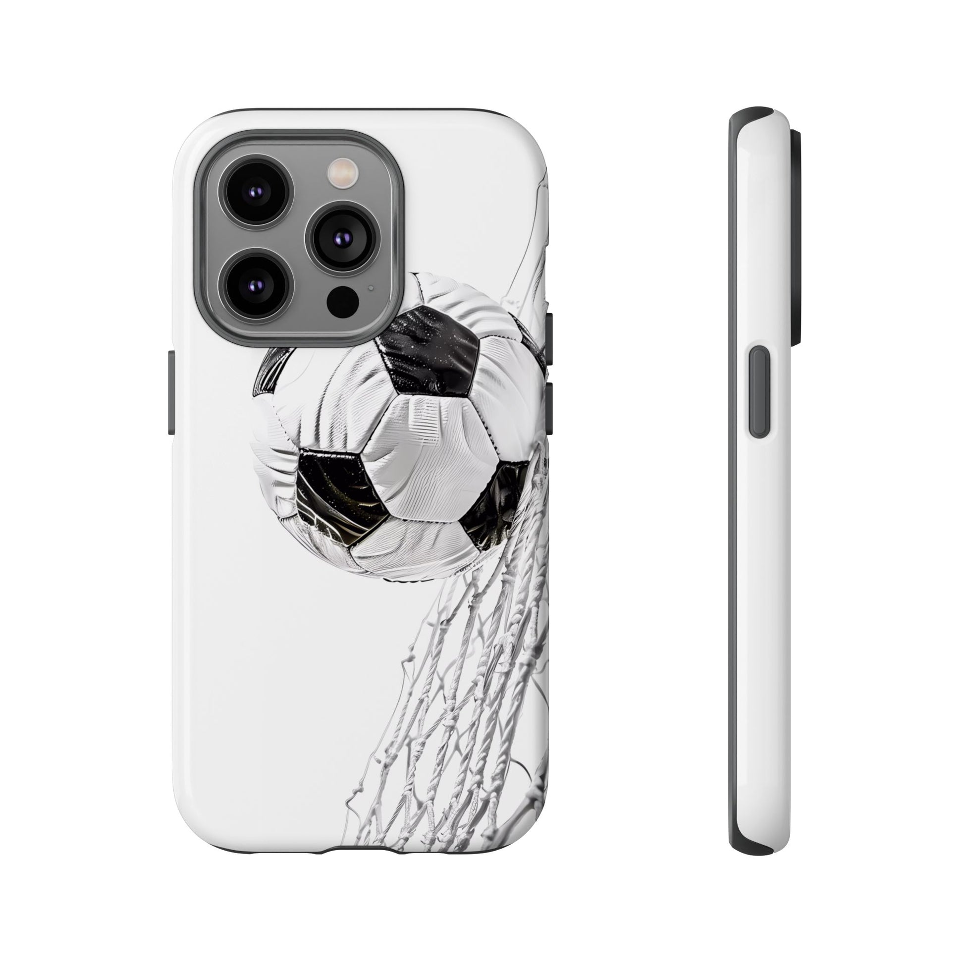A striking design that captures the exact moment a soccer ball is about to find the back of the net, rendered in high resolution to showcase every texture and detail.