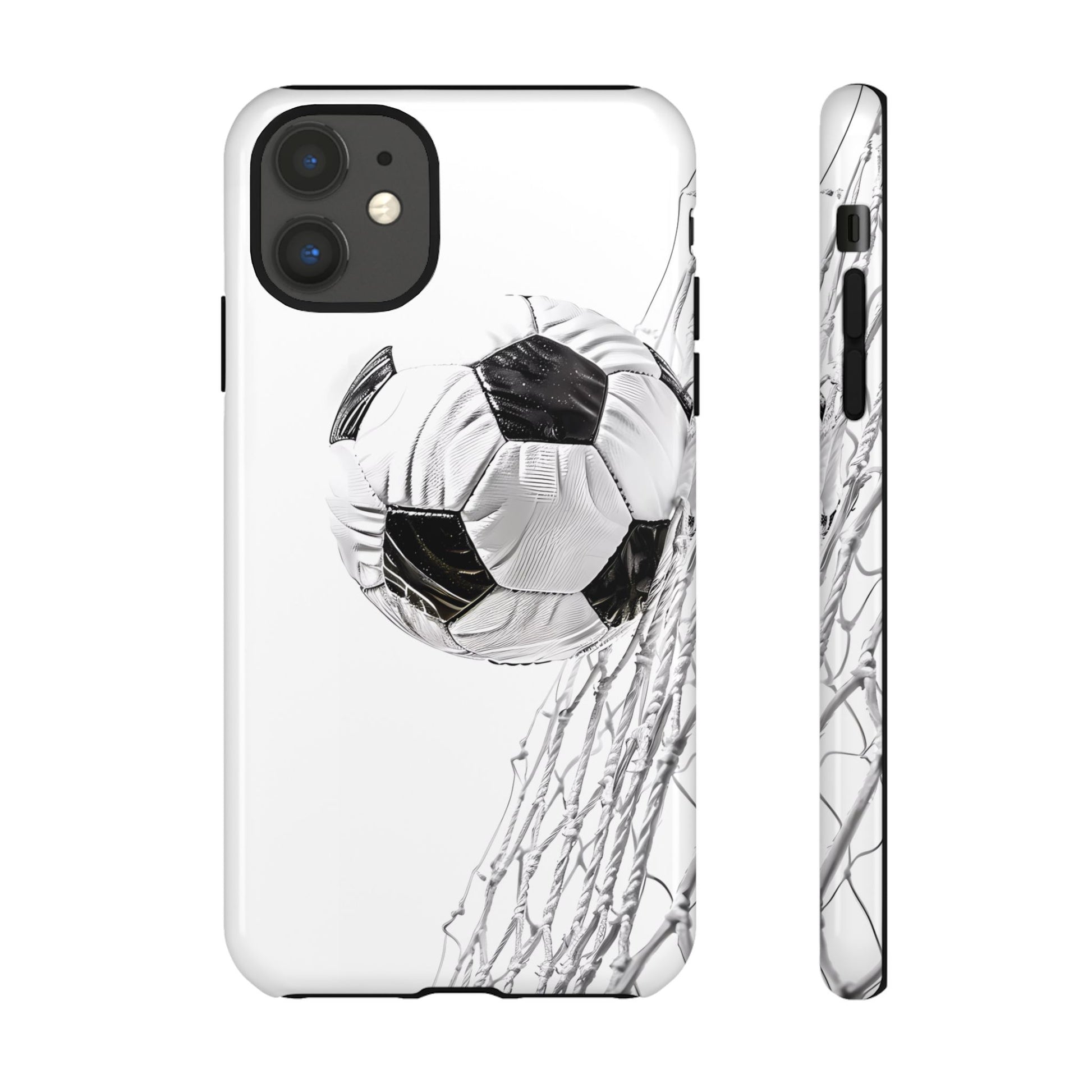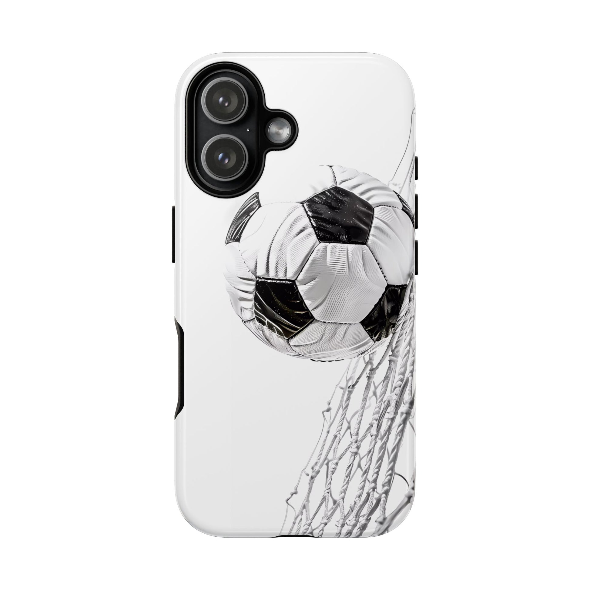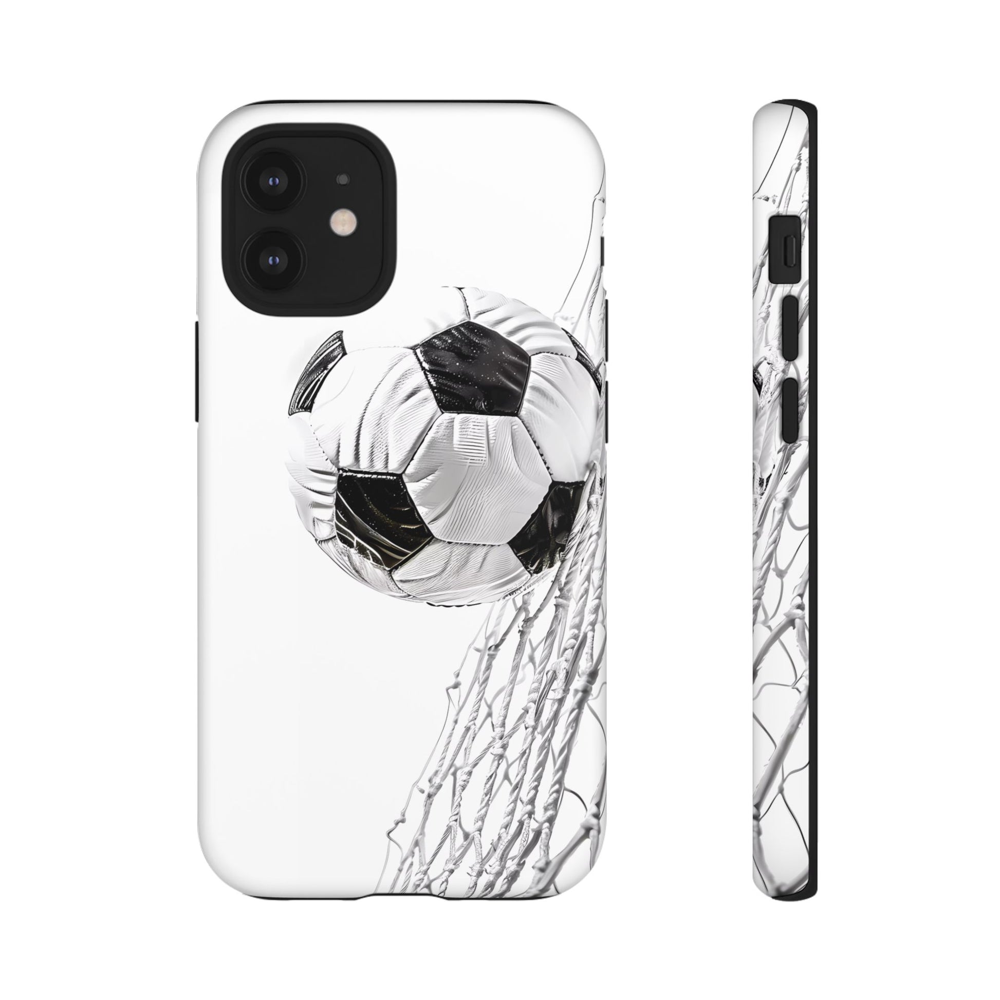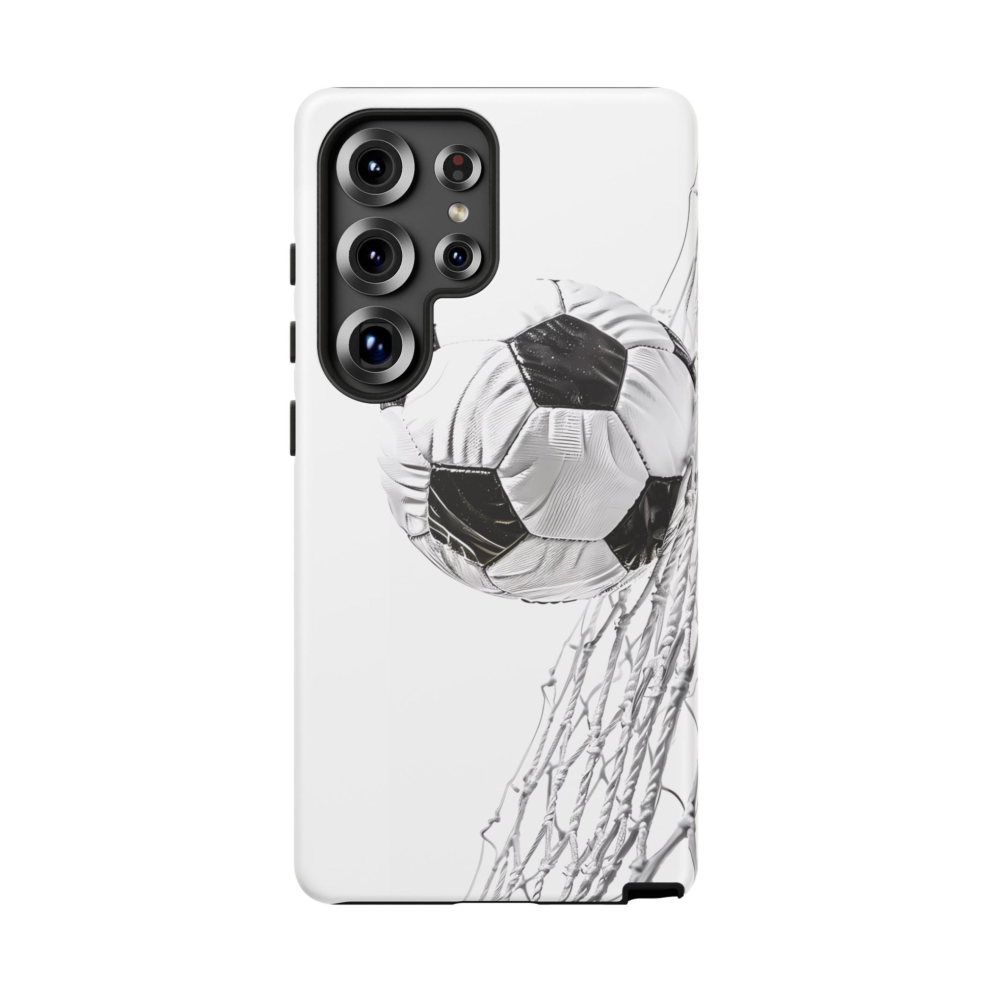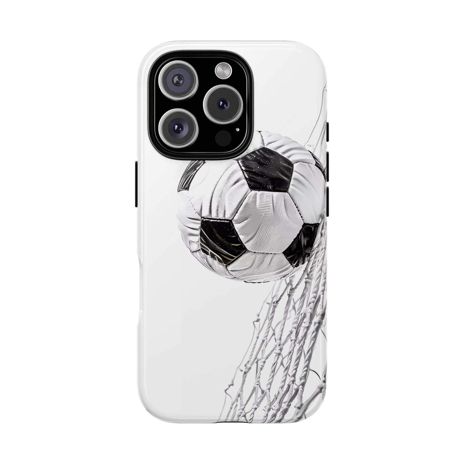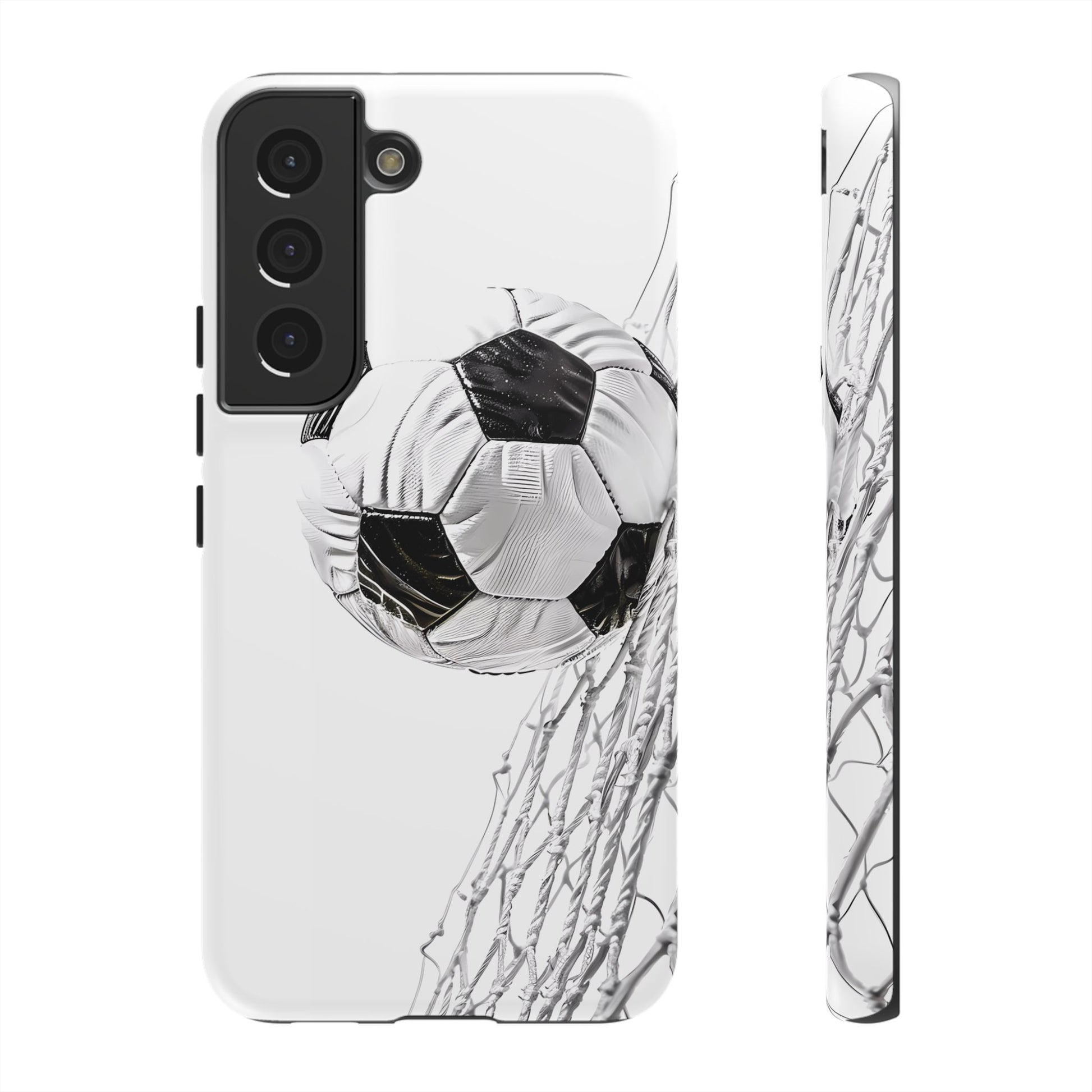 A striking design that captures the exact moment a soccer ball is about to find the back of the net, rendered in high resolution to showcase every texture and detail.