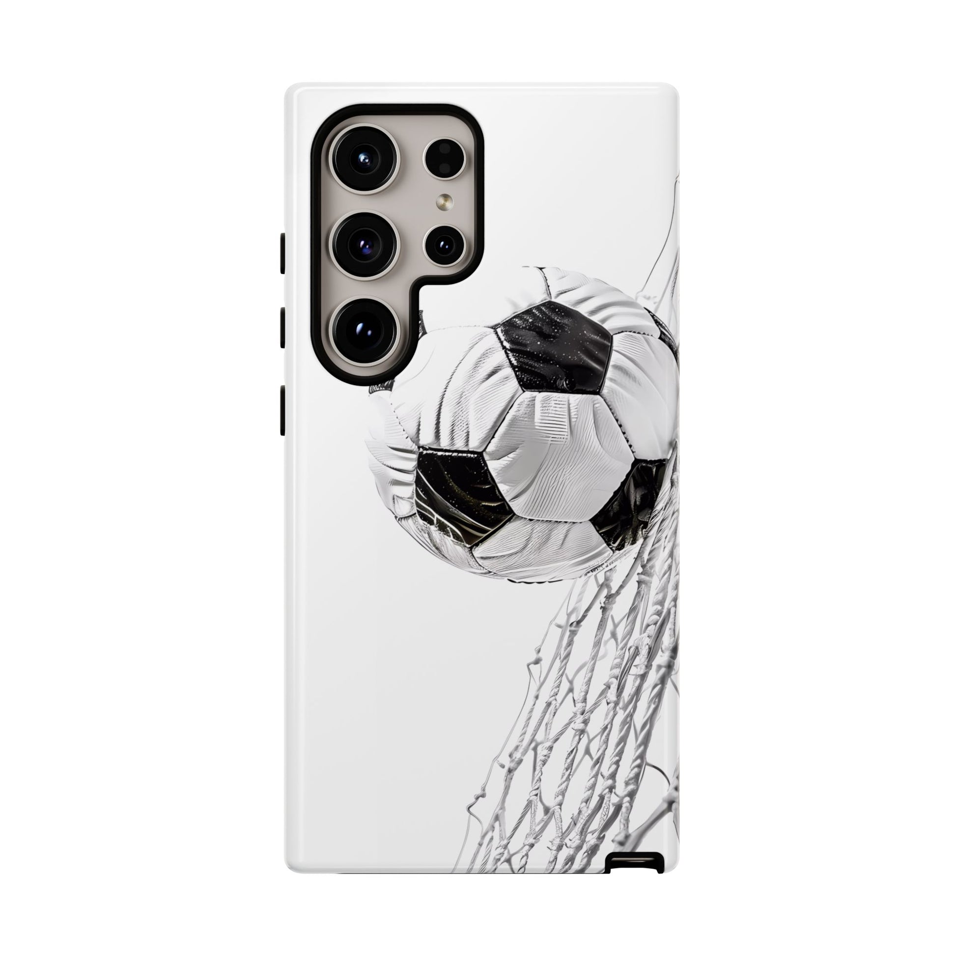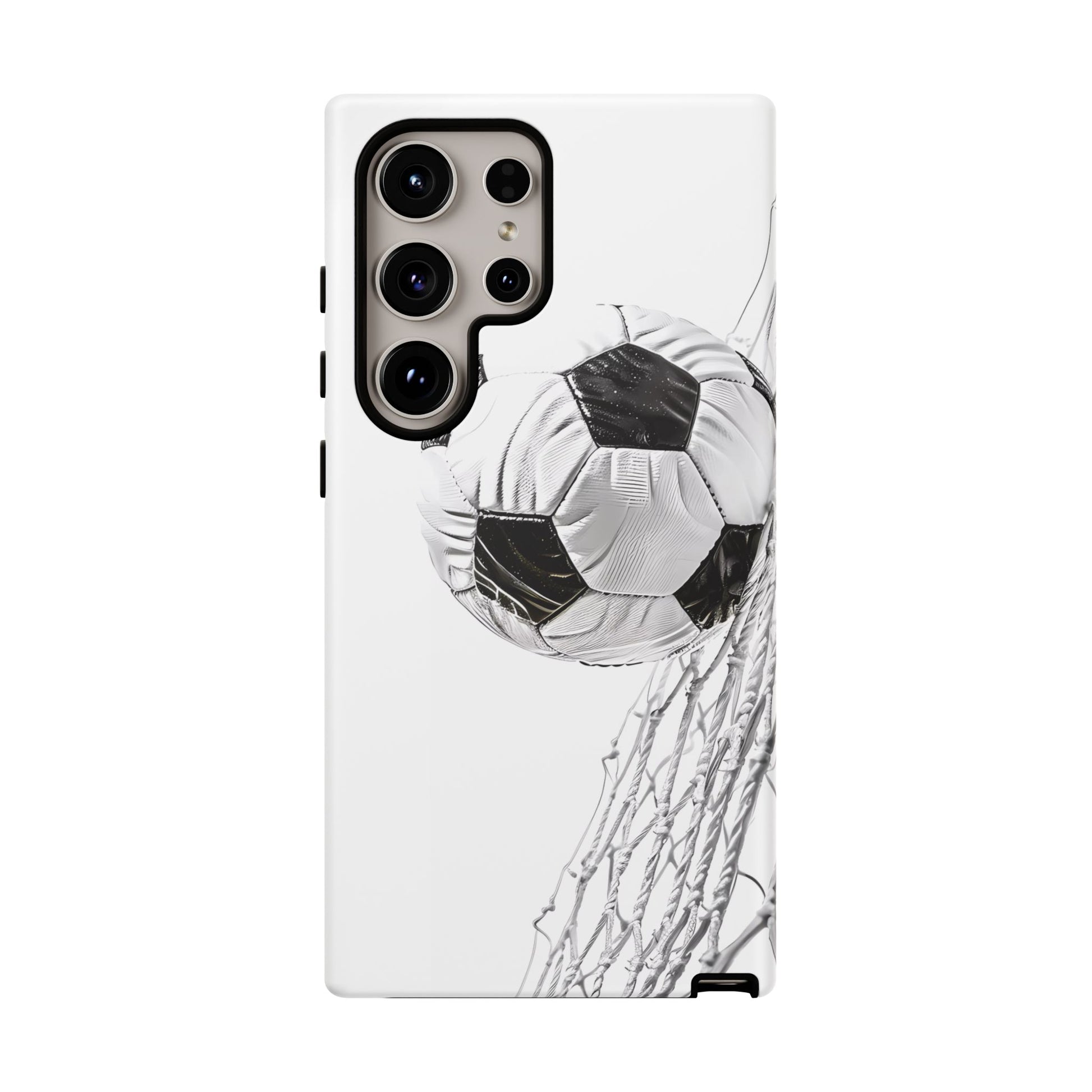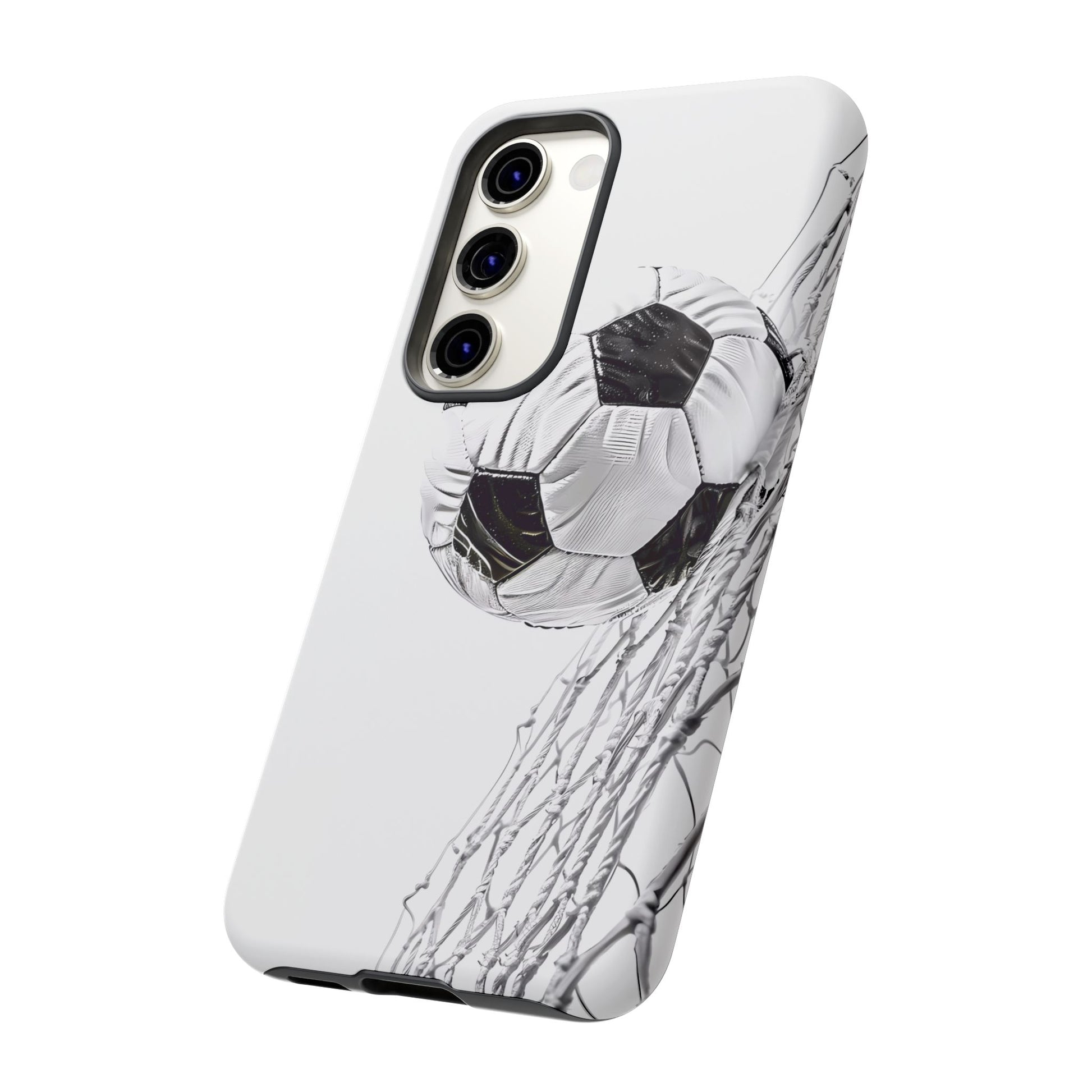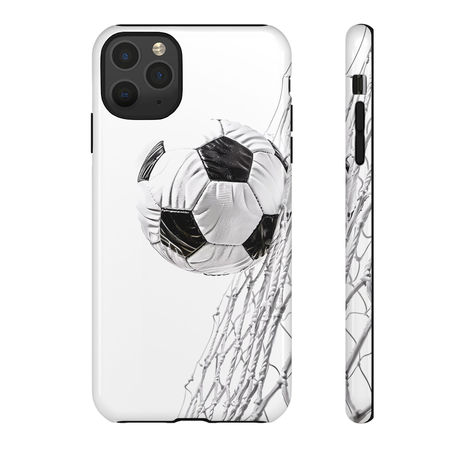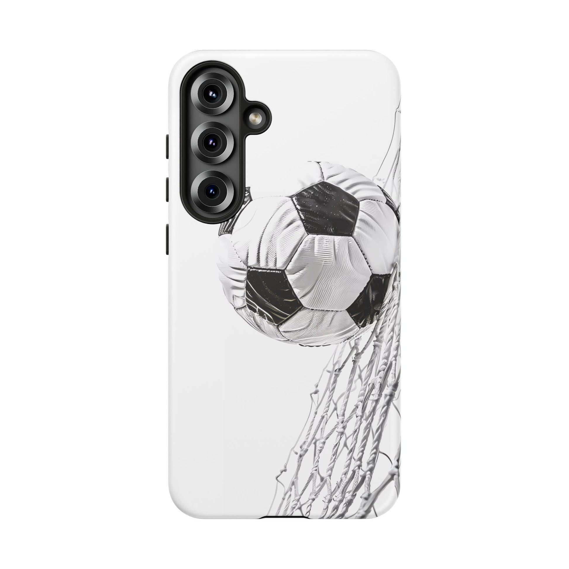 A striking design that captures the exact moment a soccer ball is about to find the back of the net, rendered in high resolution to showcase every texture and detail.