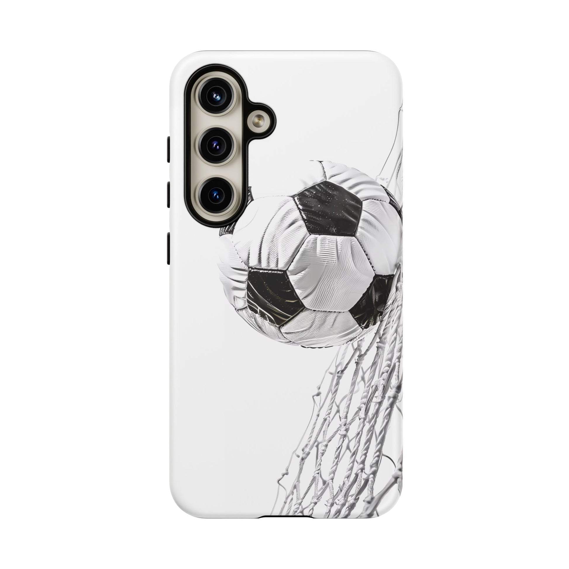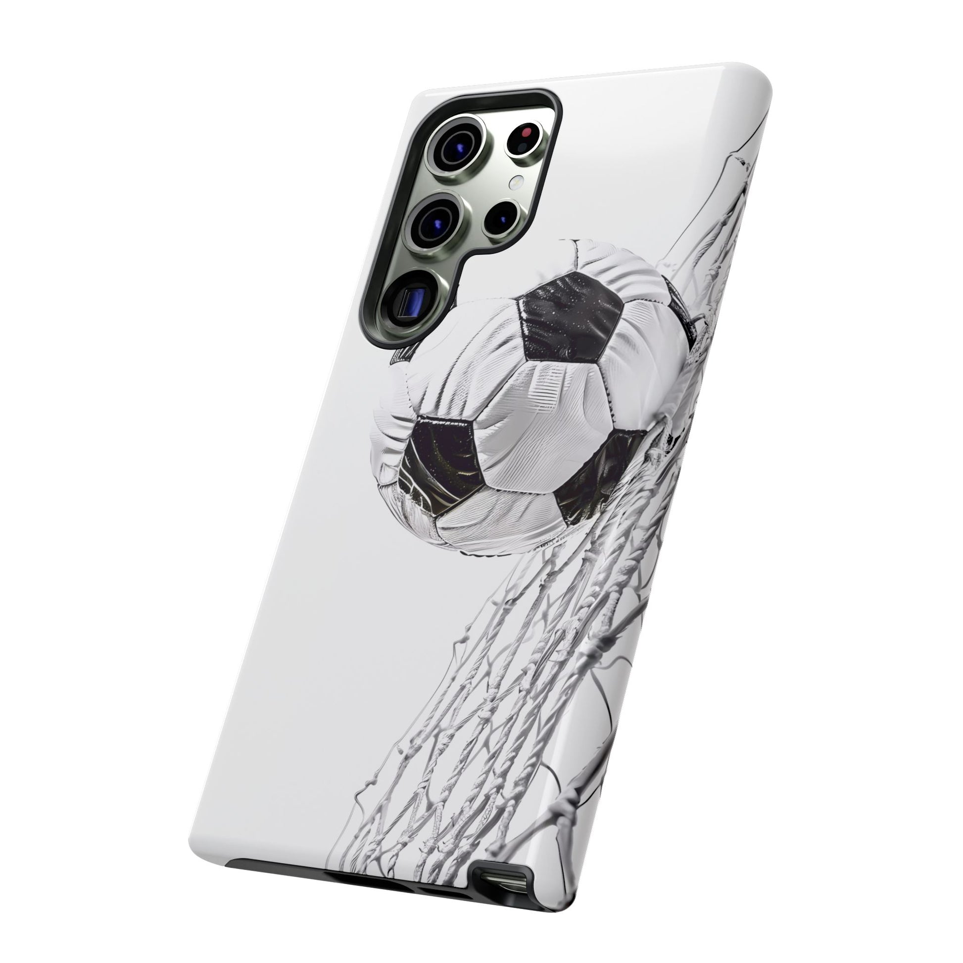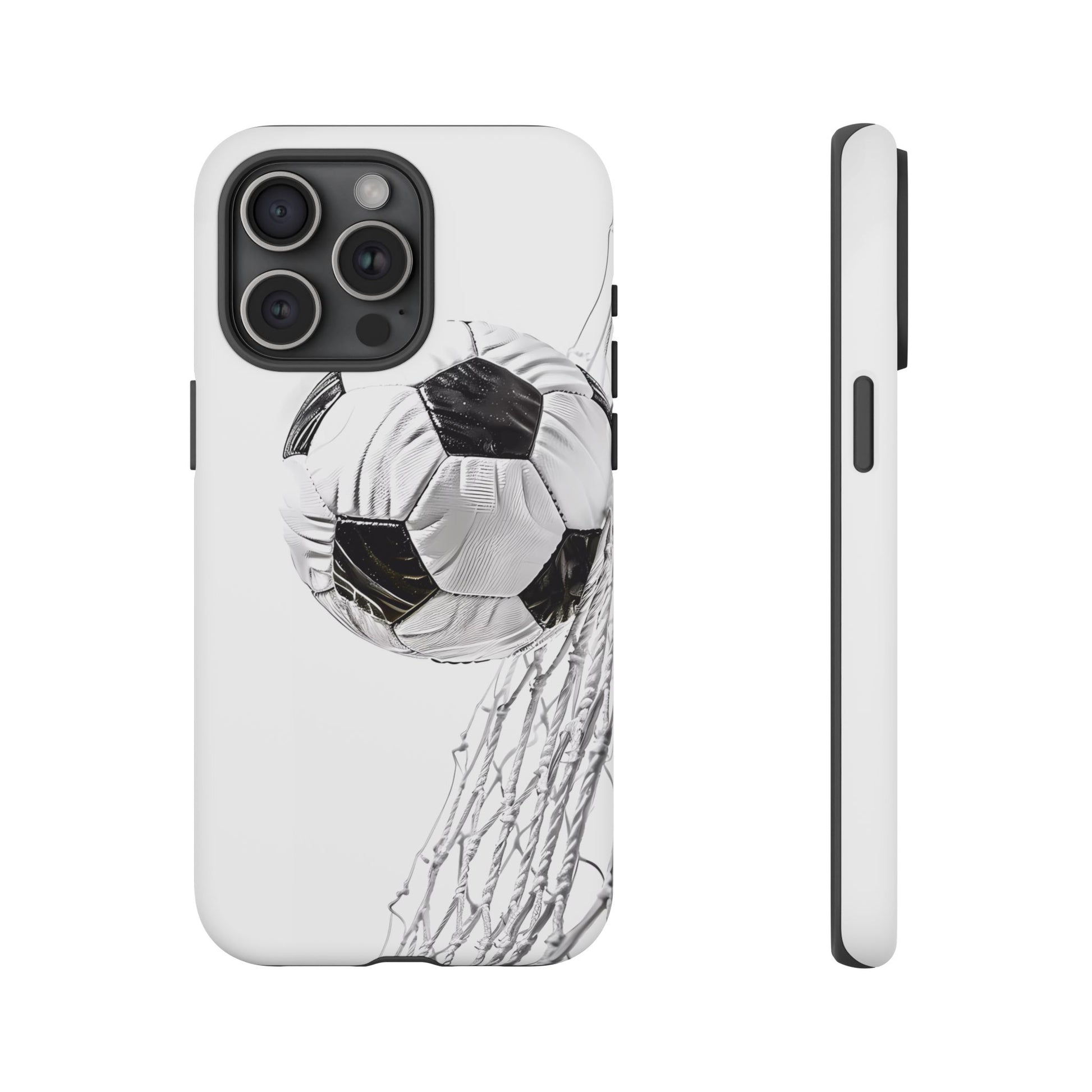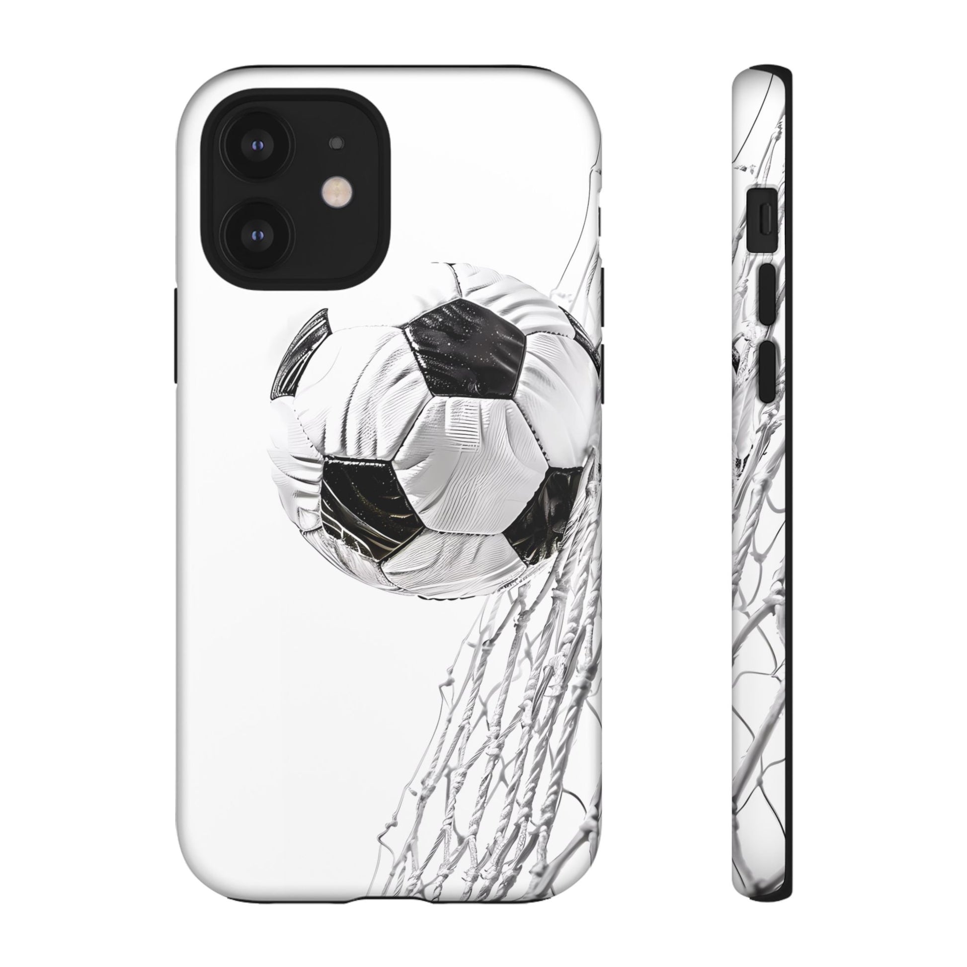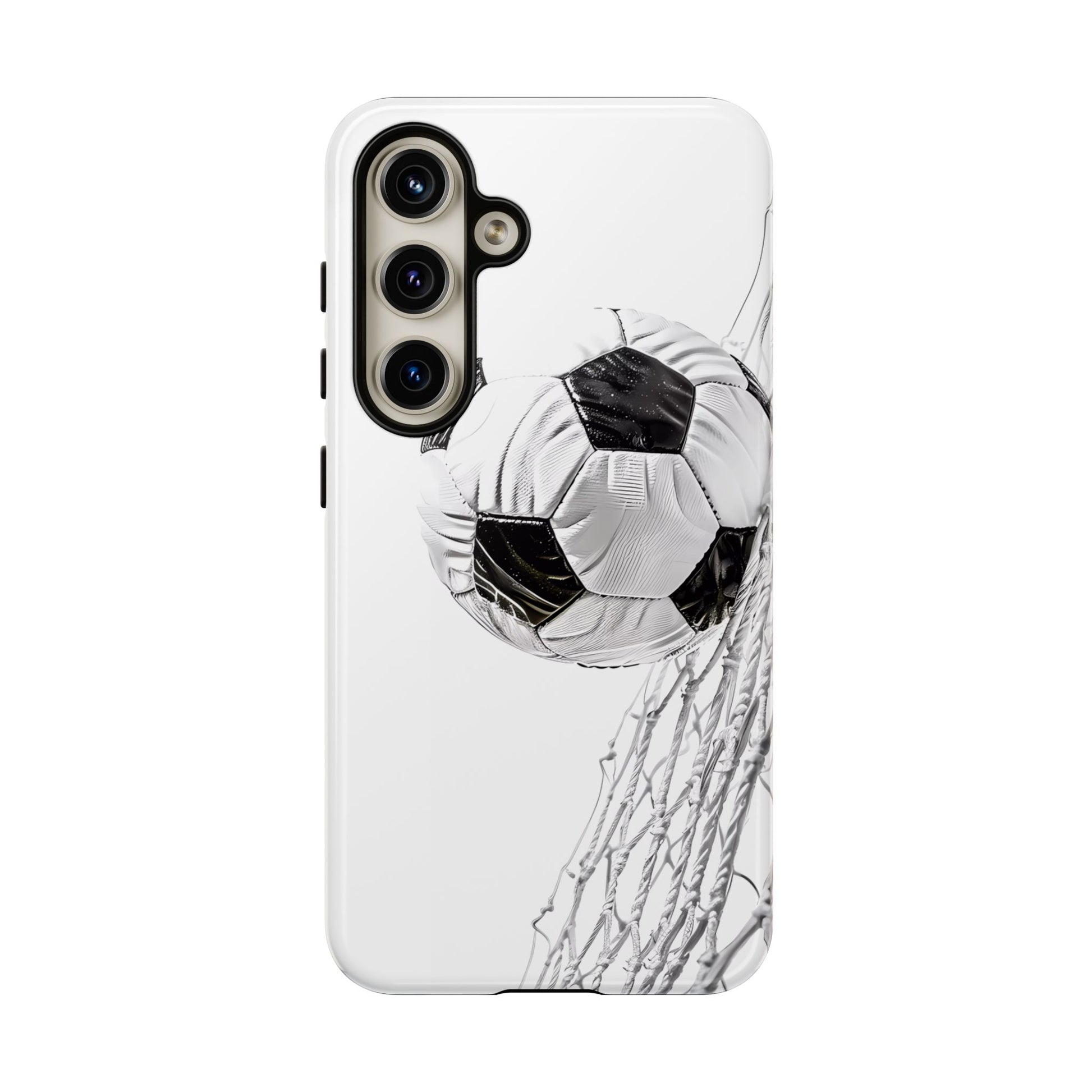 A striking design that captures the exact moment a soccer ball is about to find the back of the net, rendered in high resolution to showcase every texture and detail.