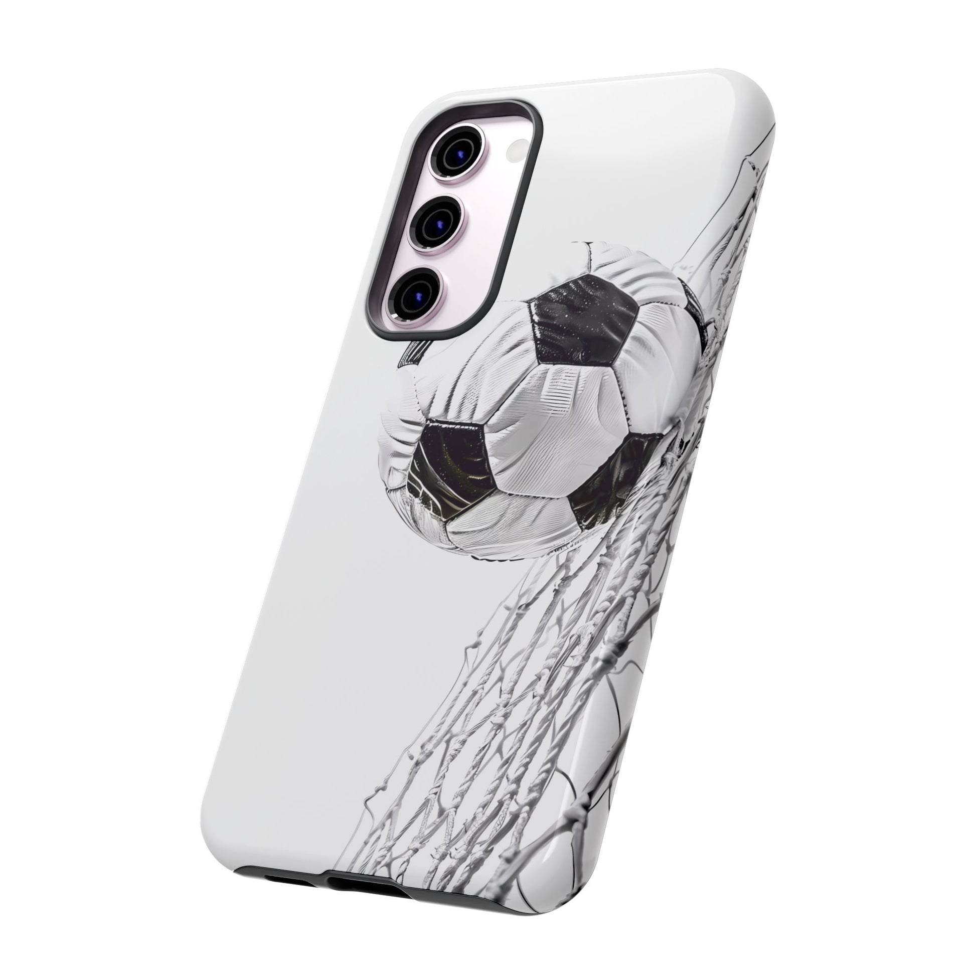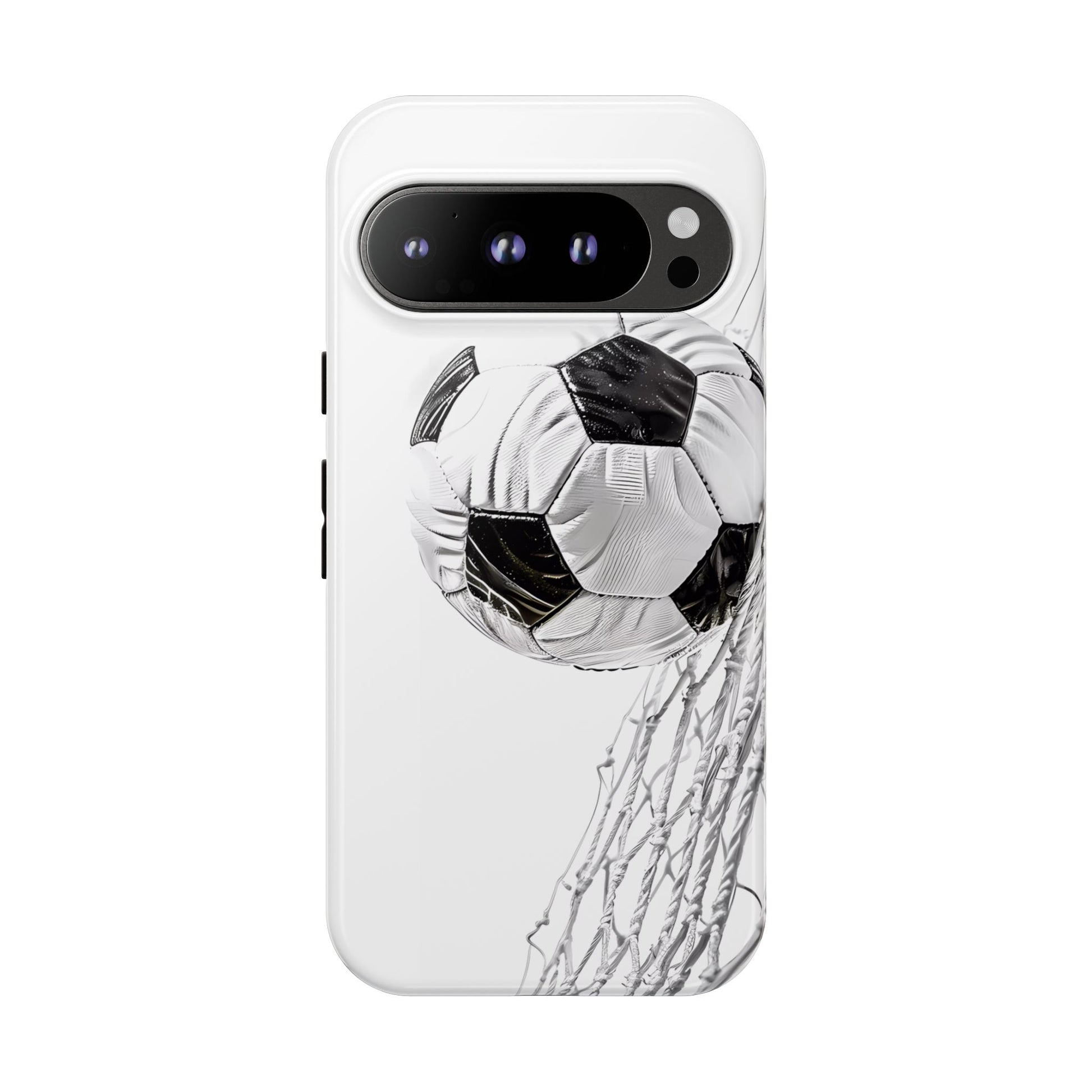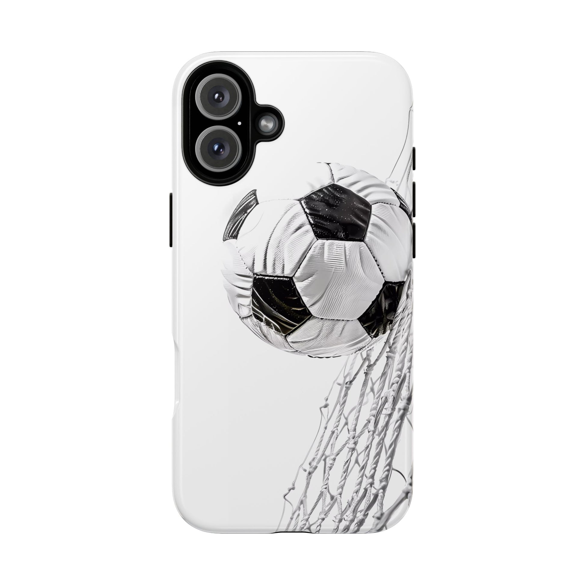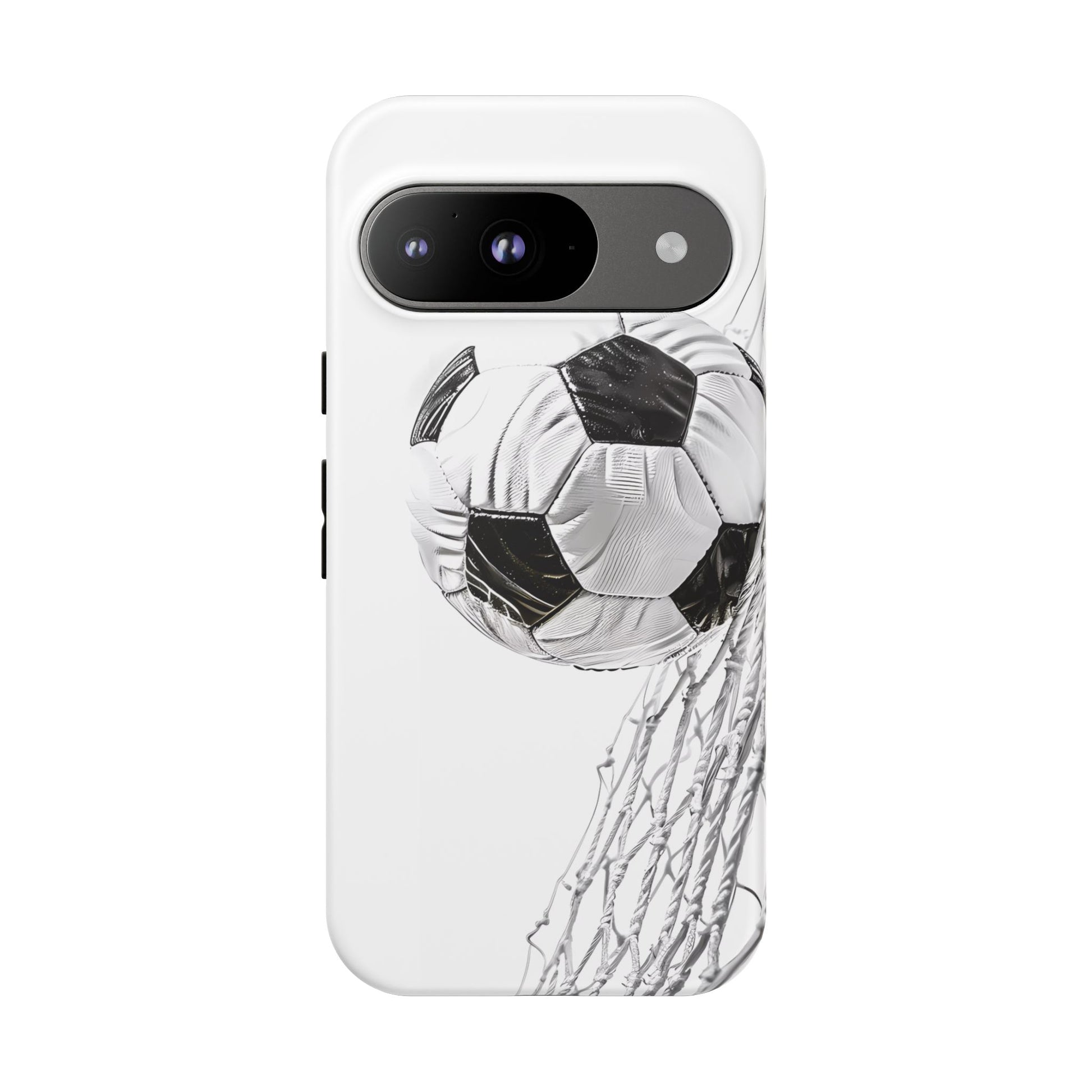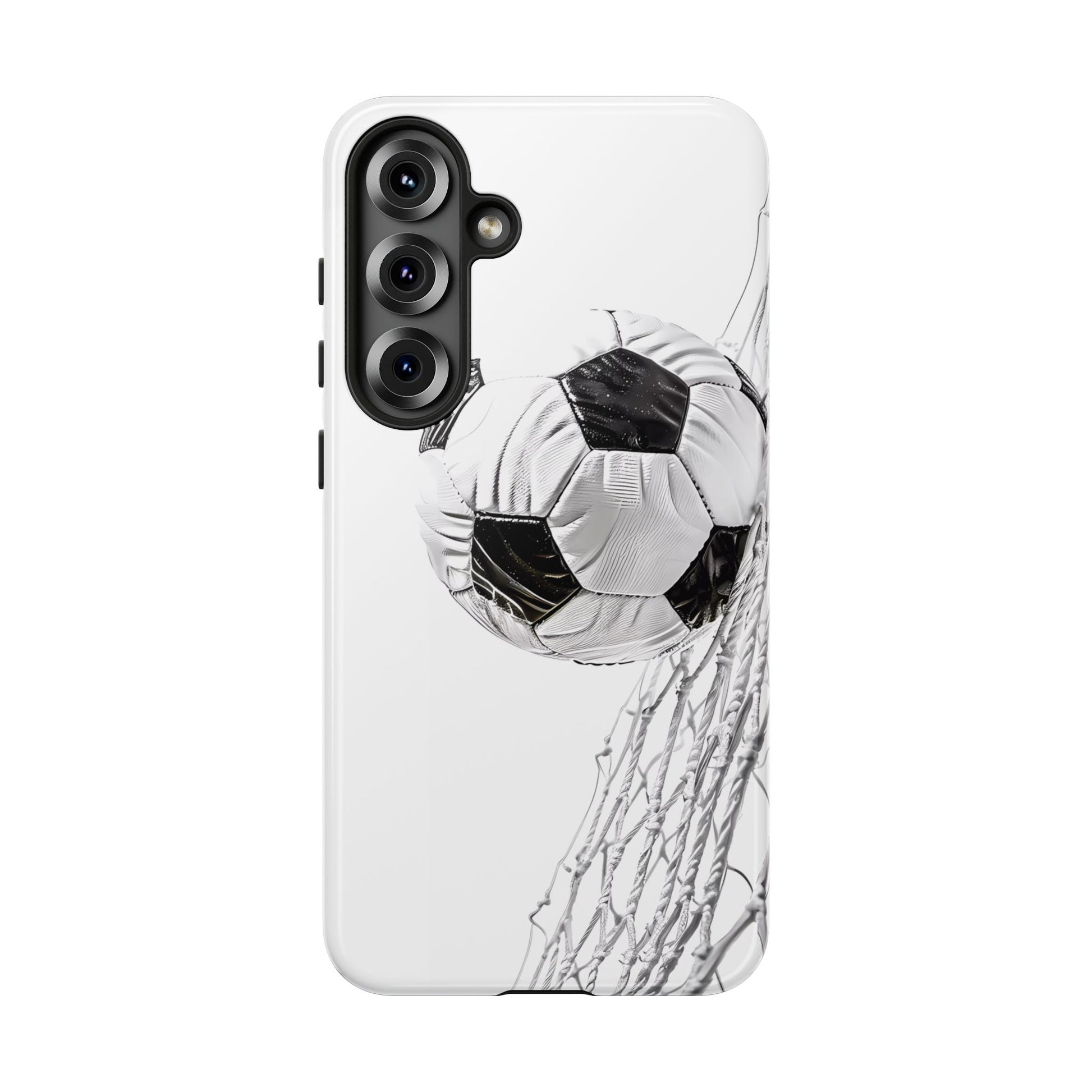 A striking design that captures the exact moment a soccer ball is about to find the back of the net, rendered in high resolution to showcase every texture and detail.