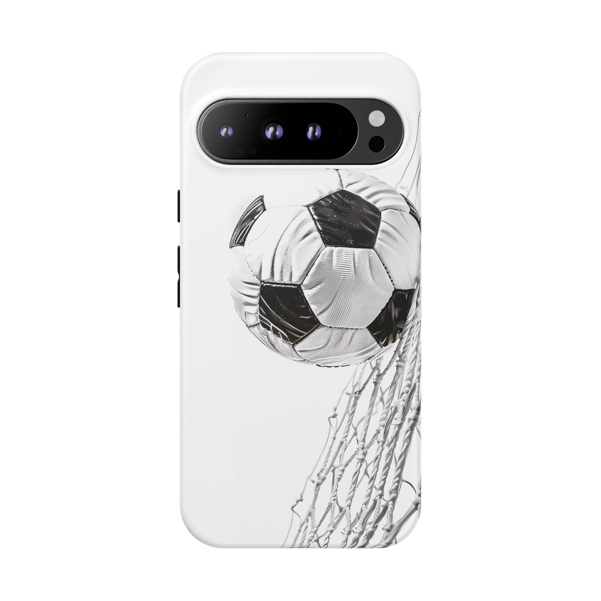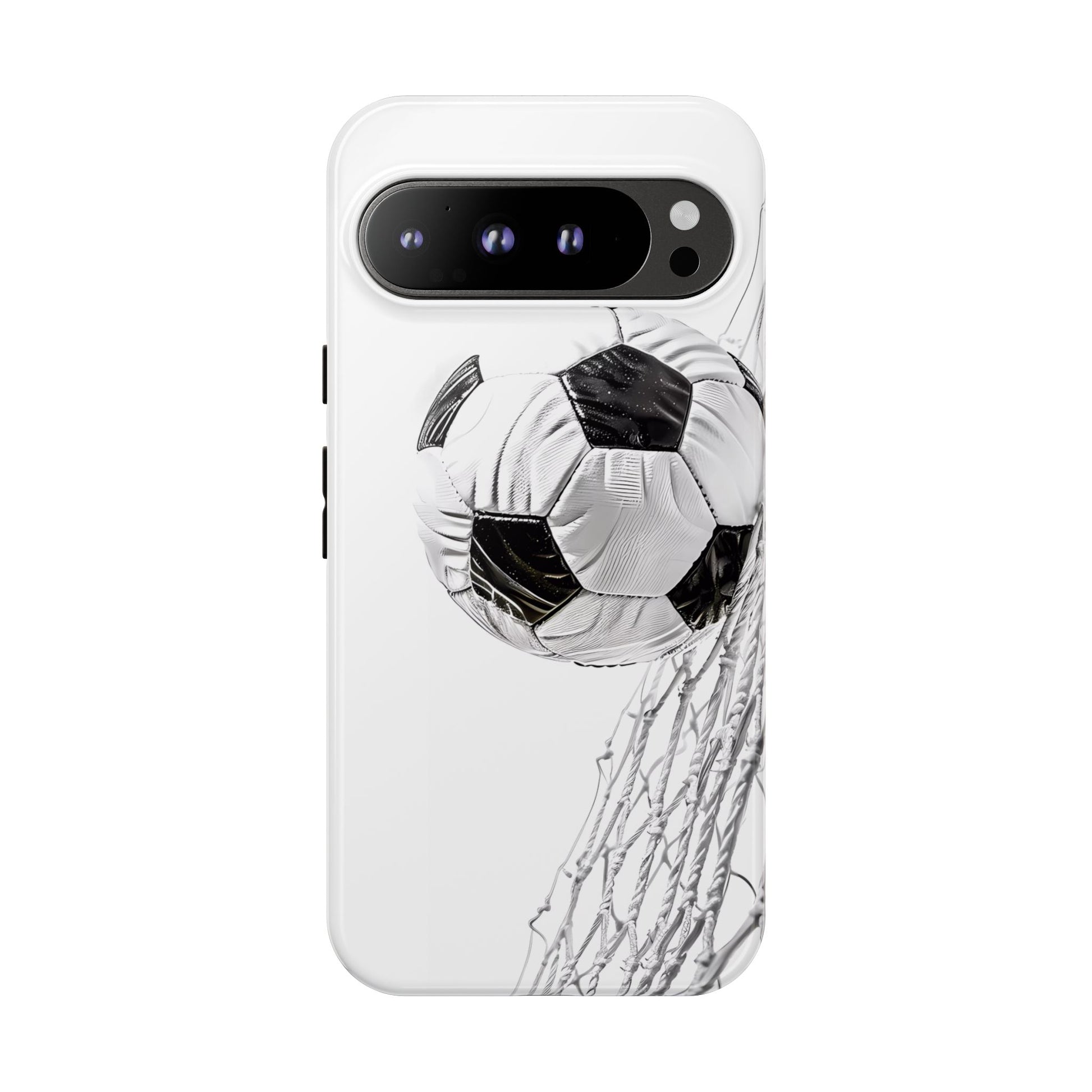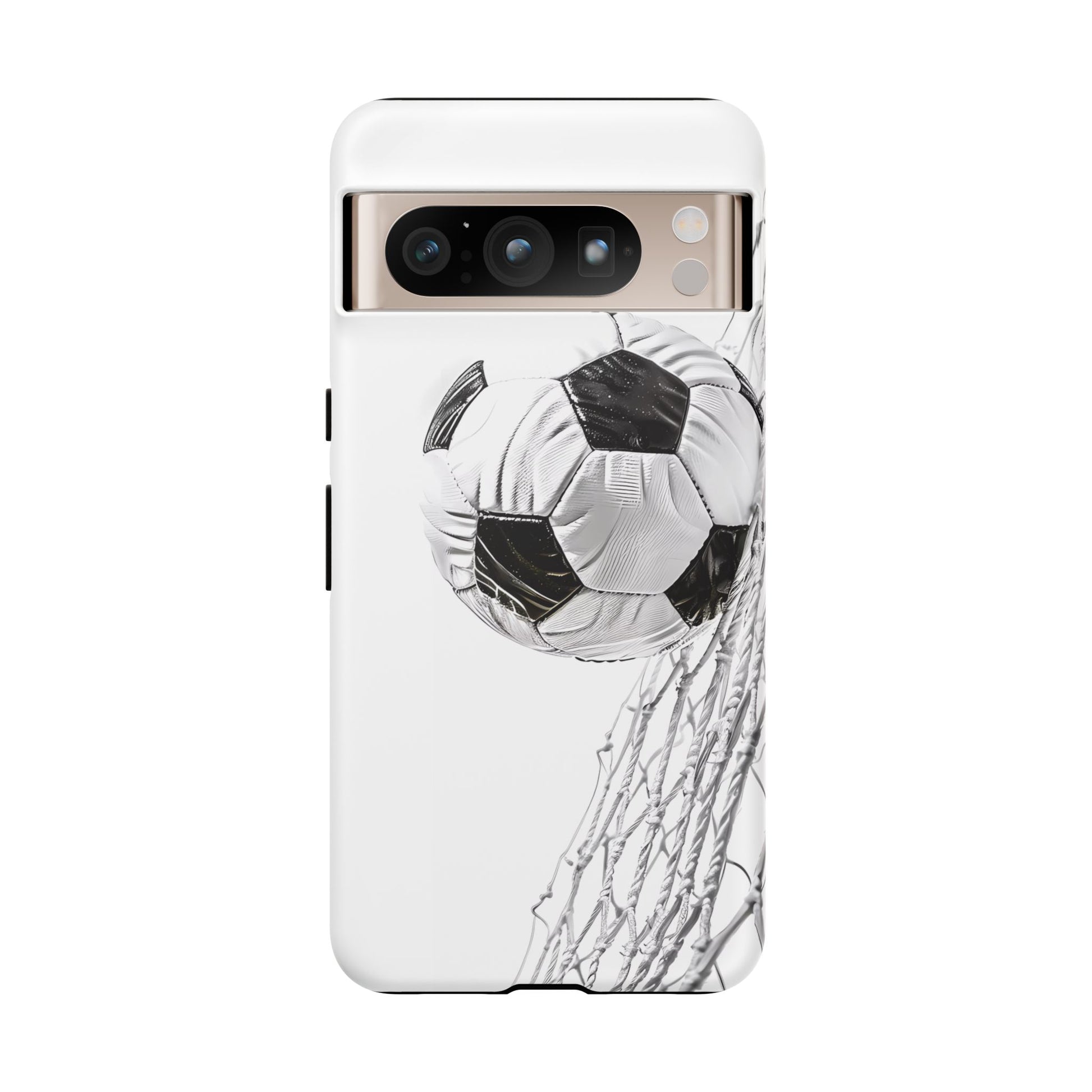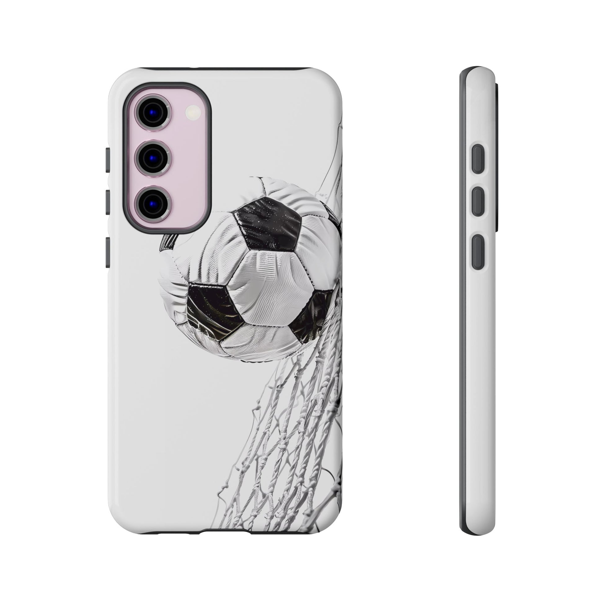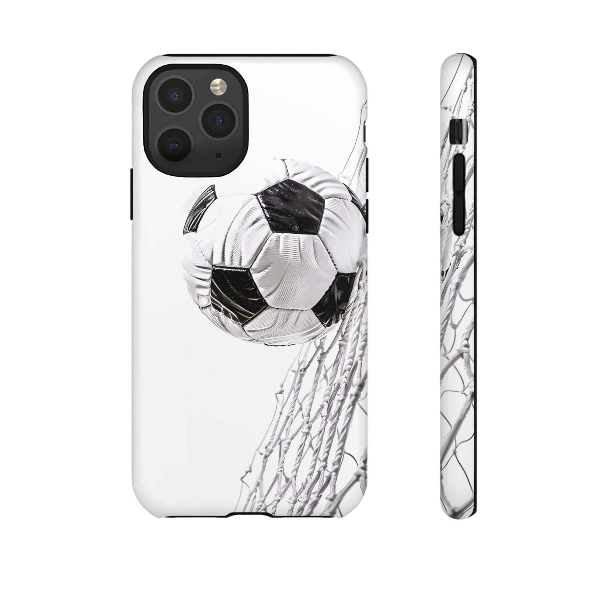 A striking design that captures the exact moment a soccer ball is about to find the back of the net, rendered in high resolution to showcase every texture and detail.