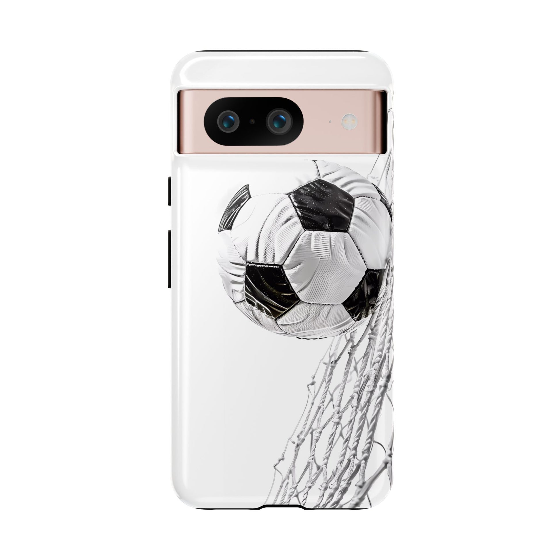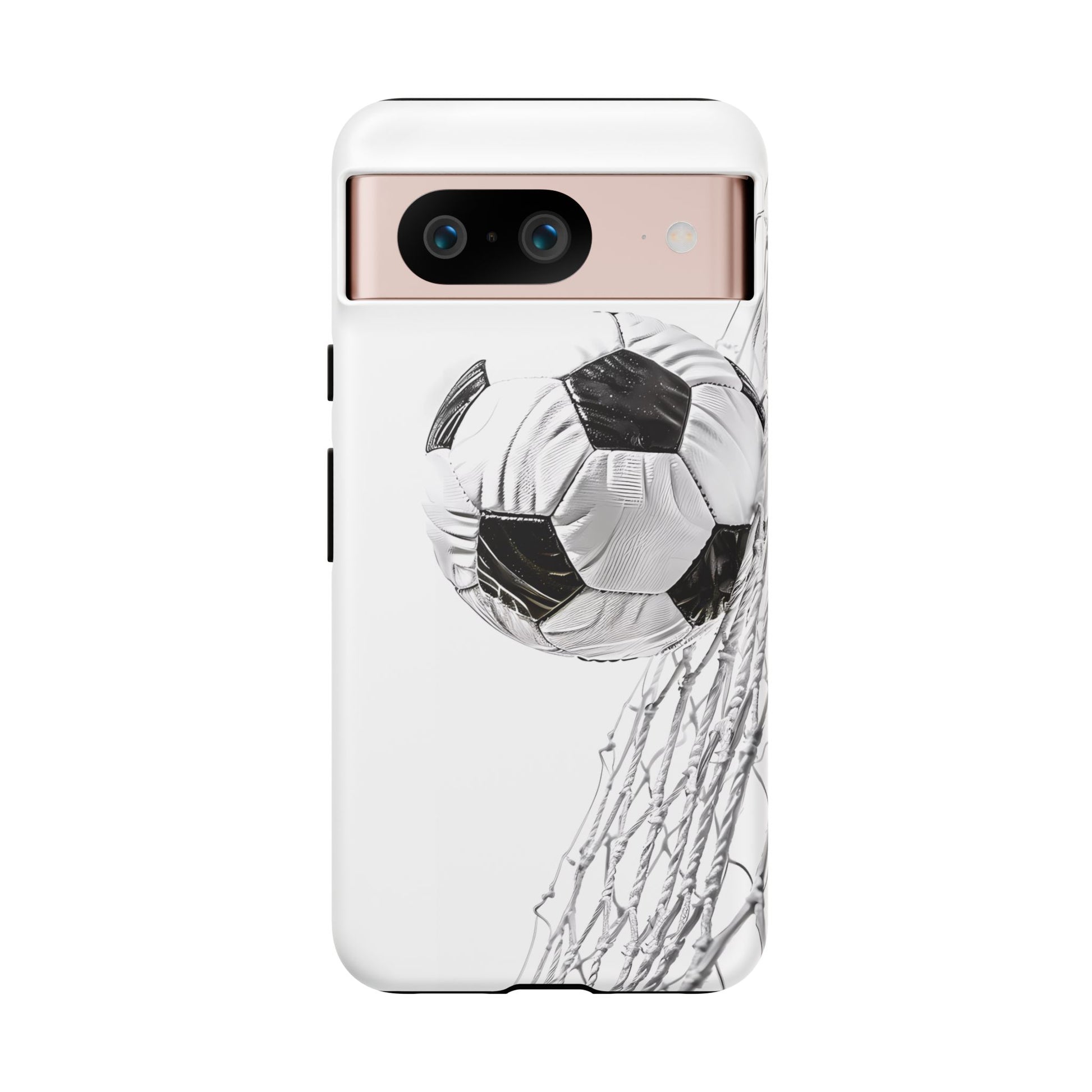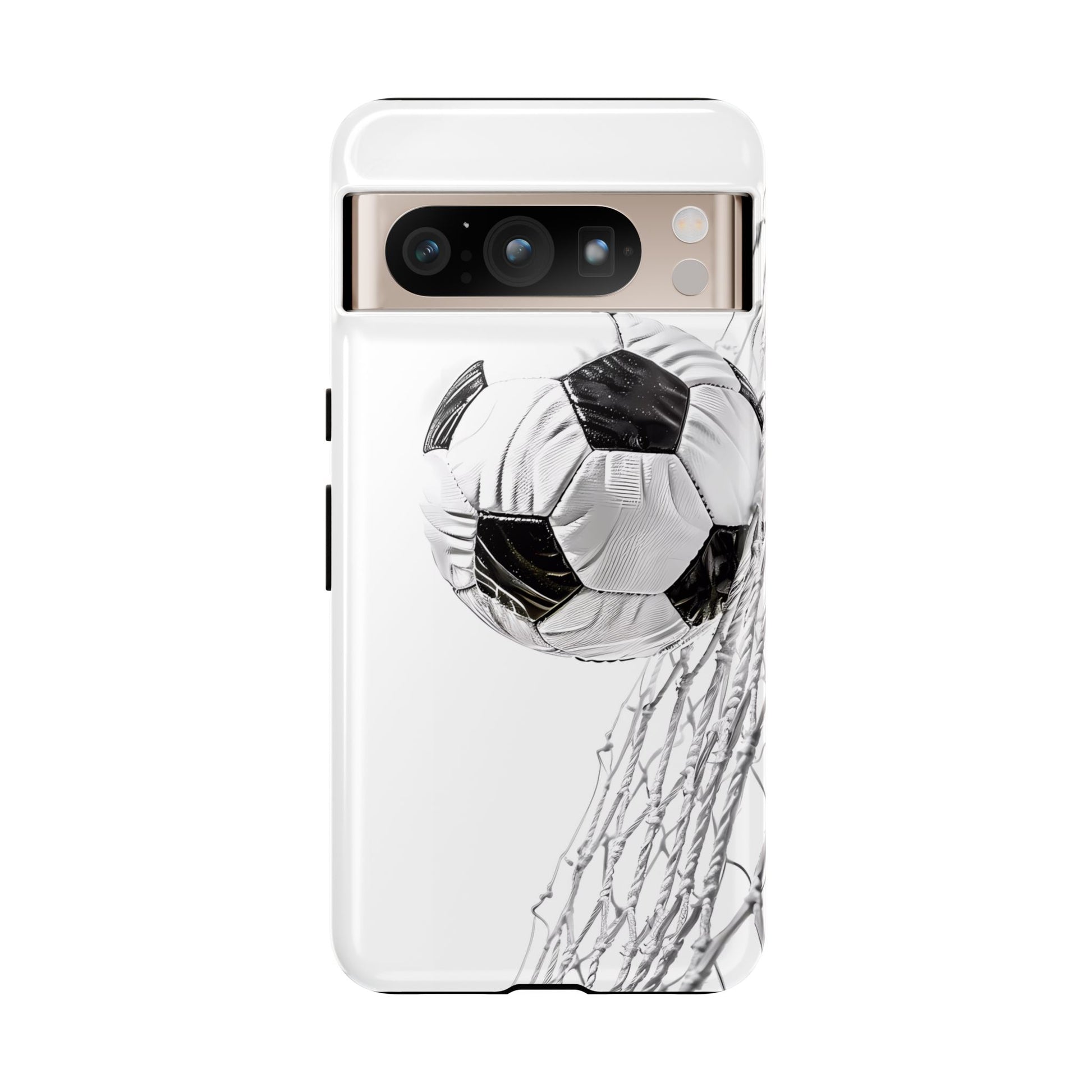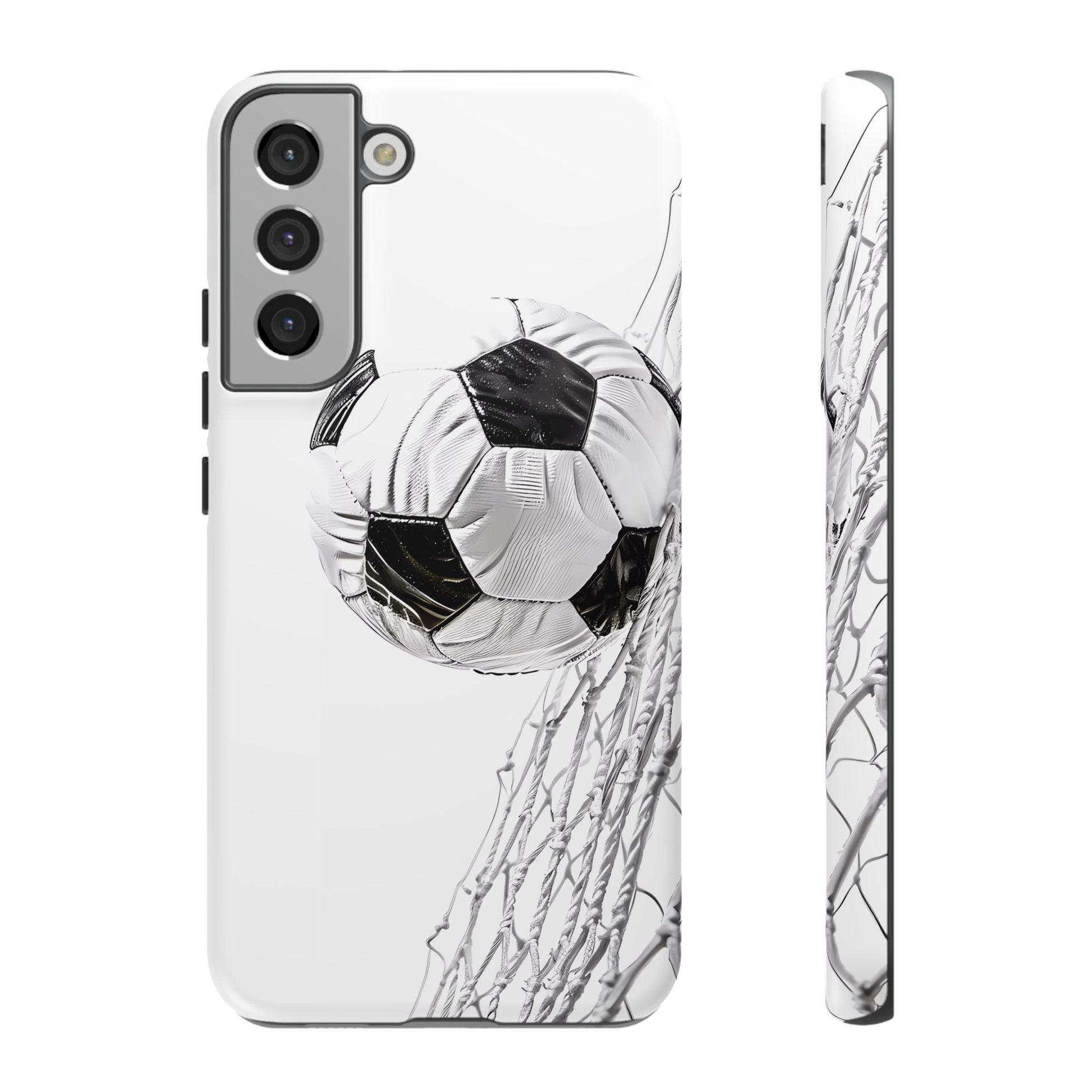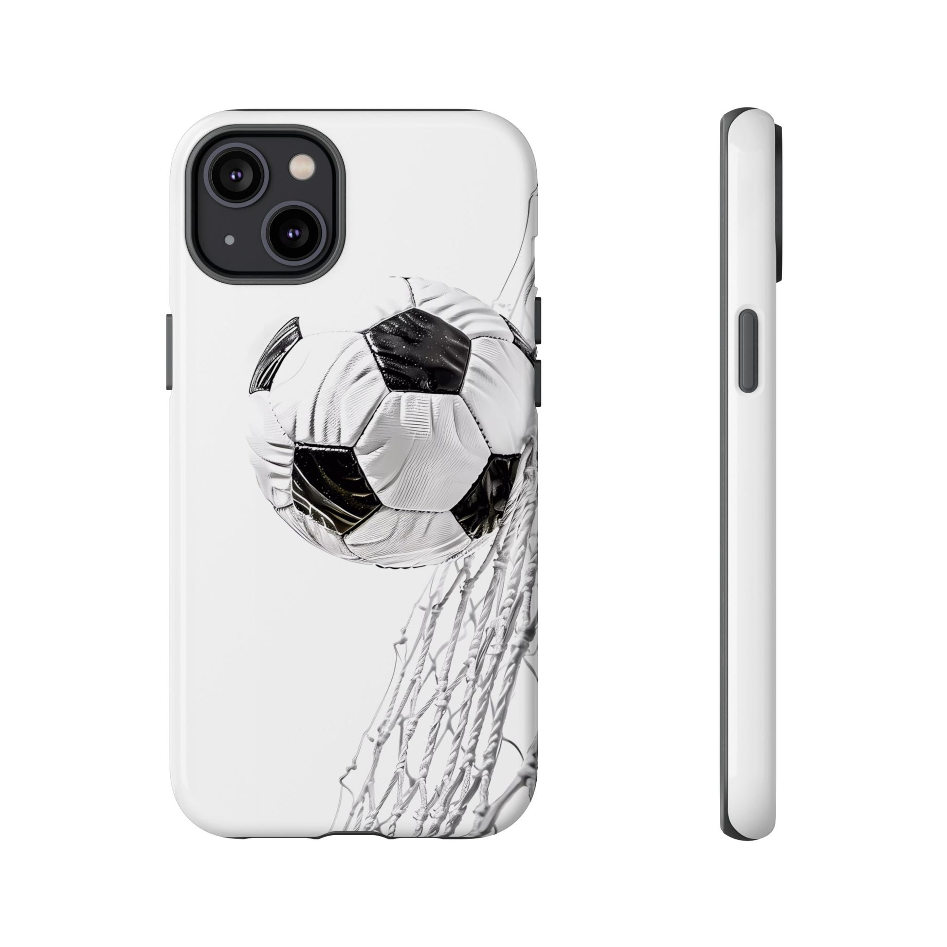 A striking design that captures the exact moment a soccer ball is about to find the back of the net, rendered in high resolution to showcase every texture and detail.