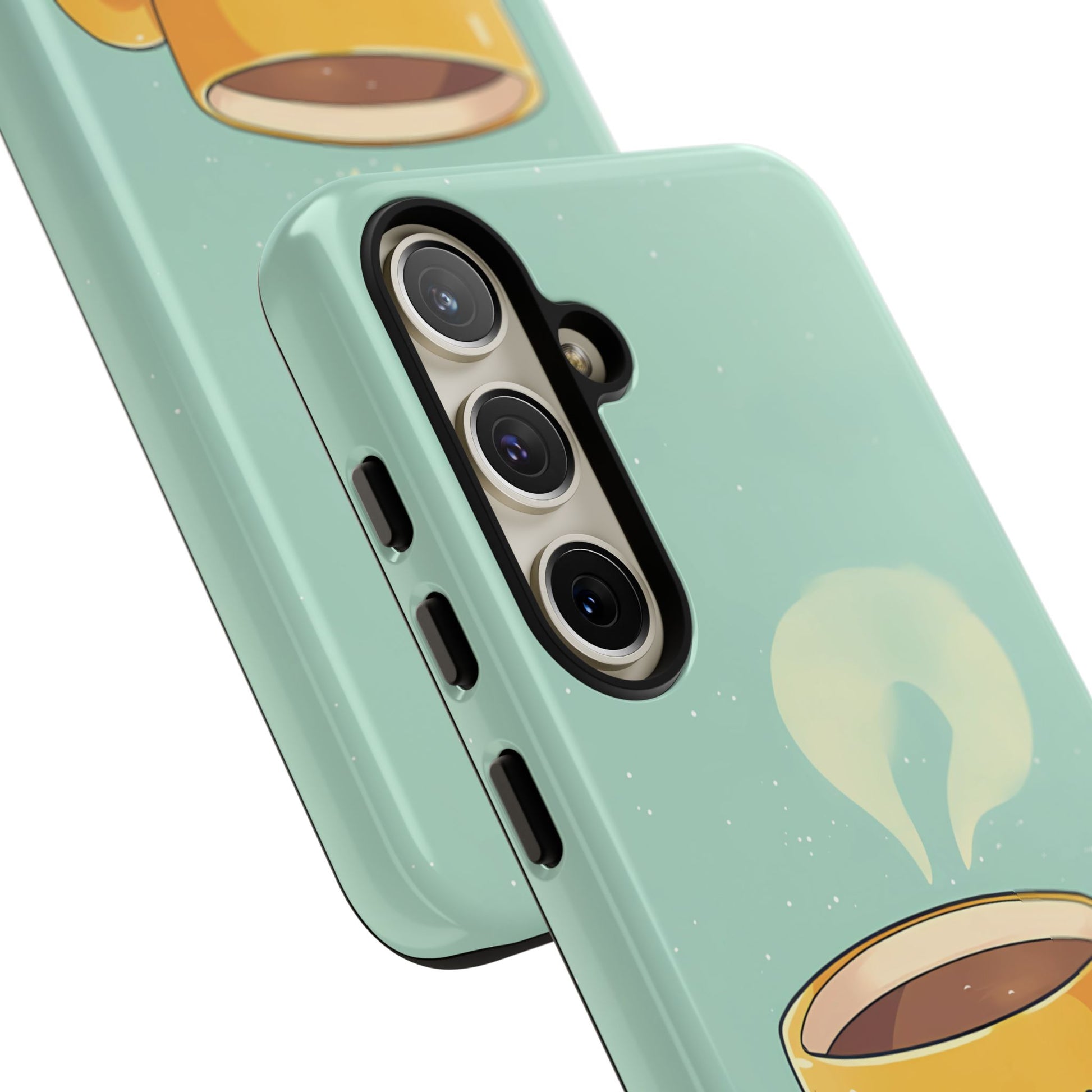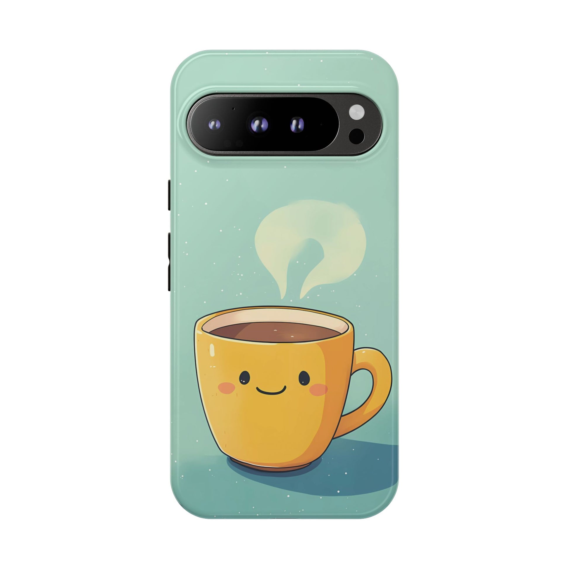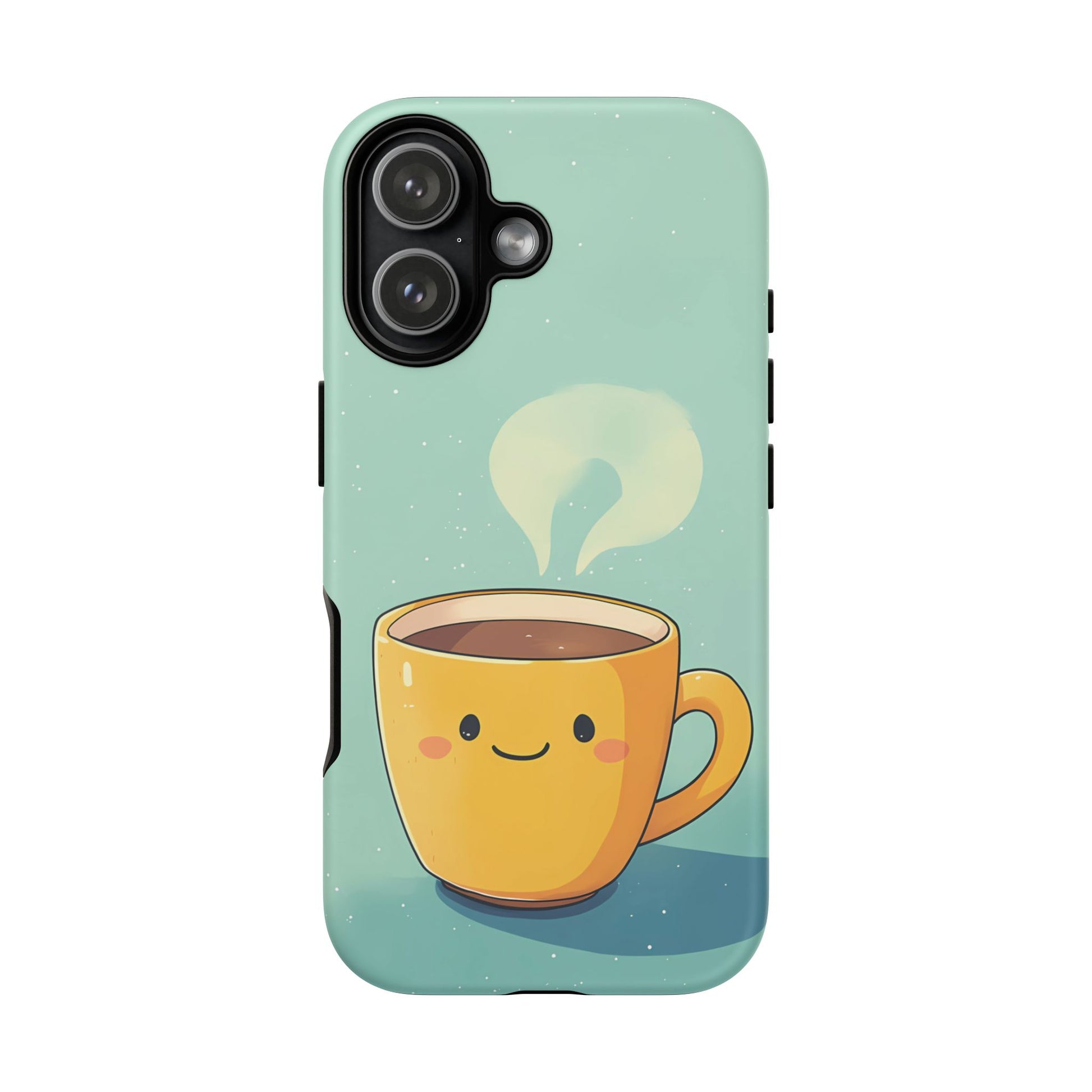 Start your day with a smile and a sip! This adorable phone case features a cheerful yellow coffee cup with a cute, cartoonish face, bringing warmth and positivity wherever you go.