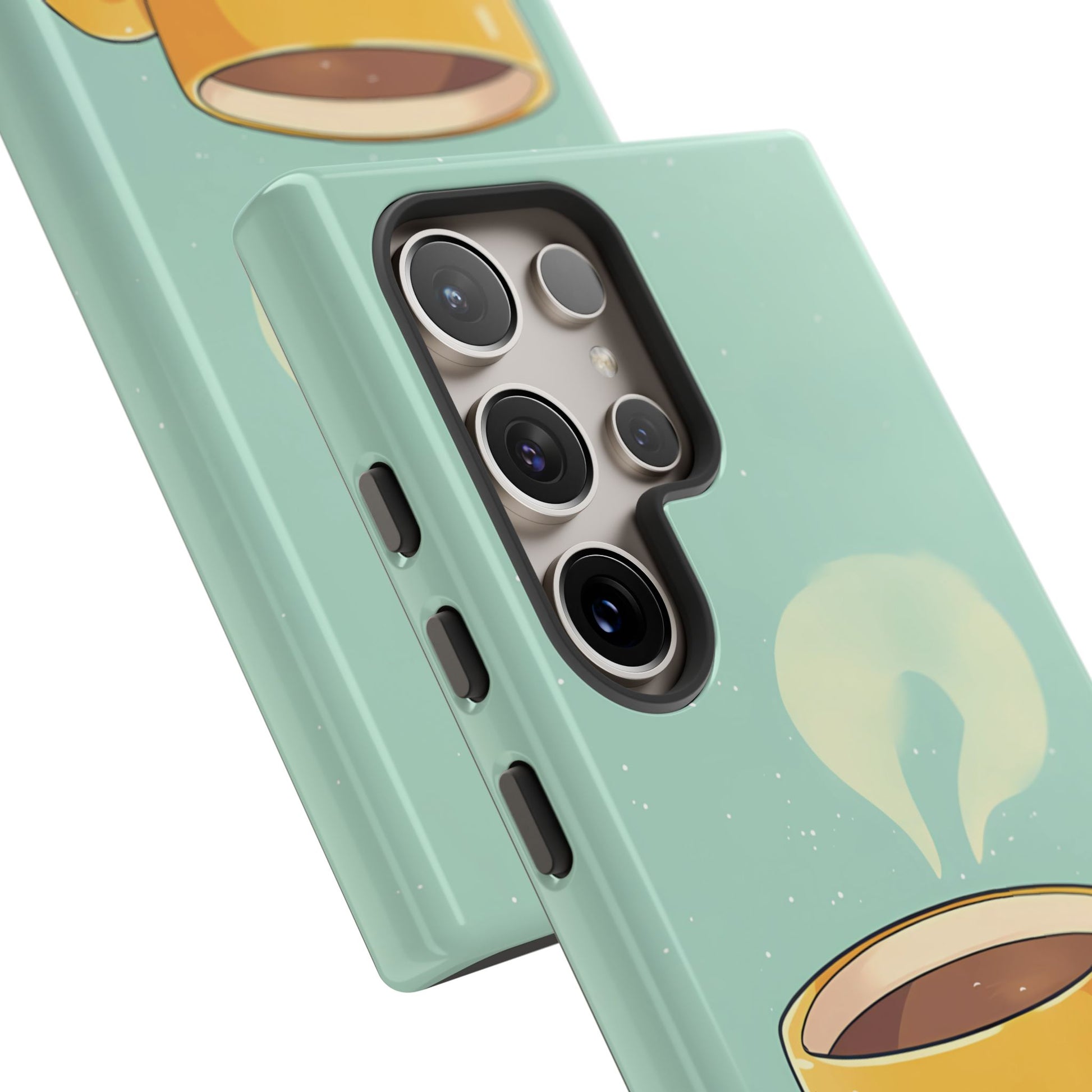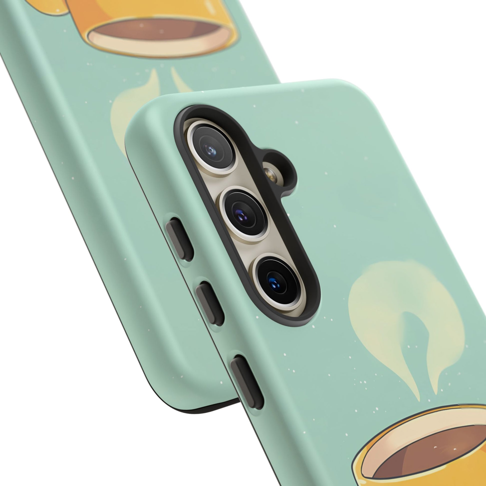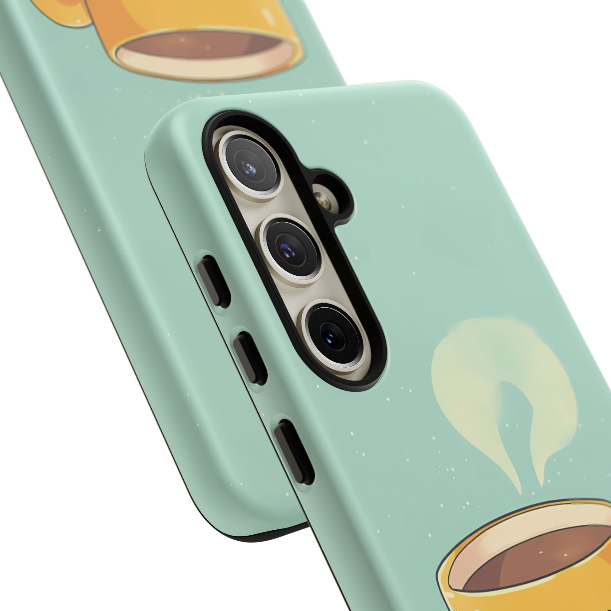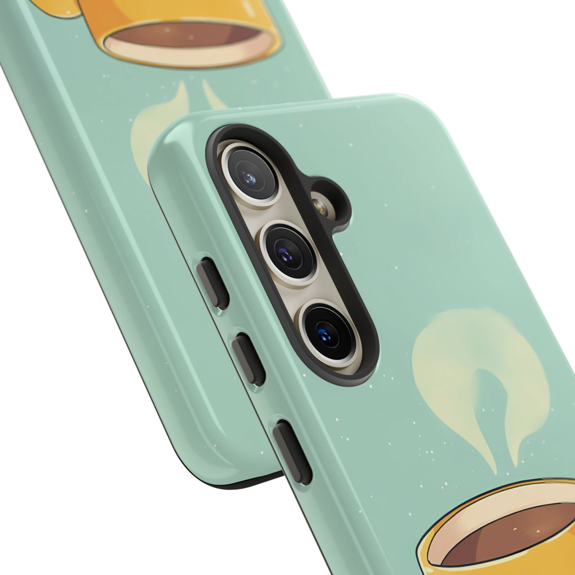 Start your day with a smile and a sip! This adorable phone case features a cheerful yellow coffee cup with a cute, cartoonish face, bringing warmth and positivity wherever you go.