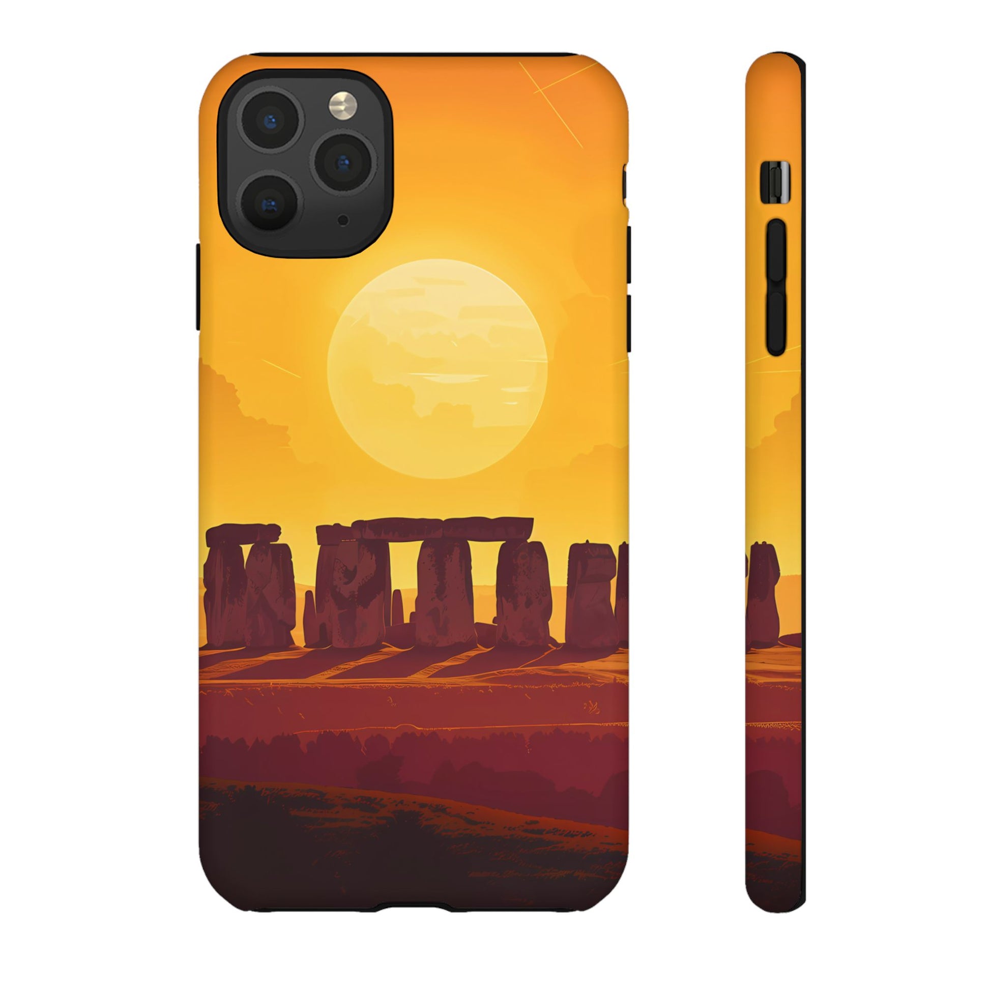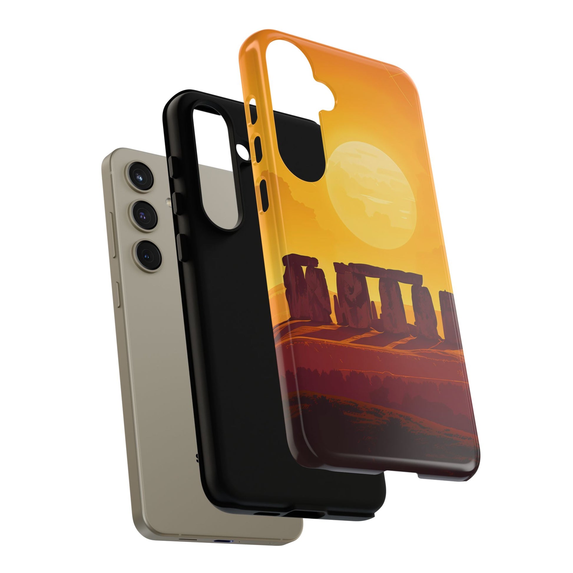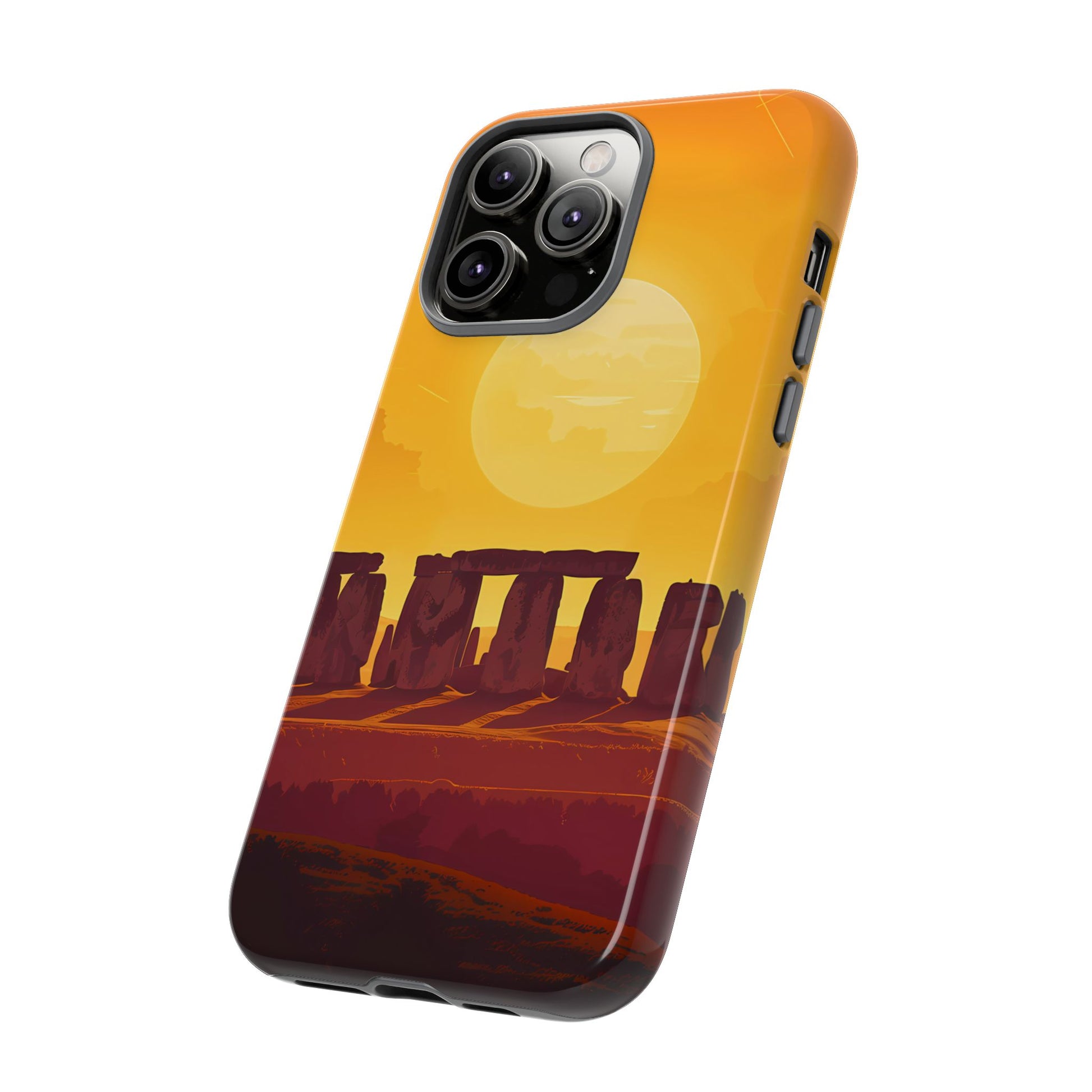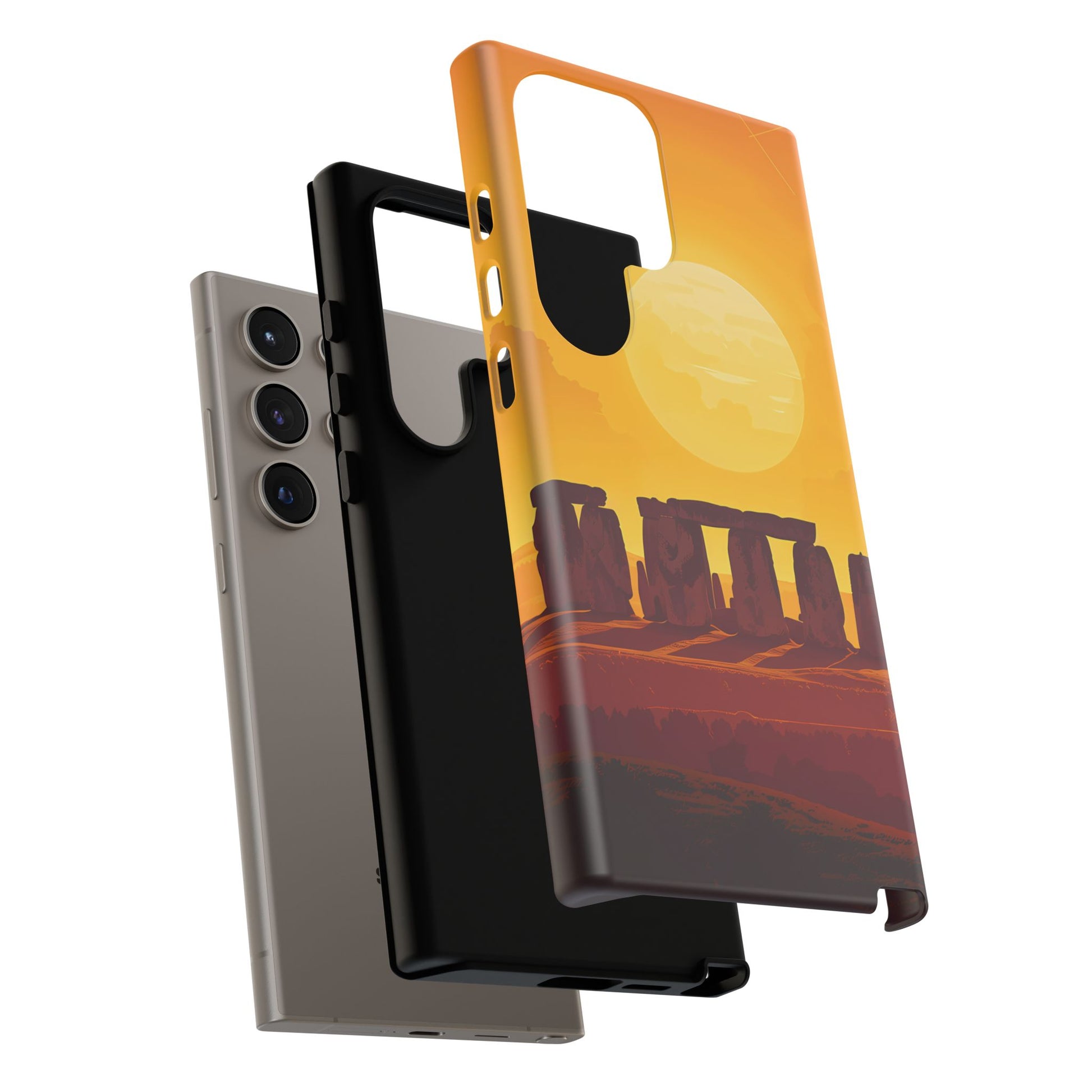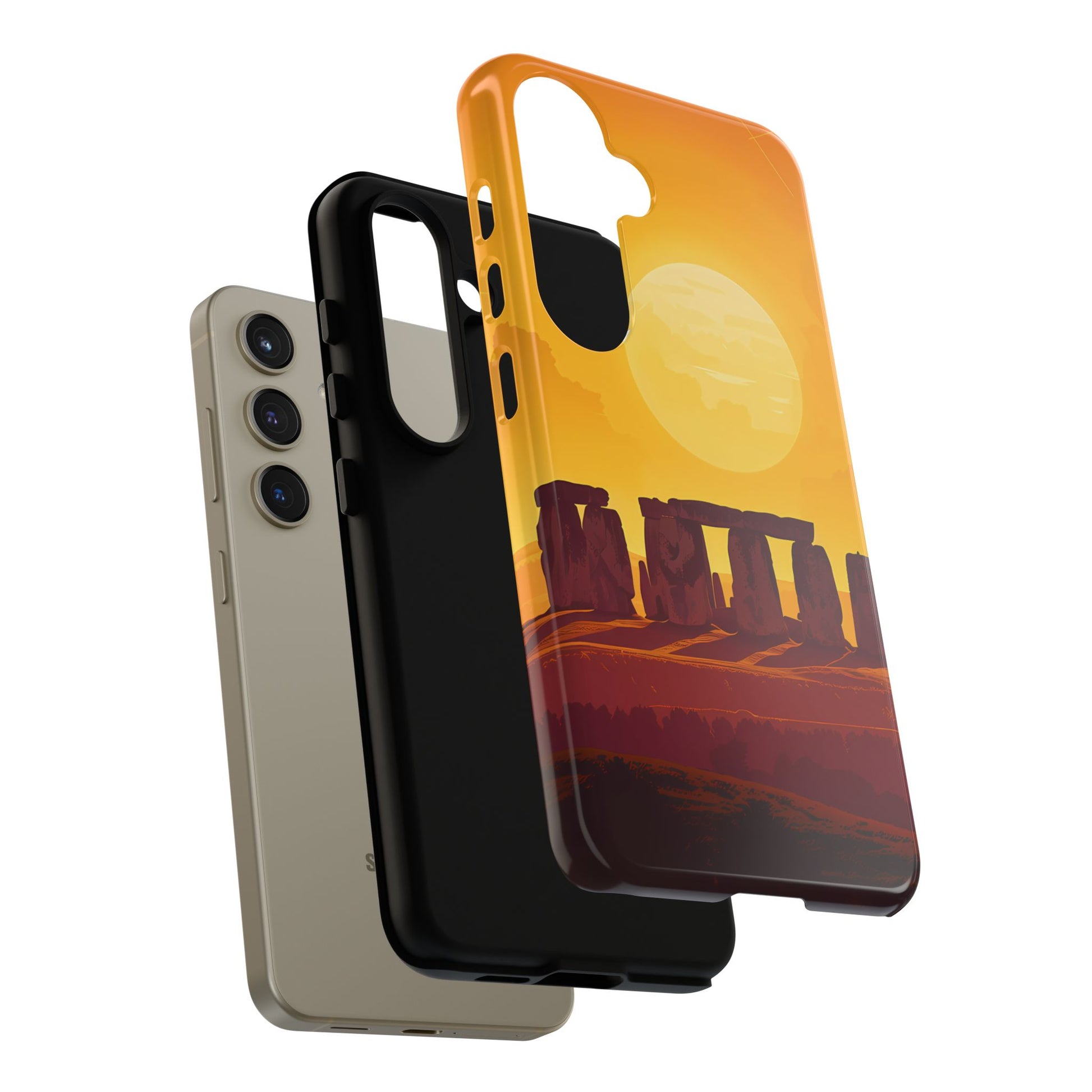 Experience the magic of an ancient morning with the "Stonehenge Sunrise" phone case. This cover features a captivating depiction of Stonehenge.