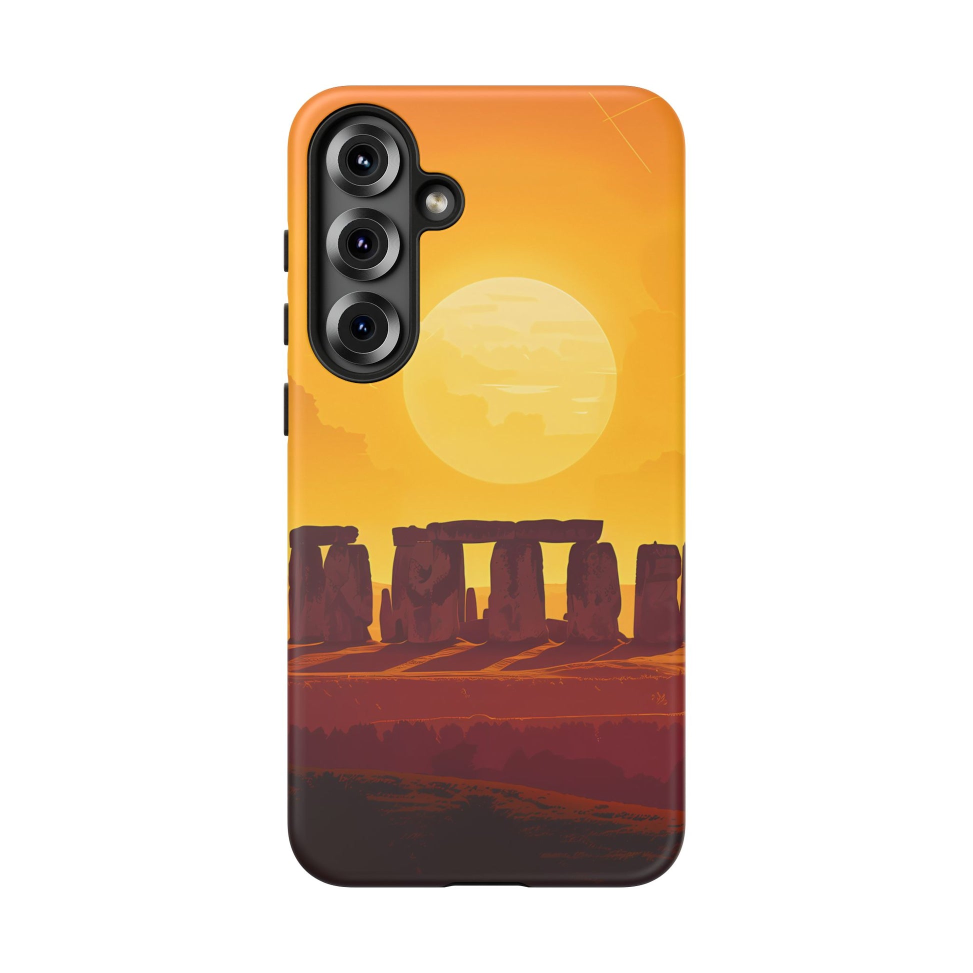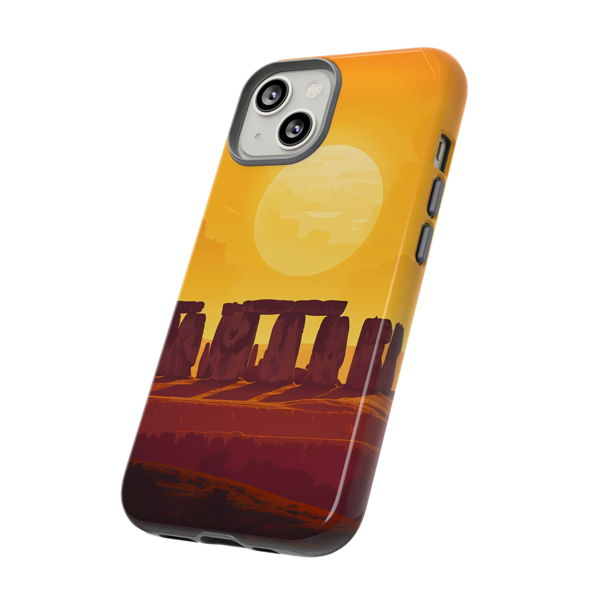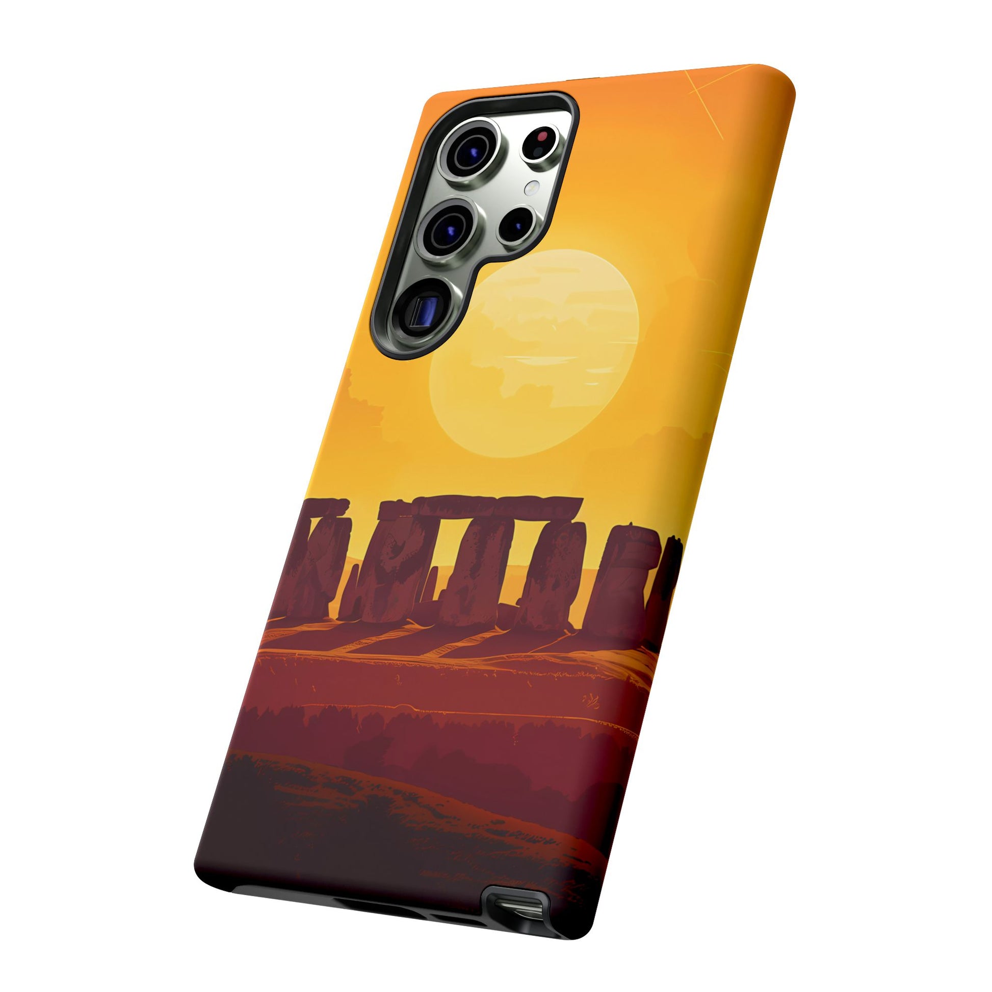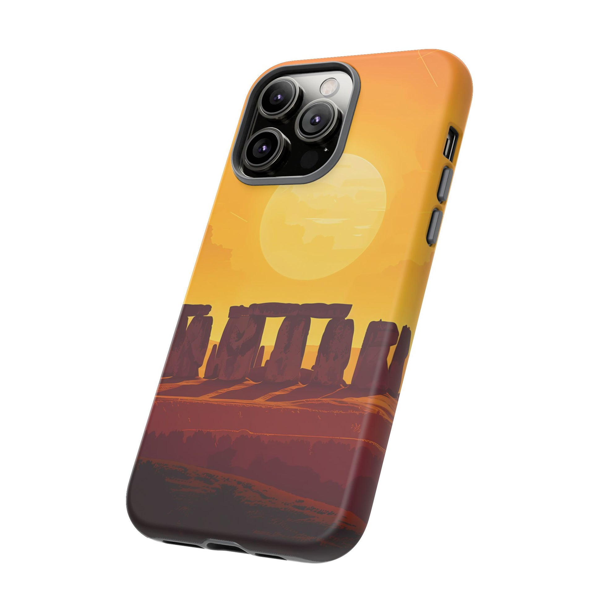 Experience the magic of an ancient morning with the "Stonehenge Sunrise" phone case. This cover features a captivating depiction of Stonehenge.