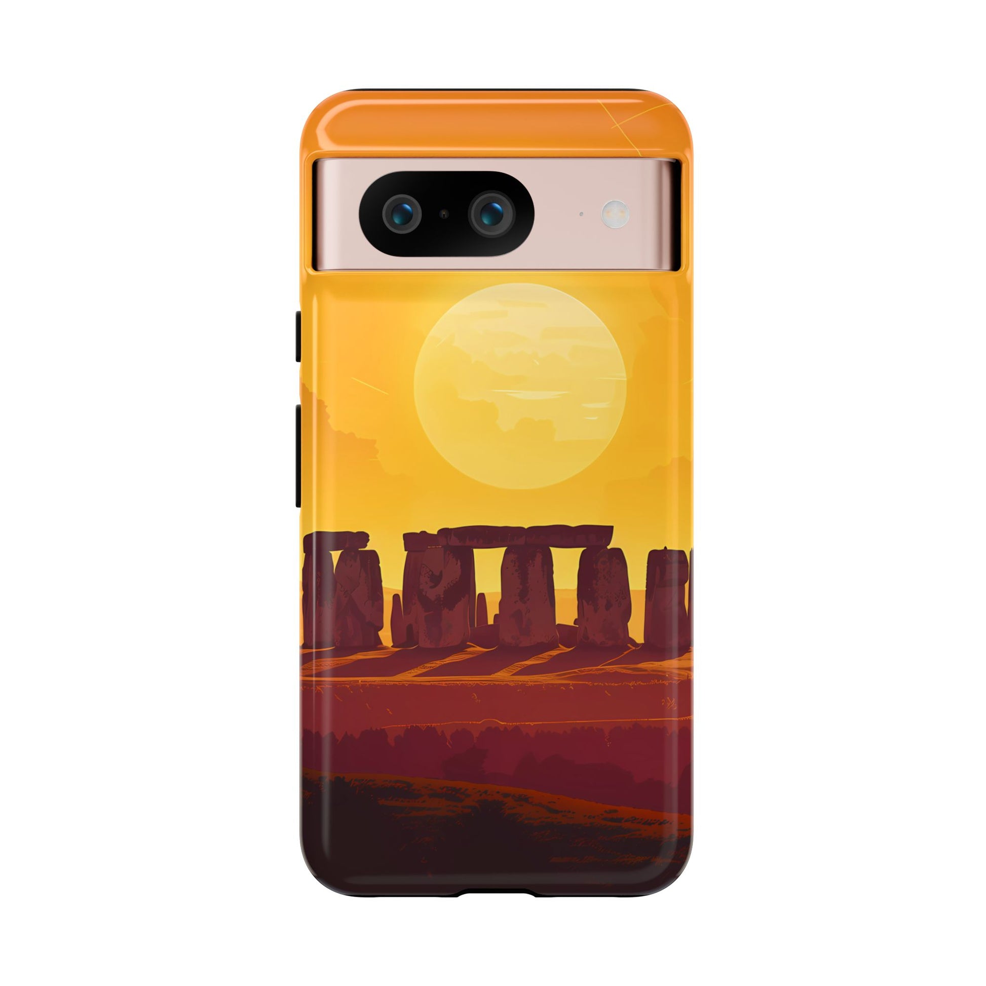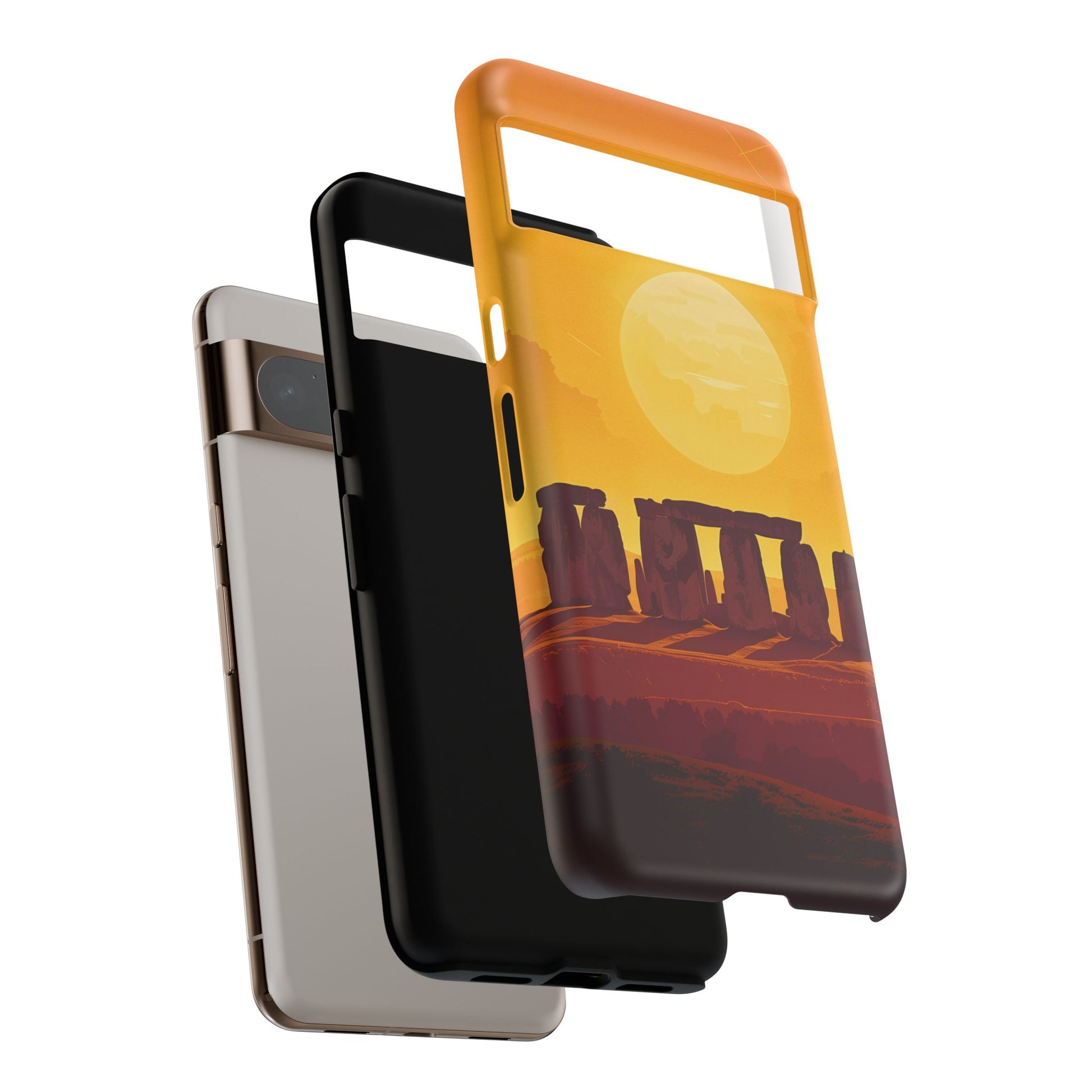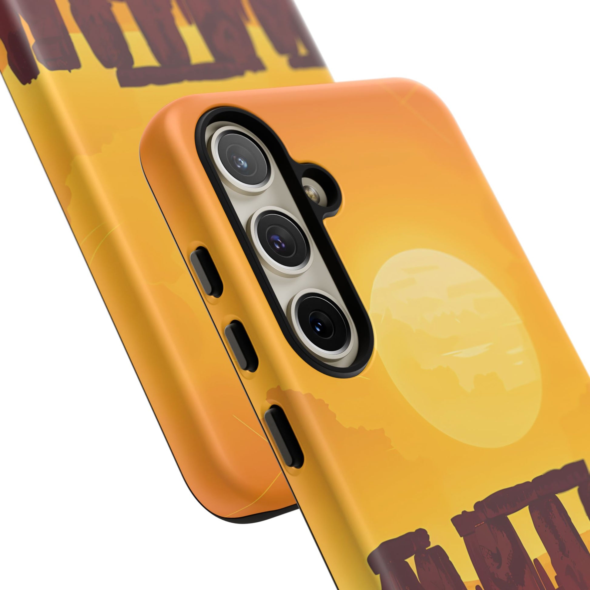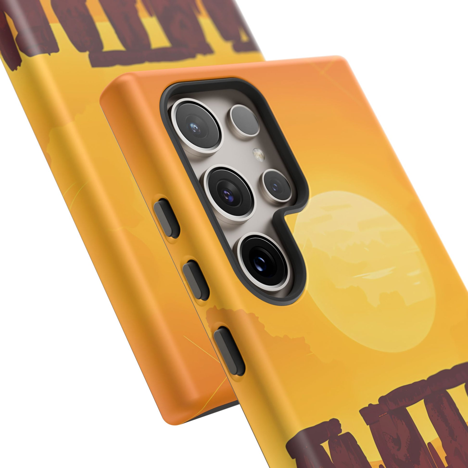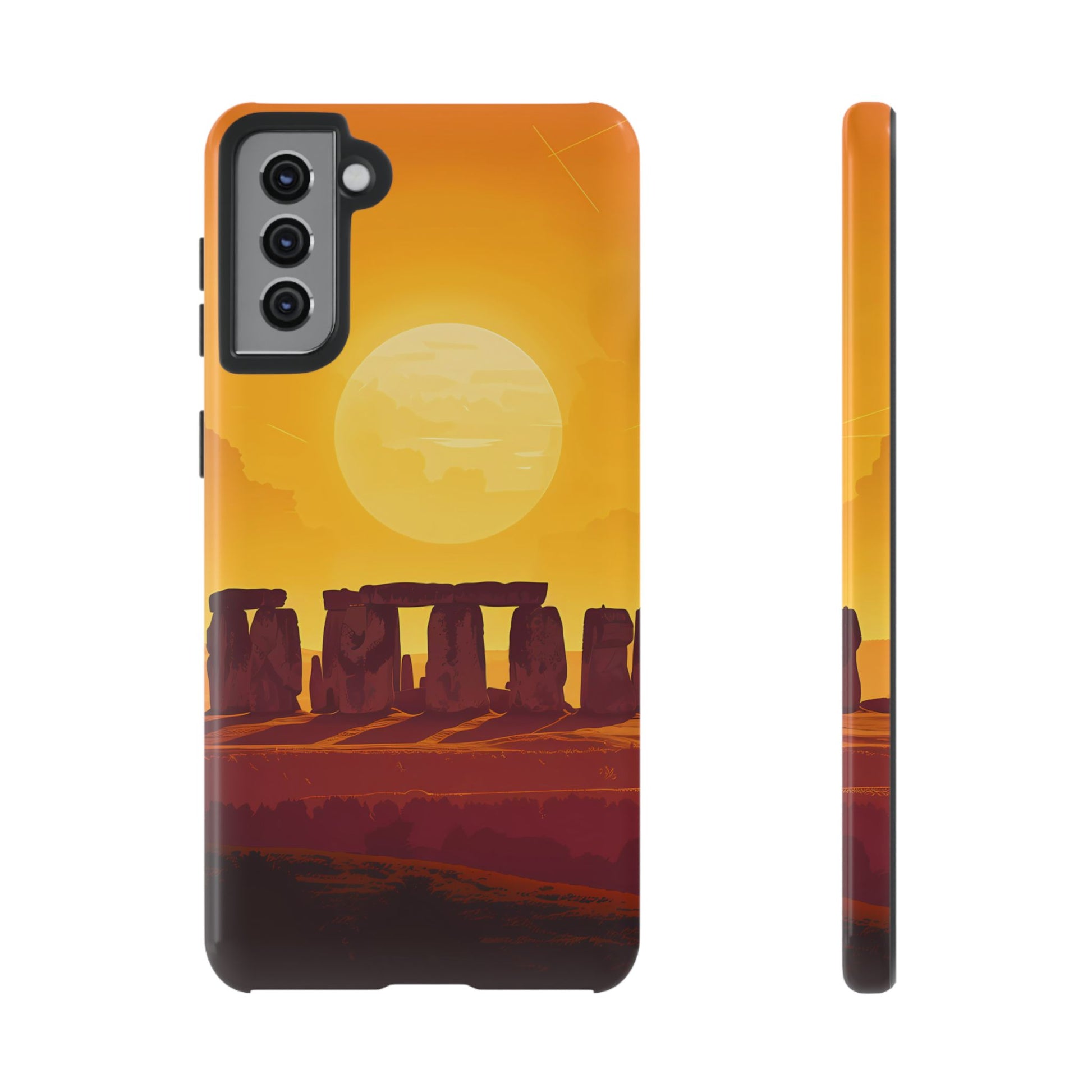 Experience the magic of an ancient morning with the "Stonehenge Sunrise" phone case. This cover features a captivating depiction of Stonehenge.