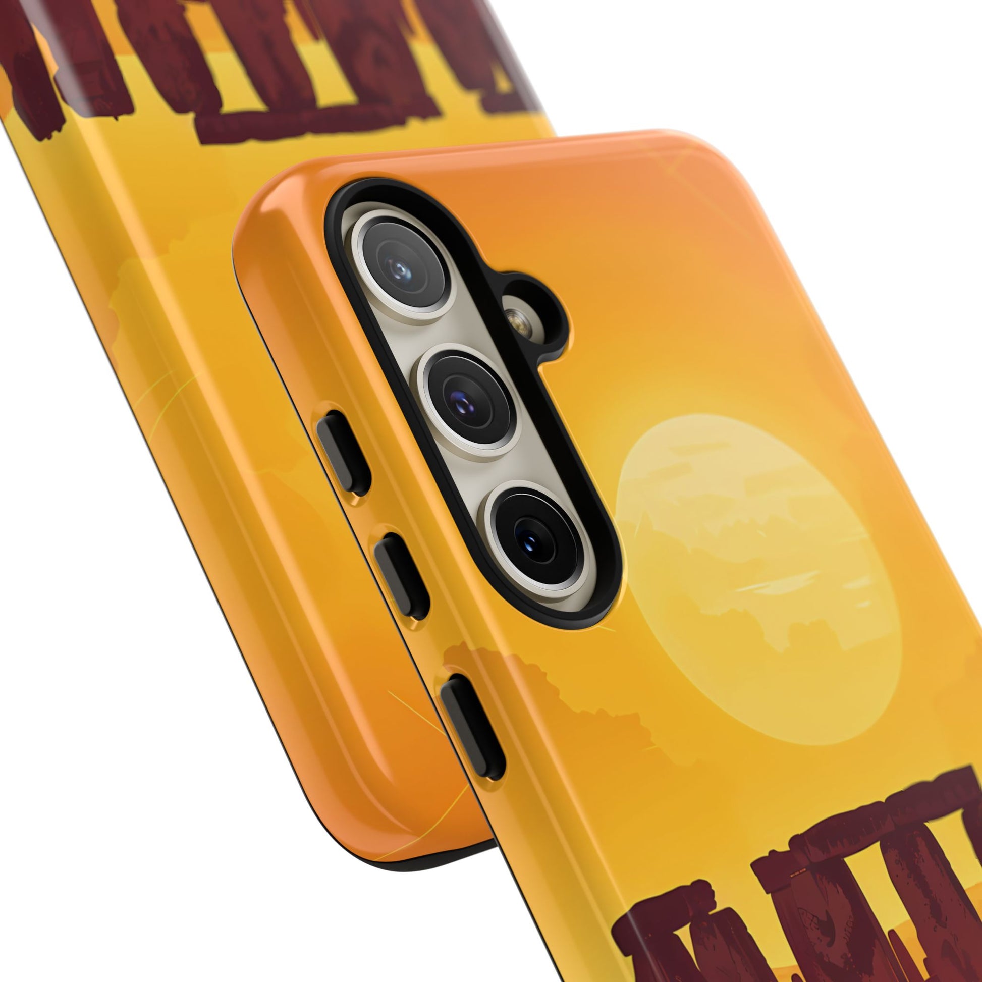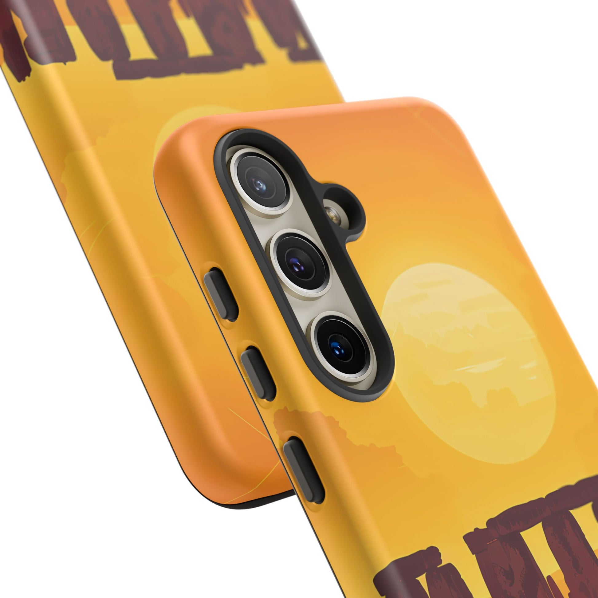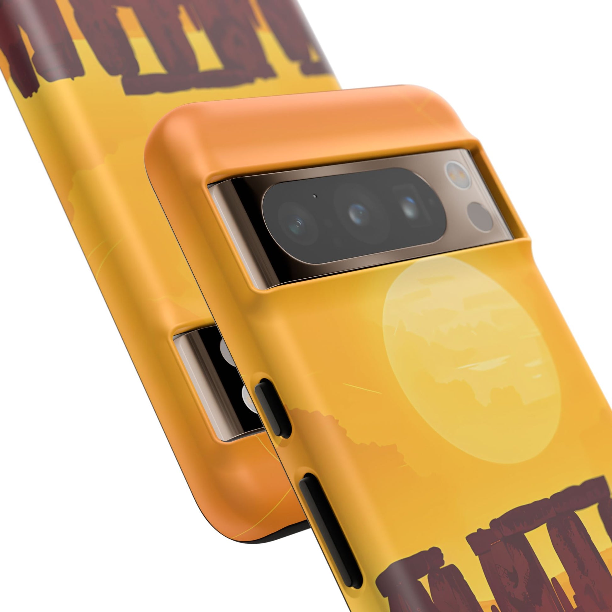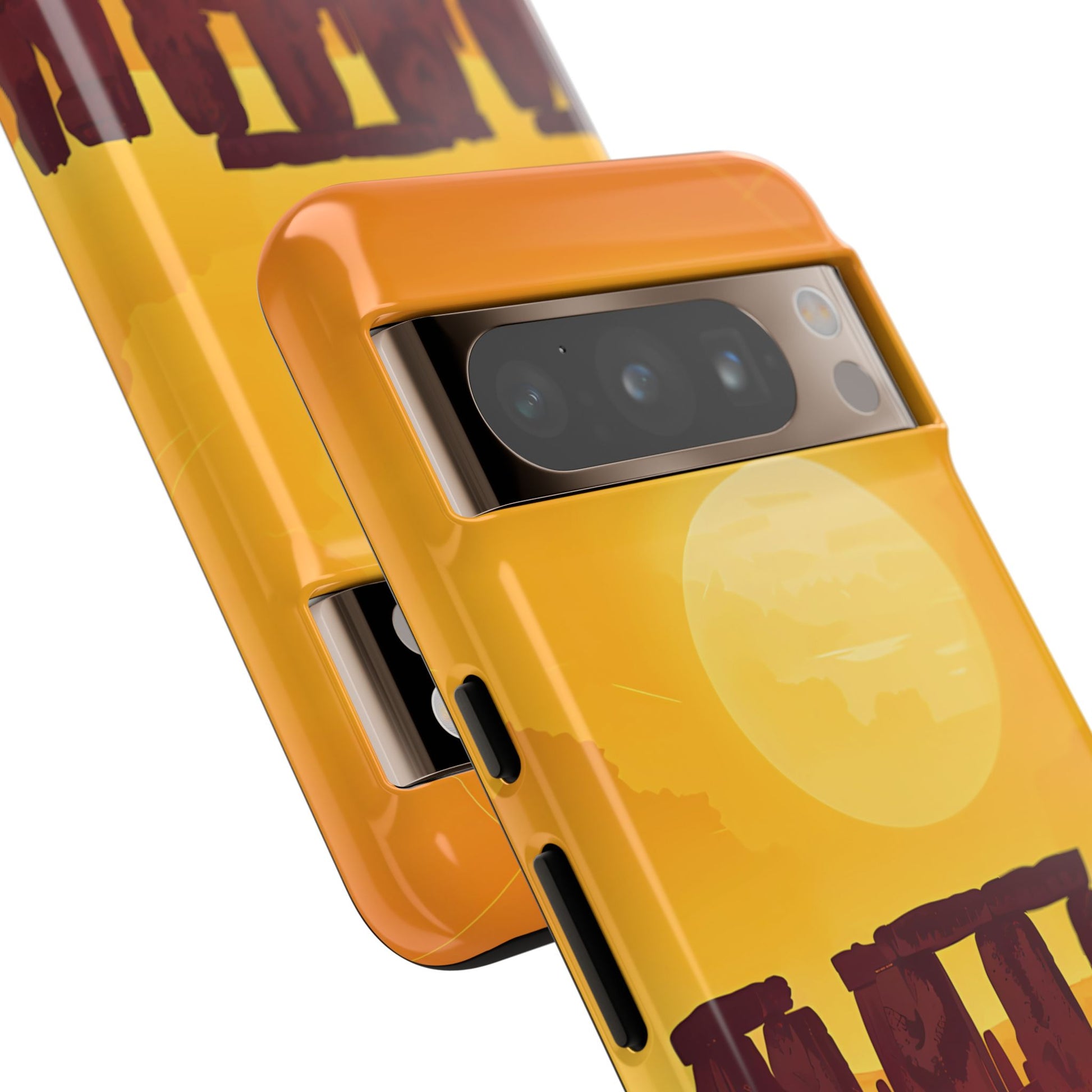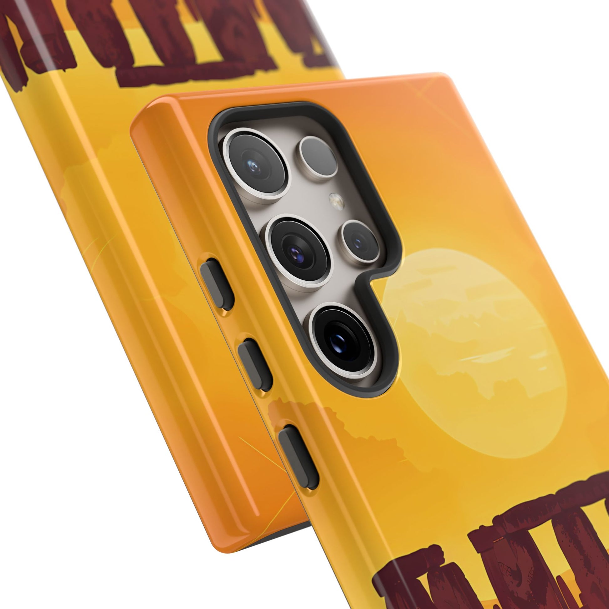 Experience the magic of an ancient morning with the "Stonehenge Sunrise" phone case. This cover features a captivating depiction of Stonehenge.