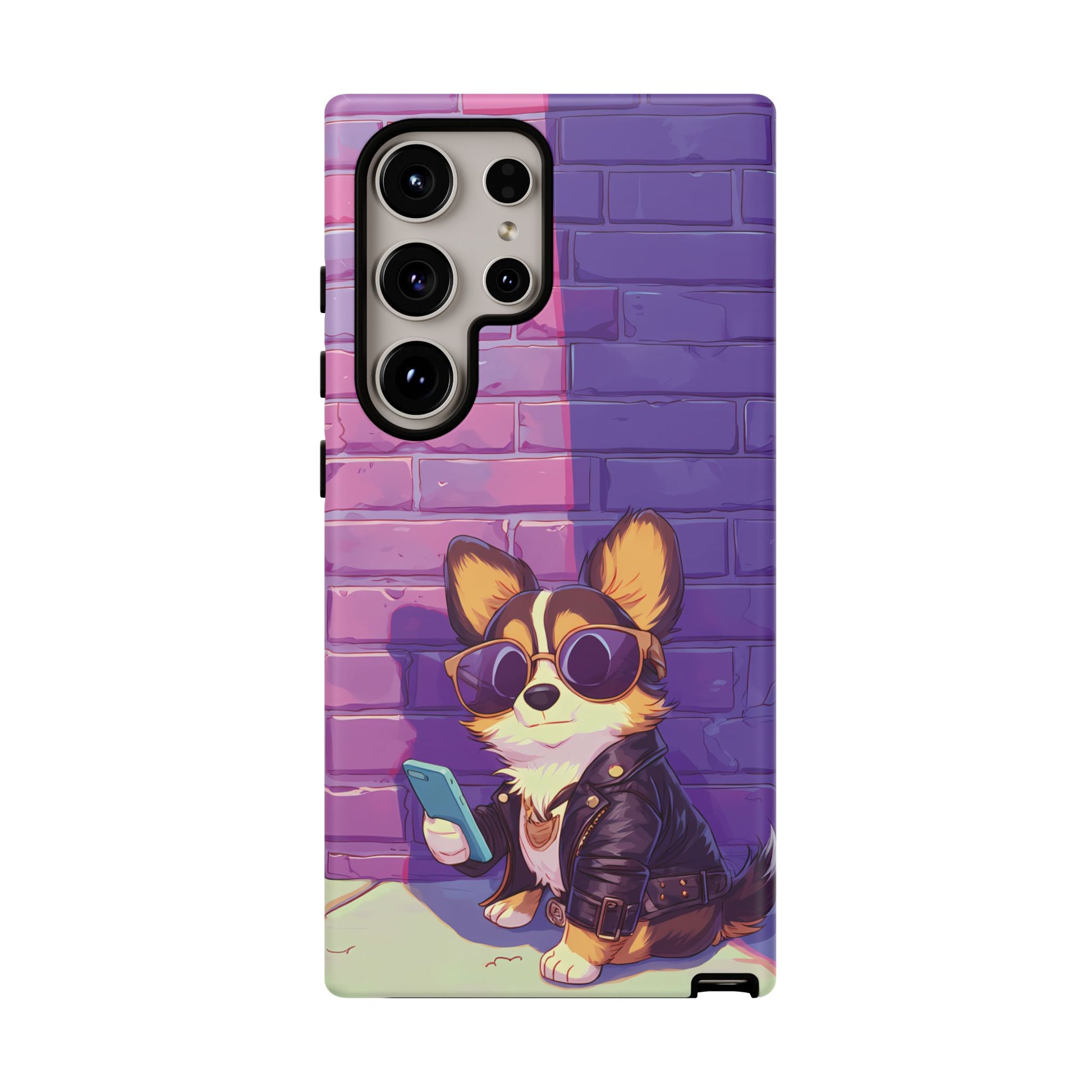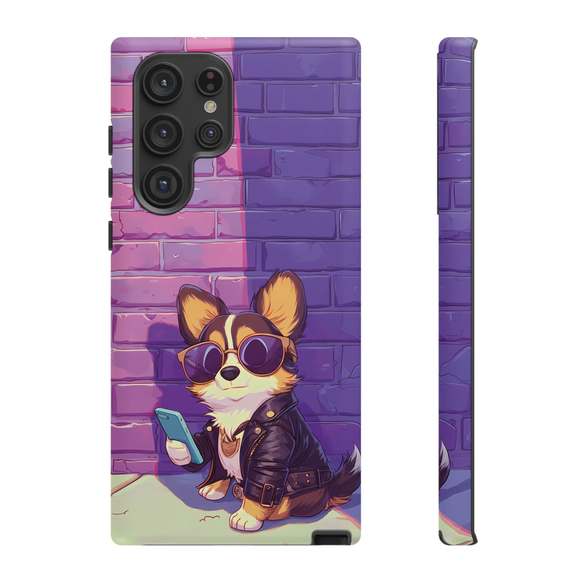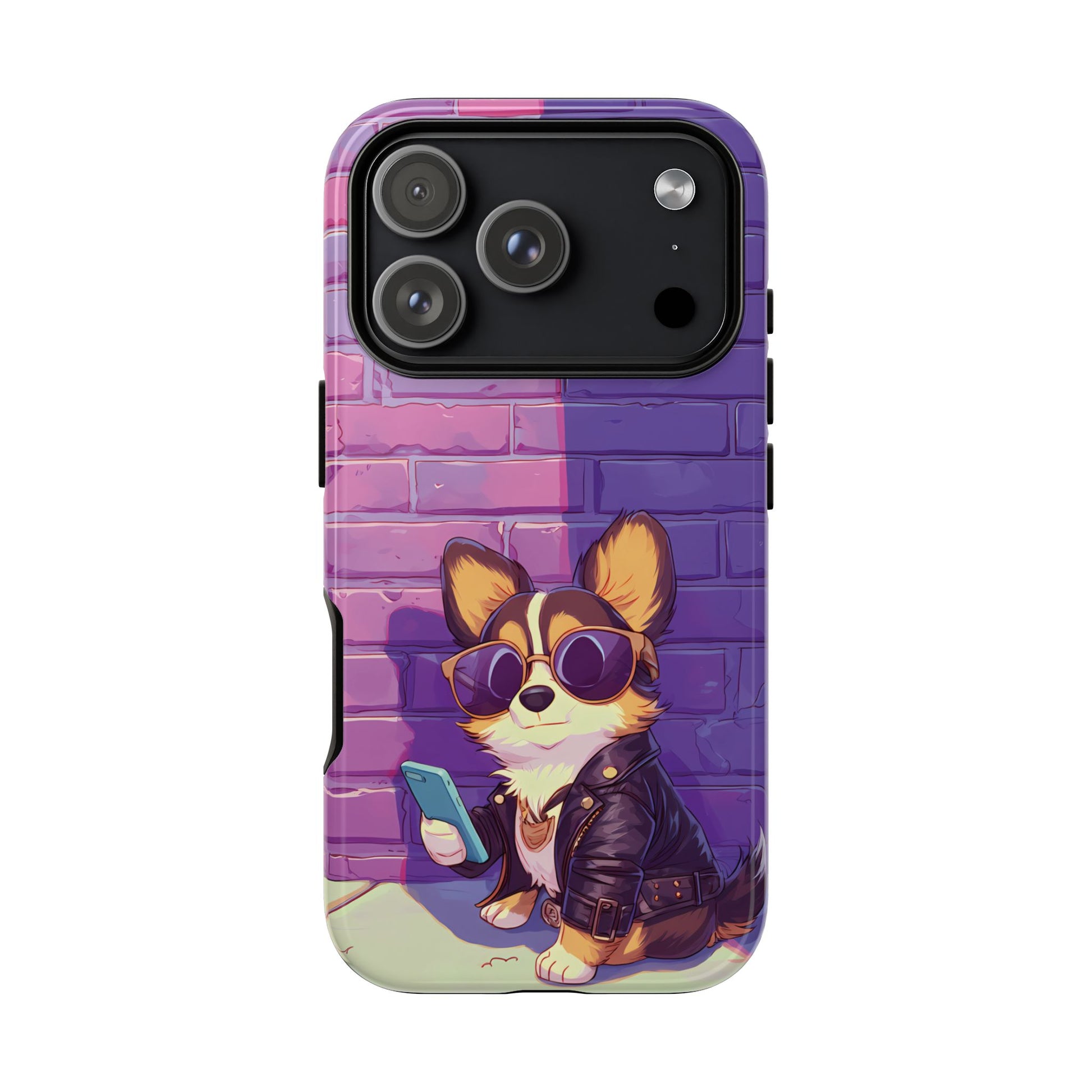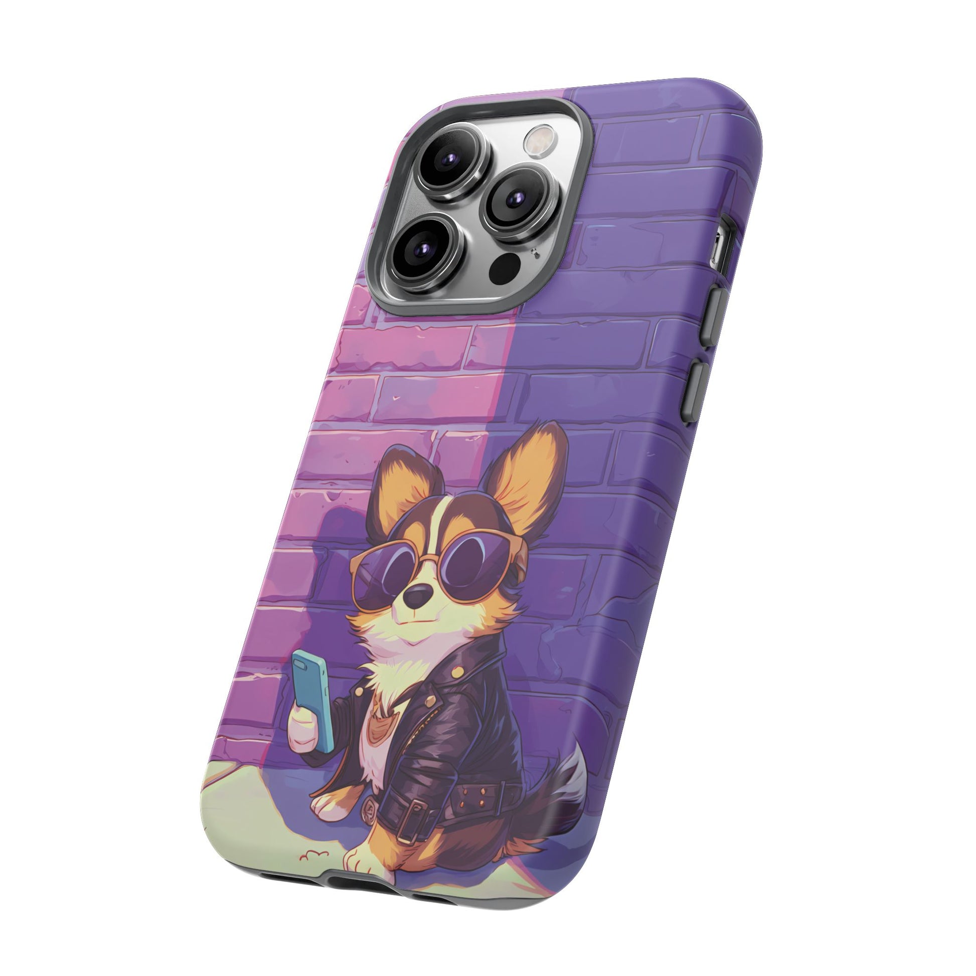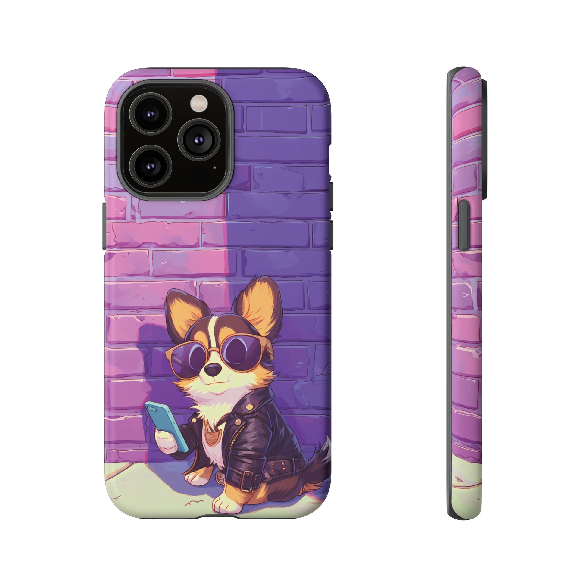 A street-smart pup chilling with major style—sunglasses, a sleek leather jacket, and a phone in paw. This case brings attitude and urban charm to your device.