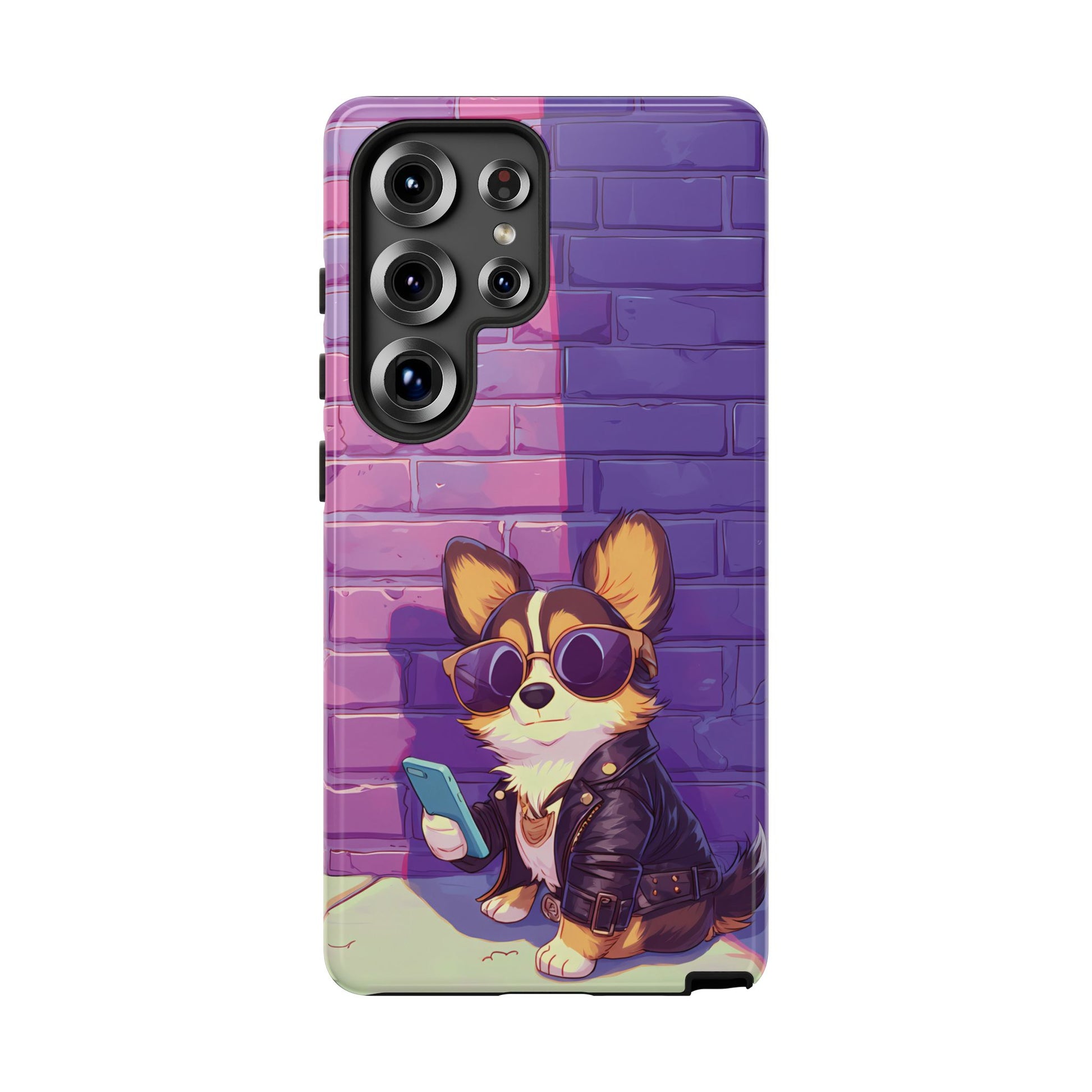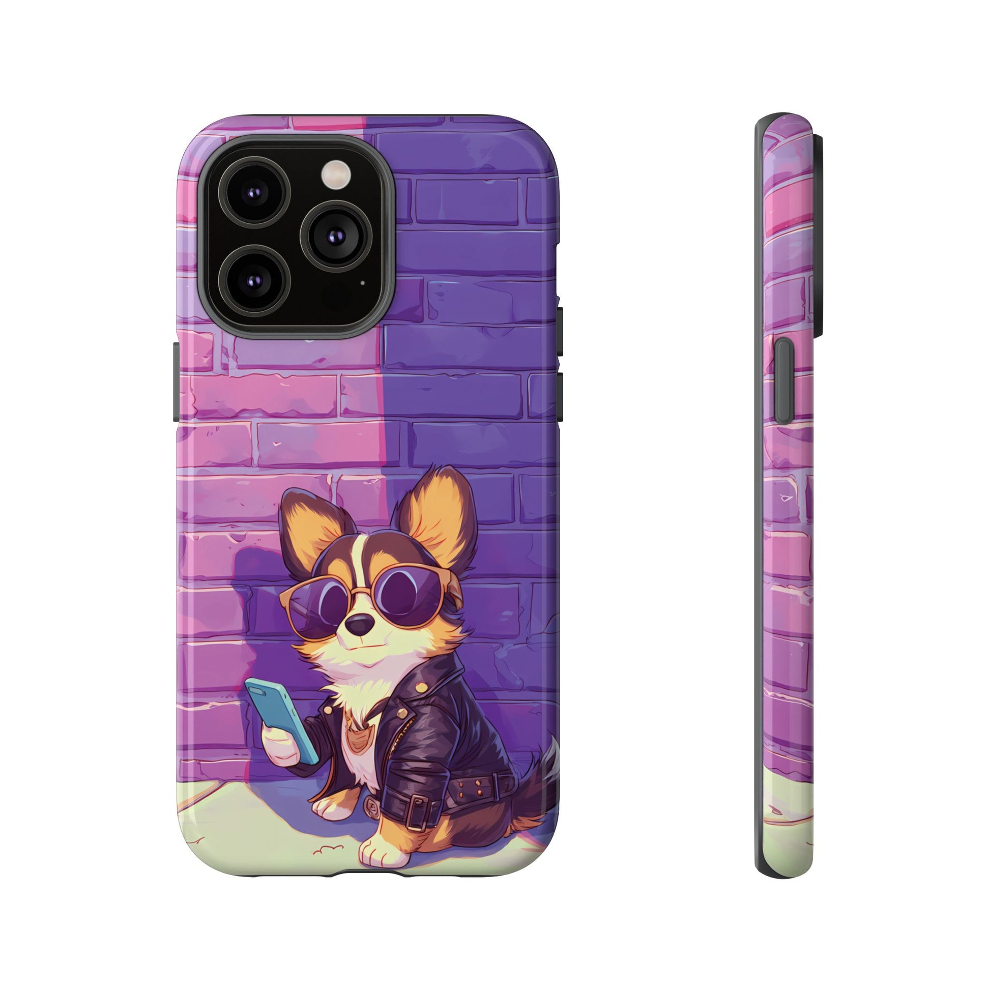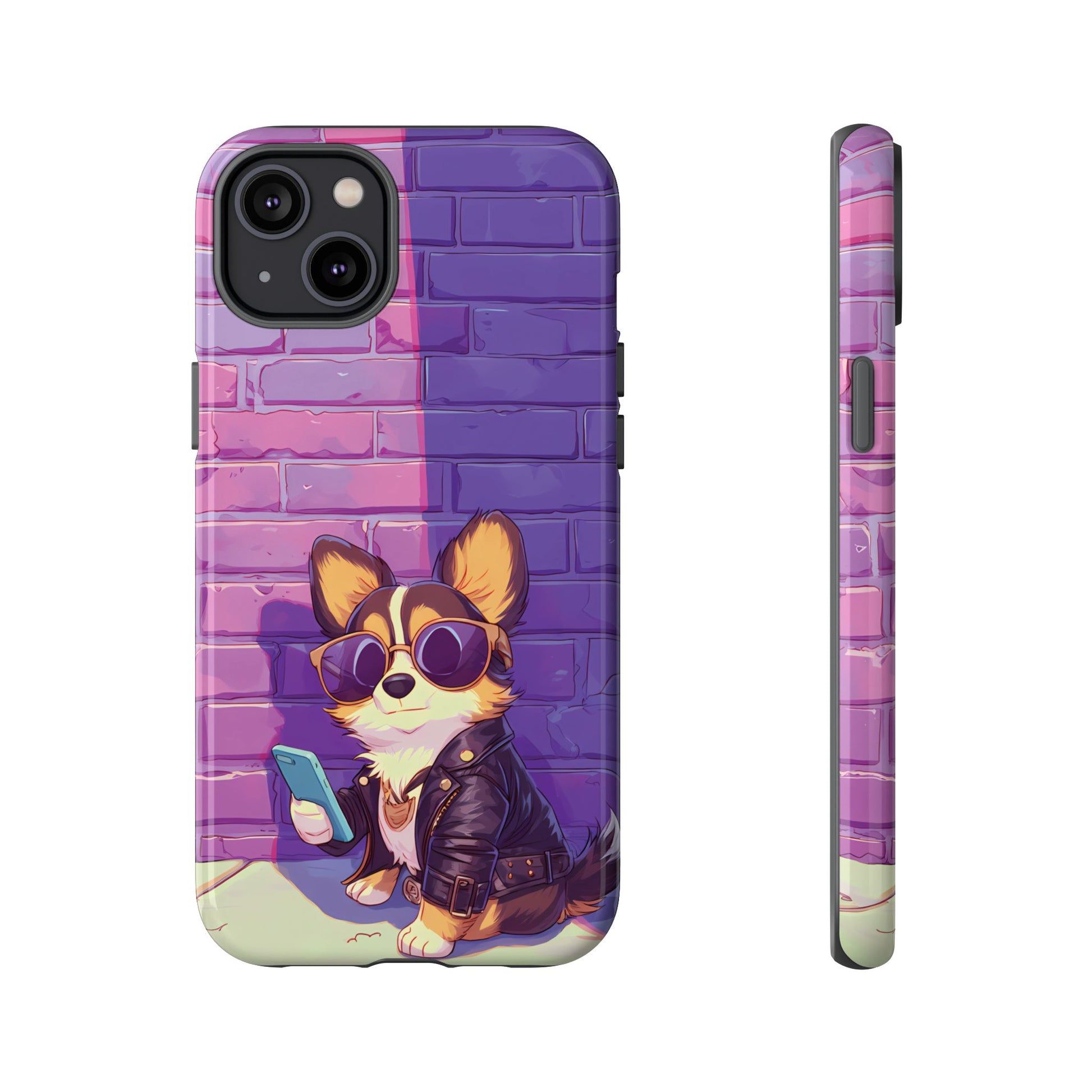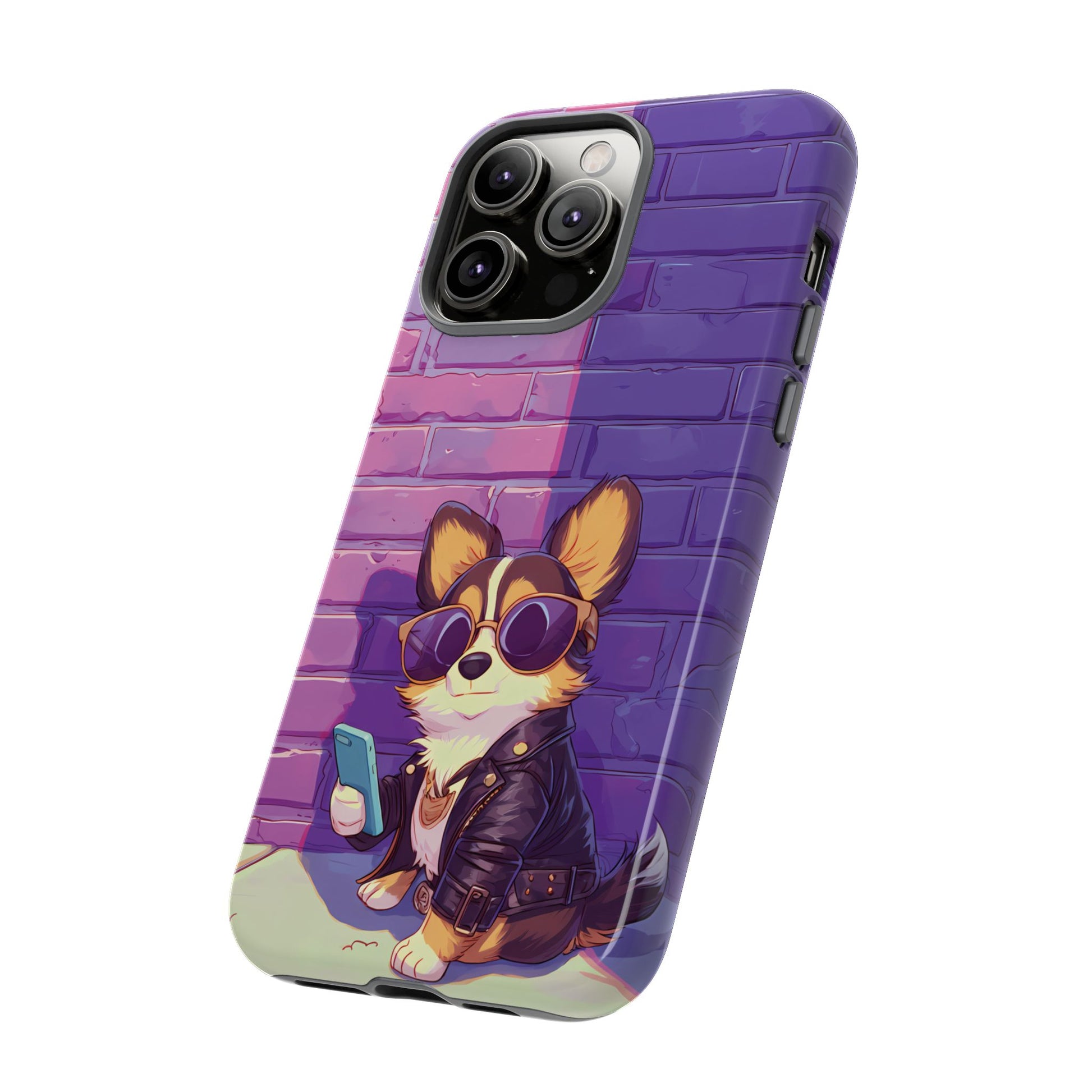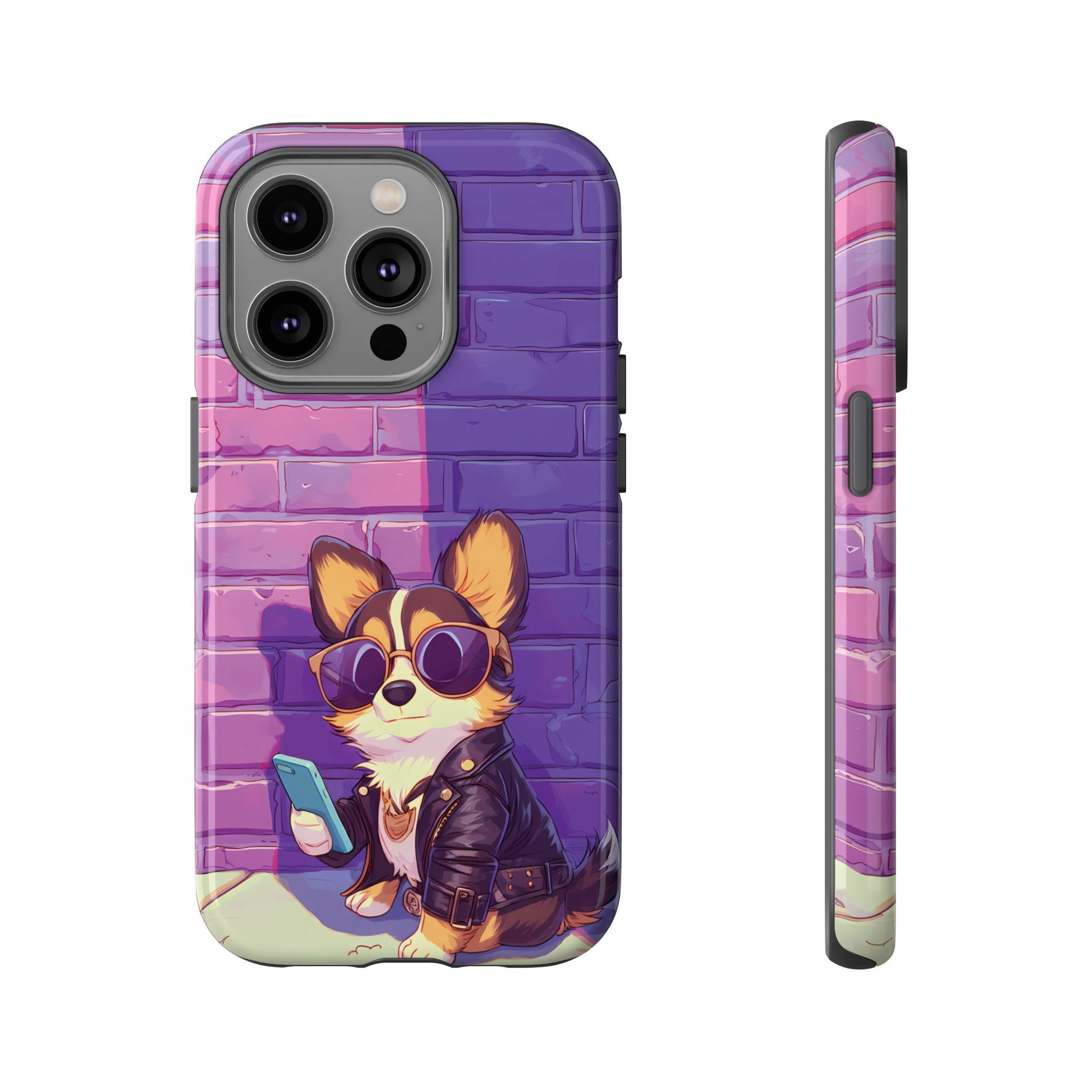 A street-smart pup chilling with major style—sunglasses, a sleek leather jacket, and a phone in paw. This case brings attitude and urban charm to your device.