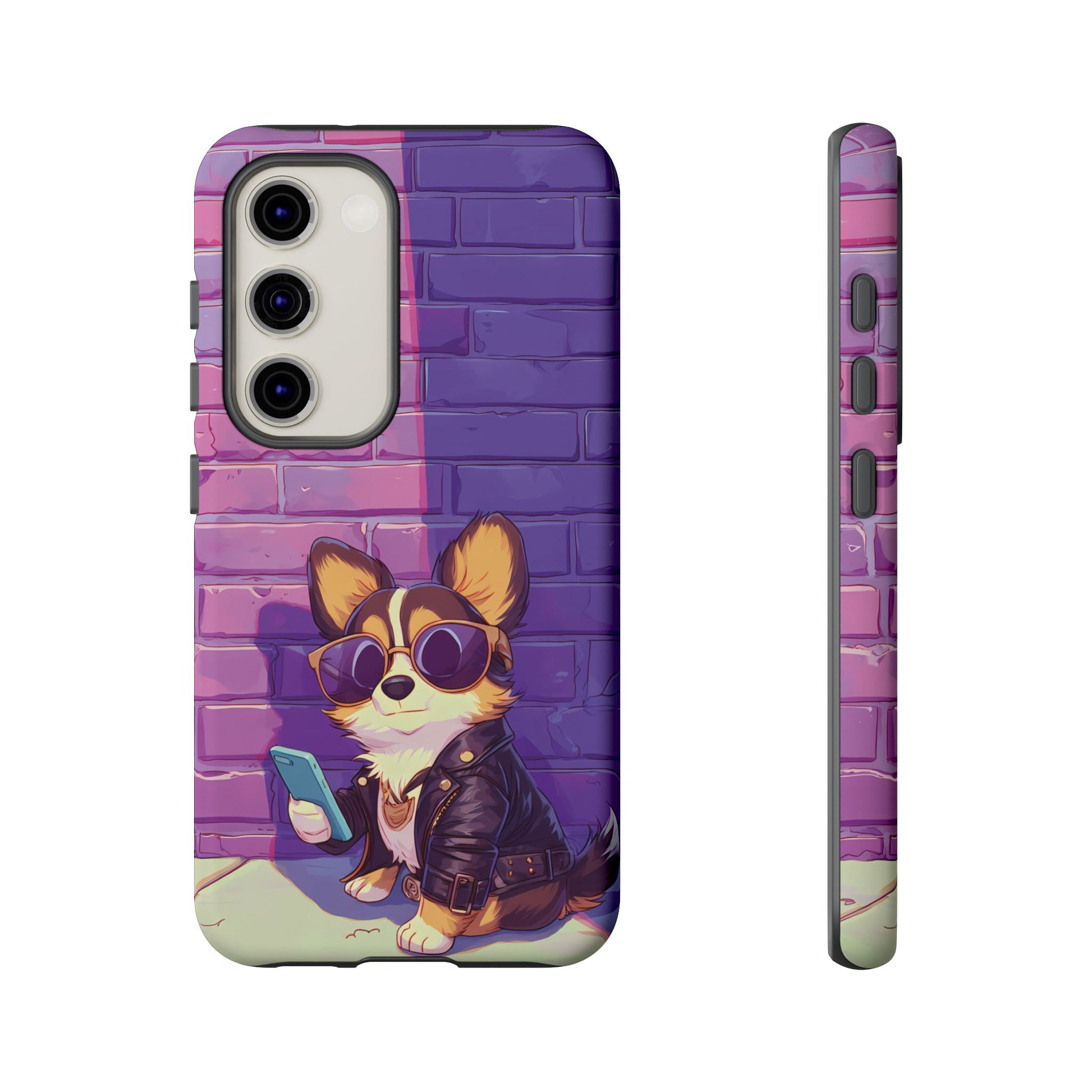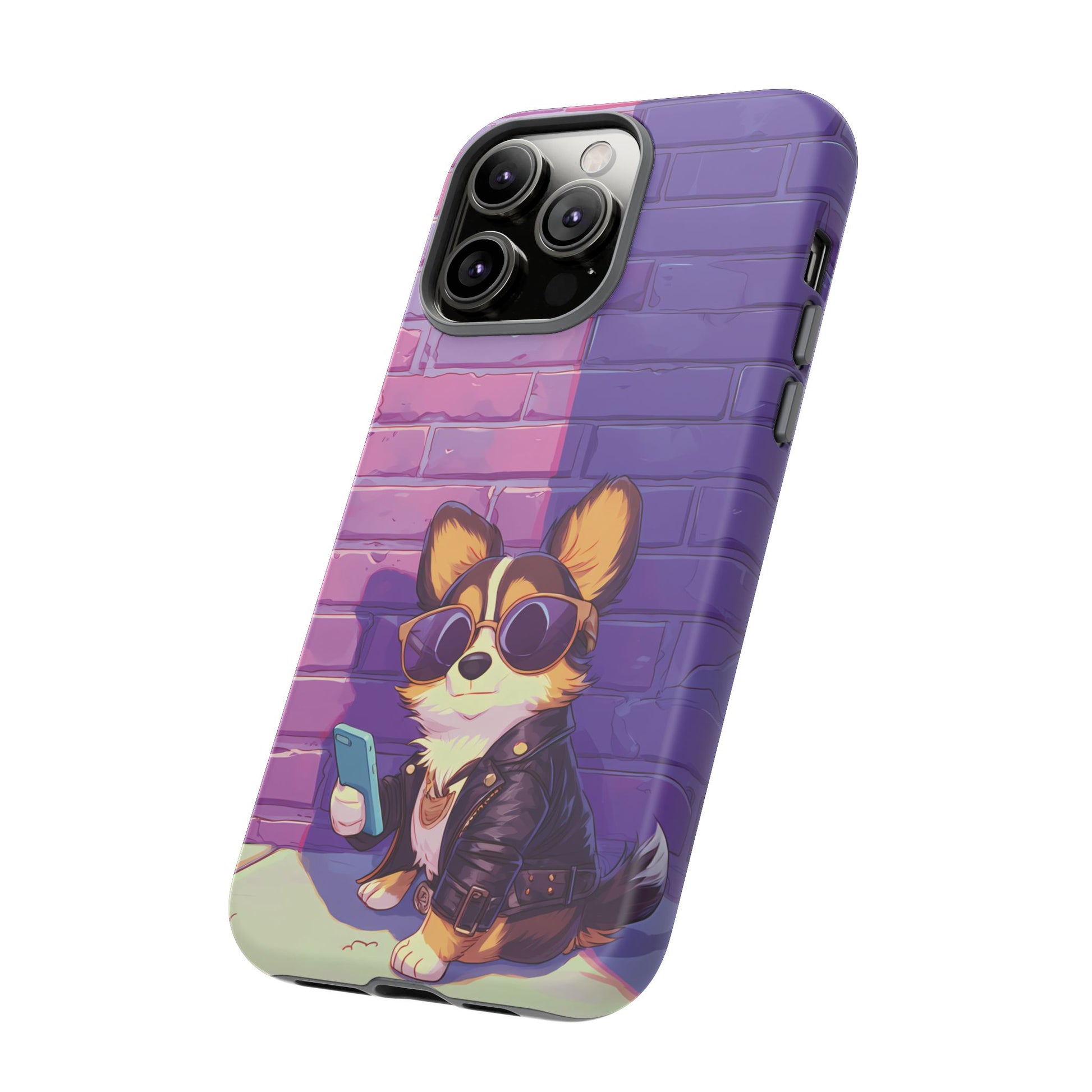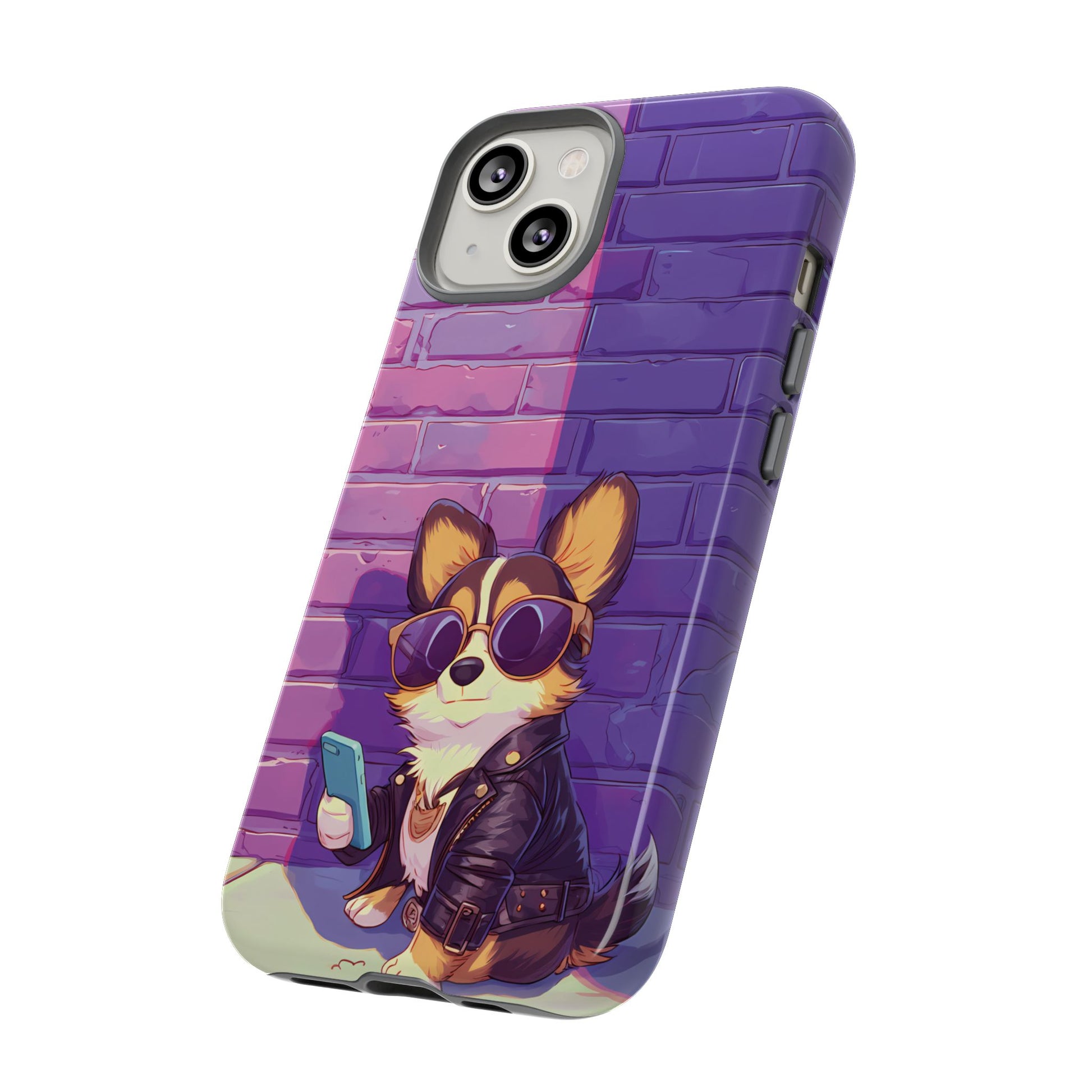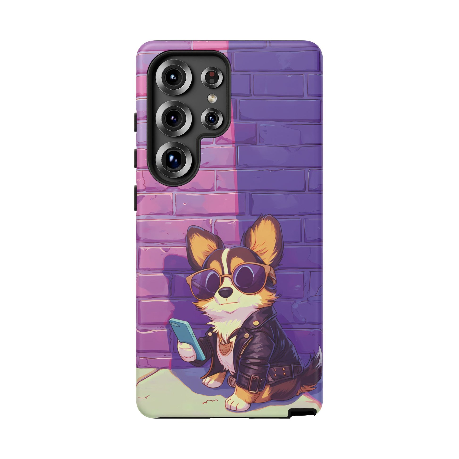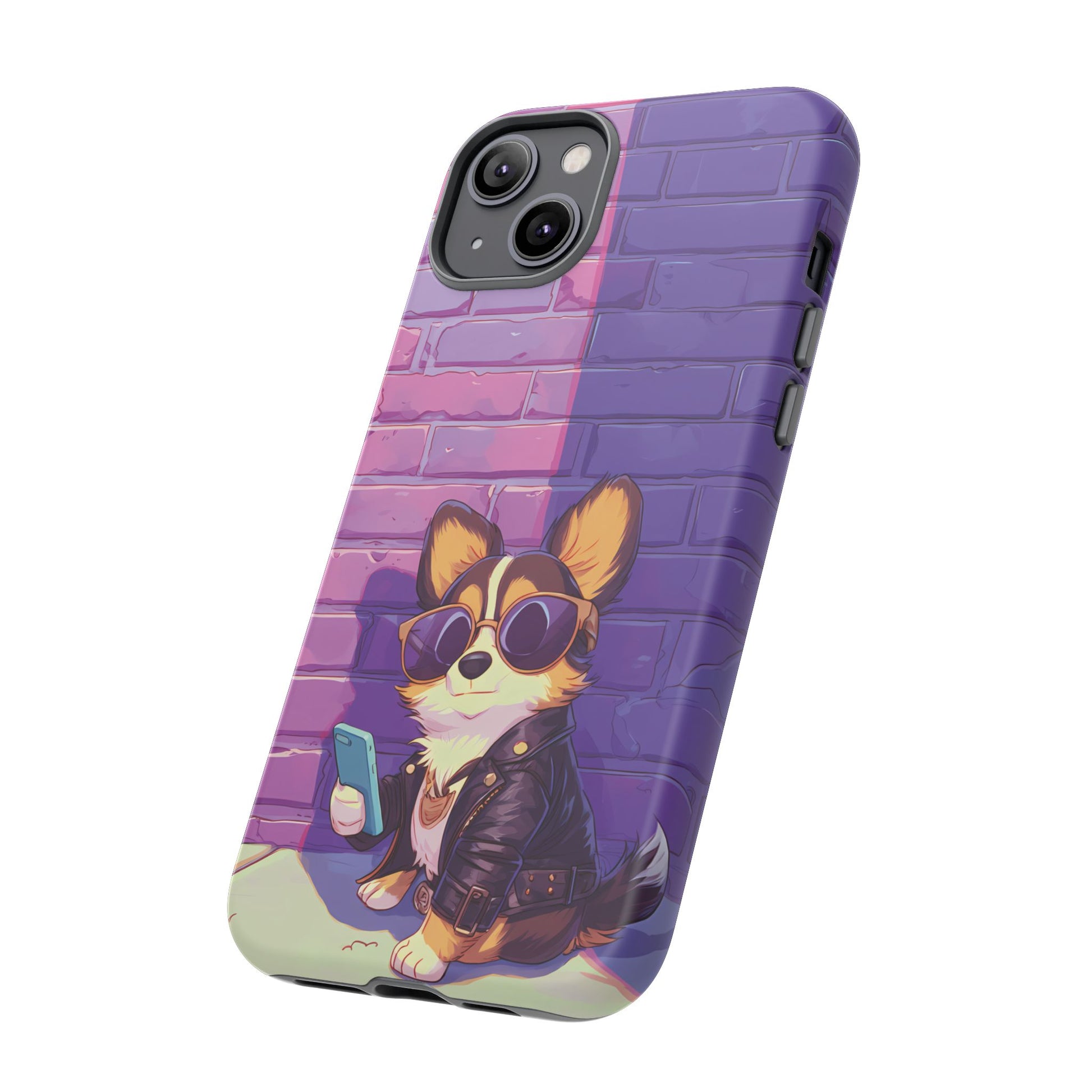 A street-smart pup chilling with major style—sunglasses, a sleek leather jacket, and a phone in paw. This case brings attitude and urban charm to your device.