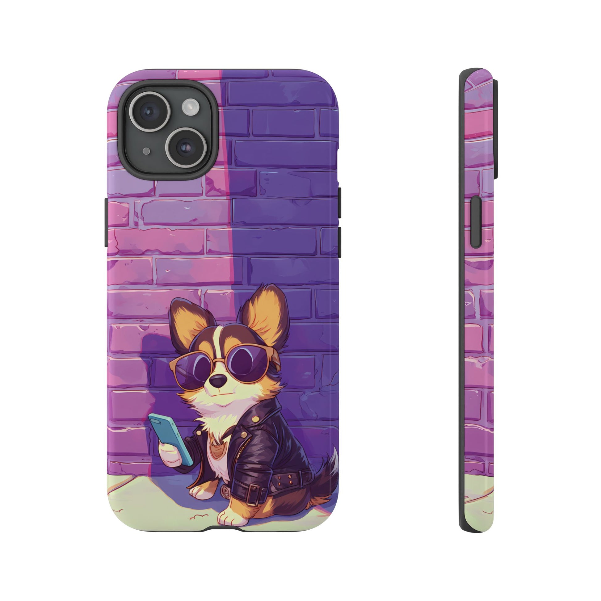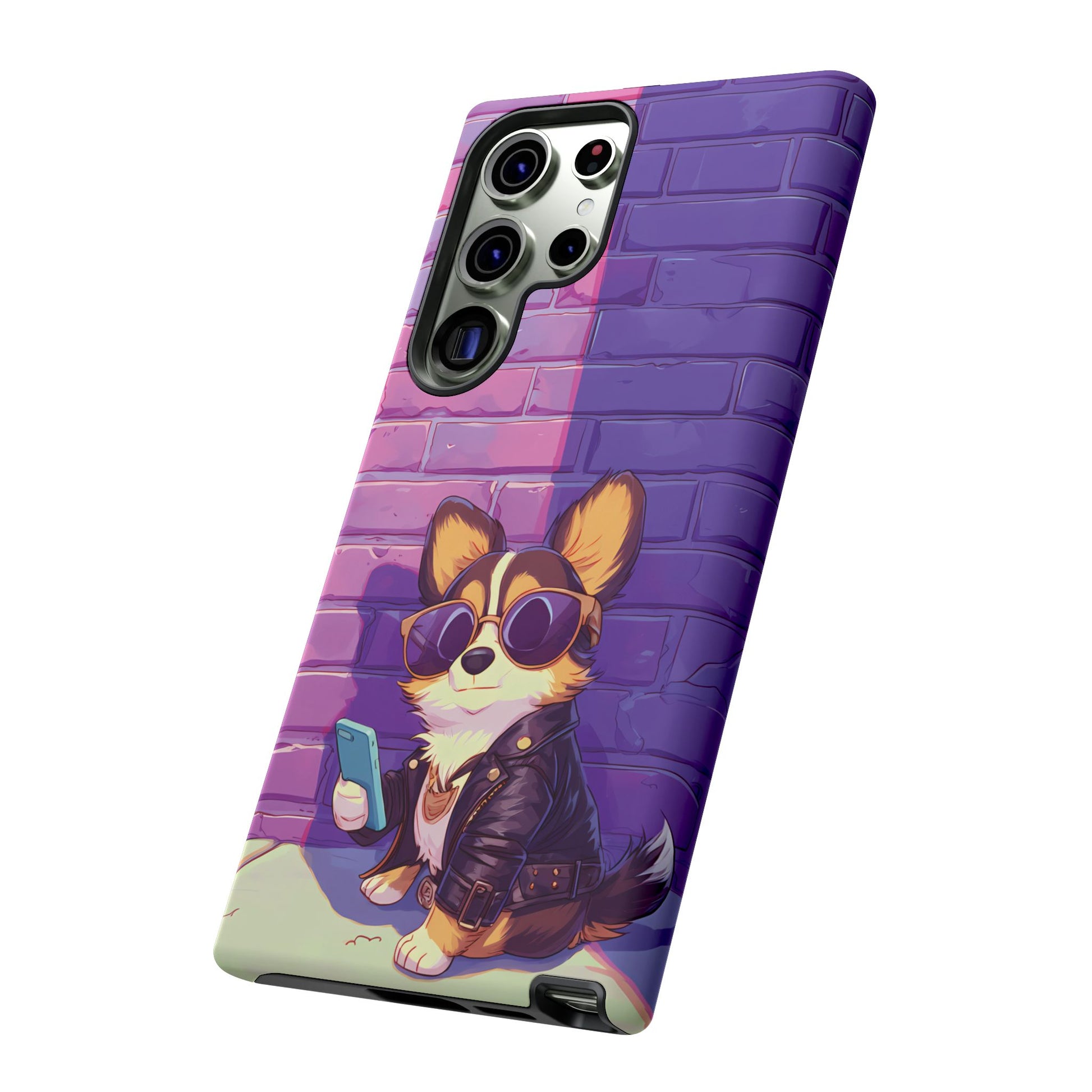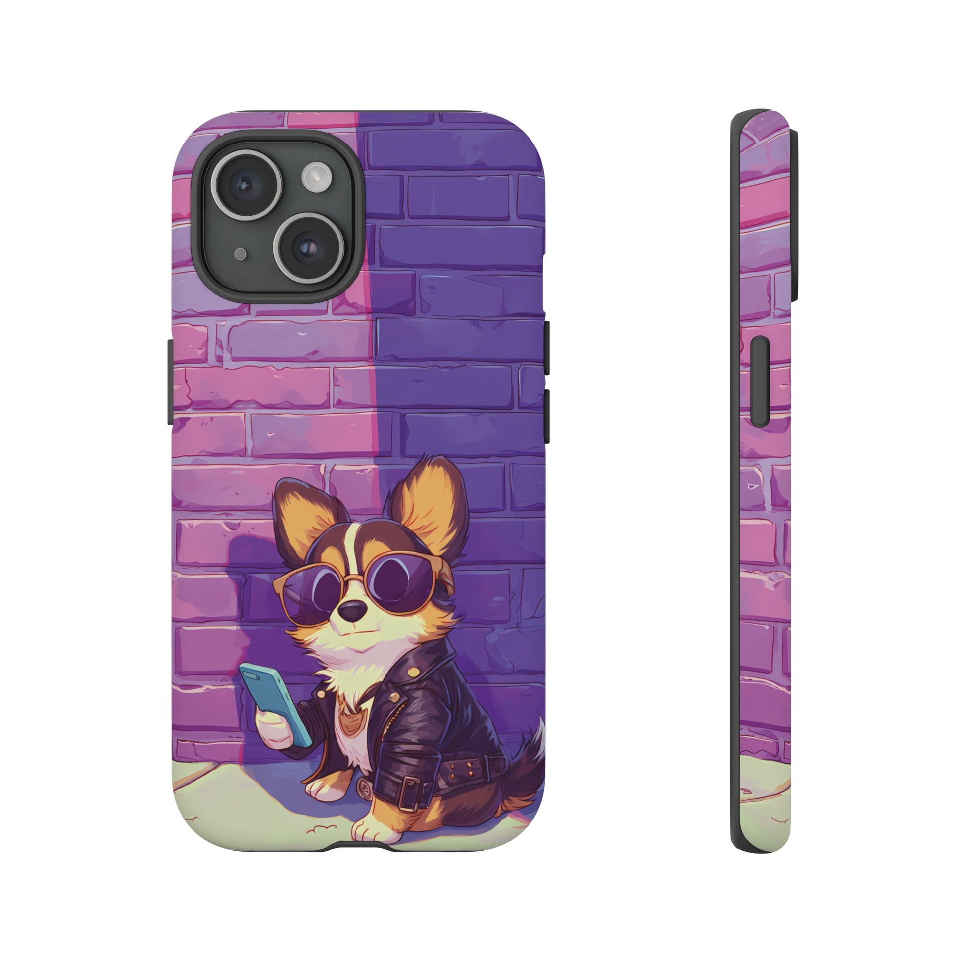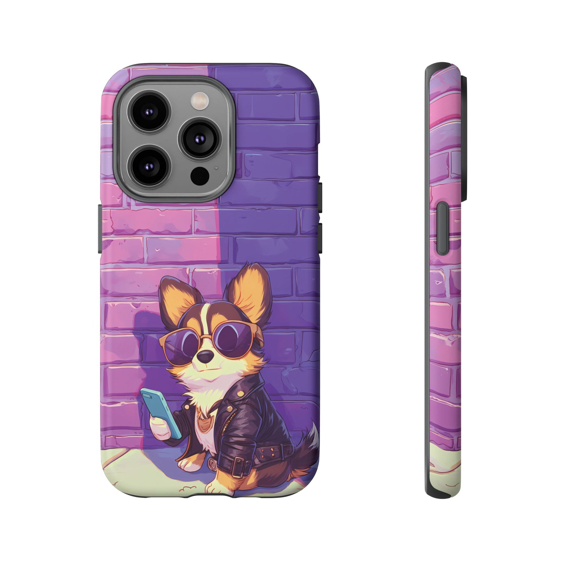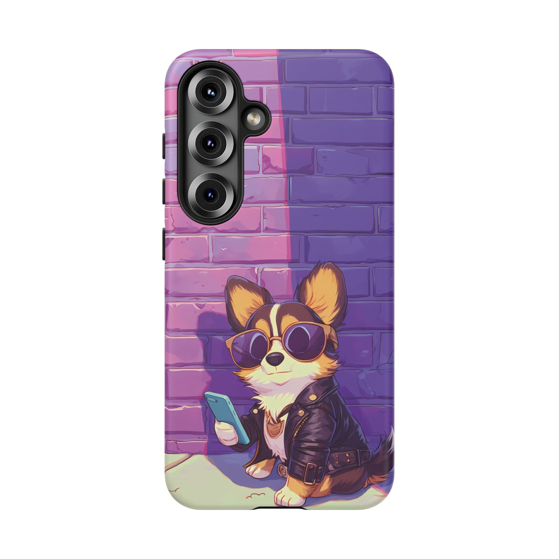 A street-smart pup chilling with major style—sunglasses, a sleek leather jacket, and a phone in paw. This case brings attitude and urban charm to your device.