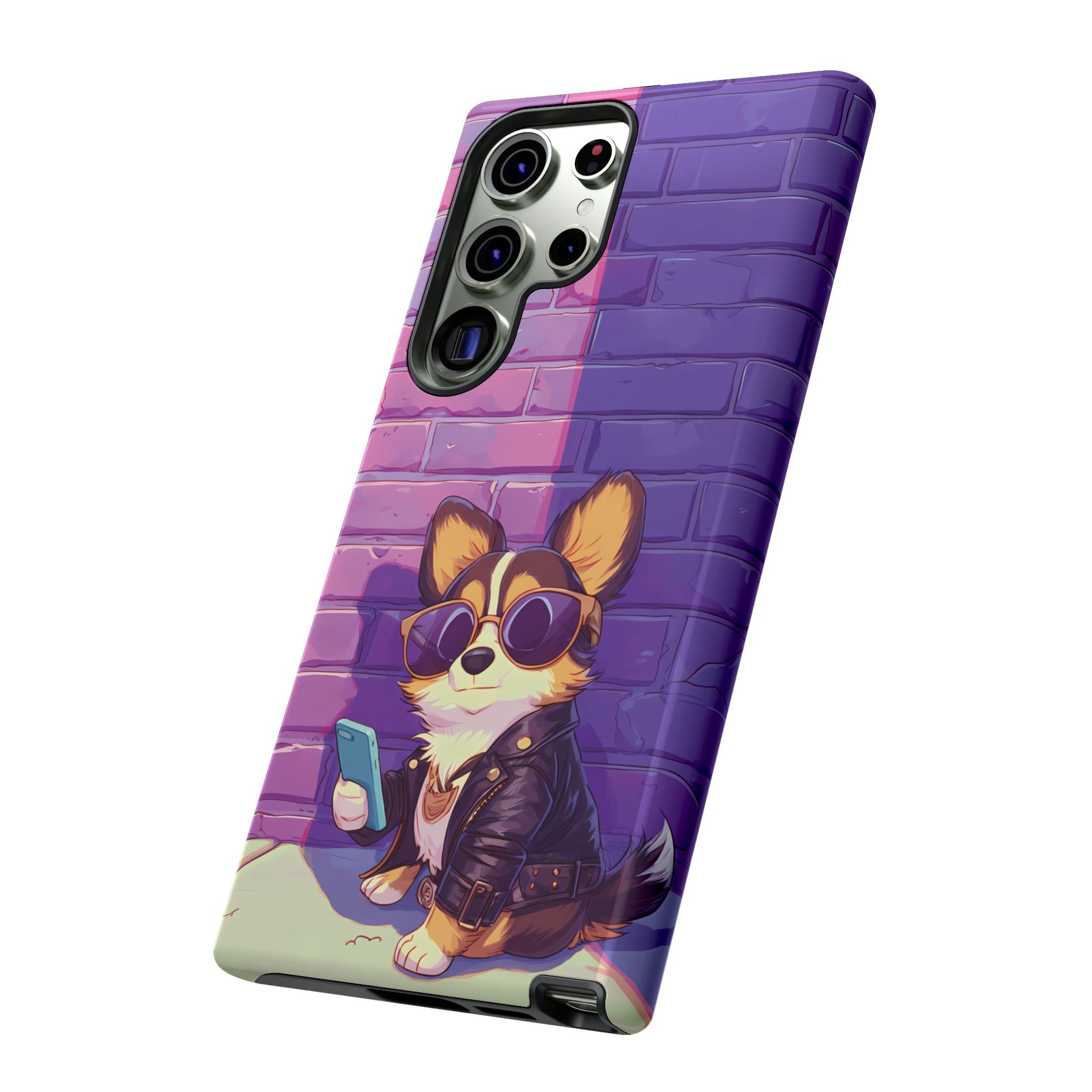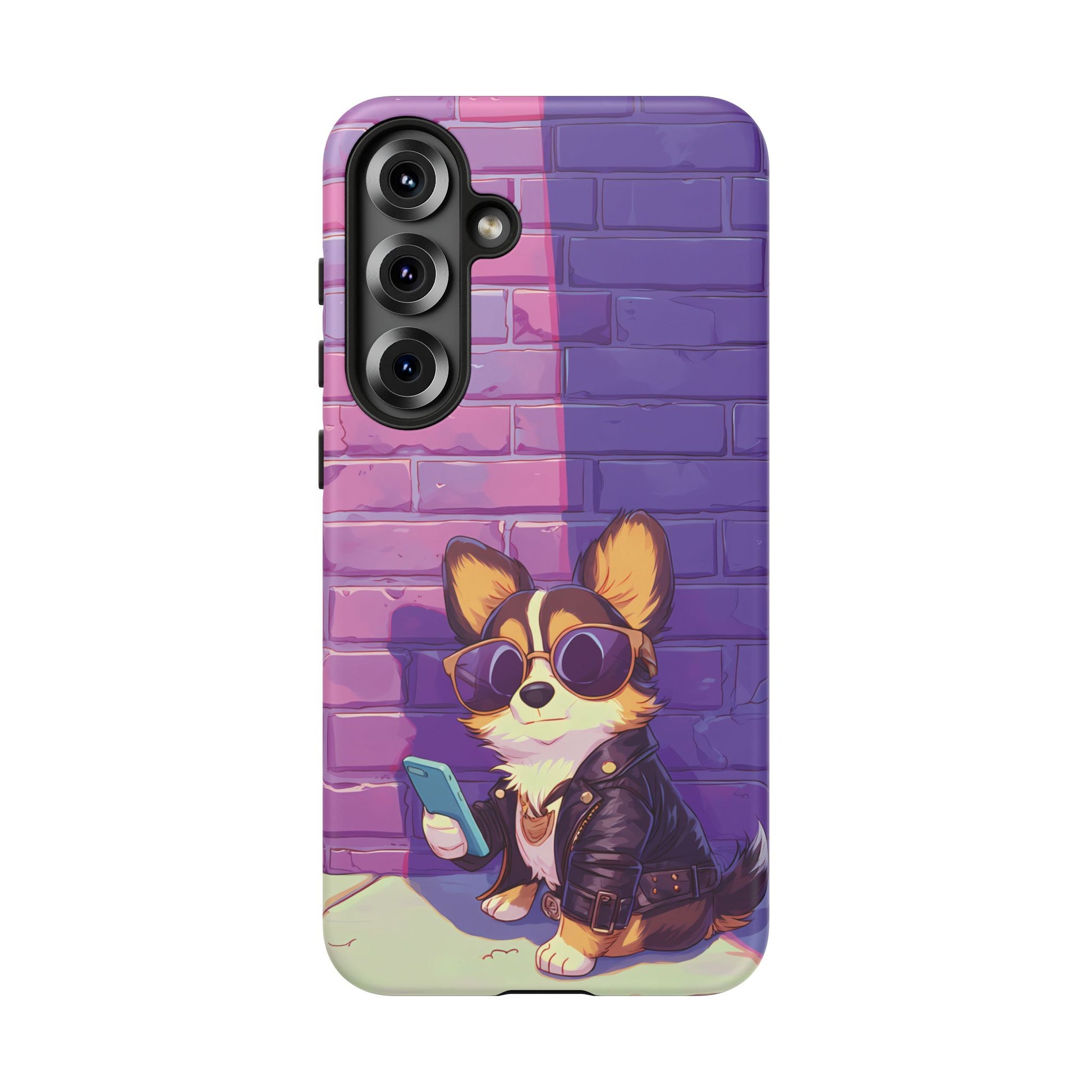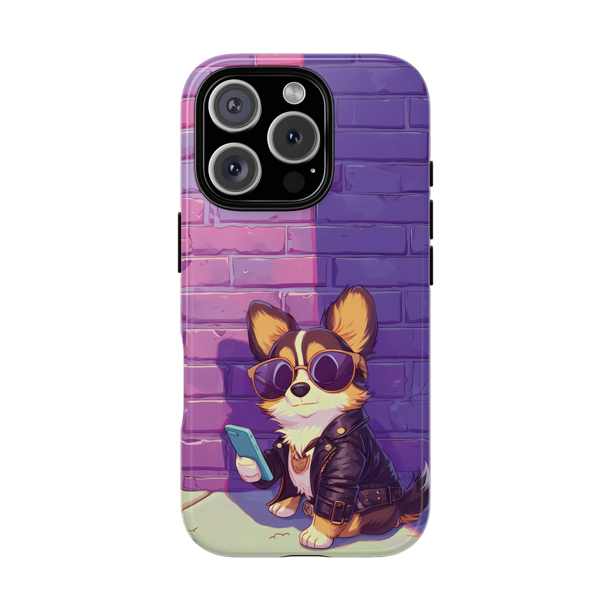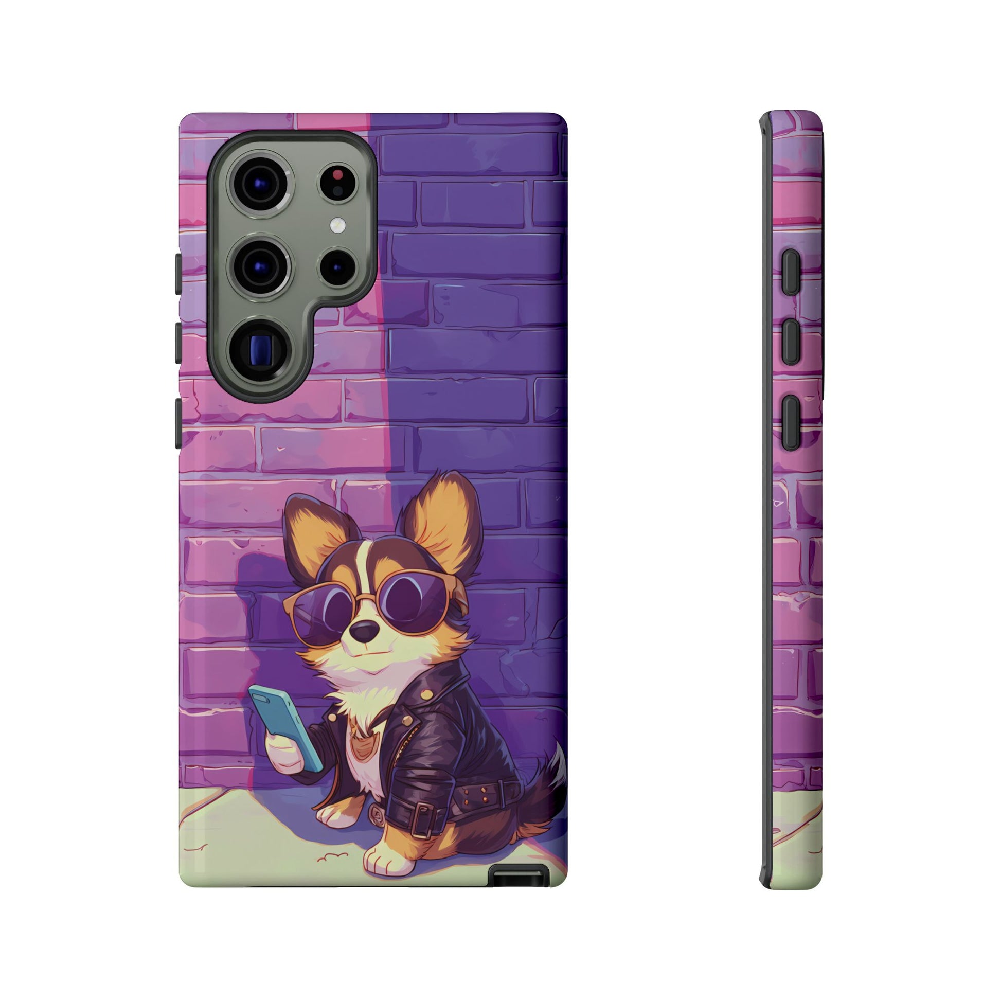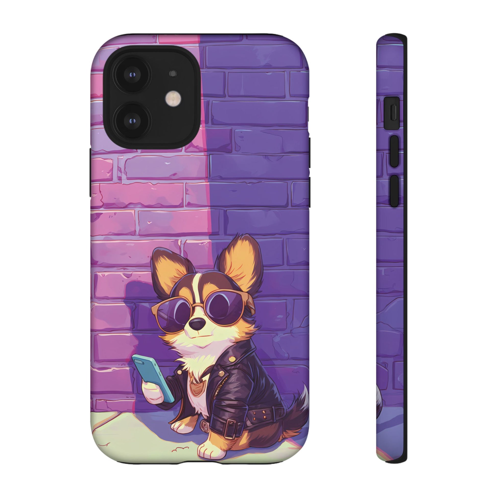 A street-smart pup chilling with major style—sunglasses, a sleek leather jacket, and a phone in paw. This case brings attitude and urban charm to your device.