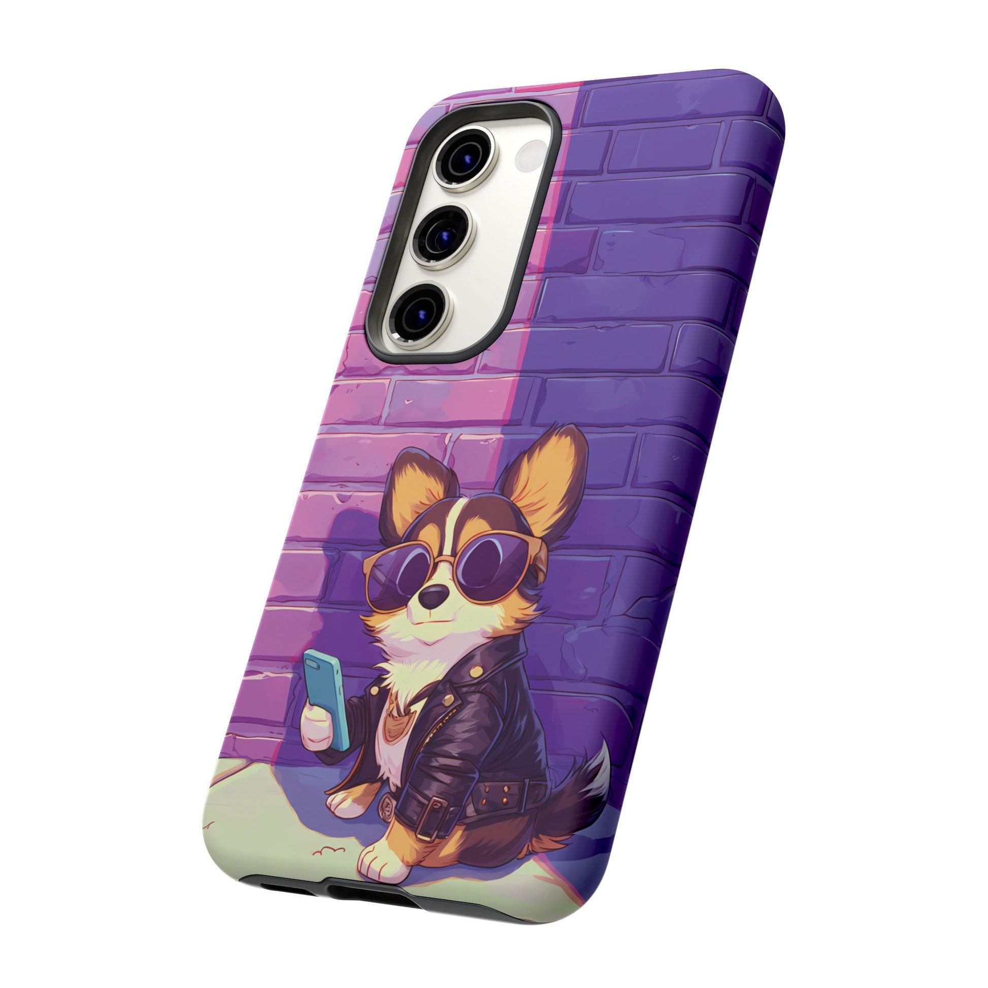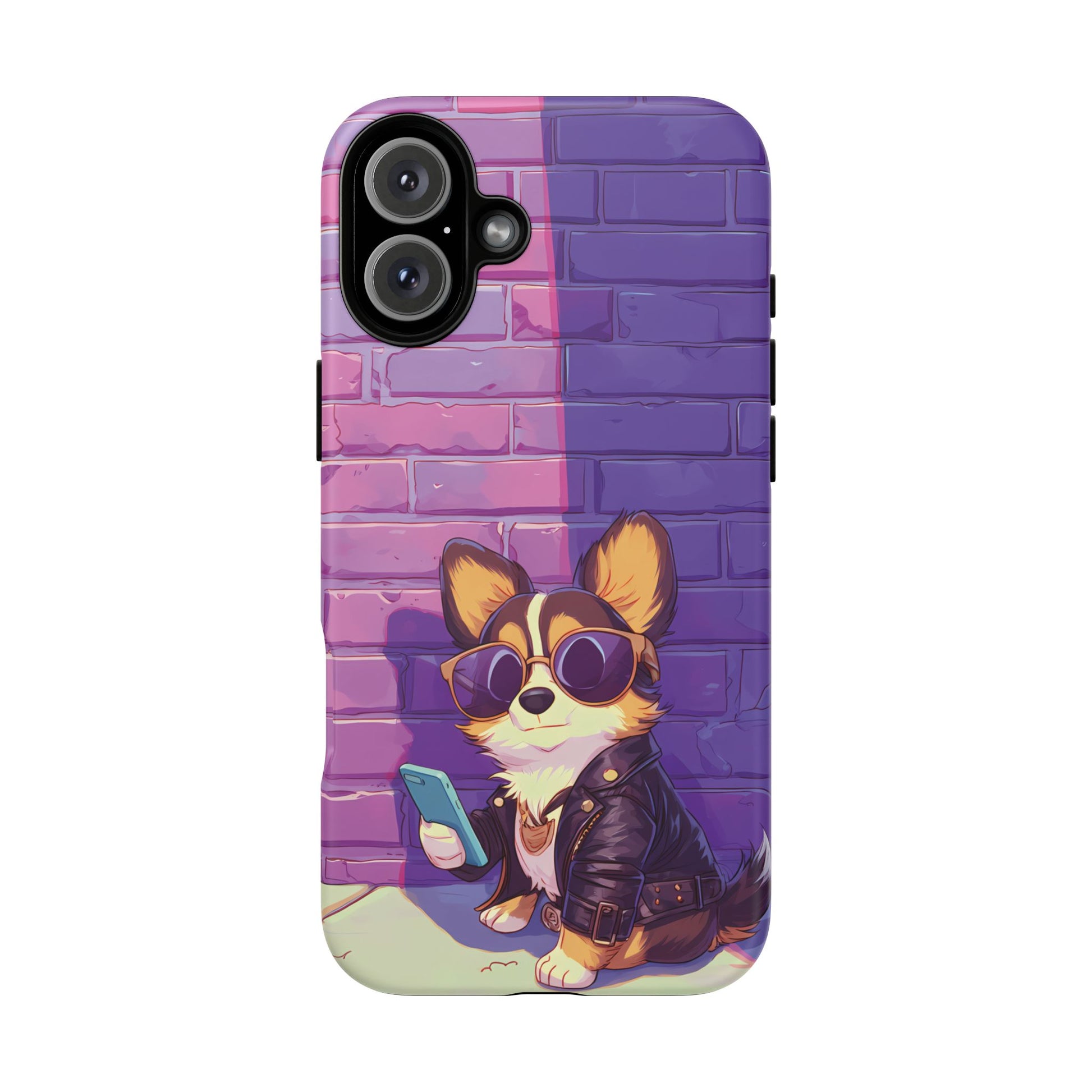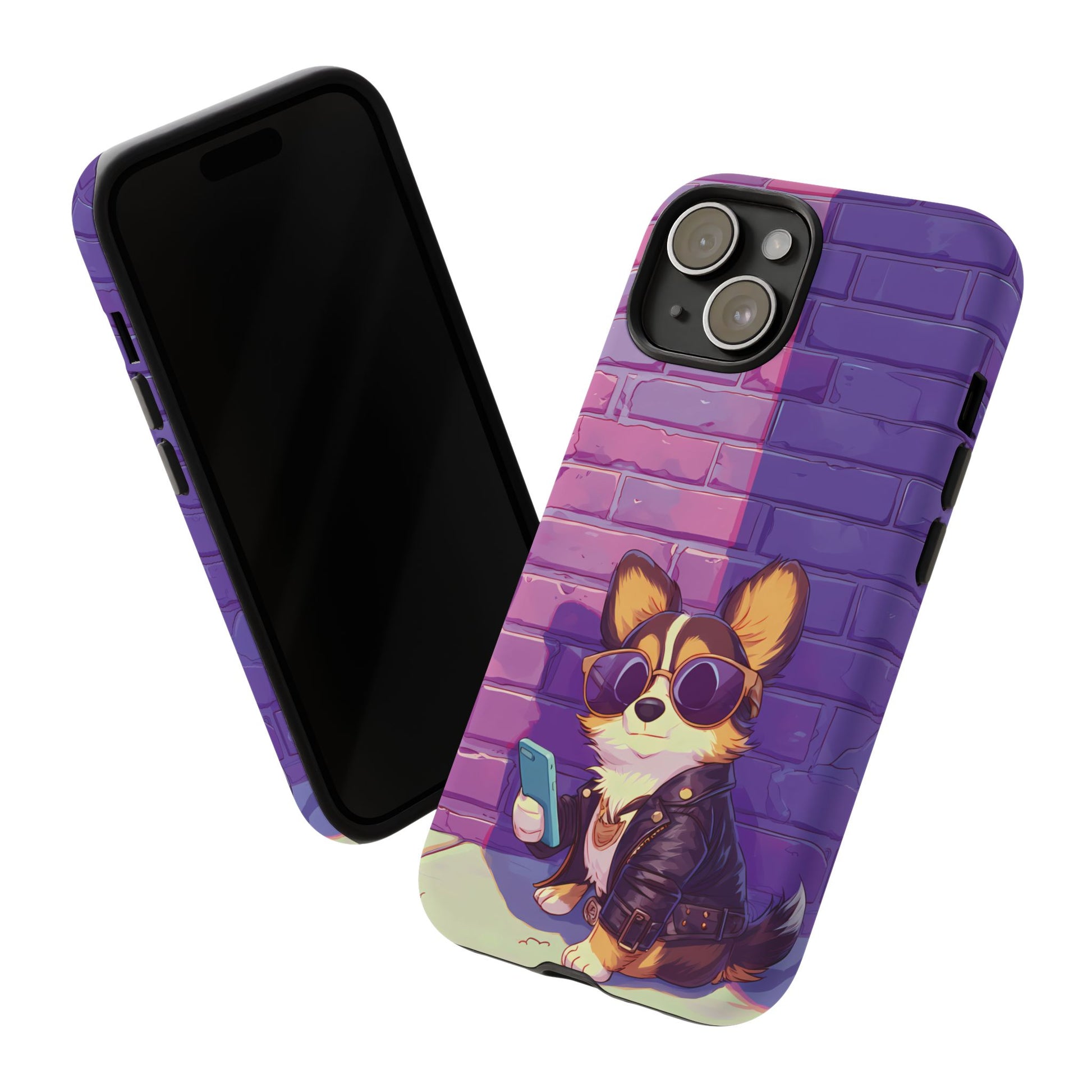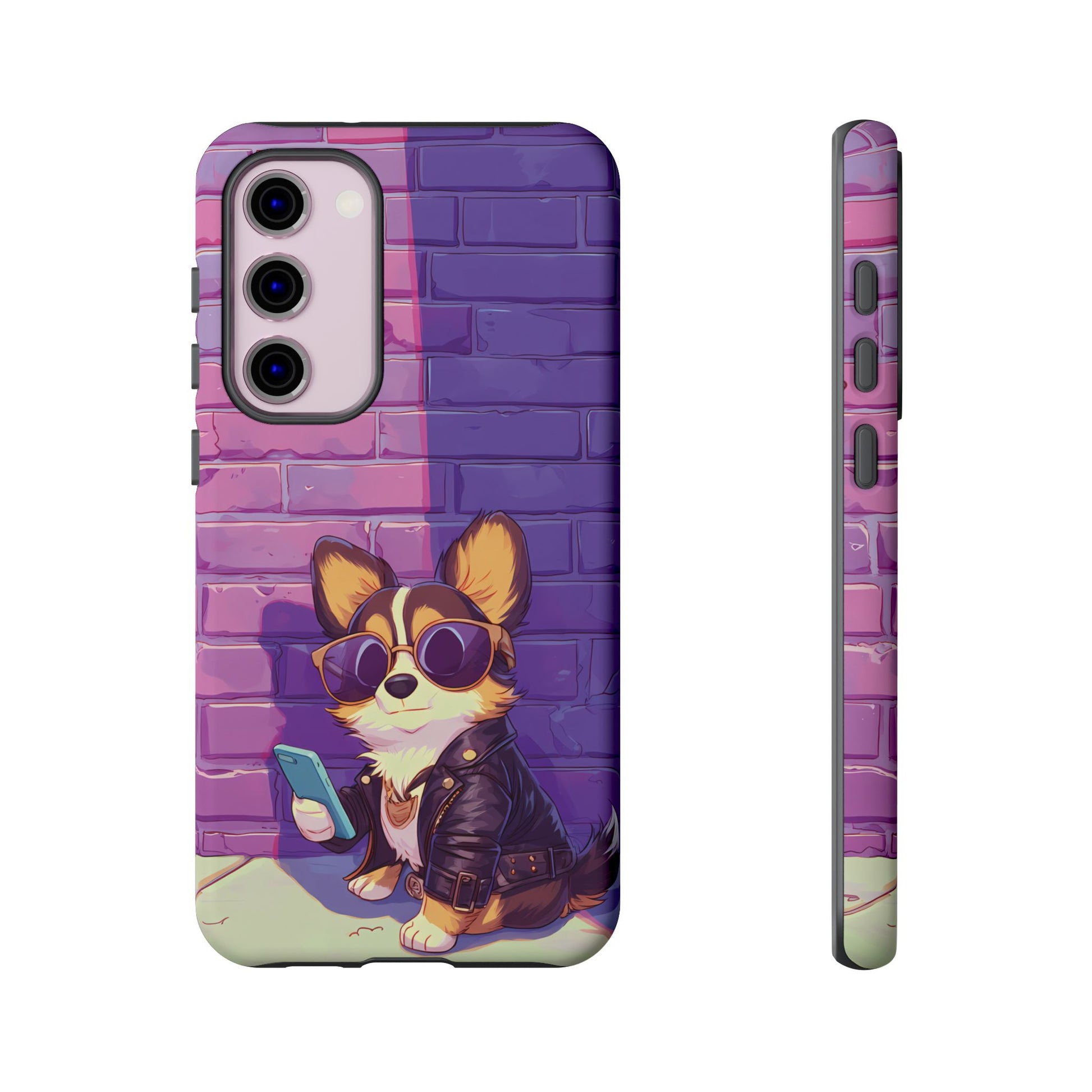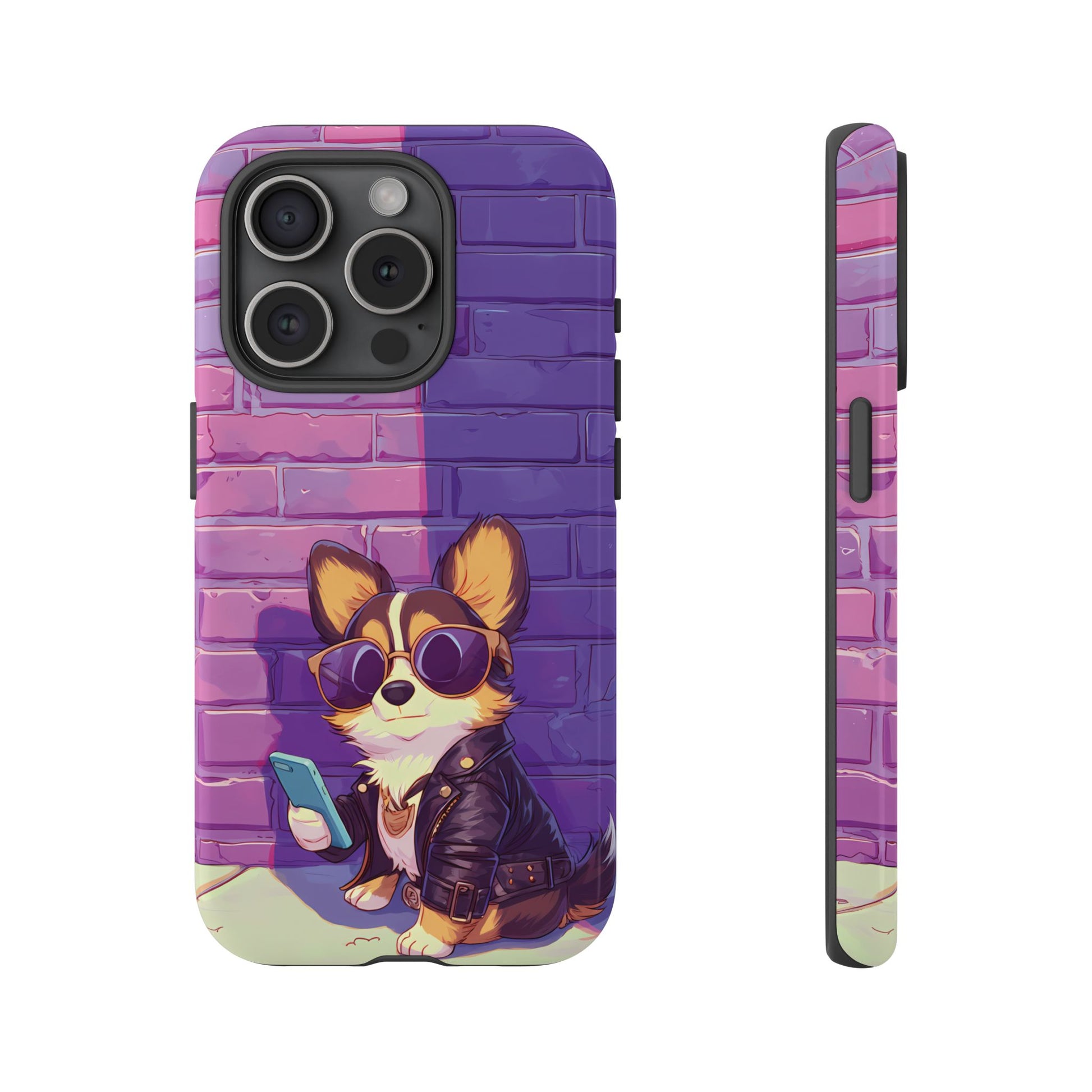 A street-smart pup chilling with major style—sunglasses, a sleek leather jacket, and a phone in paw. This case brings attitude and urban charm to your device.