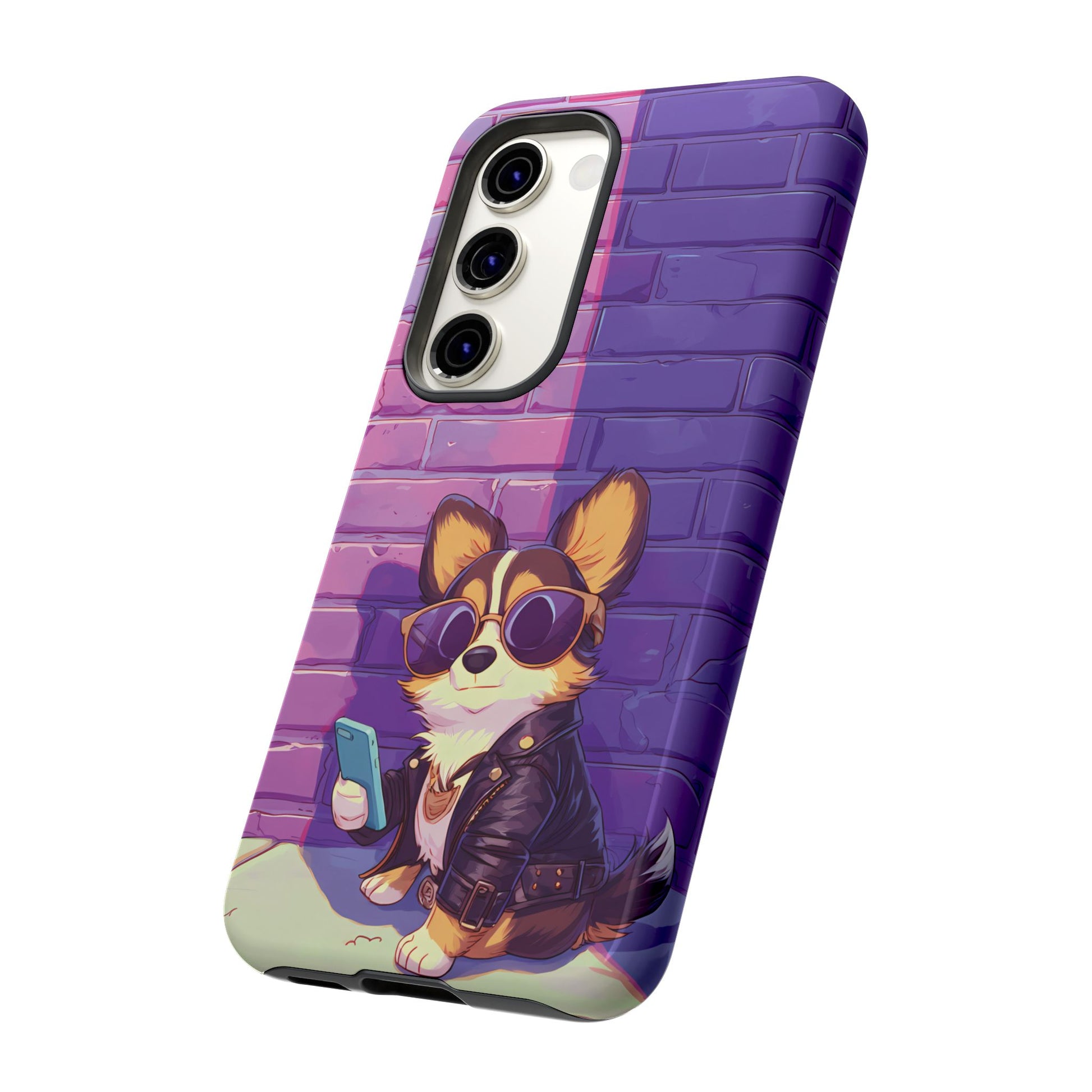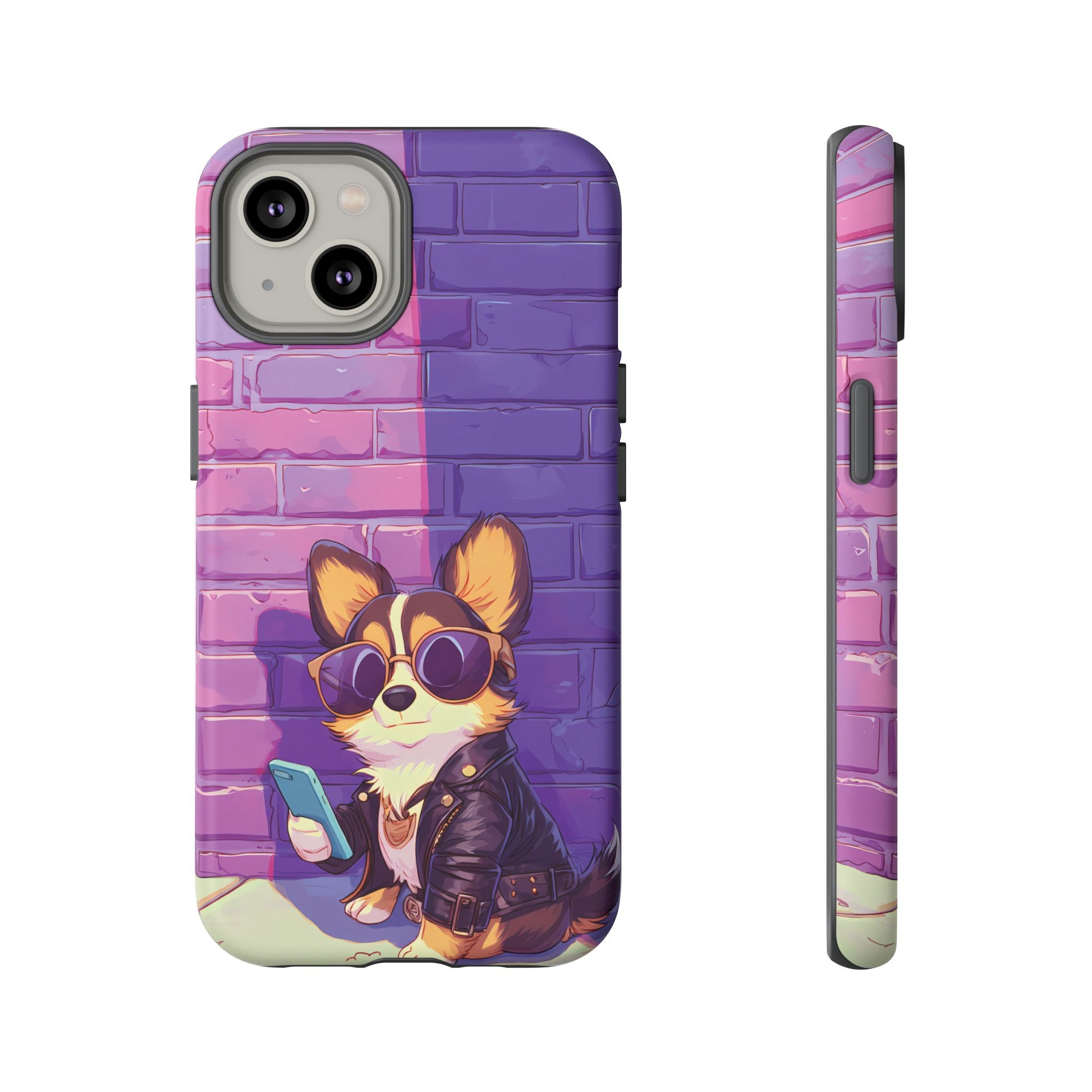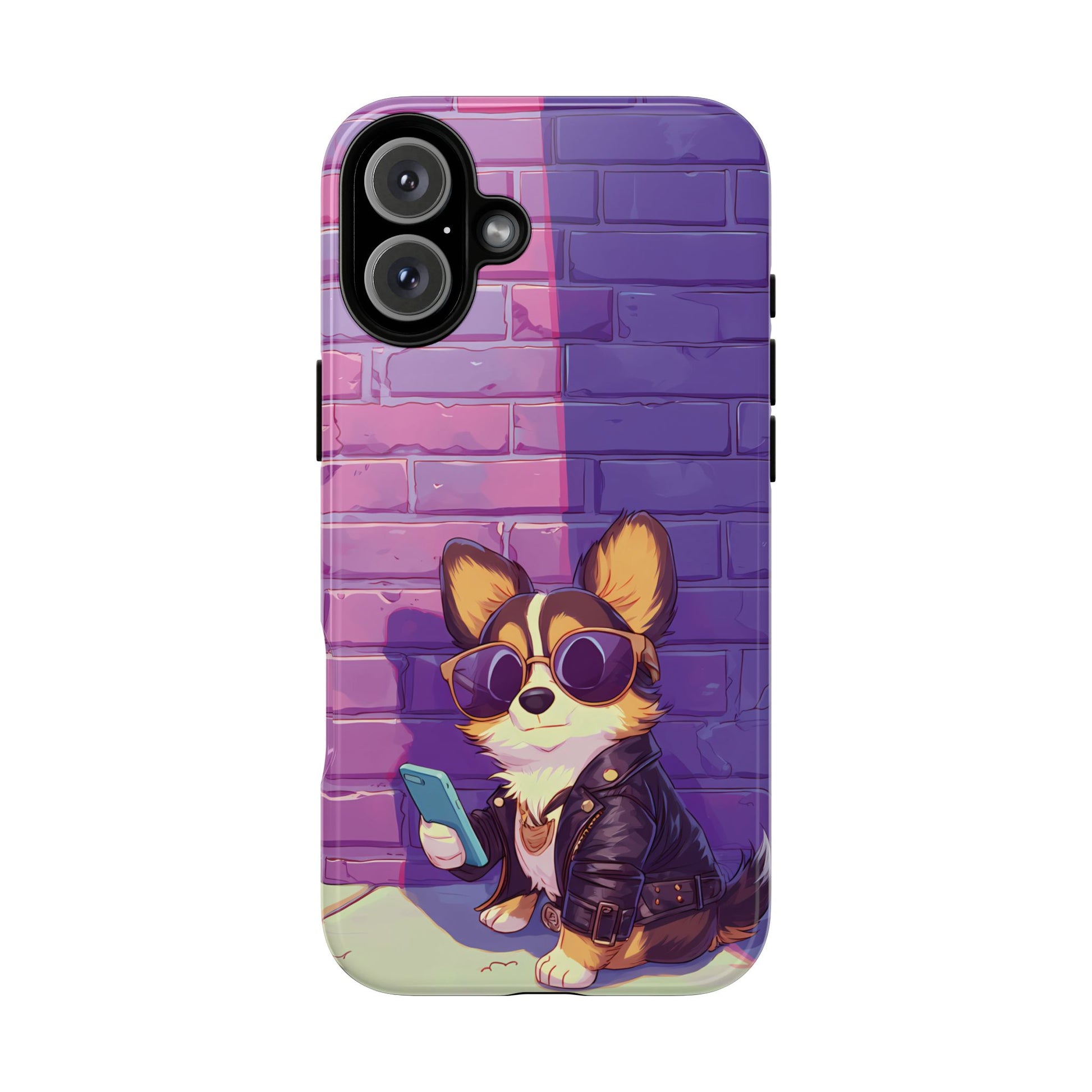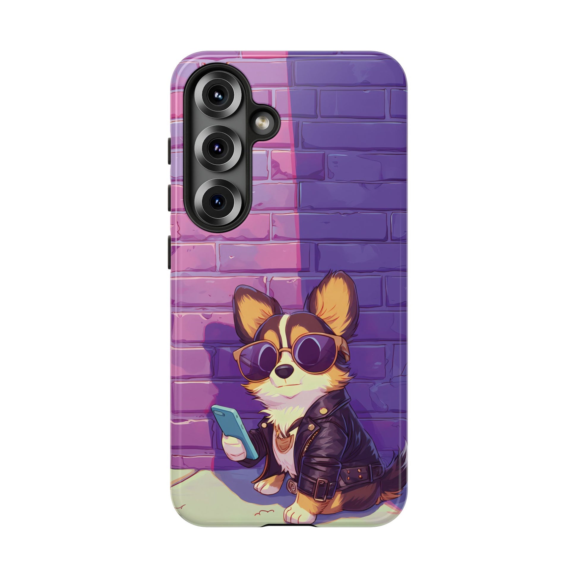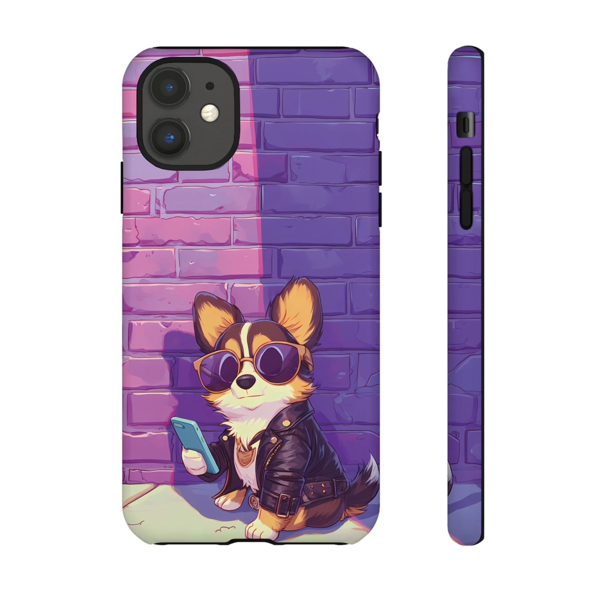 A street-smart pup chilling with major style—sunglasses, a sleek leather jacket, and a phone in paw. This case brings attitude and urban charm to your device.