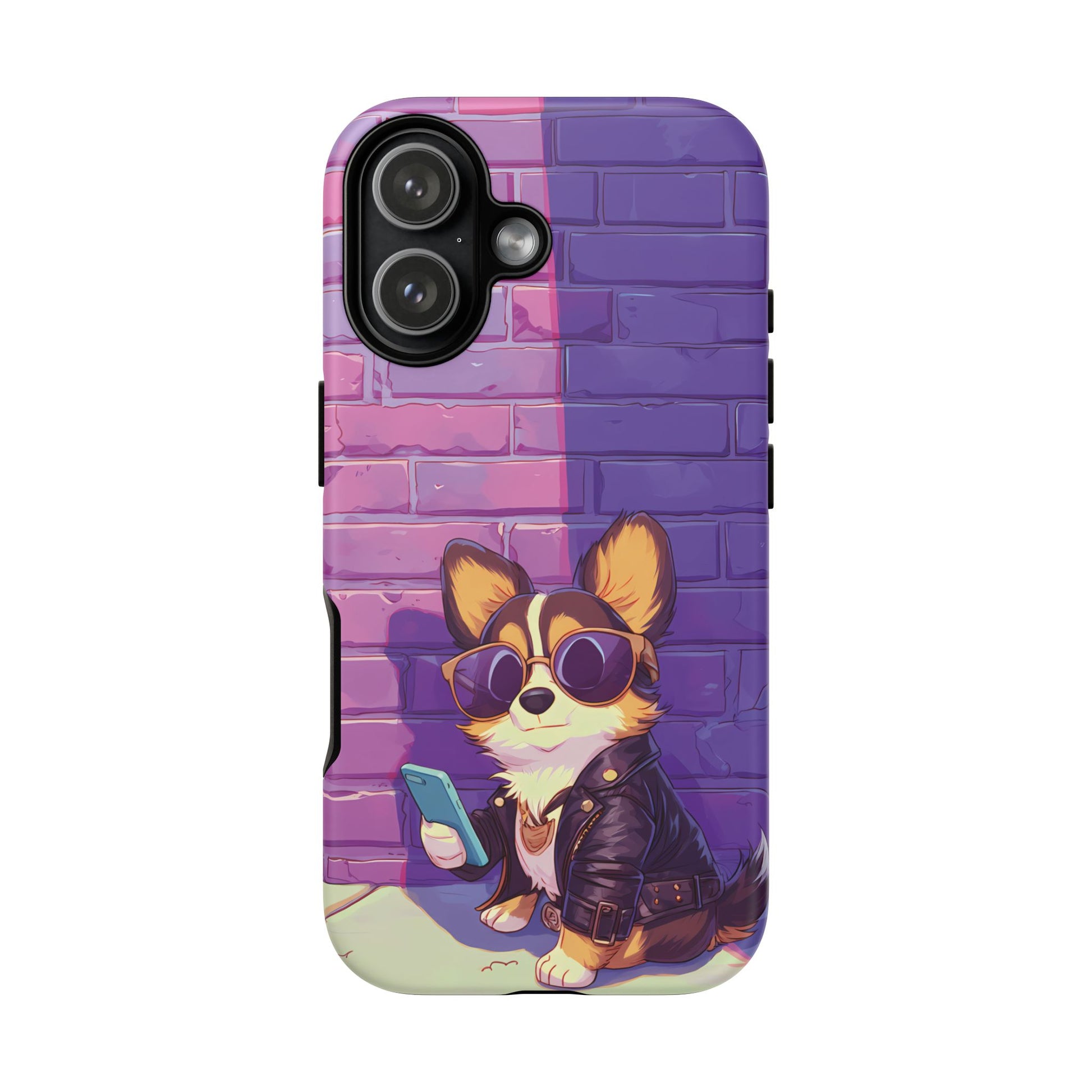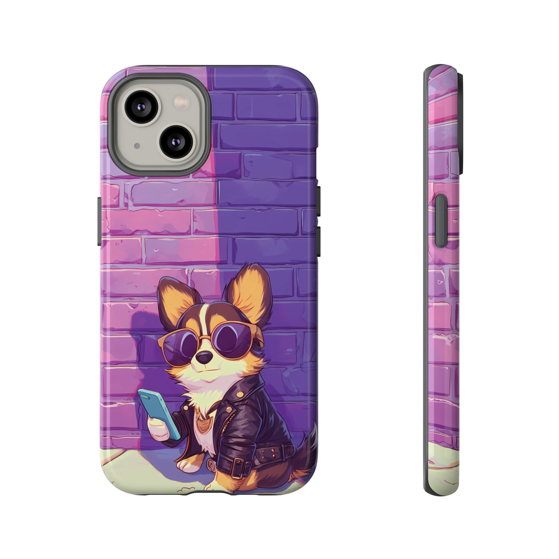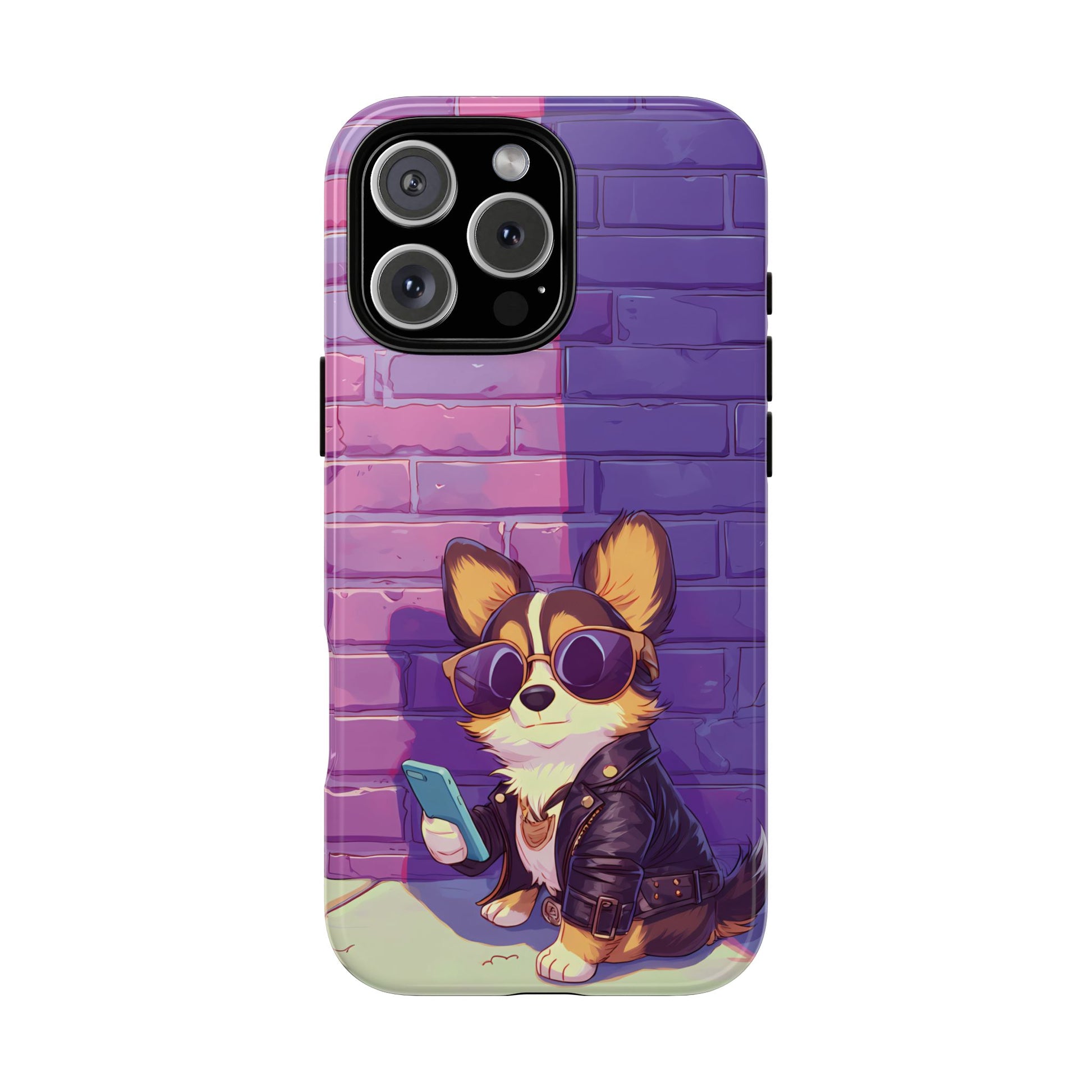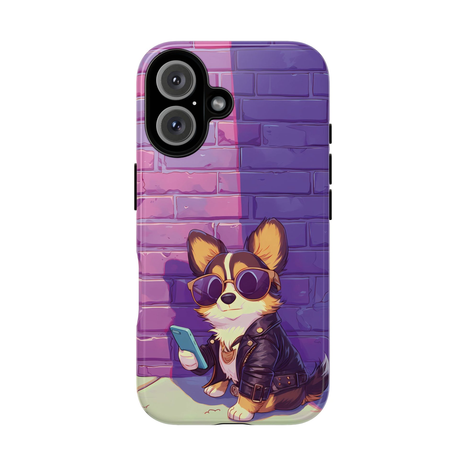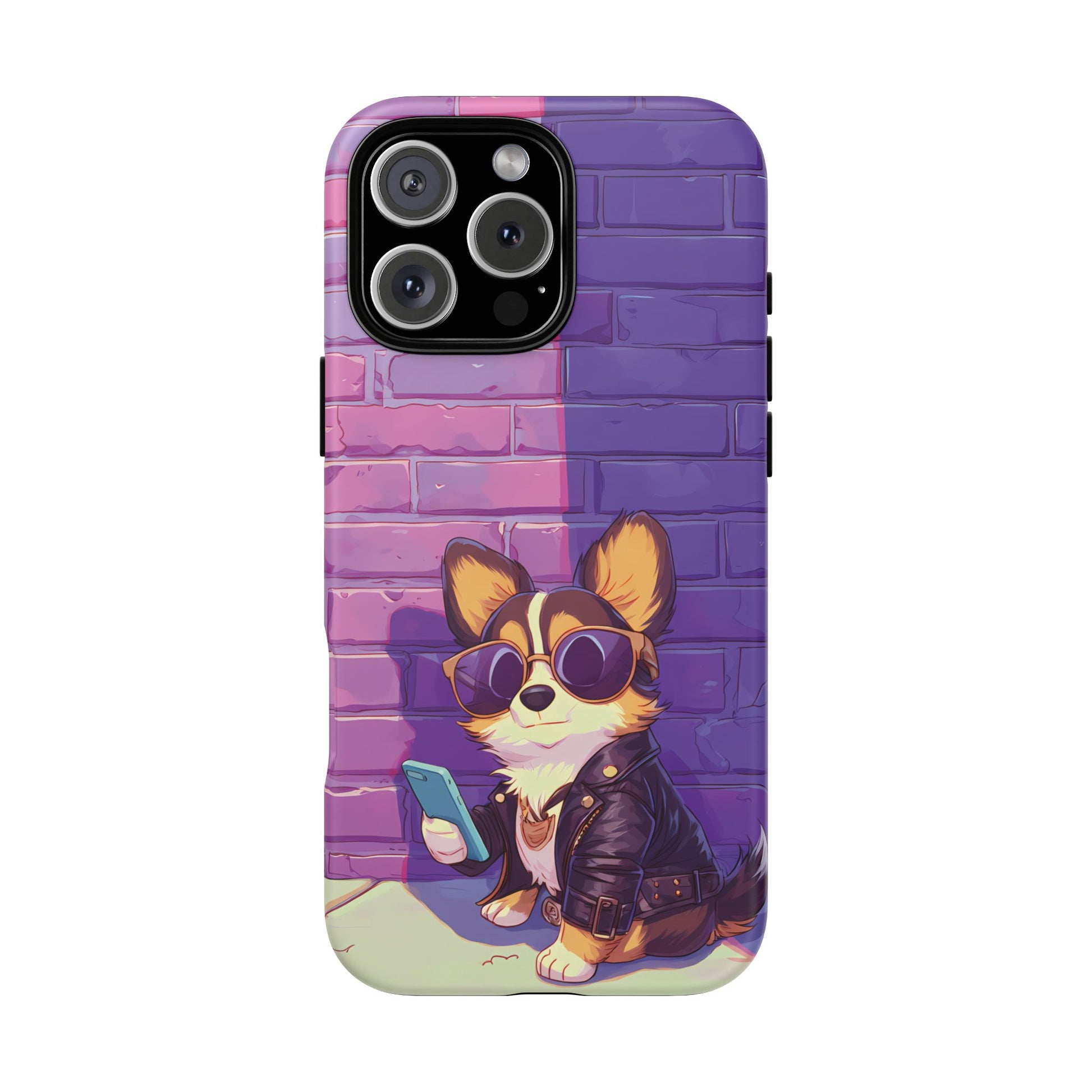 A street-smart pup chilling with major style—sunglasses, a sleek leather jacket, and a phone in paw. This case brings attitude and urban charm to your device.