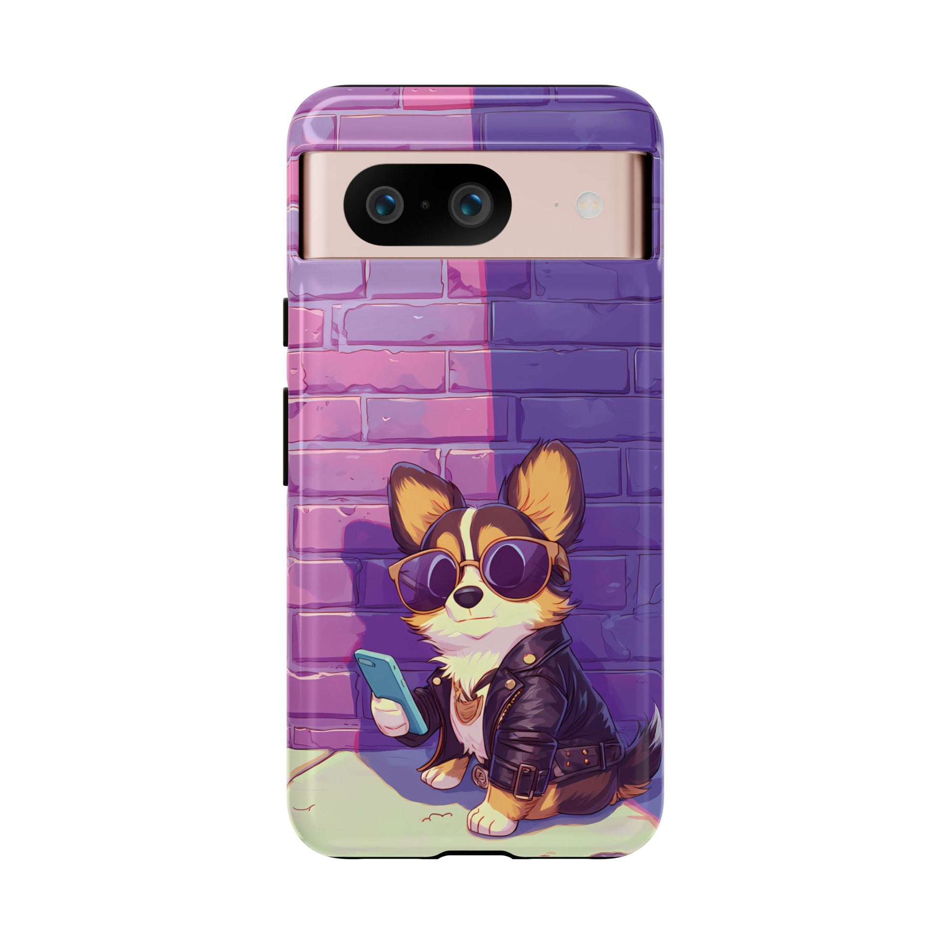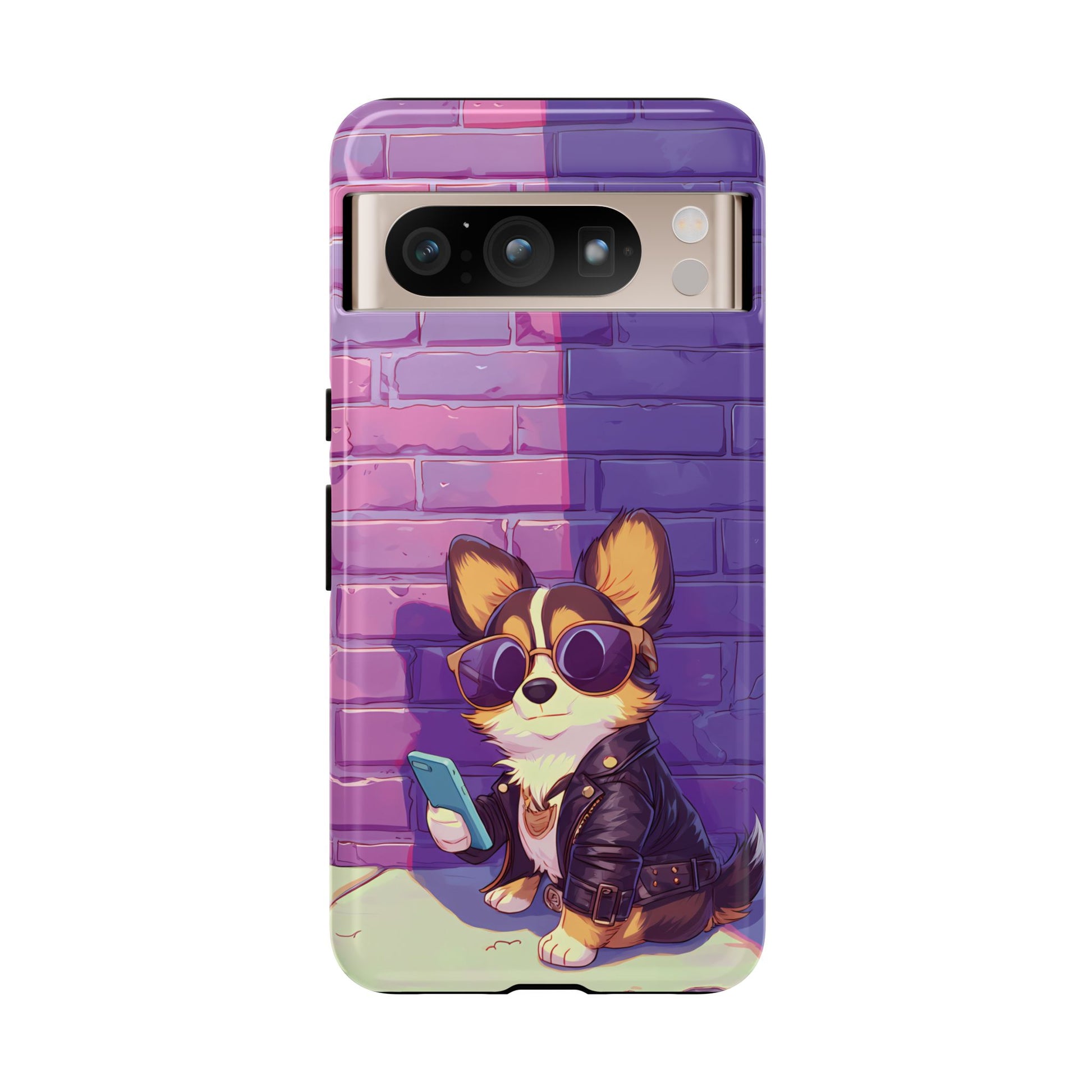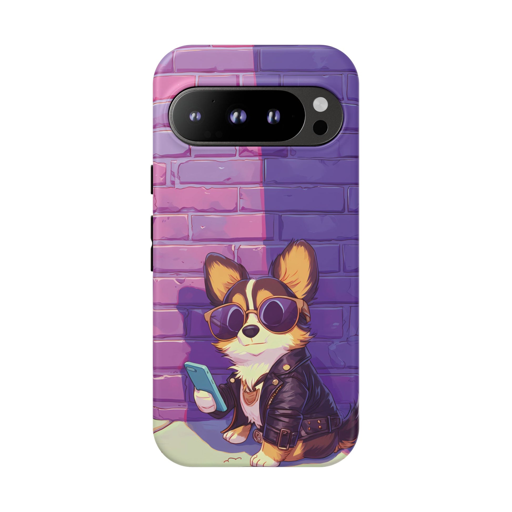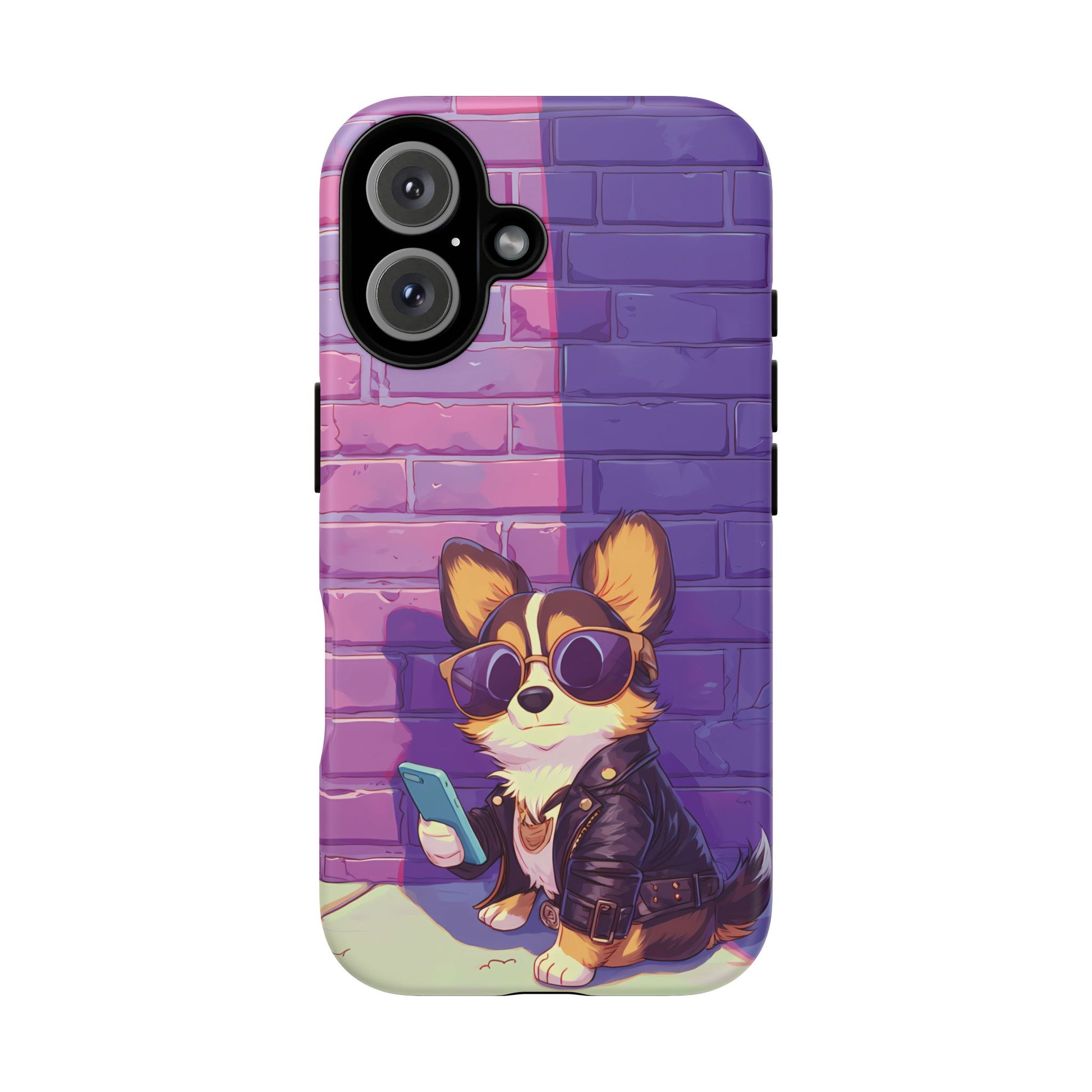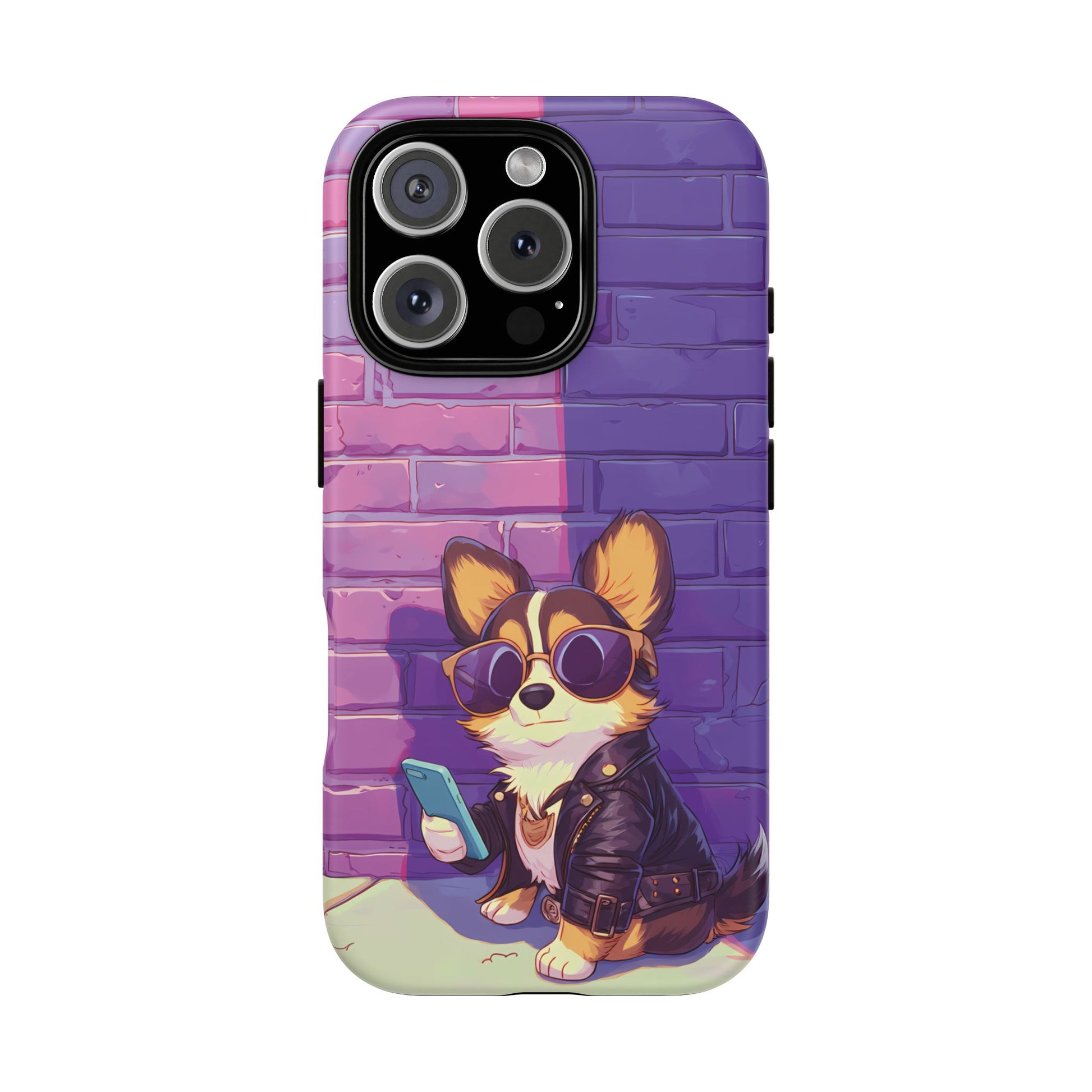 A street-smart pup chilling with major style—sunglasses, a sleek leather jacket, and a phone in paw. This case brings attitude and urban charm to your device.