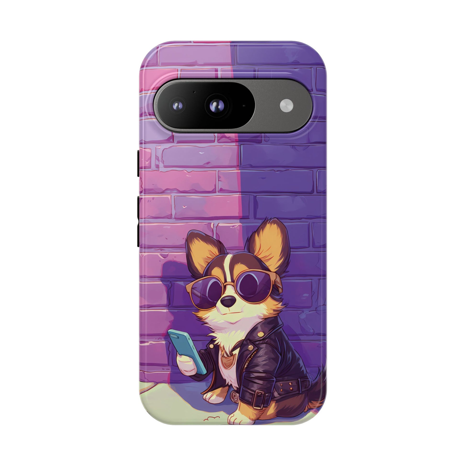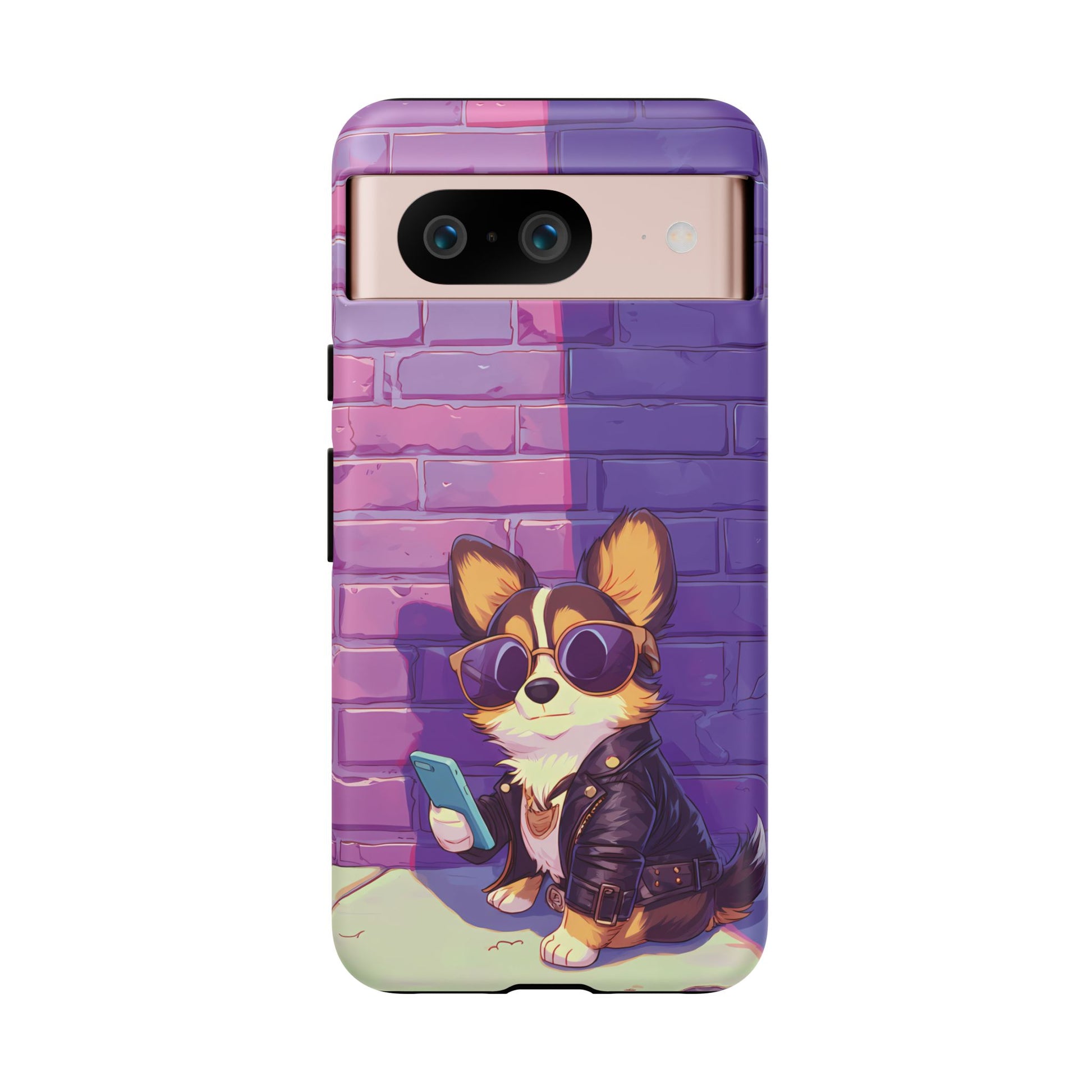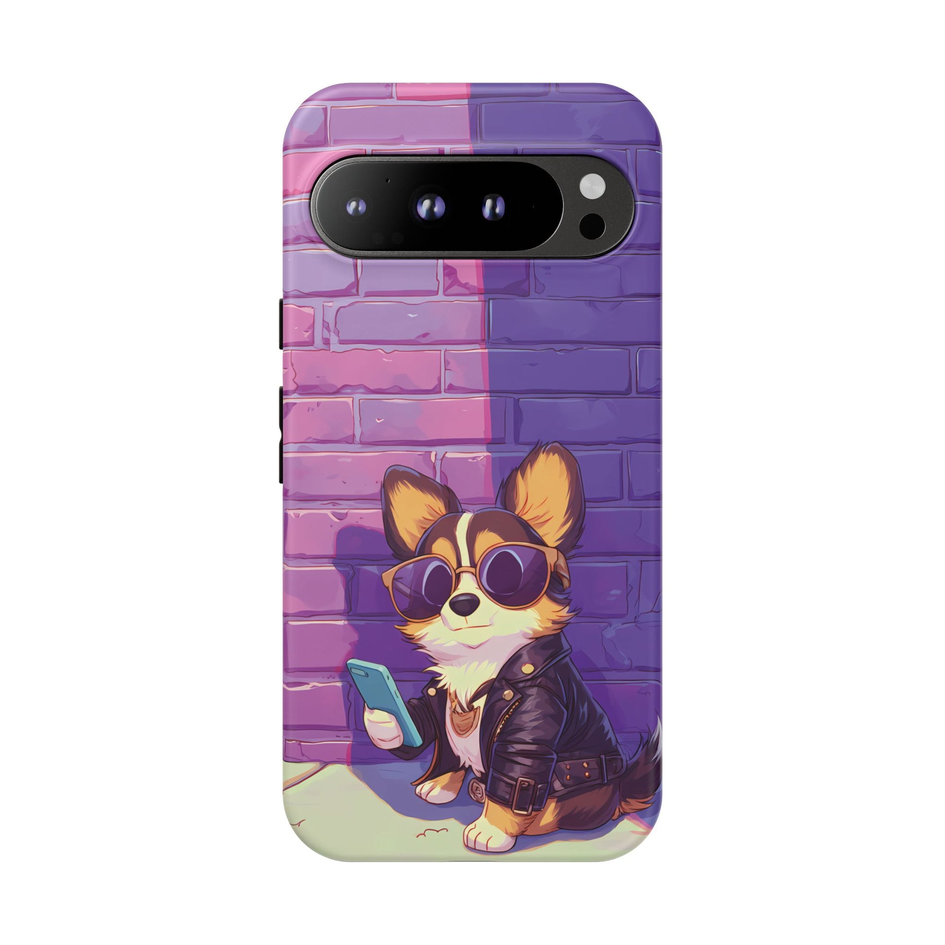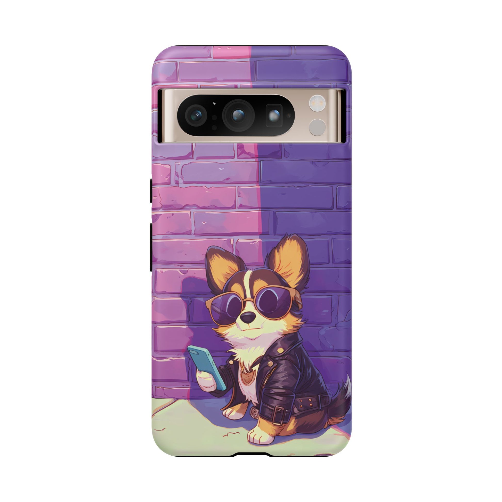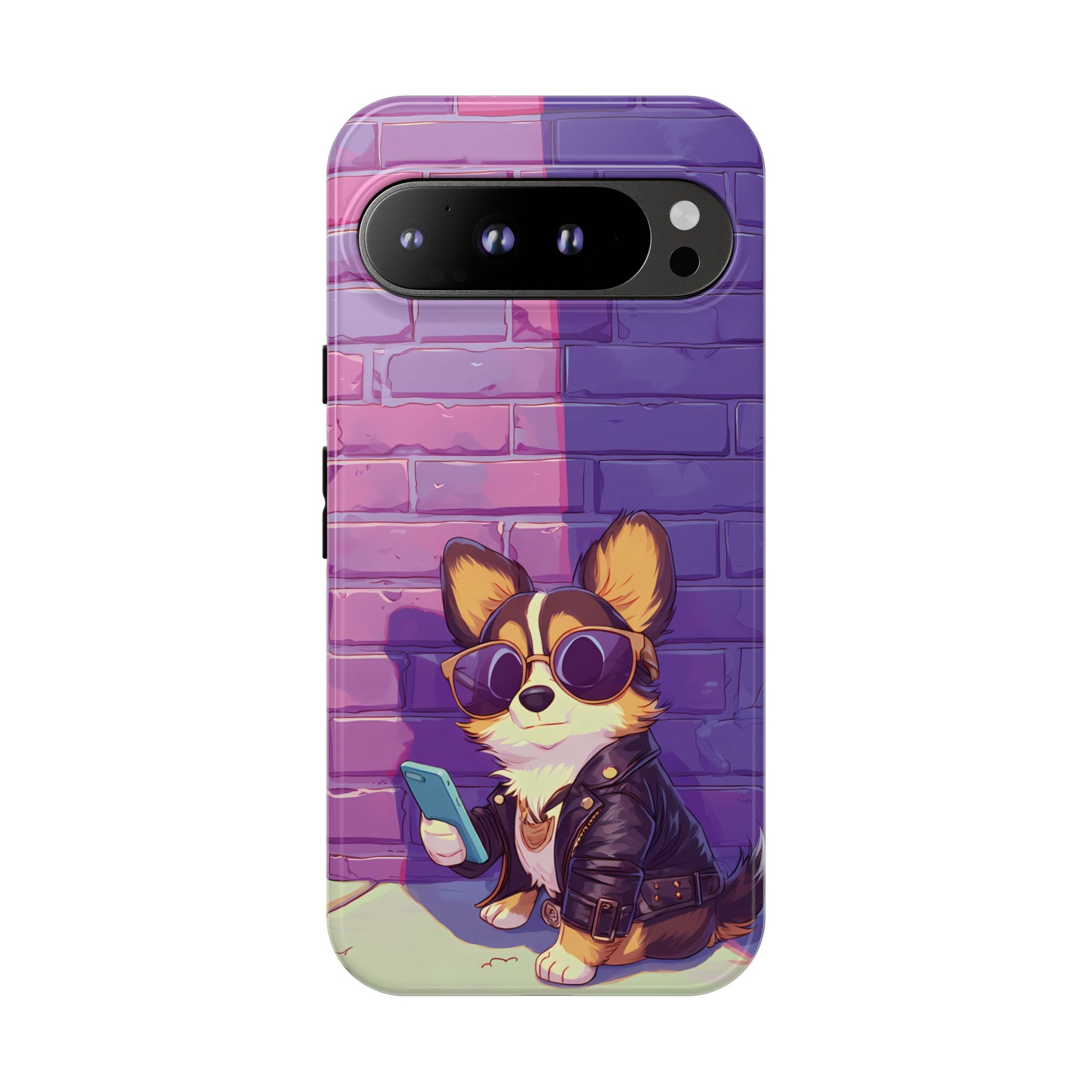 A street-smart pup chilling with major style—sunglasses, a sleek leather jacket, and a phone in paw. This case brings attitude and urban charm to your device.