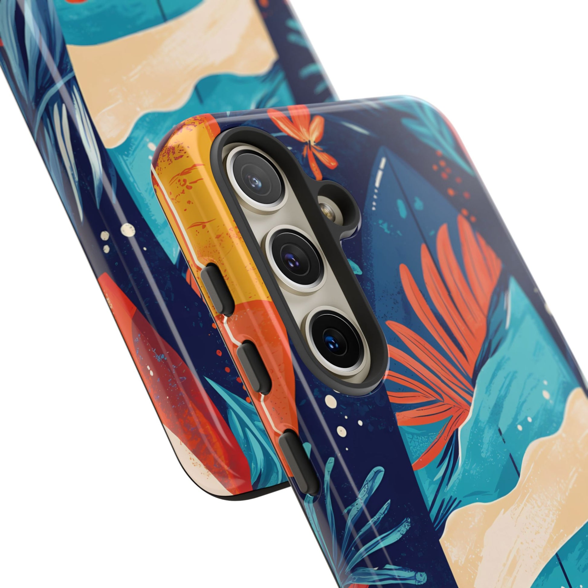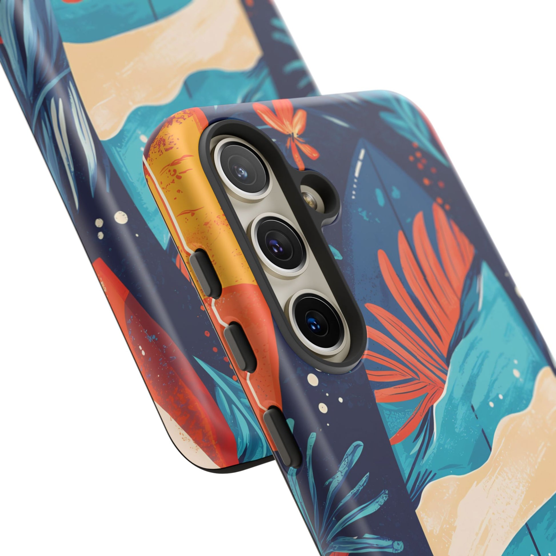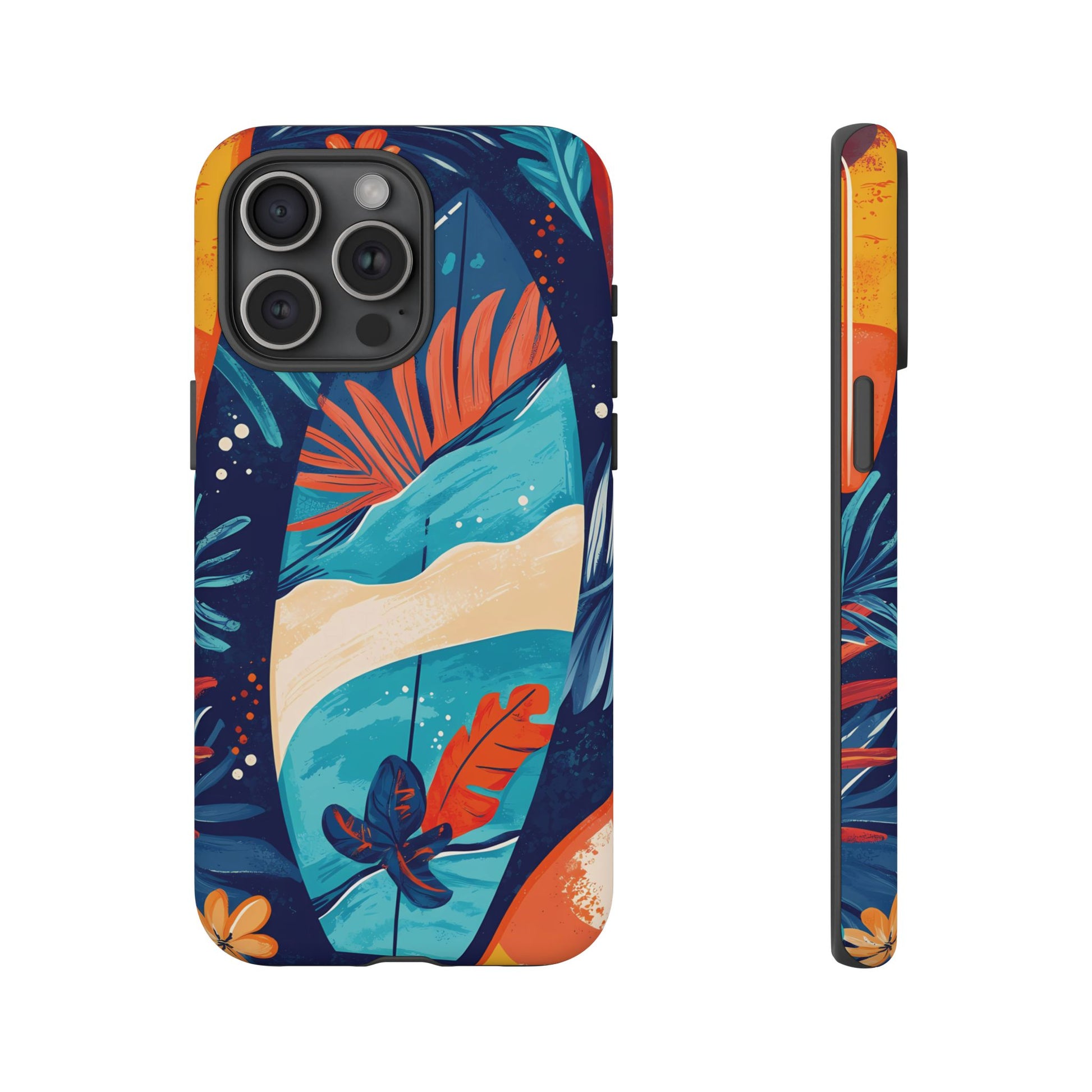 Surfboard theme, beautiful waves, and a surfing vibe. Gives off a fun and adventurous atmosphere, perfect for those who love the beach and surfing. Ideal for adults who enjoy outdoor activities and want to protect their phone in style. Relevant for summer, beach vacations, and water sports enthusiasts.