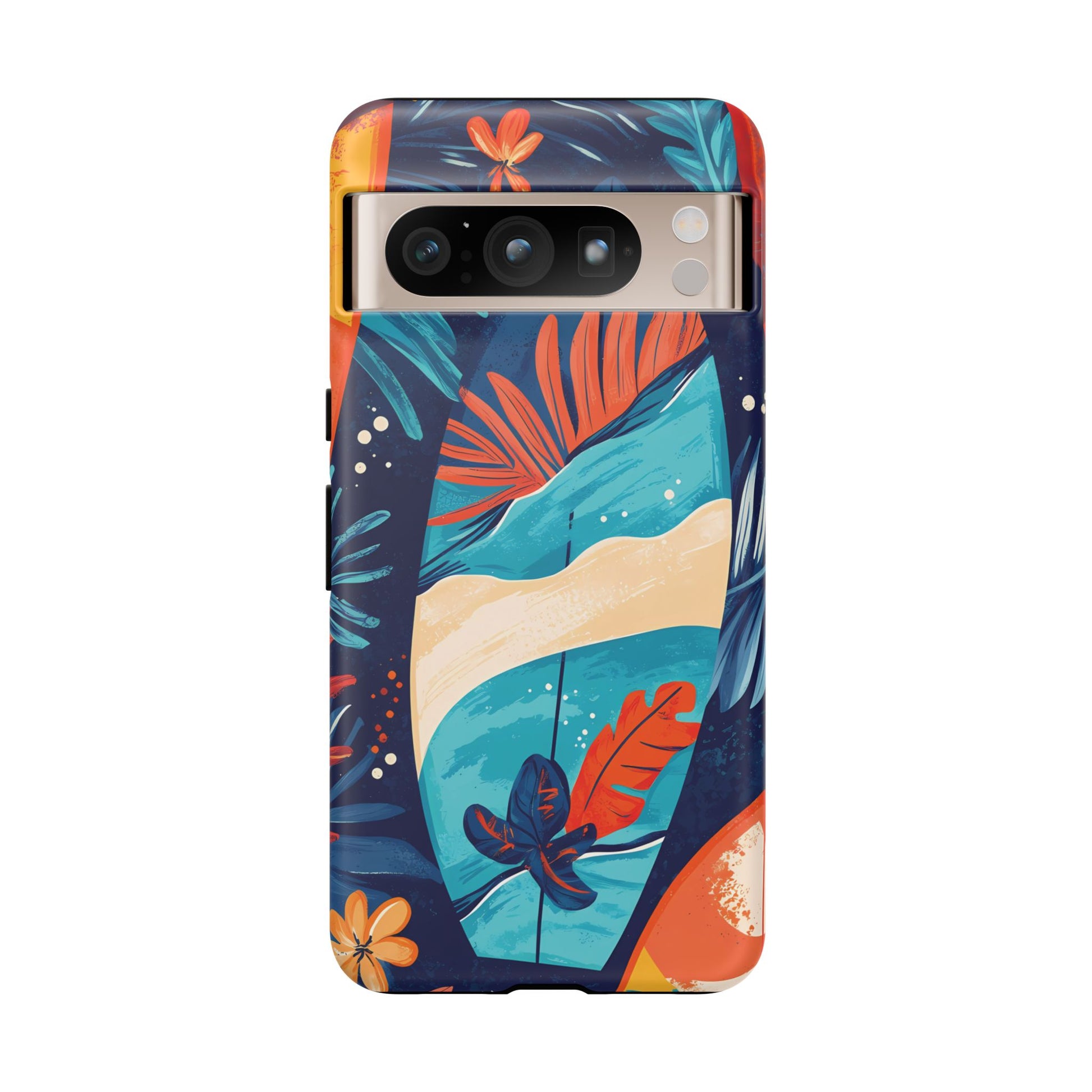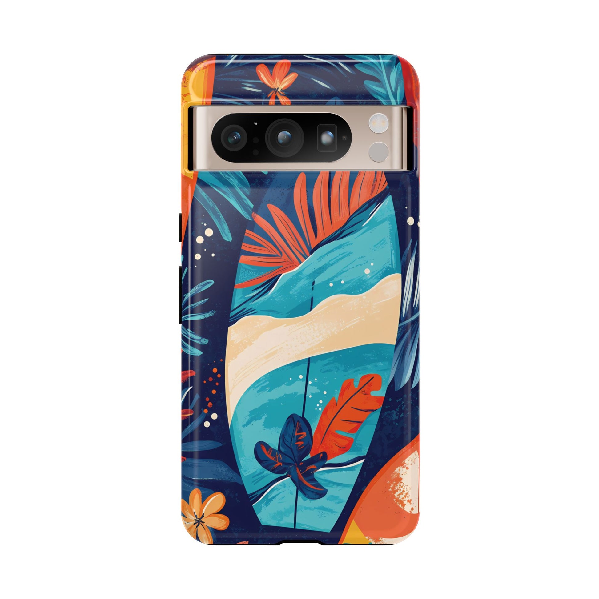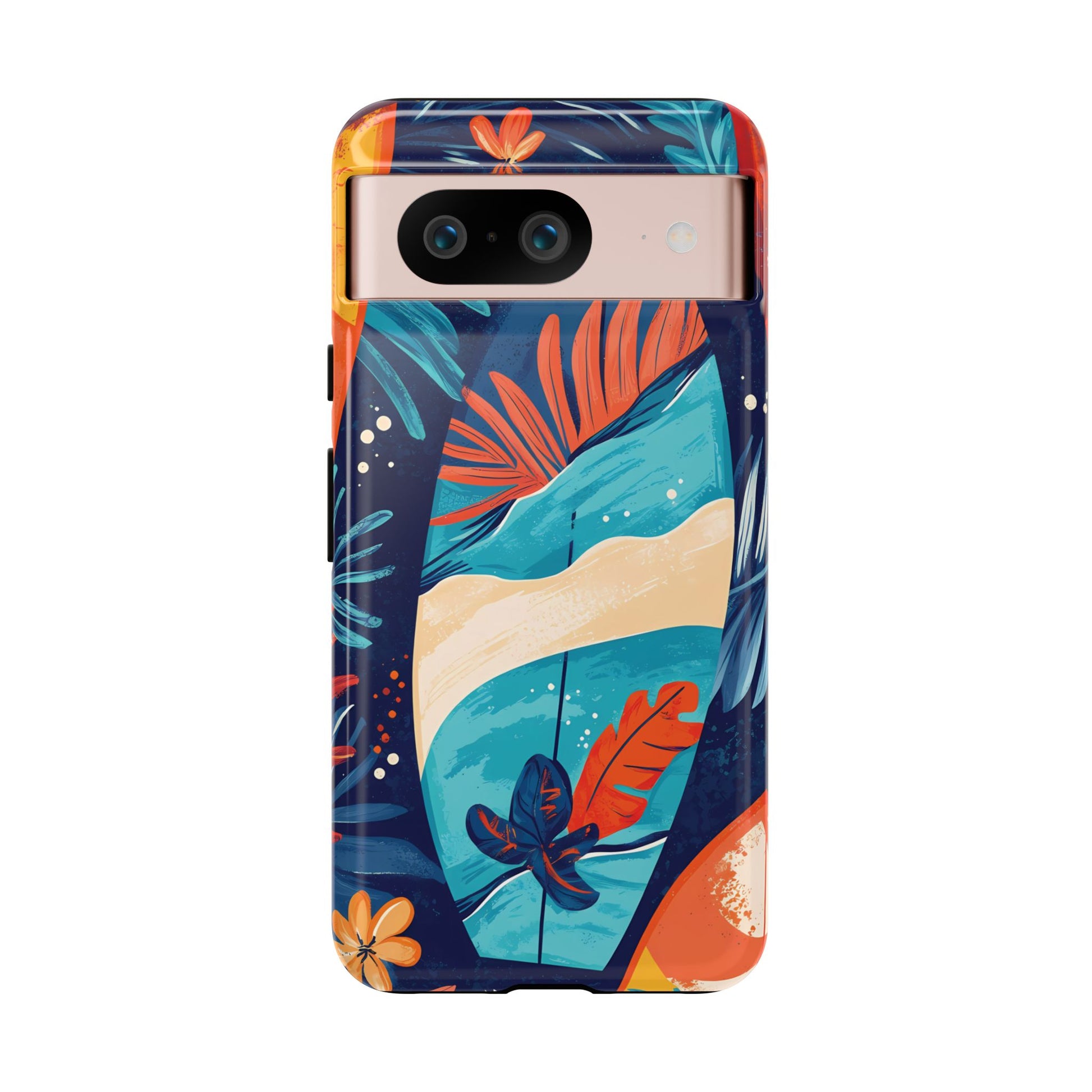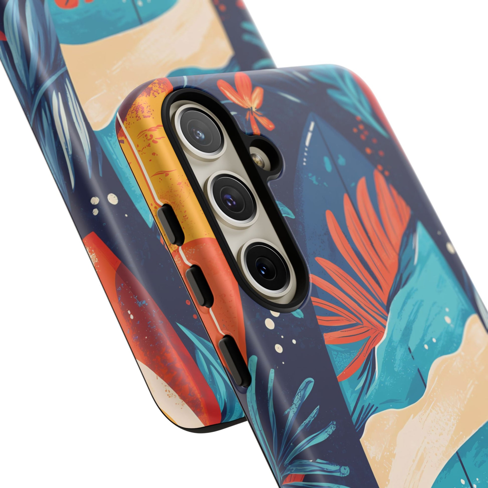 Surfboard theme, beautiful waves, and a surfing vibe. Gives off a fun and adventurous atmosphere, perfect for those who love the beach and surfing. Ideal for adults who enjoy outdoor activities and want to protect their phone in style. Relevant for summer, beach vacations, and water sports enthusiasts.