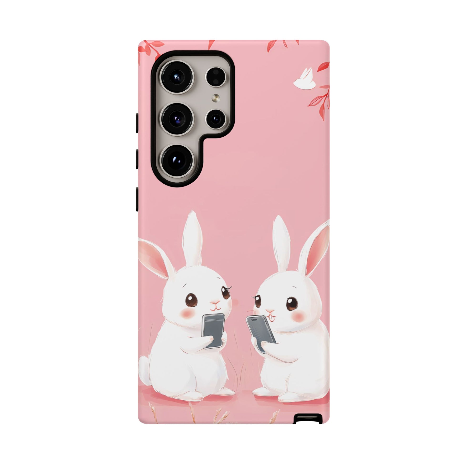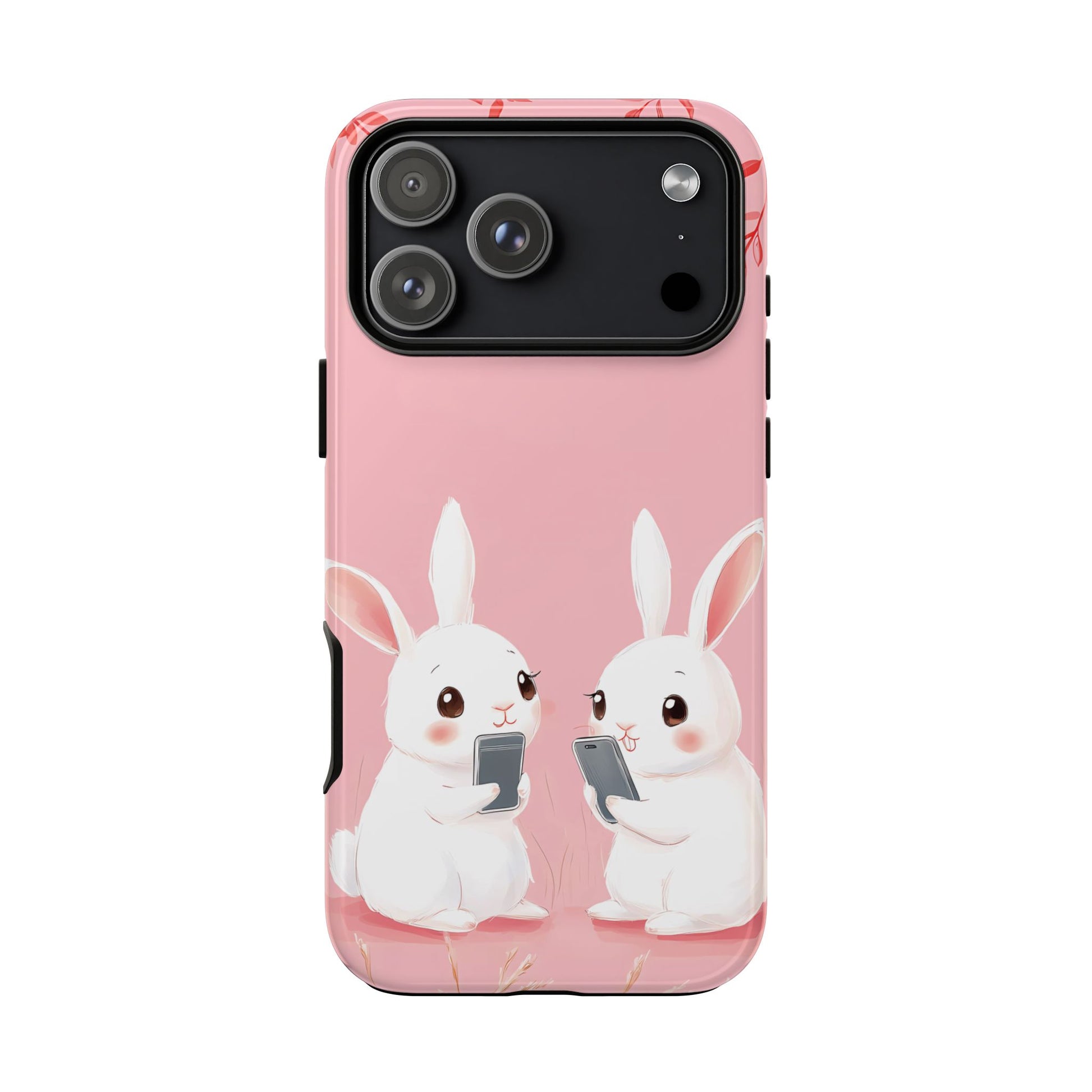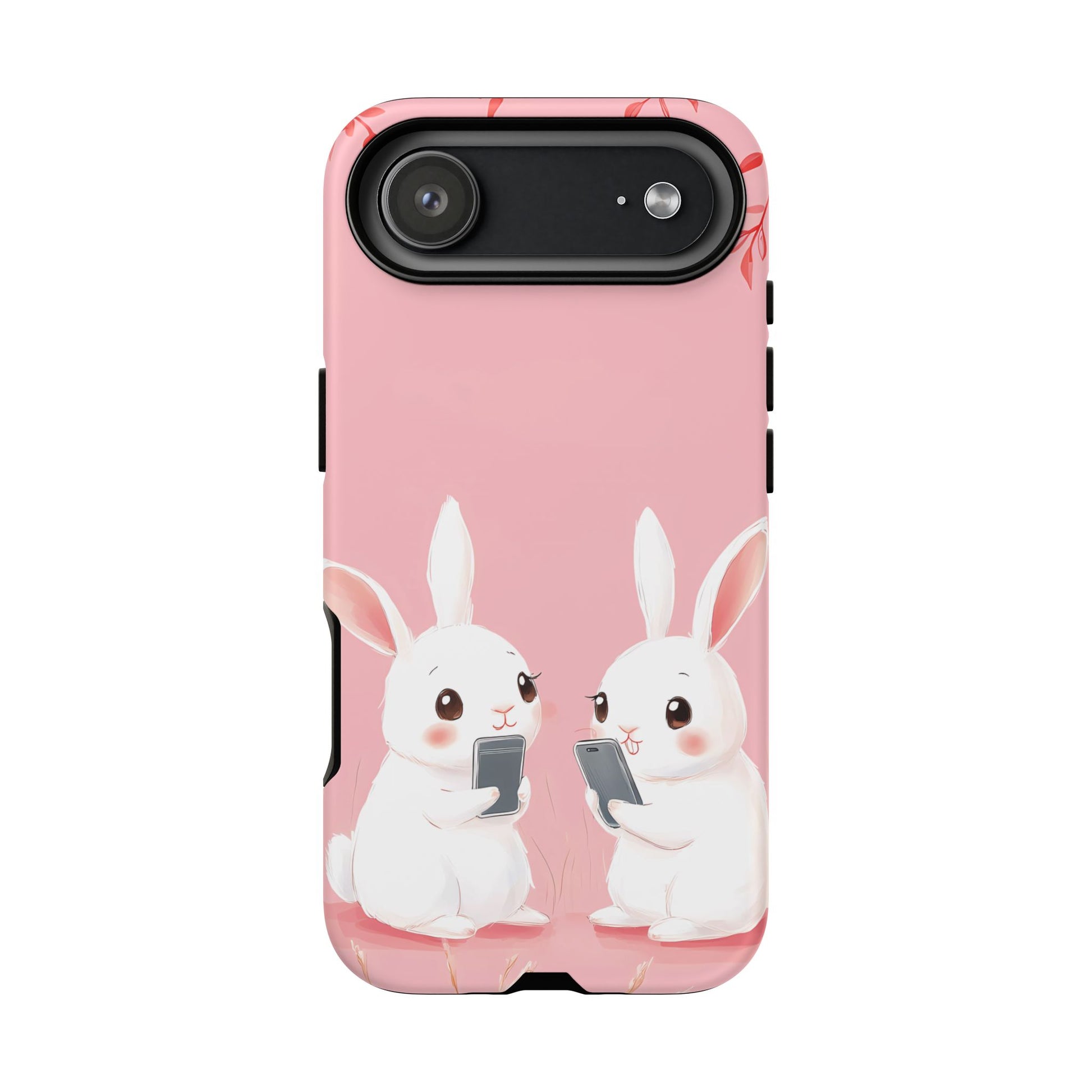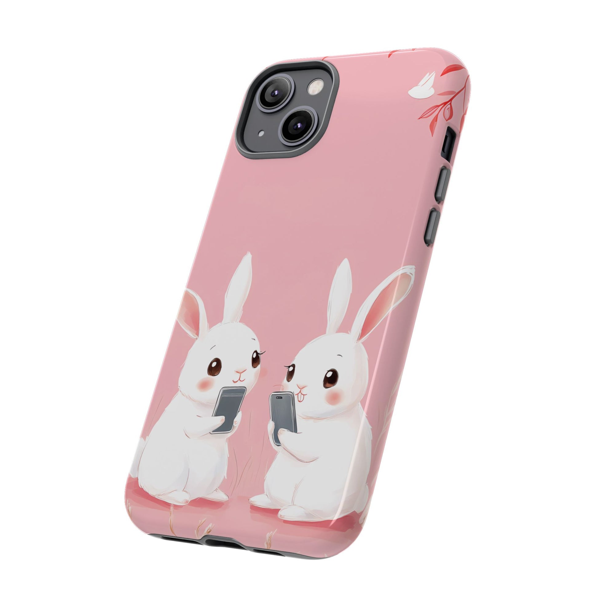 These two curious white bunnies are completely absorbed in their screens! Featuring a cartoon-inspired design with a touch of humor, this phone case is a must-have for anyone who loves cute animals, modern life, and a little digital obsession.