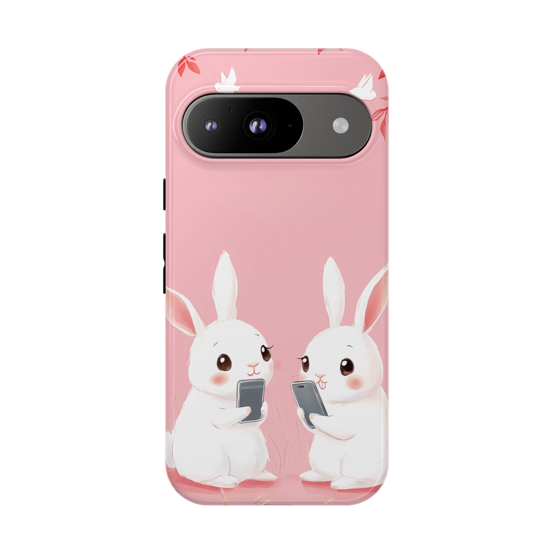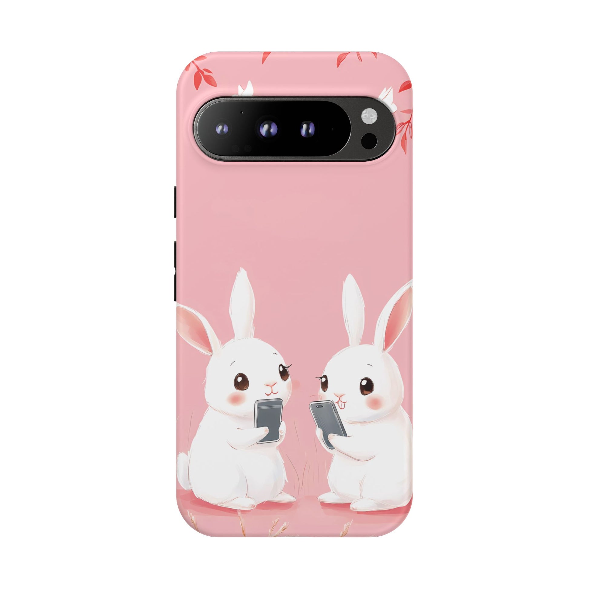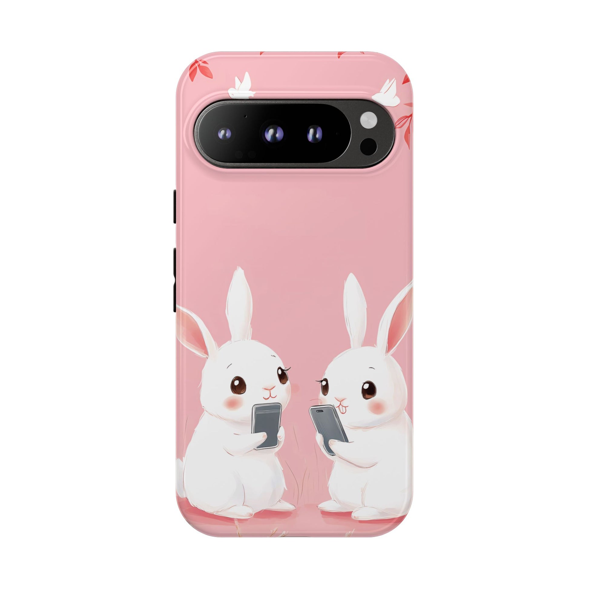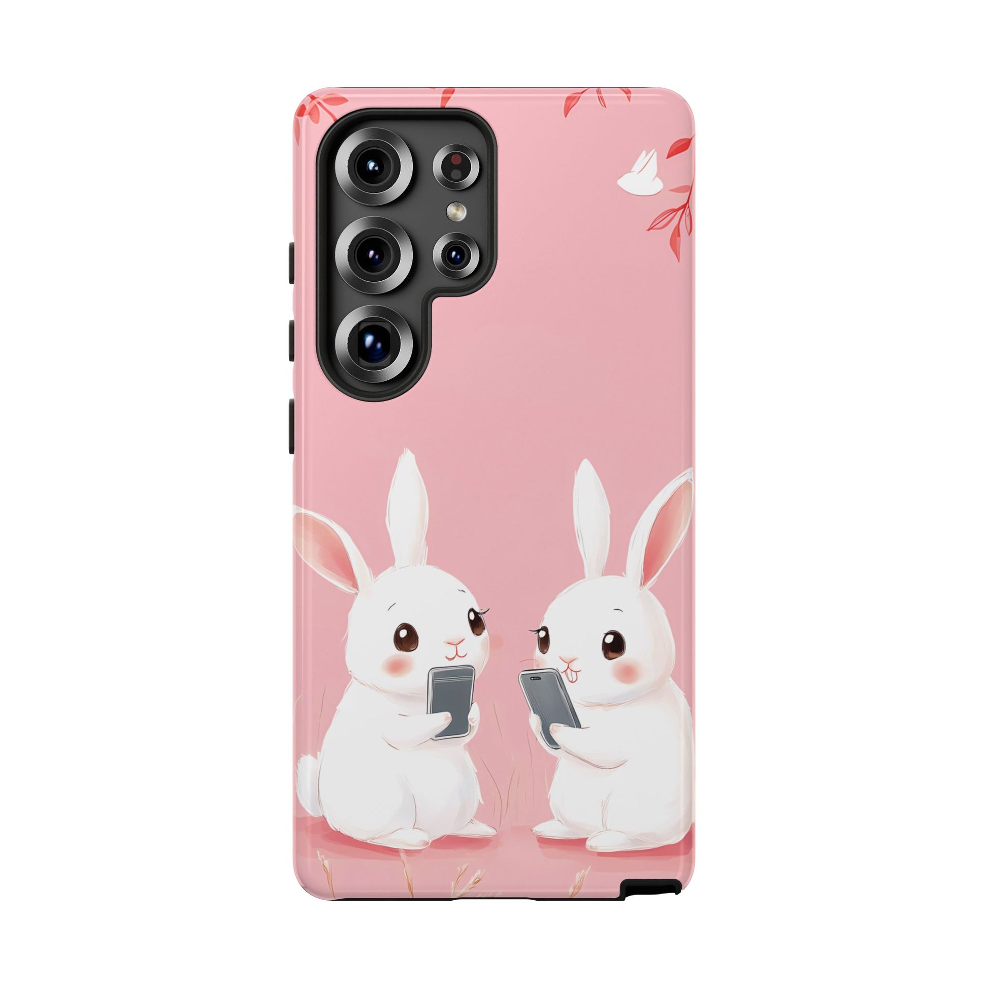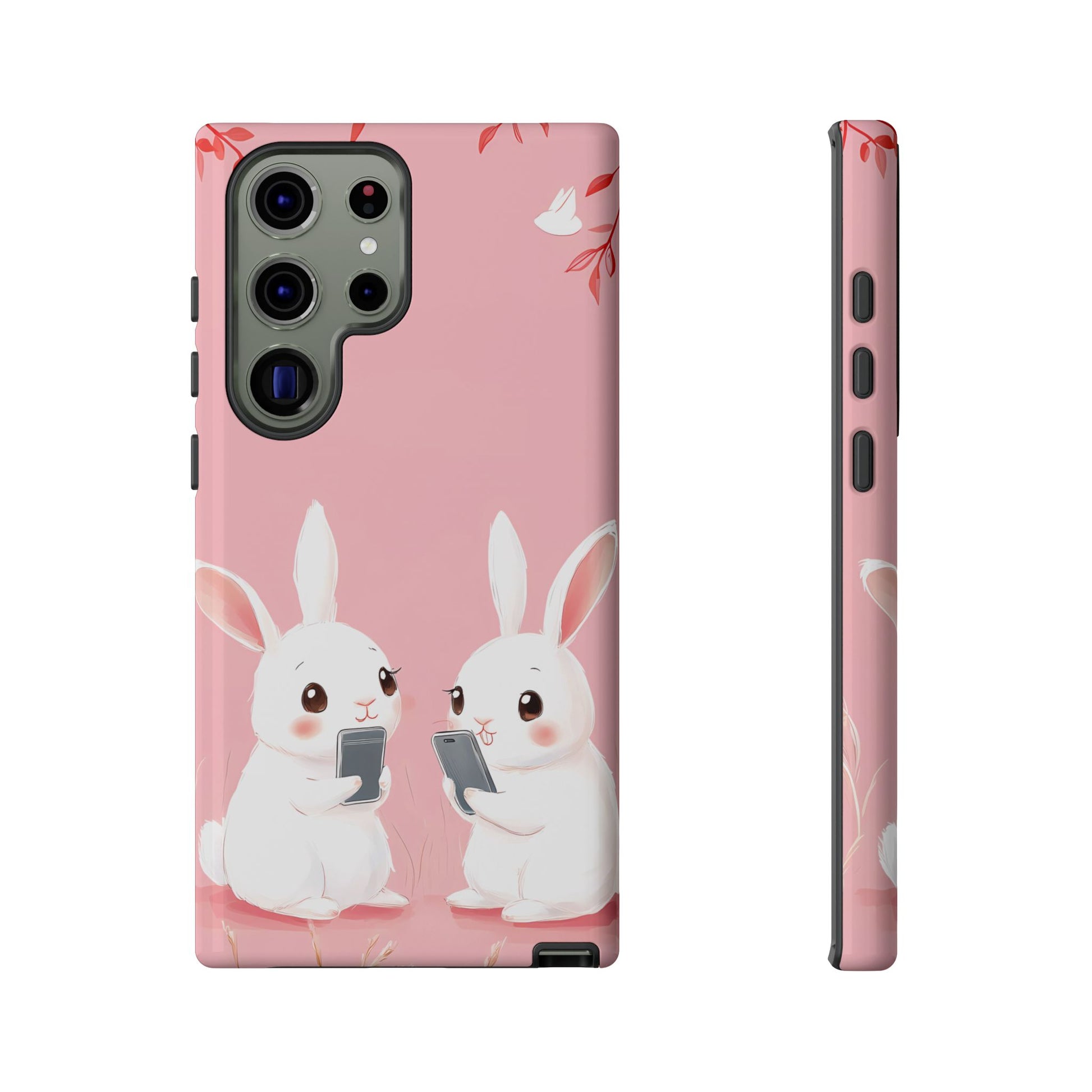 These two curious white bunnies are completely absorbed in their screens! Featuring a cartoon-inspired design with a touch of humor, this phone case is a must-have for anyone who loves cute animals, modern life, and a little digital obsession.