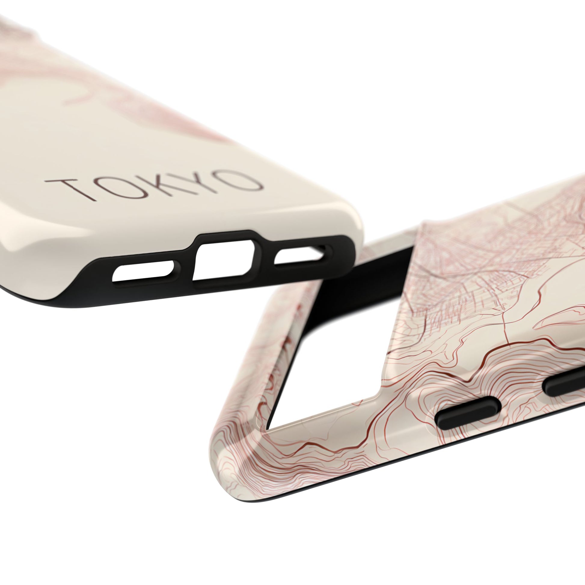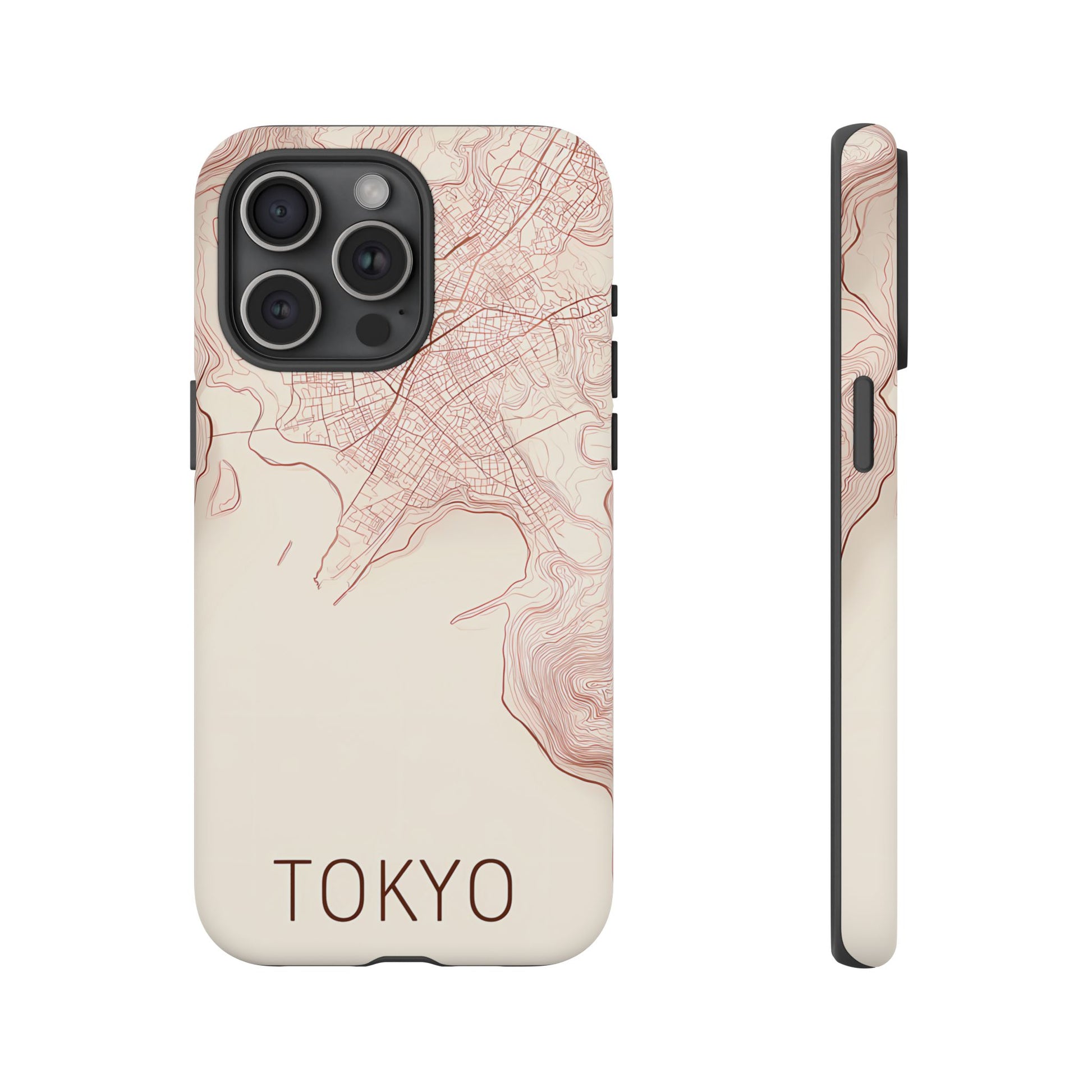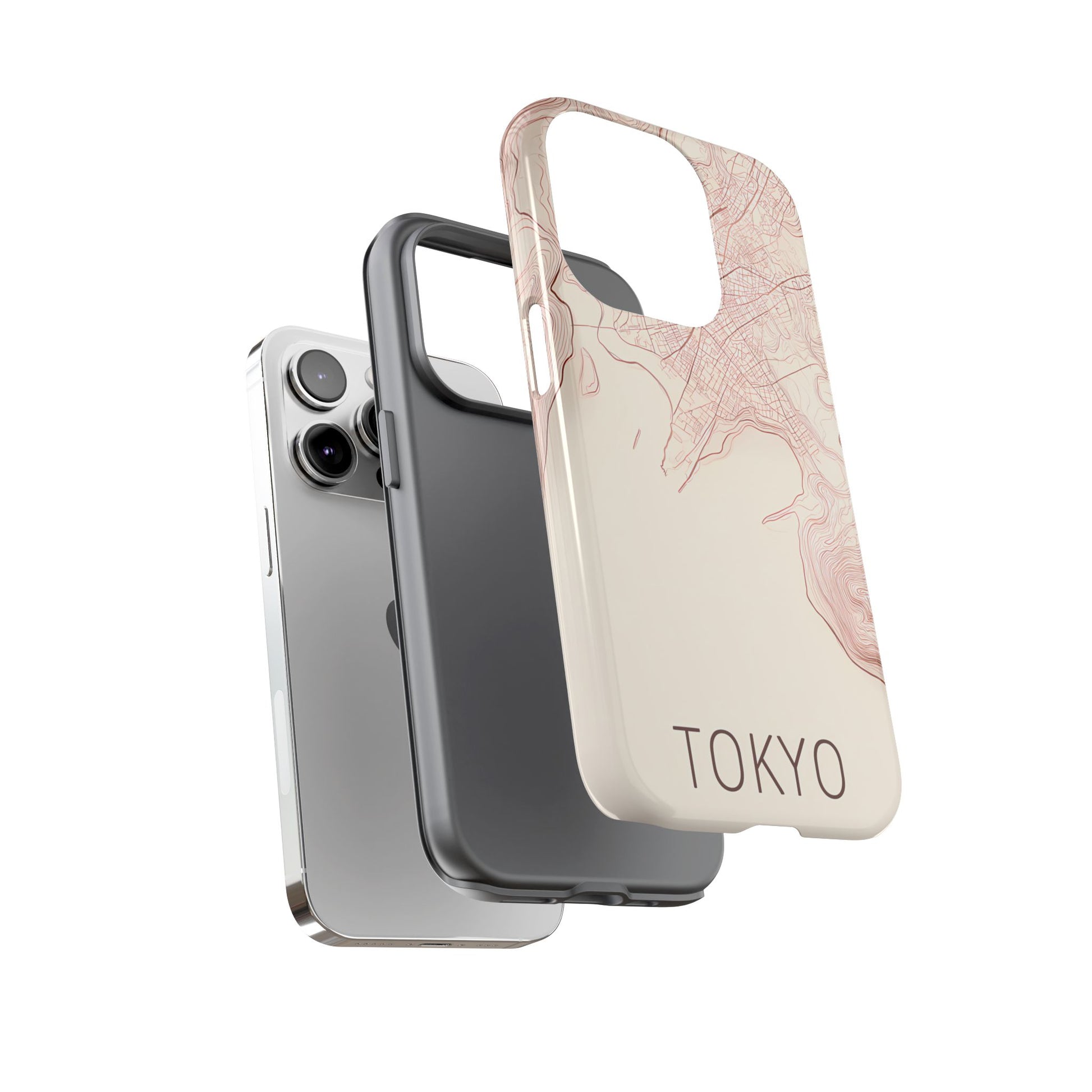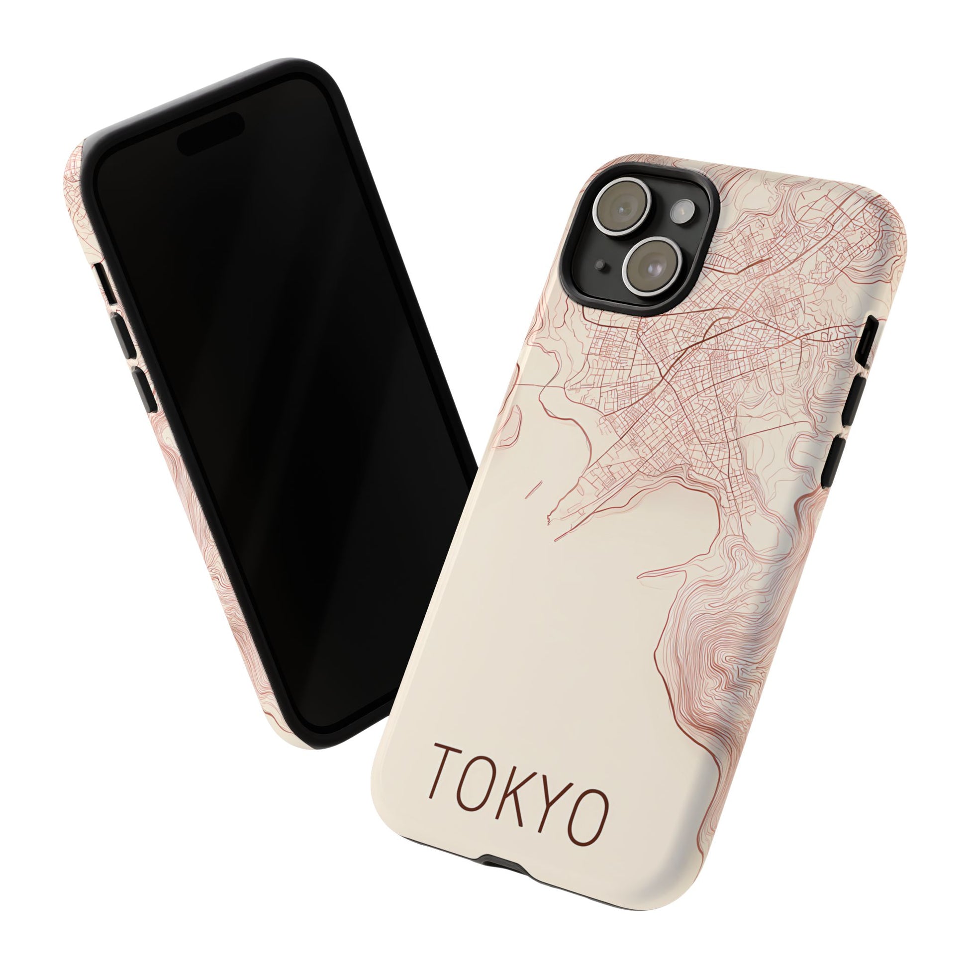 A refined abstract topographic map of Tokyo featuring smooth, flowing contour curves in elegant rose gold on a soft cream background. The word Tokyo appears in clean rose-gold sans-serif type, centered three-quarters down for a minimal, modern aesthetic.