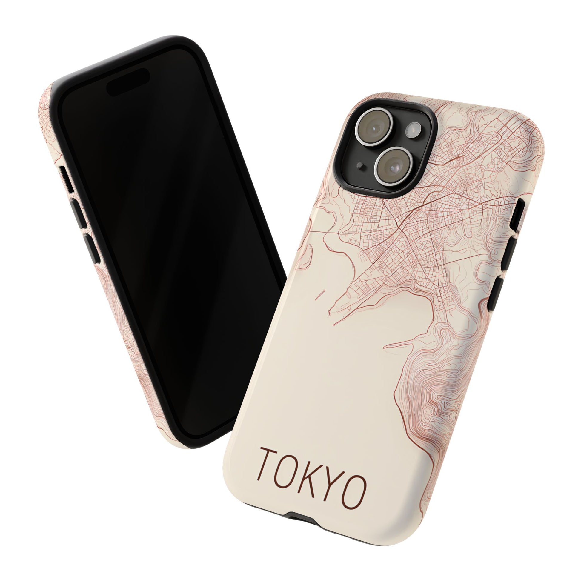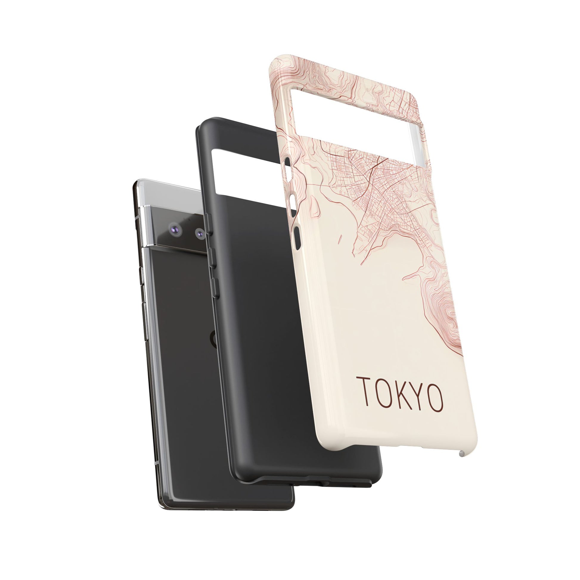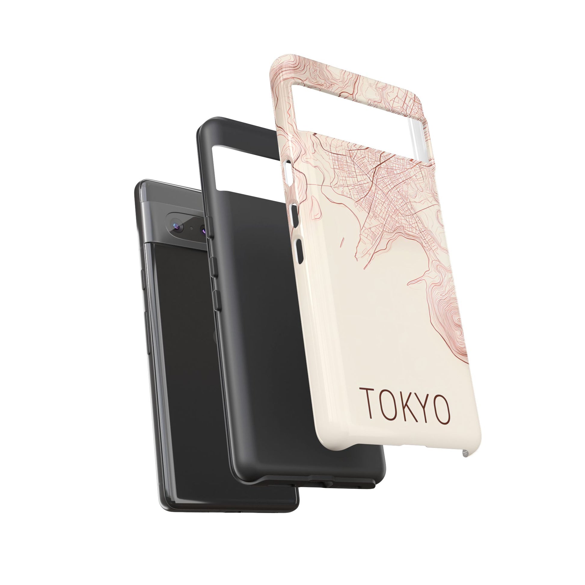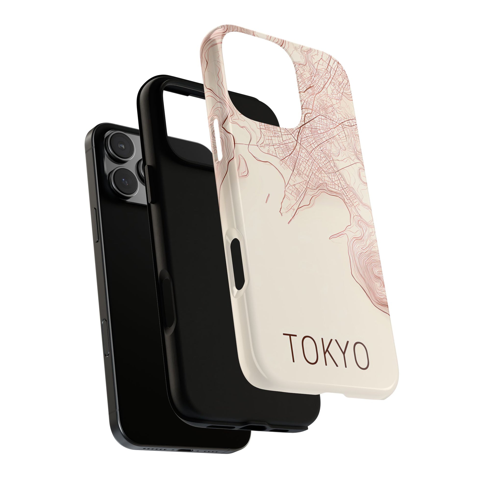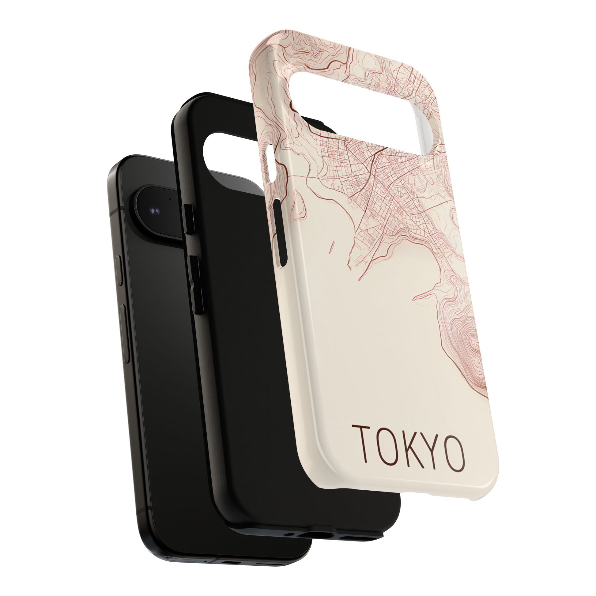 A refined abstract topographic map of Tokyo featuring smooth, flowing contour curves in elegant rose gold on a soft cream background. The word Tokyo appears in clean rose-gold sans-serif type, centered three-quarters down for a minimal, modern aesthetic.