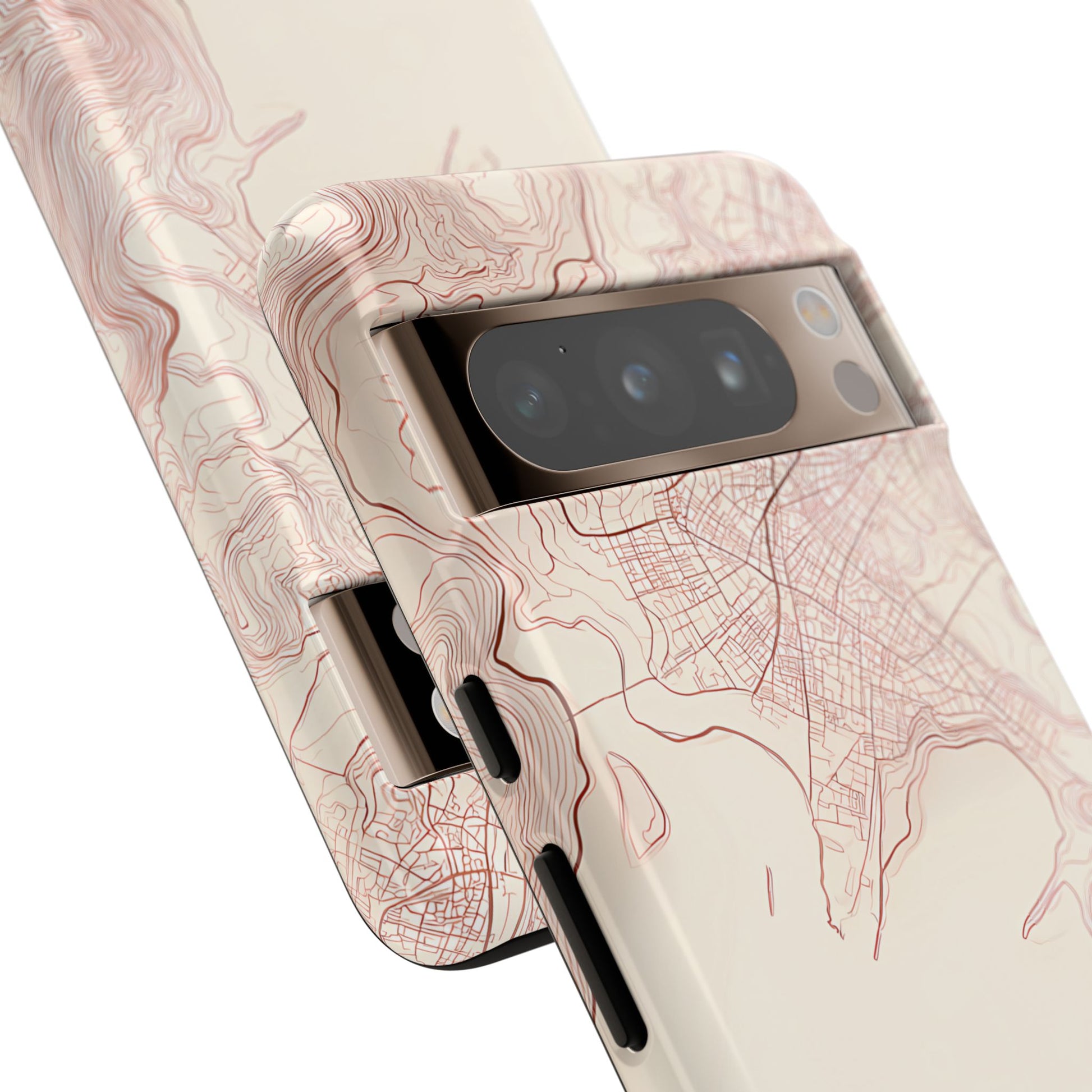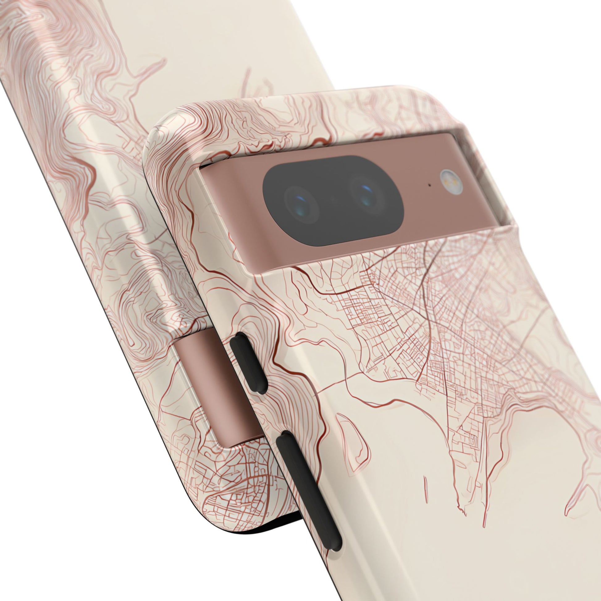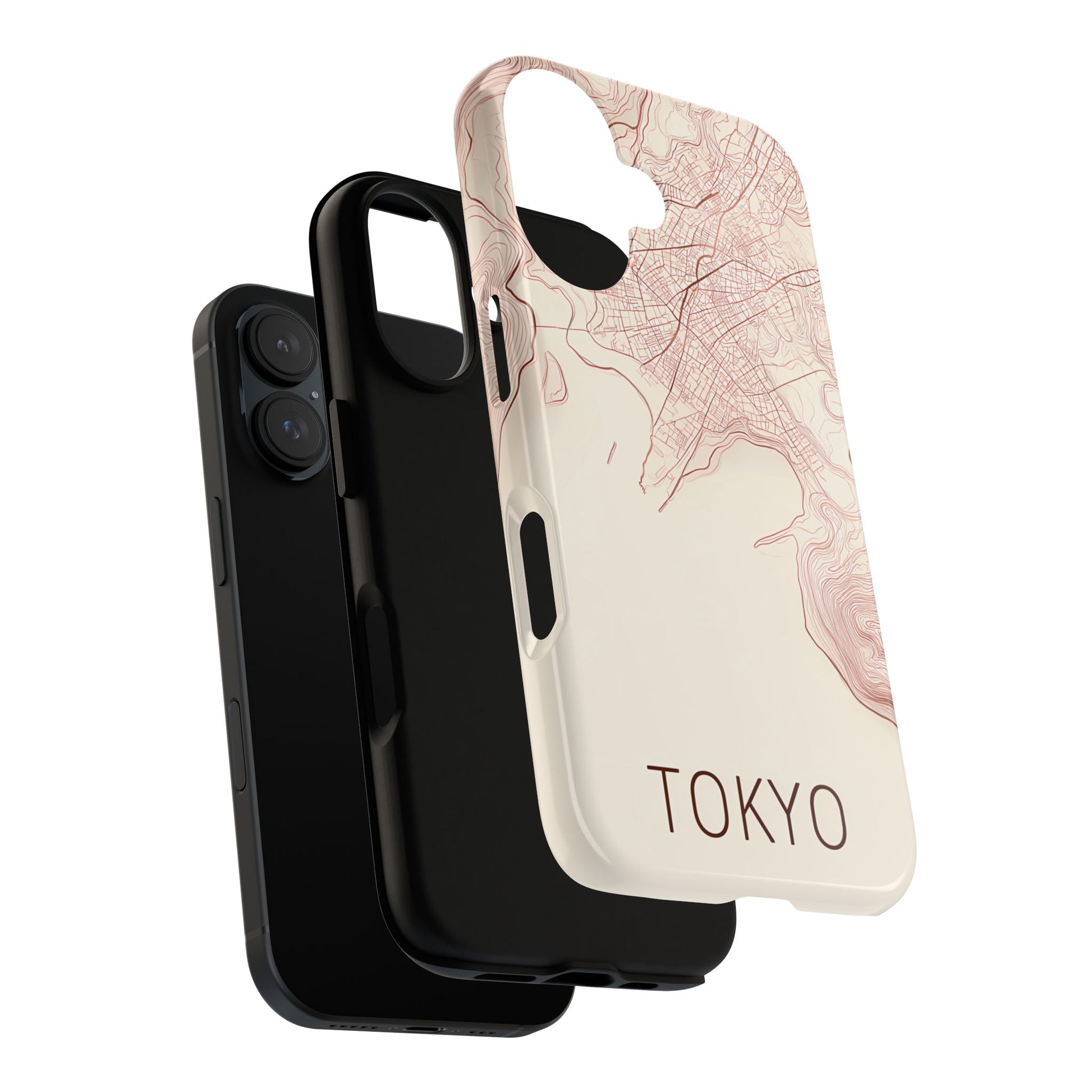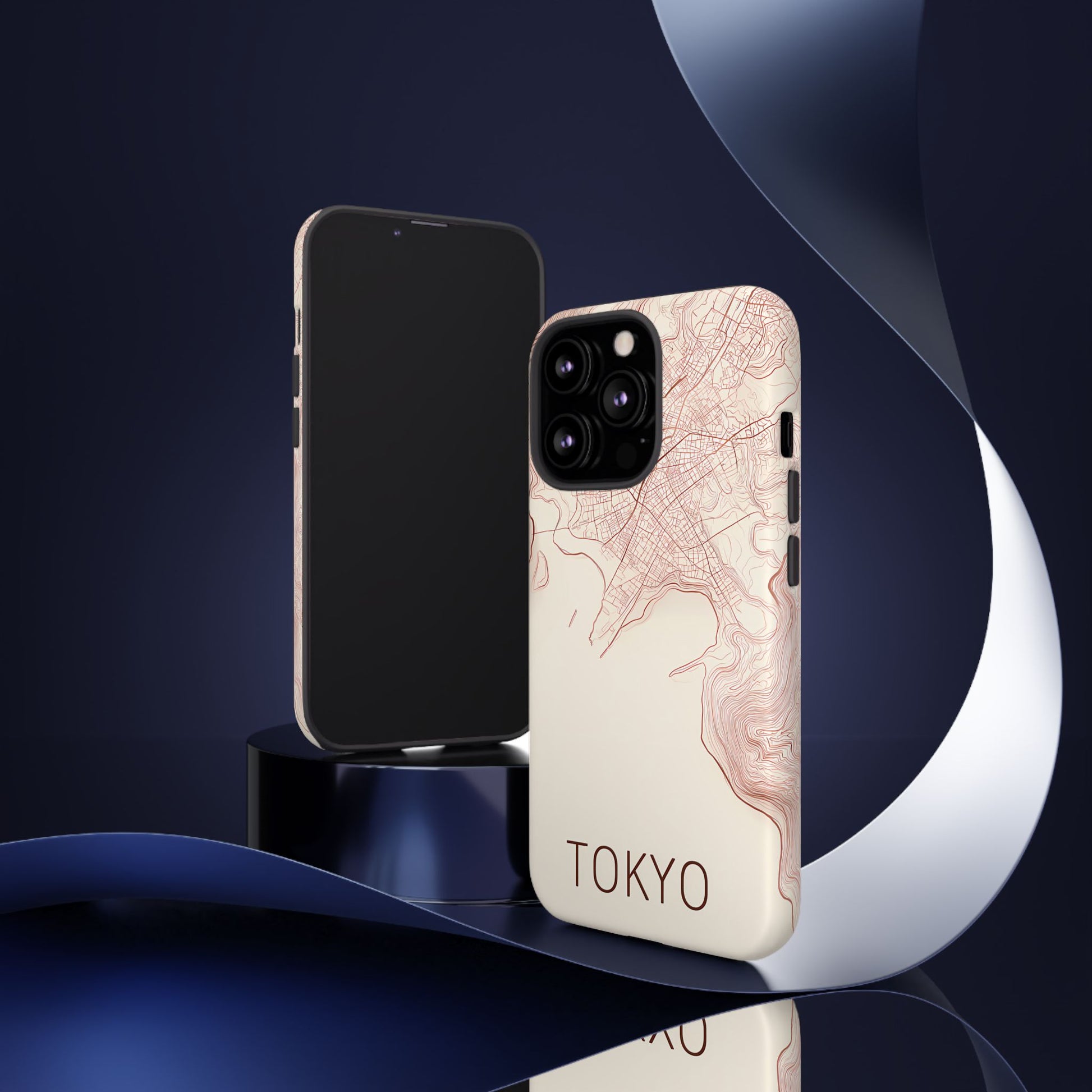 A refined abstract topographic map of Tokyo featuring smooth, flowing contour curves in elegant rose gold on a soft cream background. The word Tokyo appears in clean rose-gold sans-serif type, centered three-quarters down for a minimal, modern aesthetic.